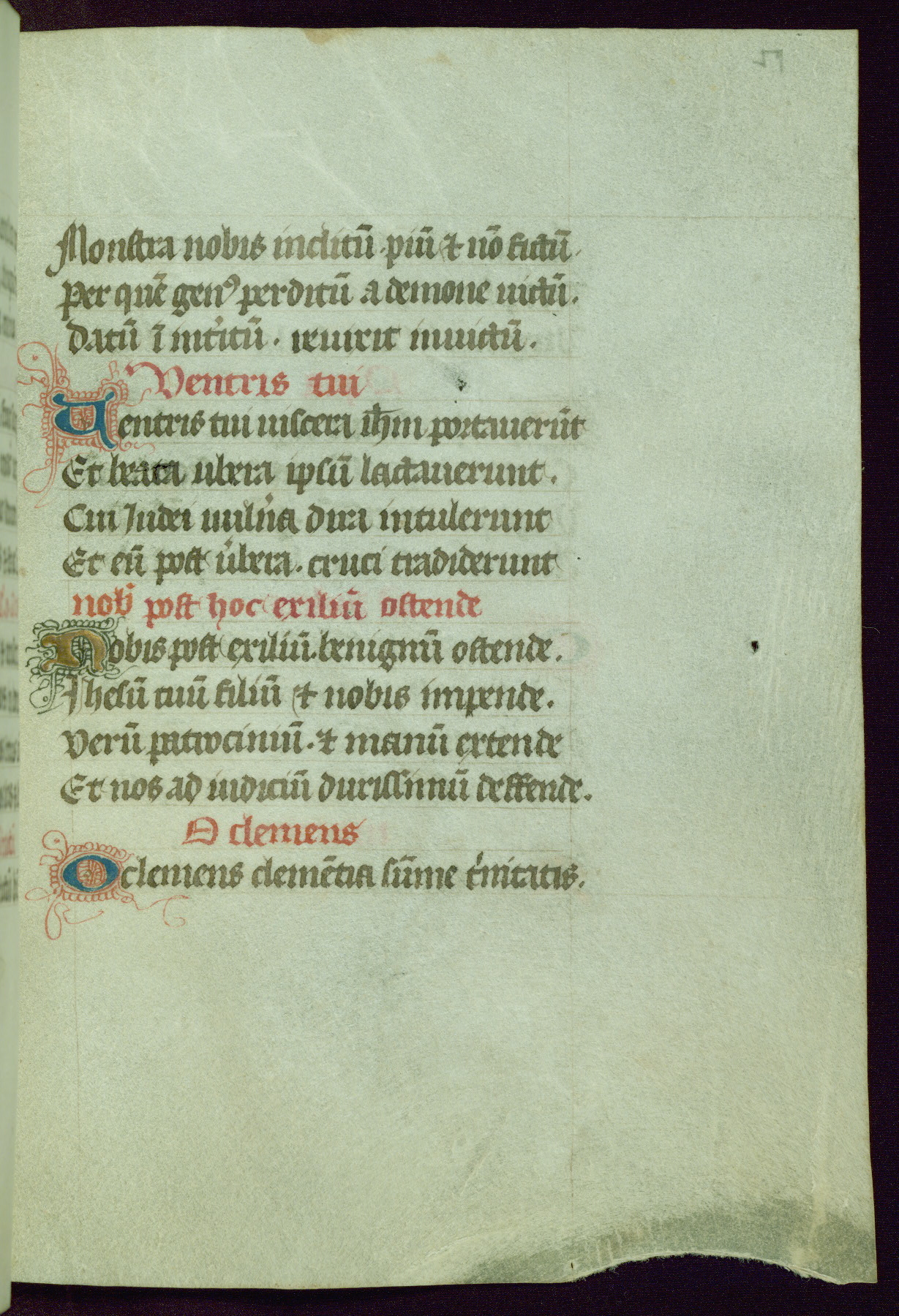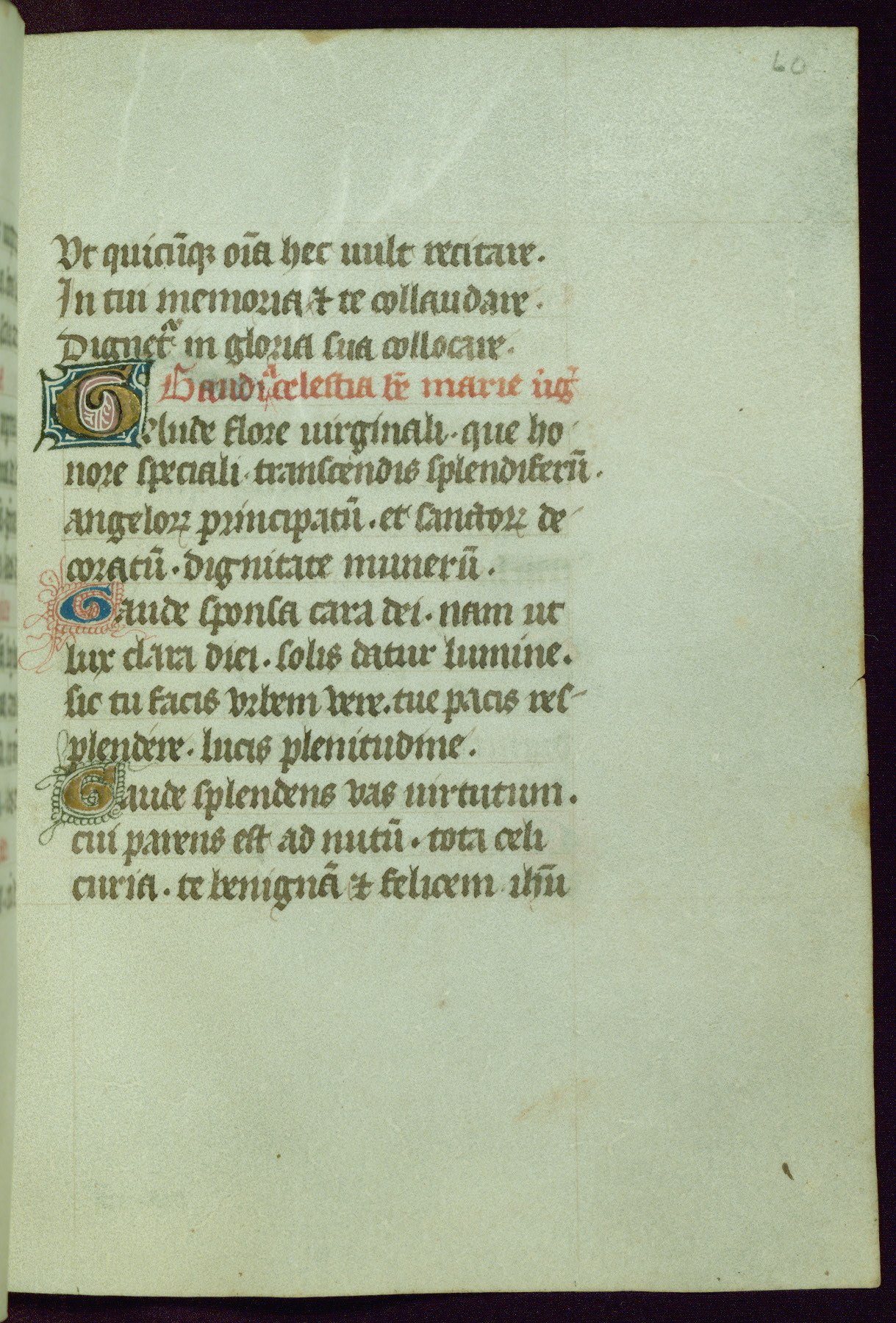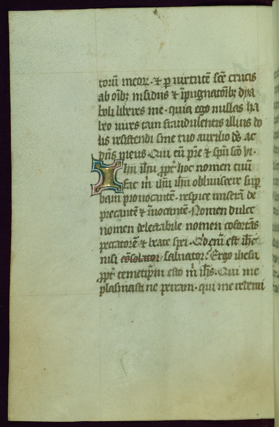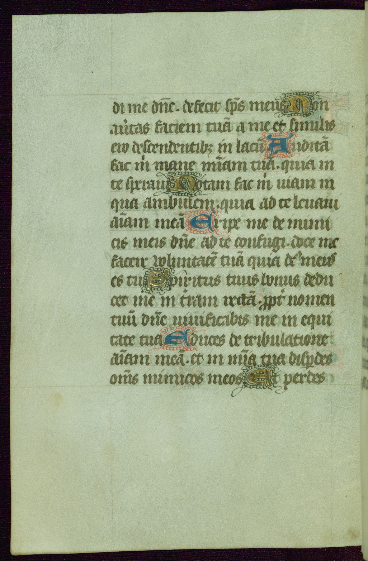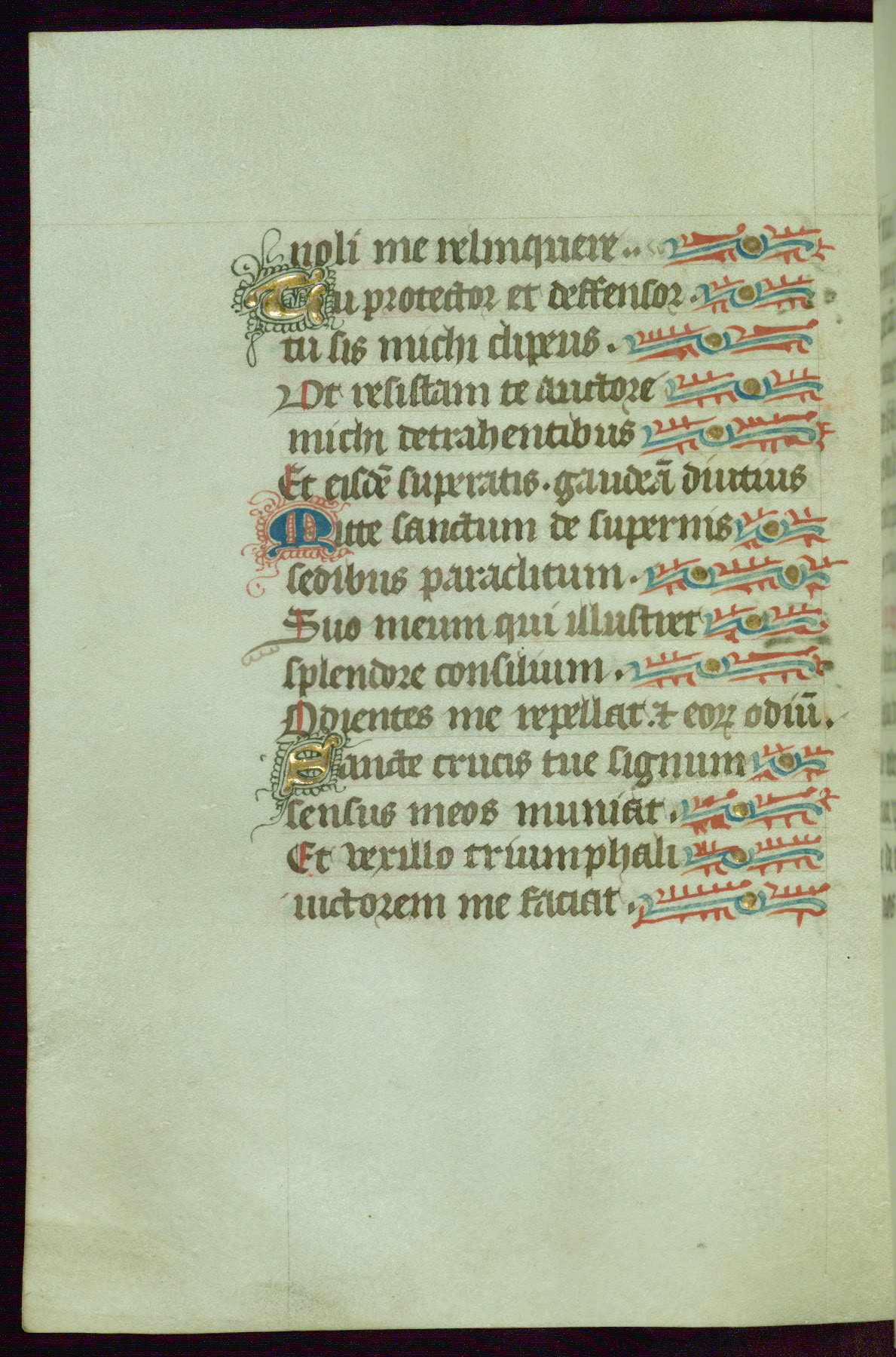 This Book of Hours was created ca. 1440 in Hainaut for a female patron with Cistercian connections, which is suggested by long devotional sequences focused on the Passion of Christ and the Virgin, including indulgences, a litany with Cistercian affiliation, and various references to a female suppliant. Two devotional texts written by various scribes in Latin and French were added to the front and back of the book ca. 1450-1600. At the end of the front devotional text, on fol. 6v, there are sewing holes and strong impressions of a variety of pilgrim badges. The manuscript contains eight full-page miniatures, five of which were at some point protected by pieces of gauze that have been removed and are now in the WAM file.