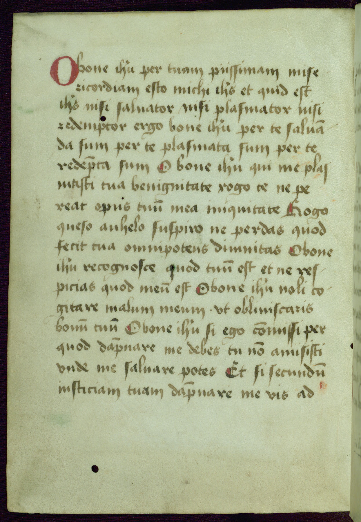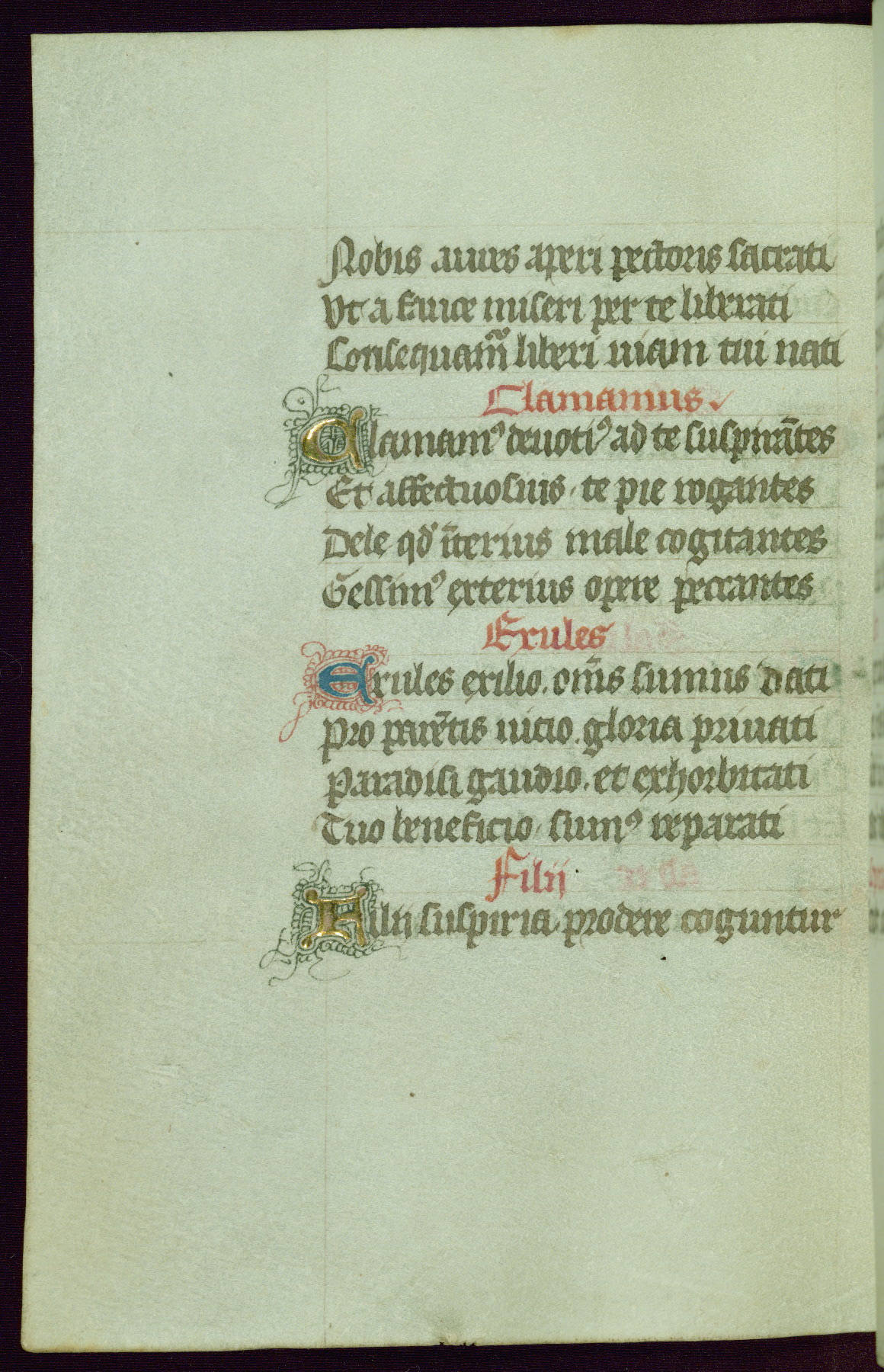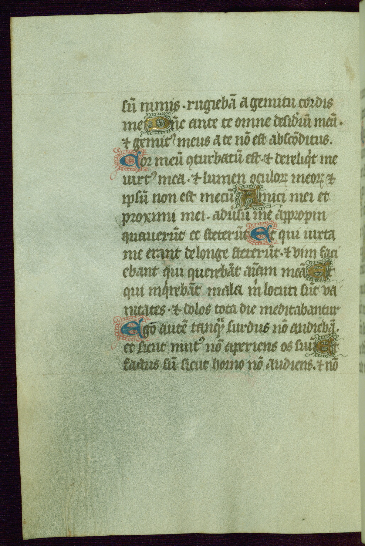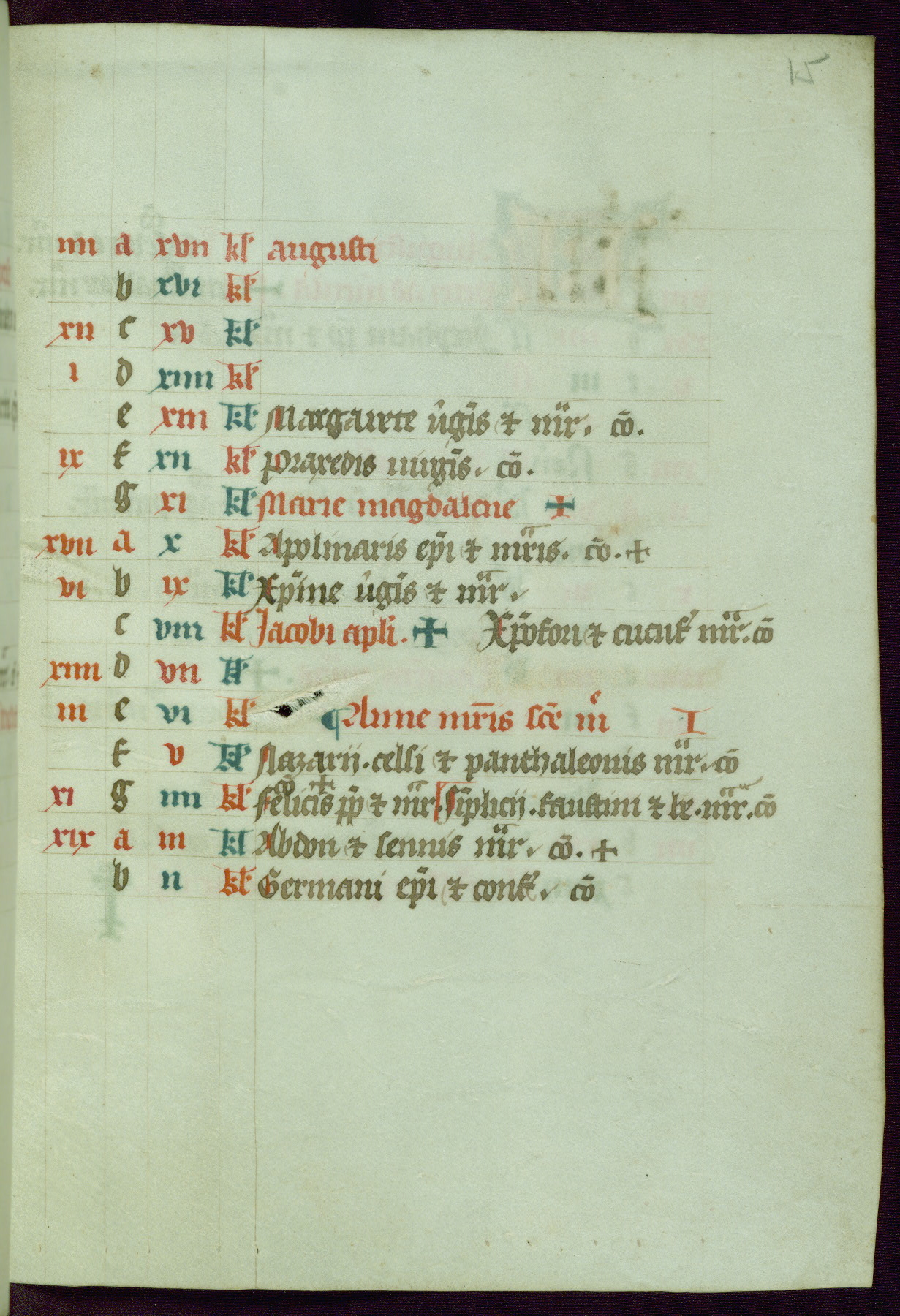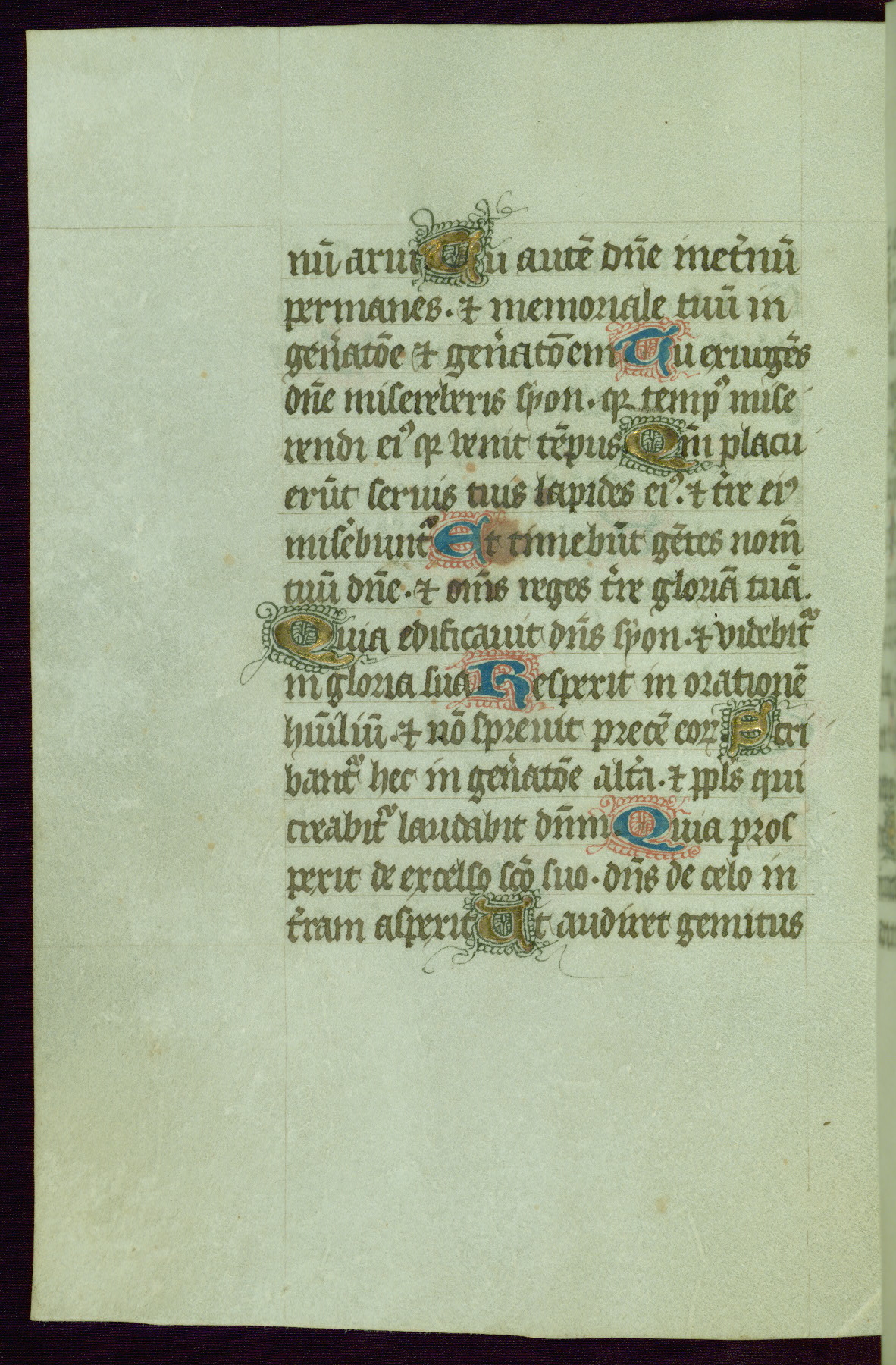 This Book of Hours was created ca. 1440 in Hainaut for a female patron with Cistercian connections, which is suggested by long devotional sequences focused on the Passion of Christ and the Virgin, including indulgences, a litany with Cistercian affiliation, and various references to a female suppliant. Two devotional texts written by various scribes in Latin and French were added to the front and back of the book ca. 1450-1600. At the end of the front devotional text, on fol. 6v, there are sewing holes and strong impressions of a variety of pilgrim badges. The manuscript contains eight full-page miniatures, five of which were at some point protected by pieces of gauze that have been removed and are now in the WAM file.