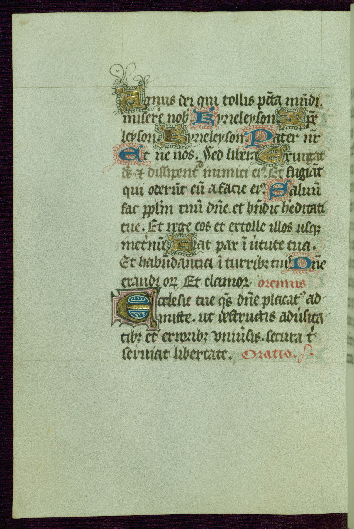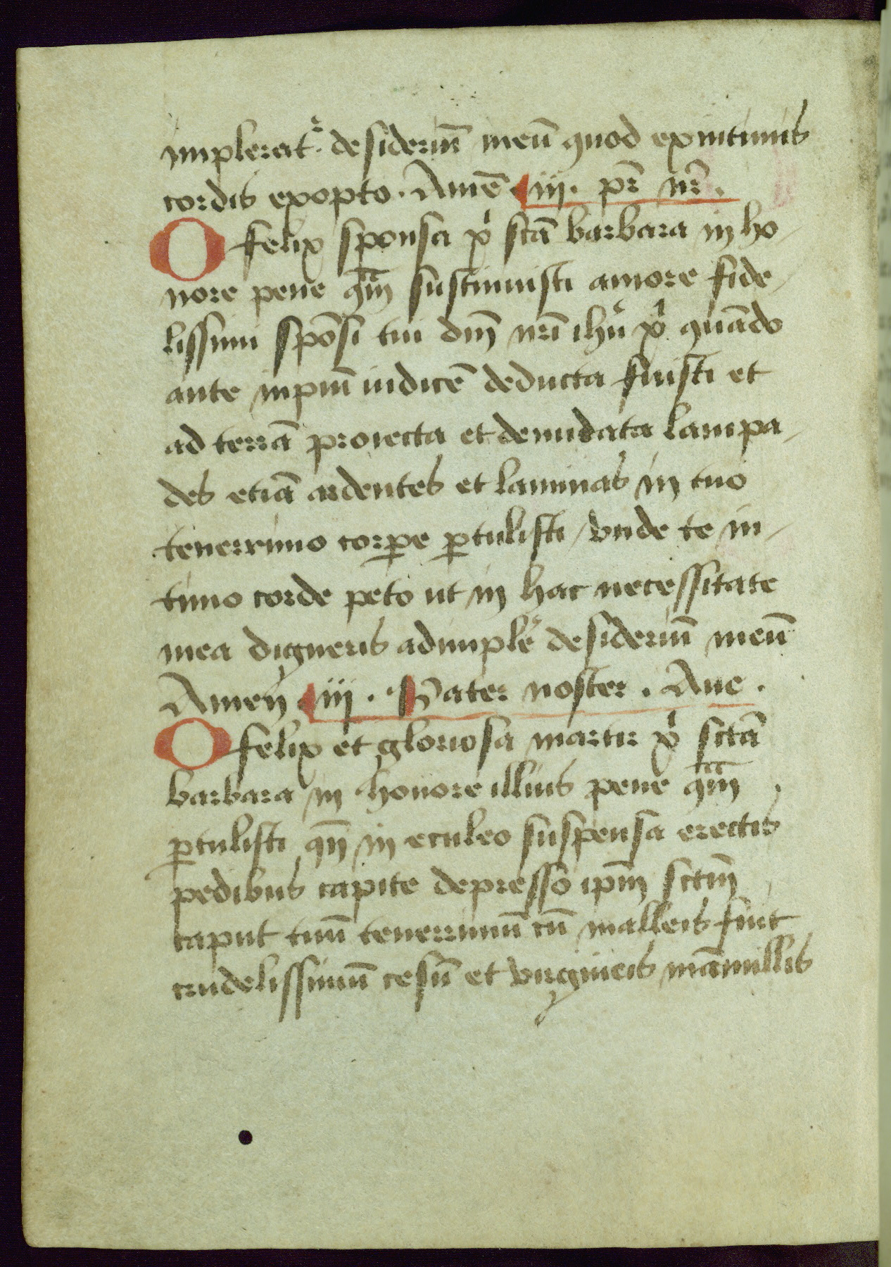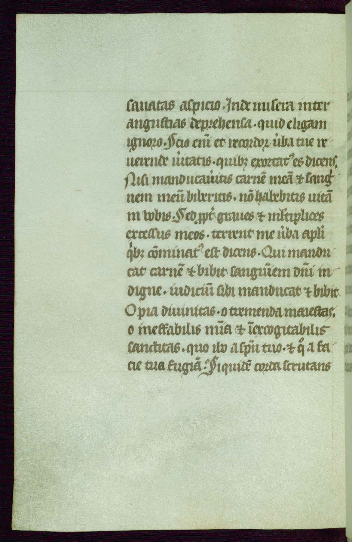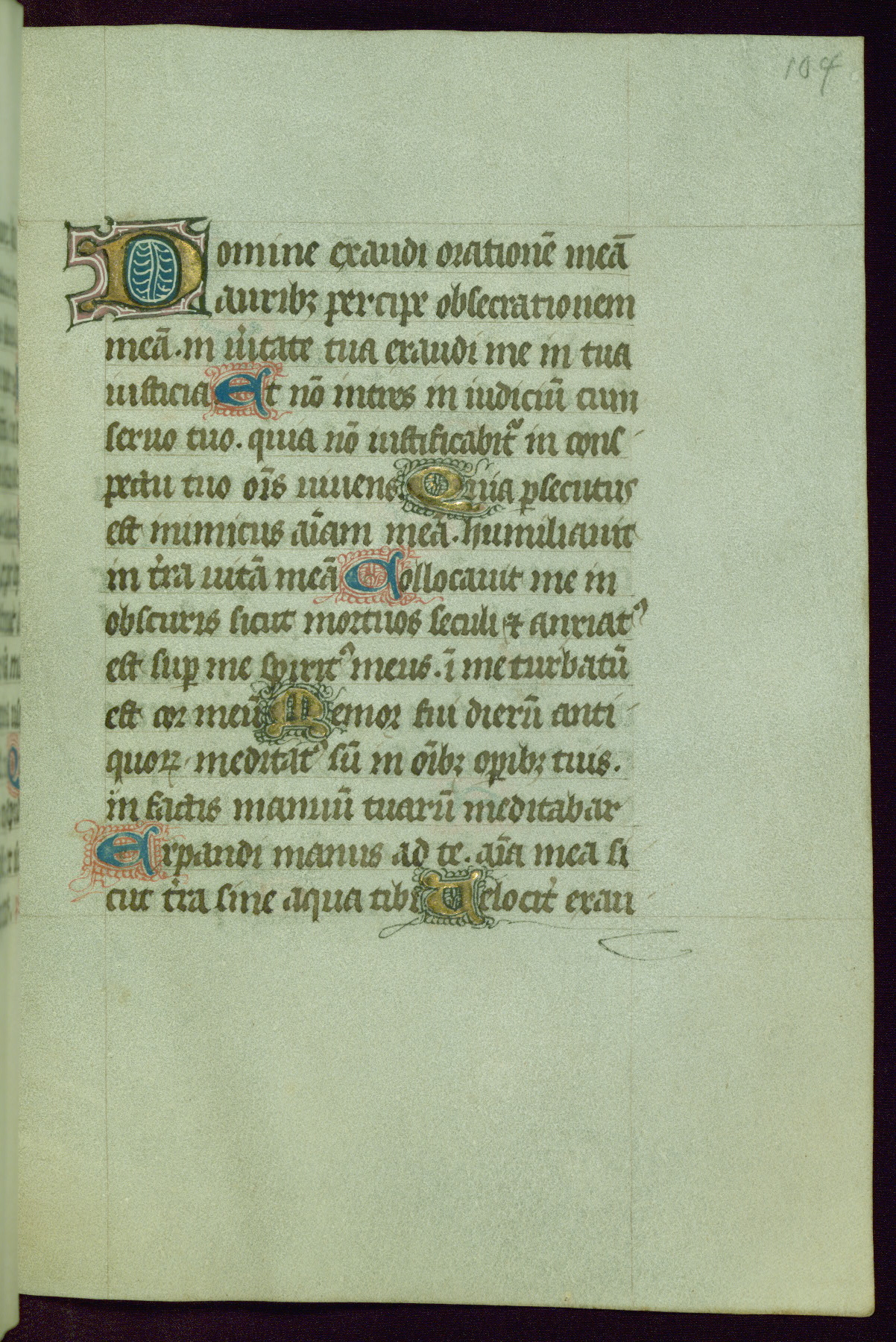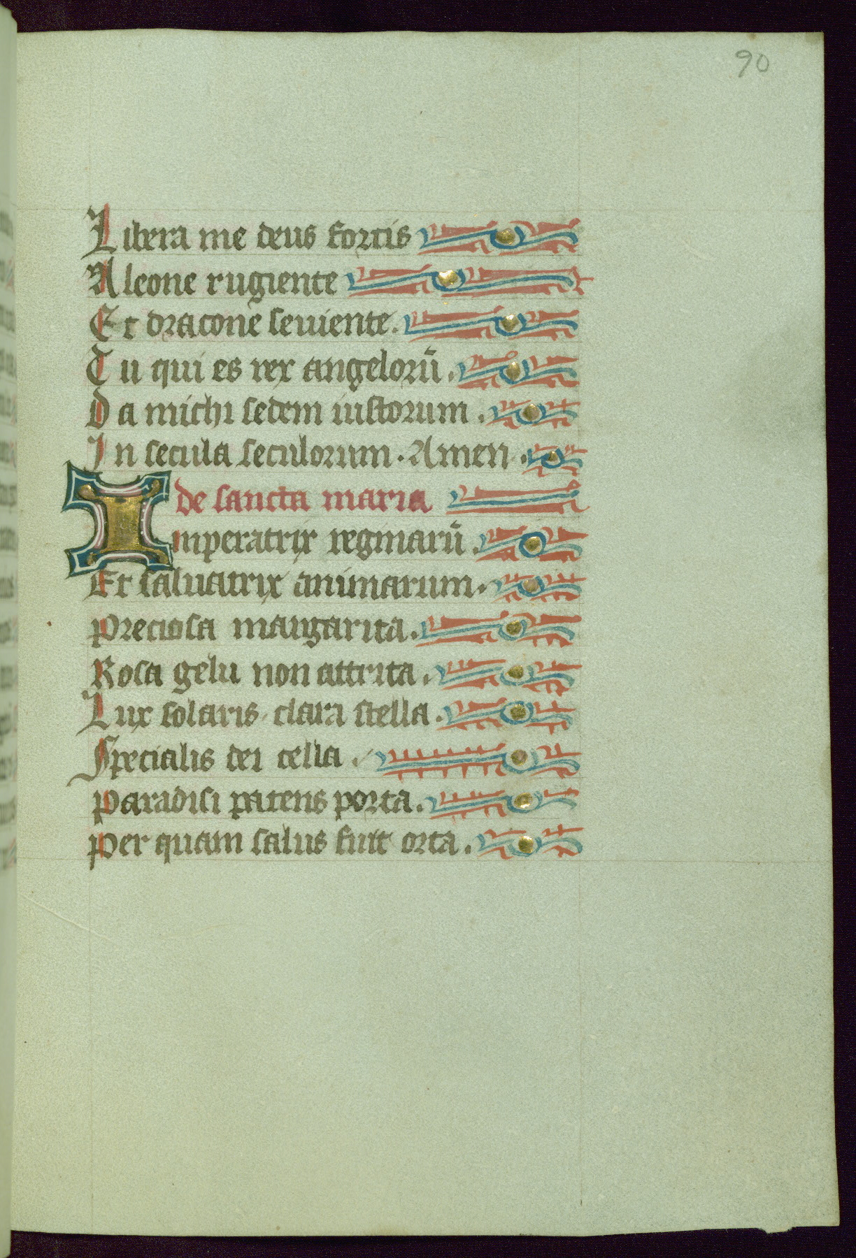 This Book of Hours was created ca. 1440 in Hainaut for a female patron with Cistercian connections, which is suggested by long devotional sequences focused on the Passion of Christ and the Virgin, including indulgences, a litany with Cistercian affiliation, and various references to a female suppliant. Two devotional texts written by various scribes in Latin and French were added to the front and back of the book ca. 1450-1600. At the end of the front devotional text, on fol. 6v, there are sewing holes and strong impressions of a variety of pilgrim badges. The manuscript contains eight full-page miniatures, five of which were at some point protected by pieces of gauze that have been removed and are now in the WAM file.