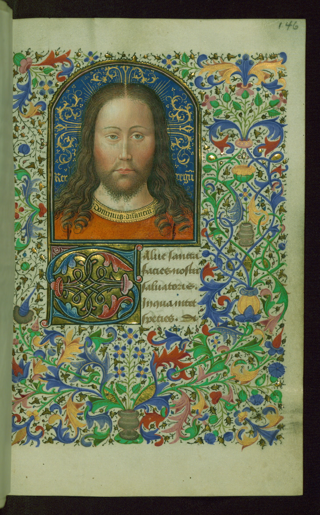 - Contents: Fols. 145r-147v: Suffrage to the Holy Face; fols. 147v-152r: Suffrages to John the Baptist (fol. 147v), All Angels (fols. 148v-150r), and Catherine (fols. 150r-152r); fols. 152r-157v: Prayers for entering or passing a cemetery, entering a church, and Communion