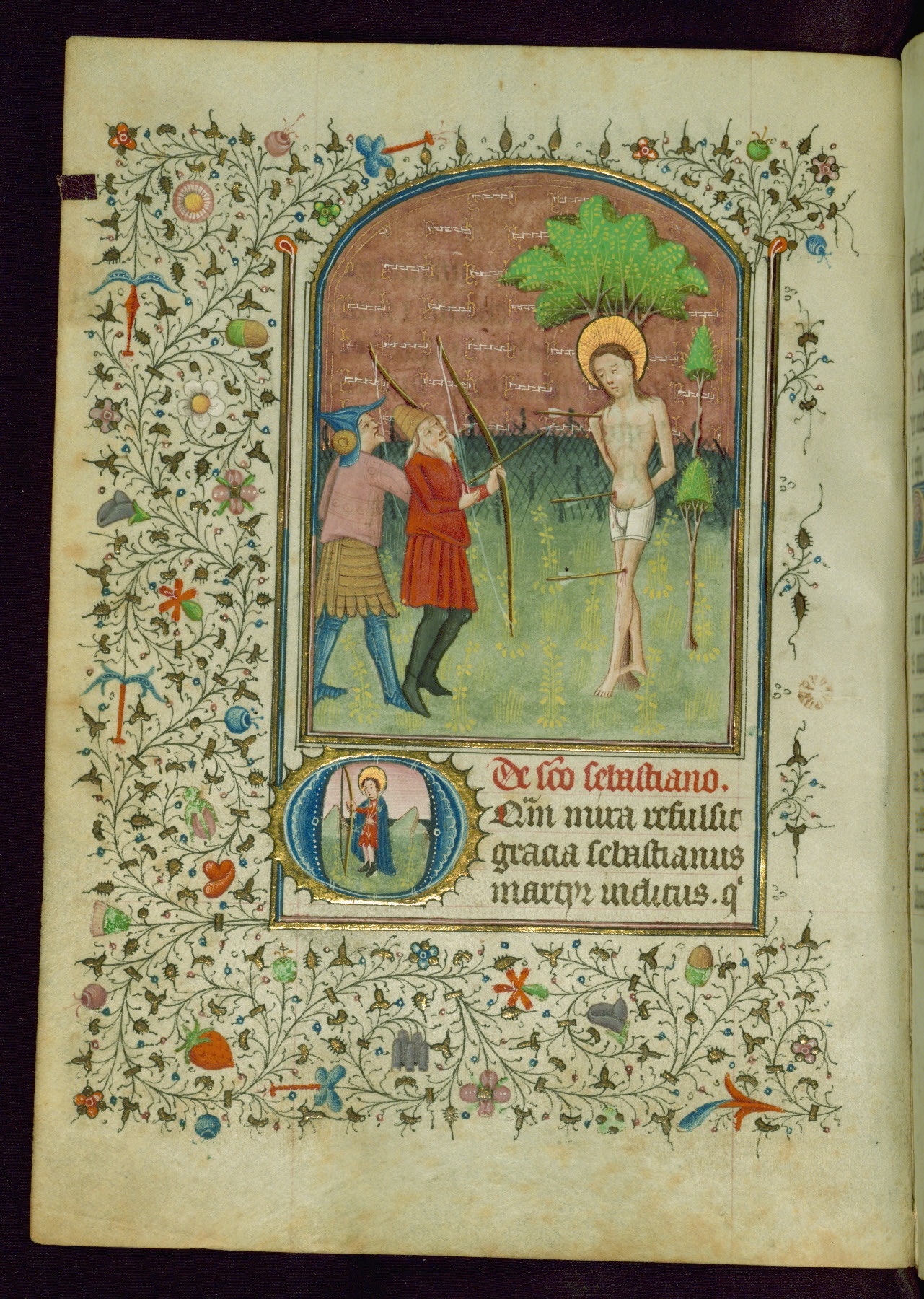 - Title: St. Sebastian martyred; Initial "O" with St. Sebastian in a landscape