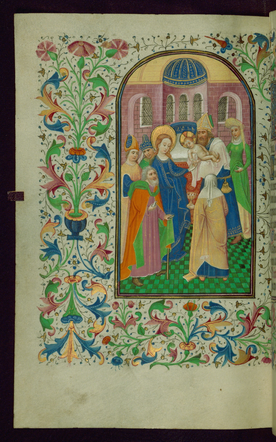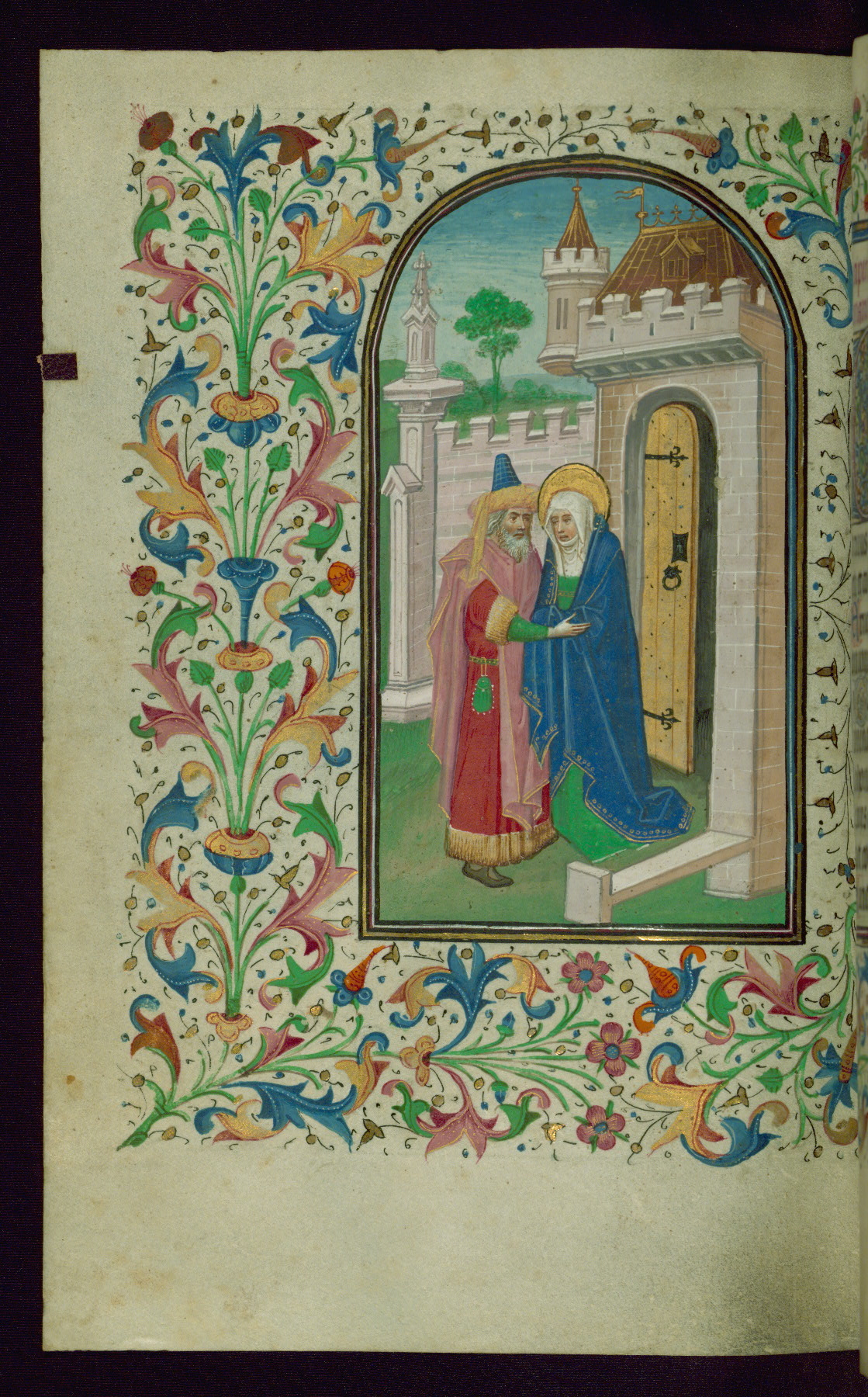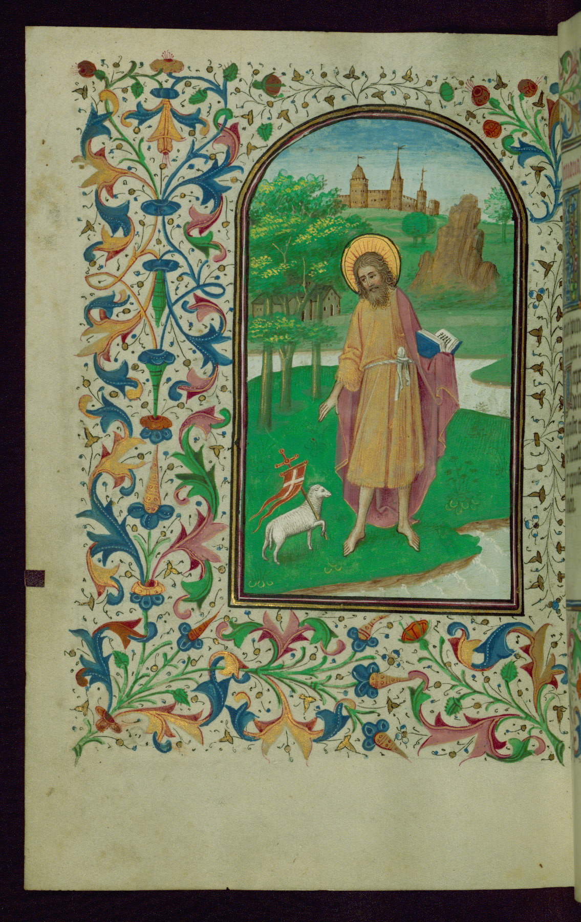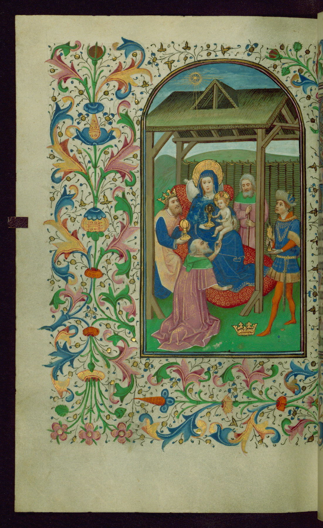 Made for use in the diocese of Cambrai ca. 1450-60, this Book of Hours is extraordinary for its lavish illumination. It was likely produced by several artists within the circle of Willlem Vrelant, and the wealth of texts and images recall the richness of manuscripts by Vrelant from the same era, such as the Hours of Isabel la Católica (Biblioteca del Palacio Real, Madrid, Arm. Inf. 61) completed in Bruges ca. 1455.