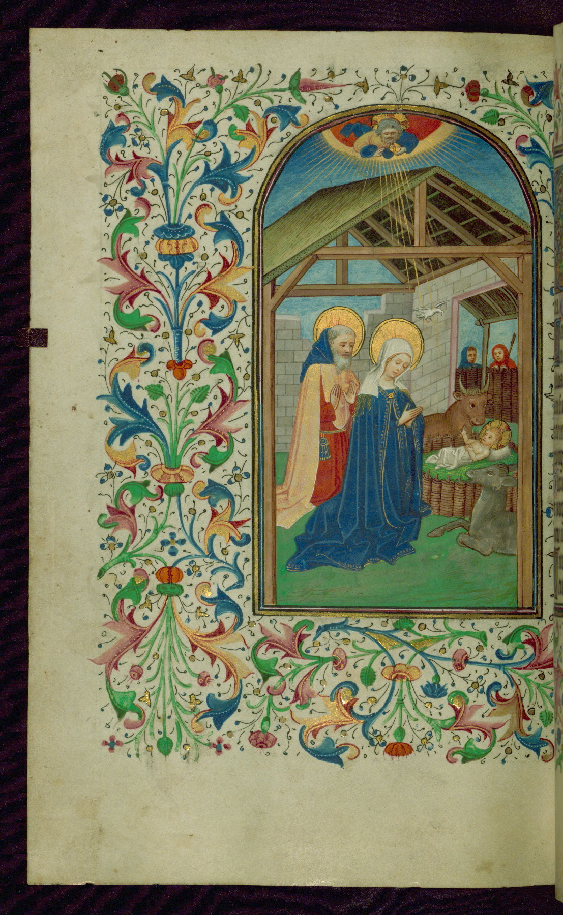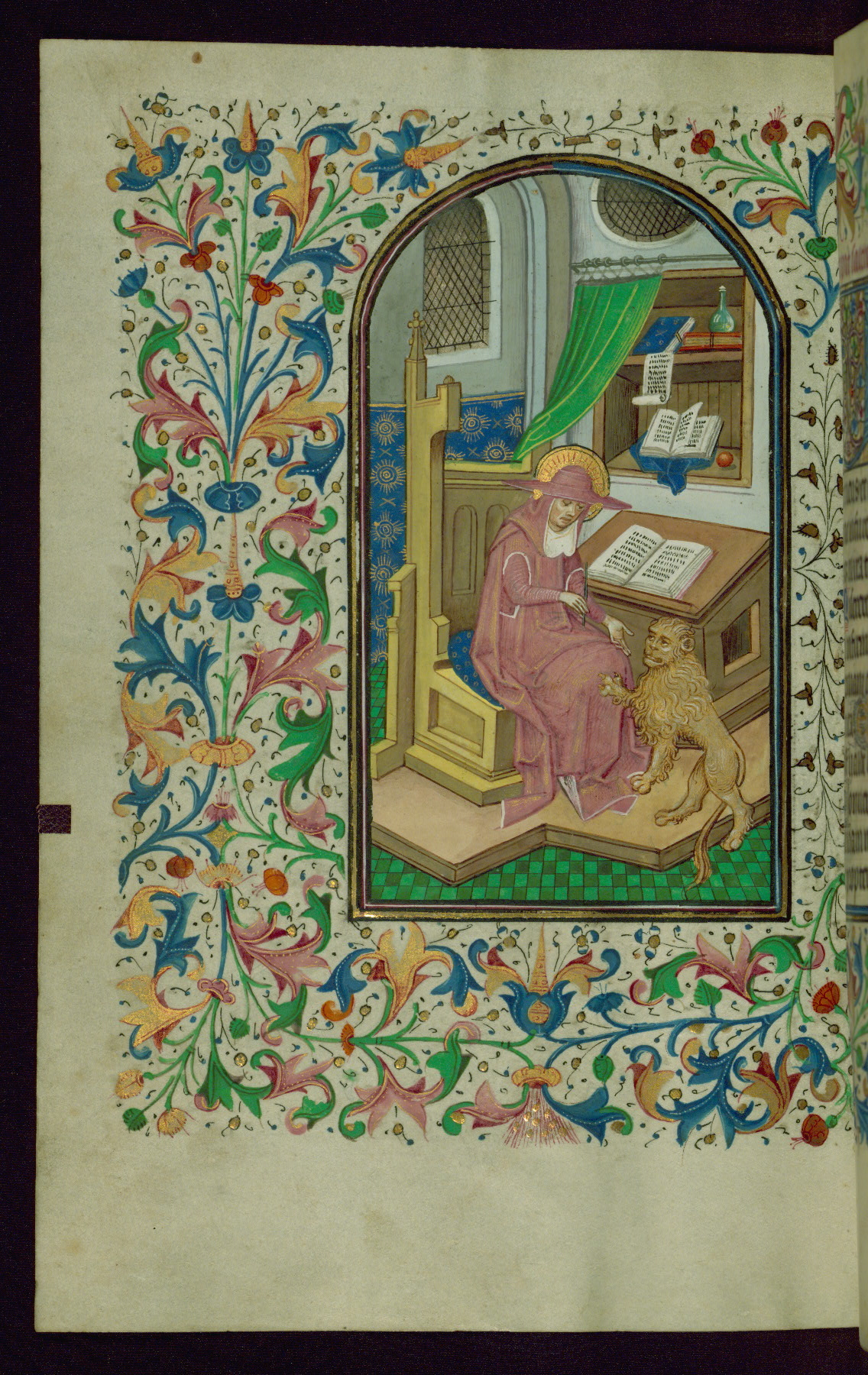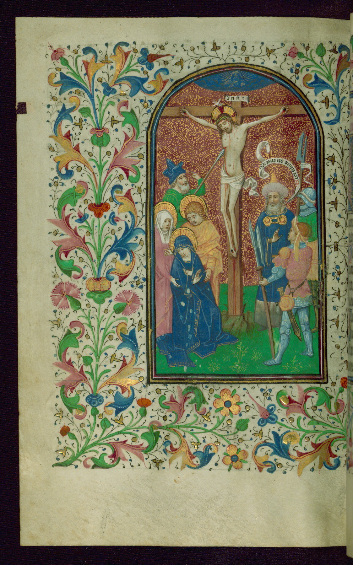 Made for use in the diocese of Cambrai ca. 1450-60, this Book of Hours is extraordinary for its lavish illumination. It was likely produced by several artists within the circle of Willlem Vrelant, and the wealth of texts and images recall the richness of manuscripts by Vrelant from the same era, such as the Hours of Isabel la Católica (Biblioteca del Palacio Real, Madrid, Arm. Inf. 61) completed in Bruges ca. 1455.