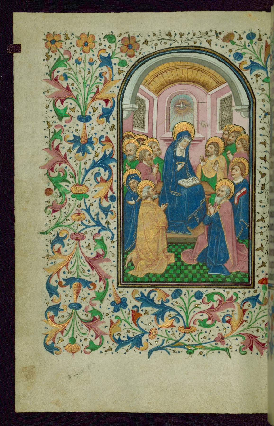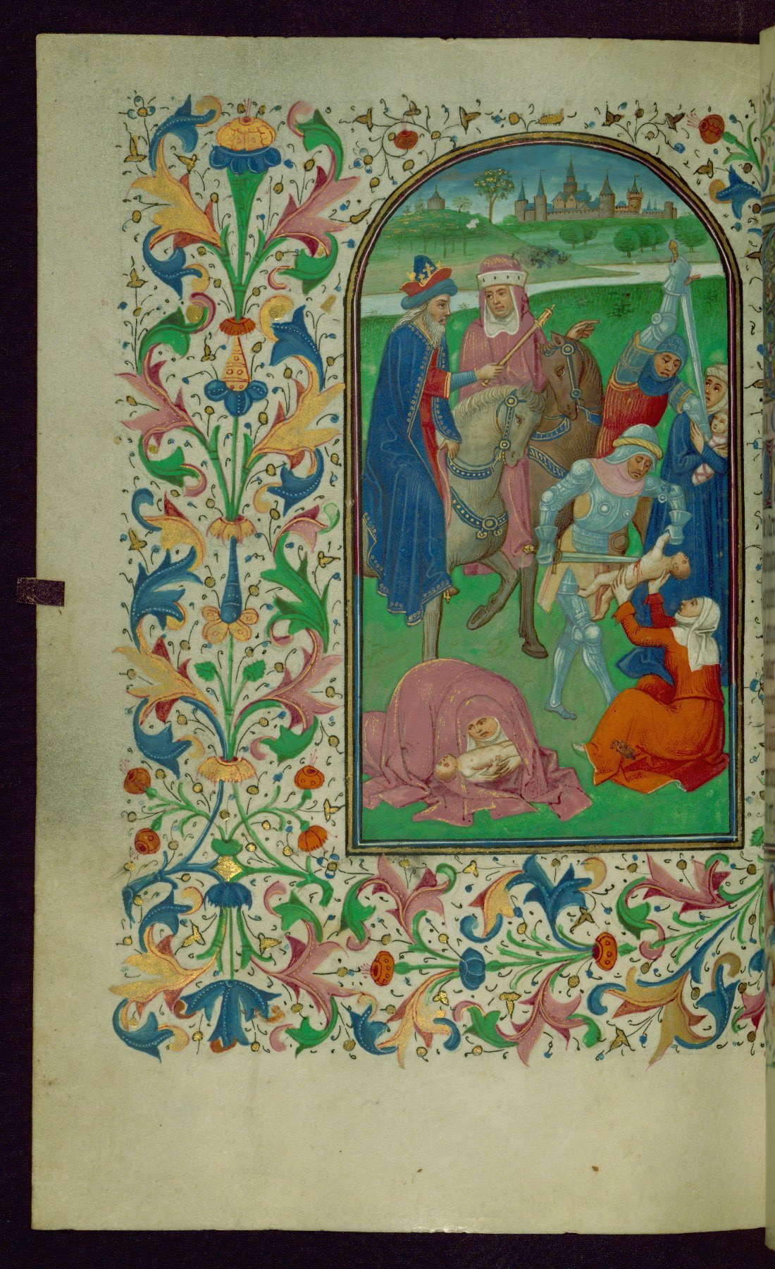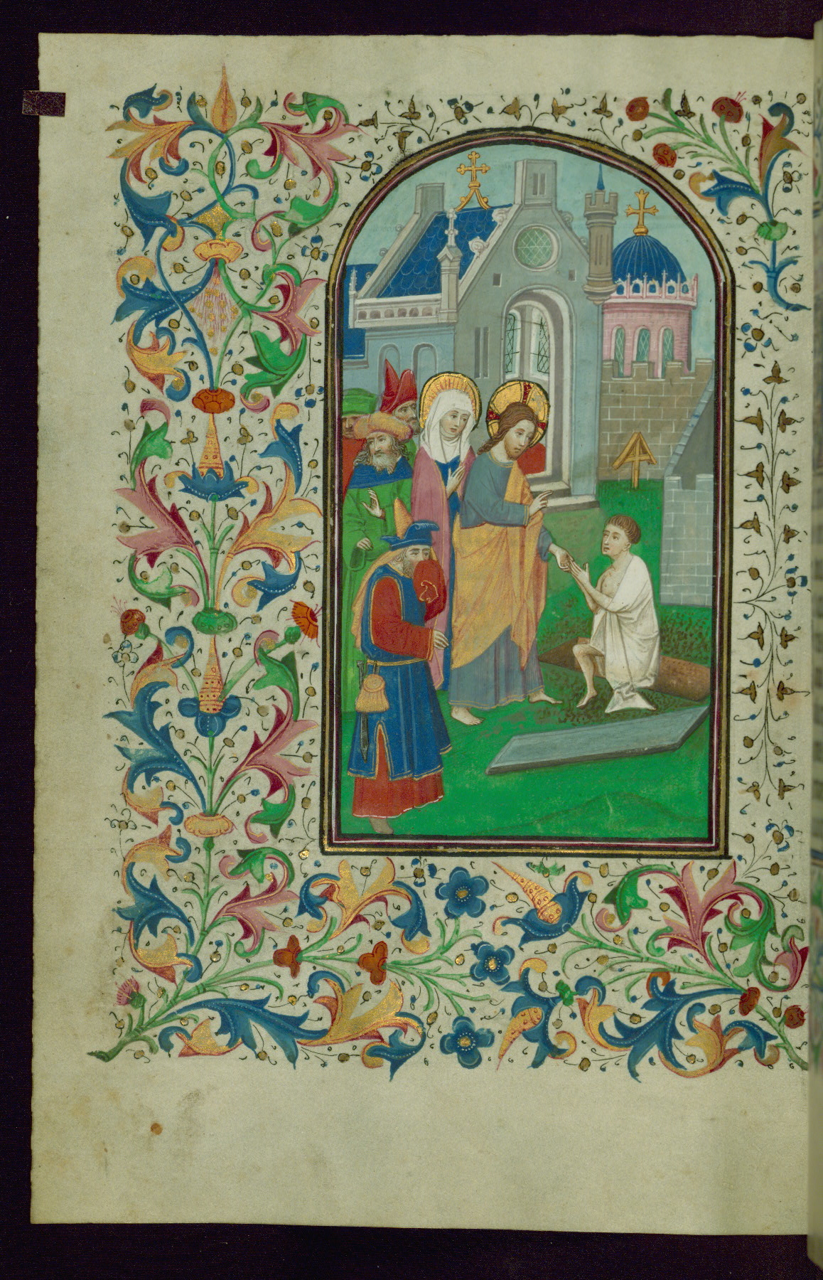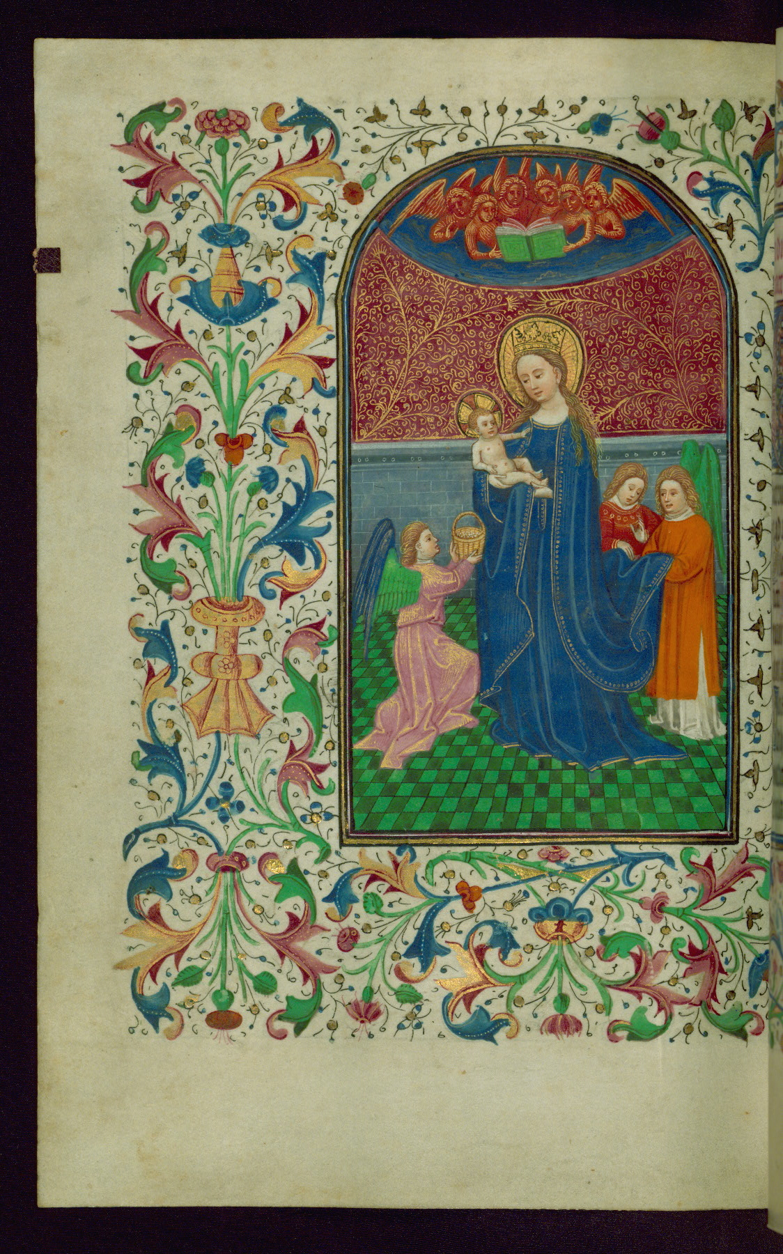 Made for use in the diocese of Cambrai ca. 1450-60, this Book of Hours is extraordinary for its lavish illumination. It was likely produced by several artists within the circle of Willlem Vrelant, and the wealth of texts and images recall the richness of manuscripts by Vrelant from the same era, such as the Hours of Isabel la Católica (Biblioteca del Palacio Real, Madrid, Arm. Inf. 61) completed in Bruges ca. 1455.