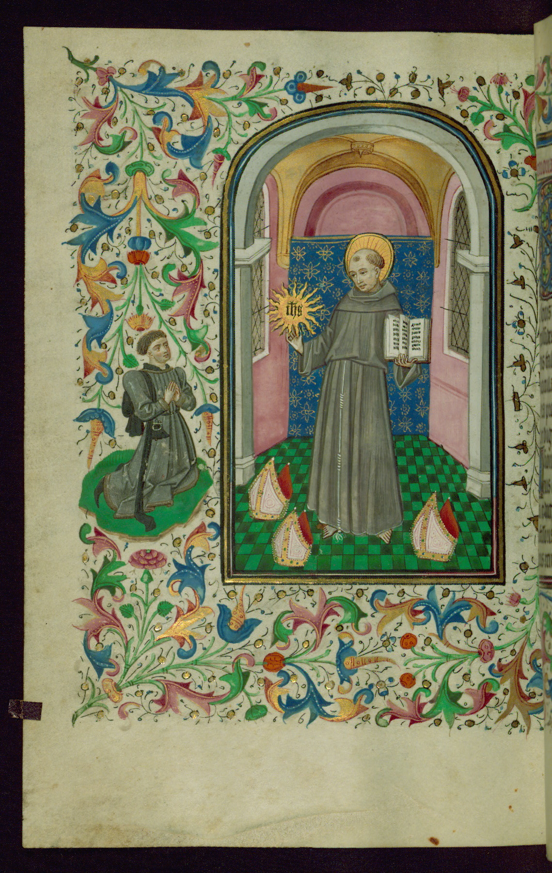 - Title: St. Bernardinus of Siena with the owner of the book kneeling in the margin