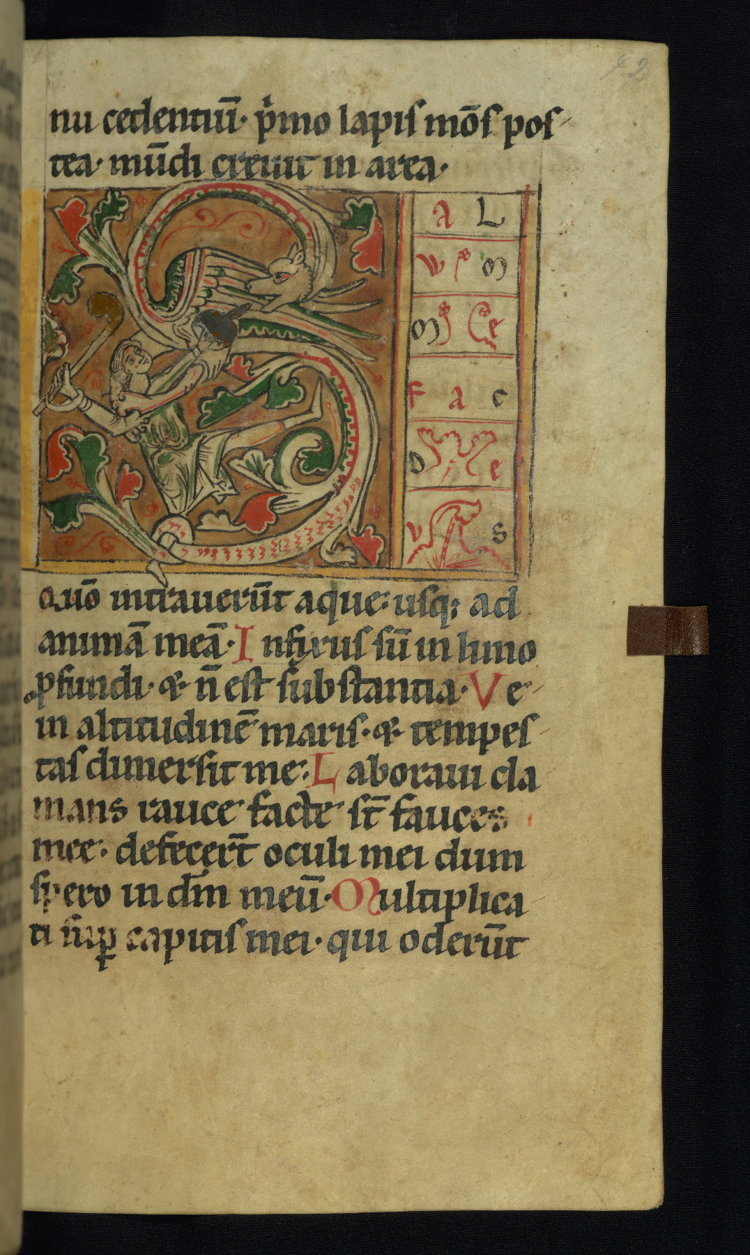 - Title: Initial "S" with man battling dragon (Salvum me)