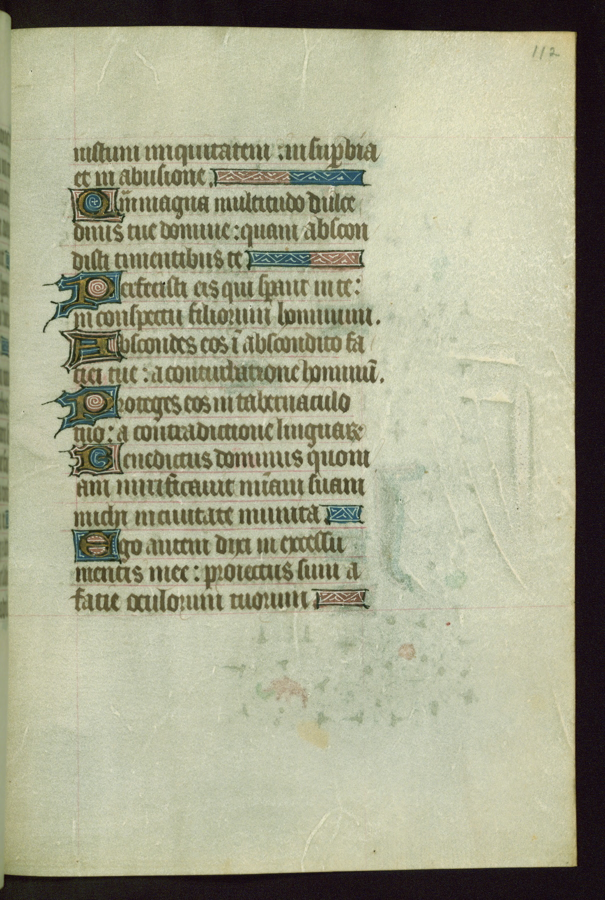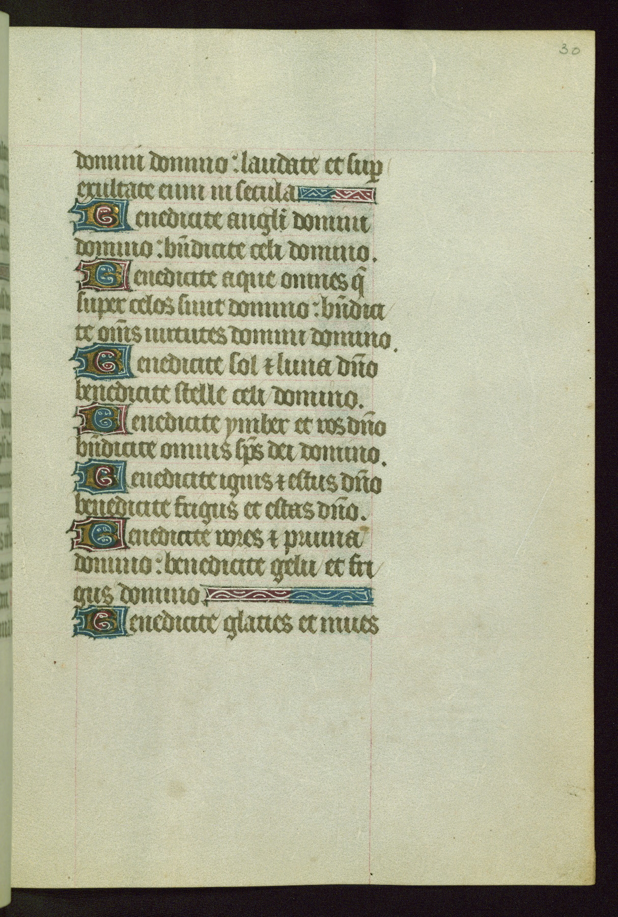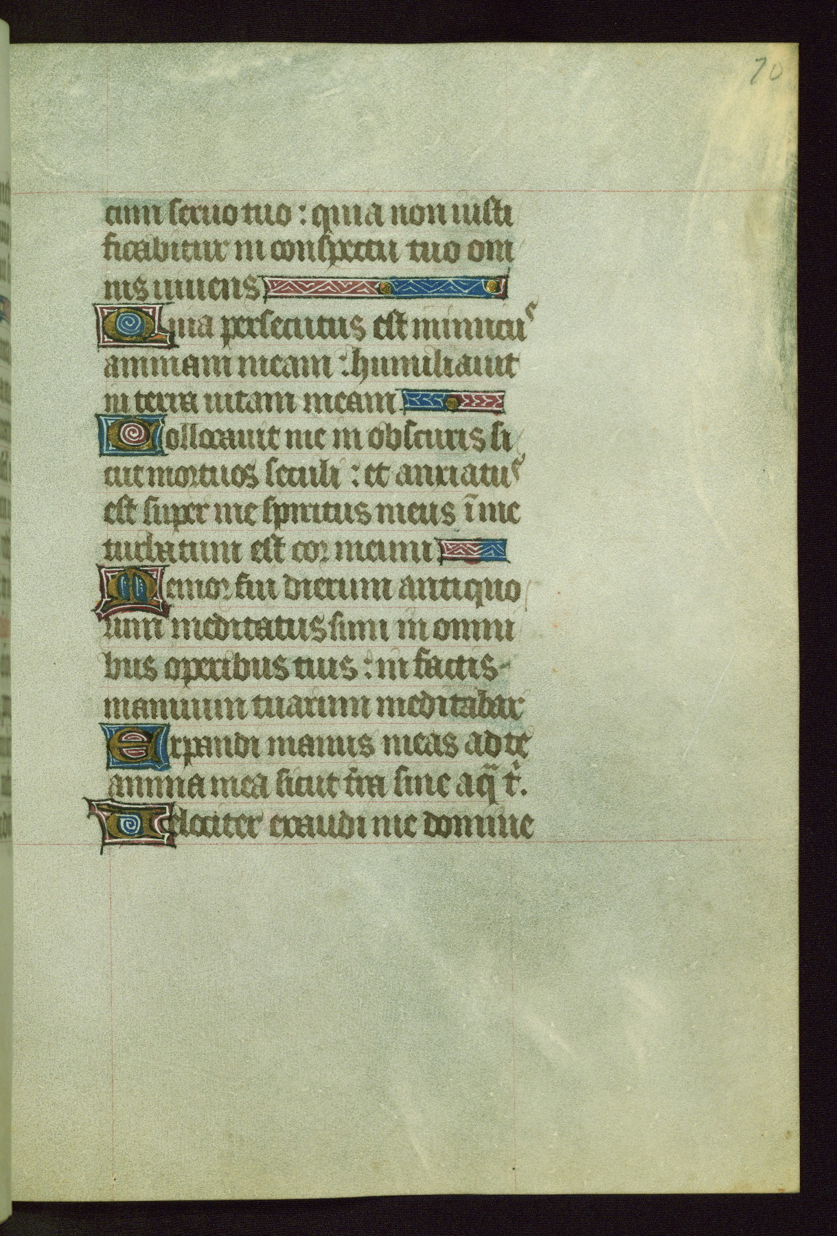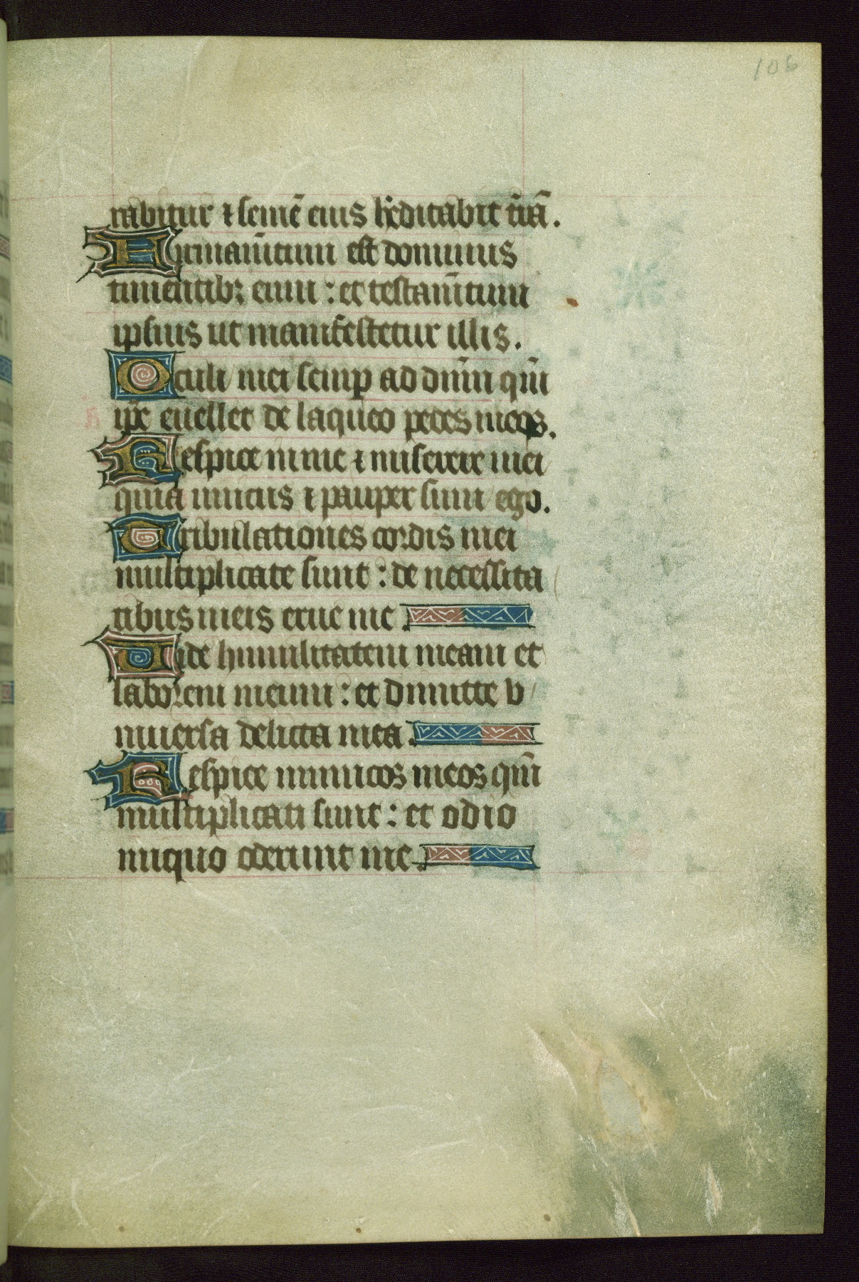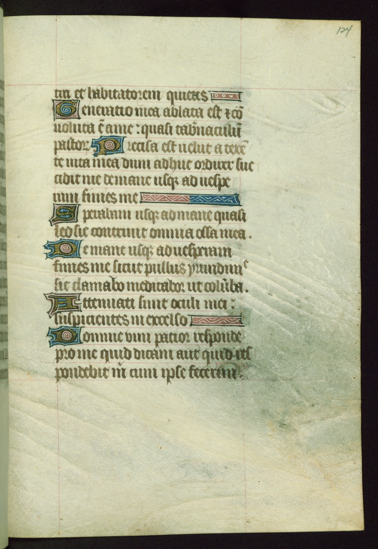 This Book of Hours was created ca. 1435-1440 in Amiens by artists from the circle of the Master of W.281 (Randall, cat. 112) for a female patron depicted on fol. 135r. The manuscript contains fourteen miniatures and is localized to Amiens by the contents of the calendar and litany, which include many saints particular to that region. Quire 12 (fols. 82-89) is misbound with quire 13 (fols. 90-97), with Suffrages and the Seven Verses of St. Bernard (fols. 82-89) intended to be after the Office of the Dead (fols. 90-128), as evinced by the location of the rubric for the Office of the Dead on fol. 81v.