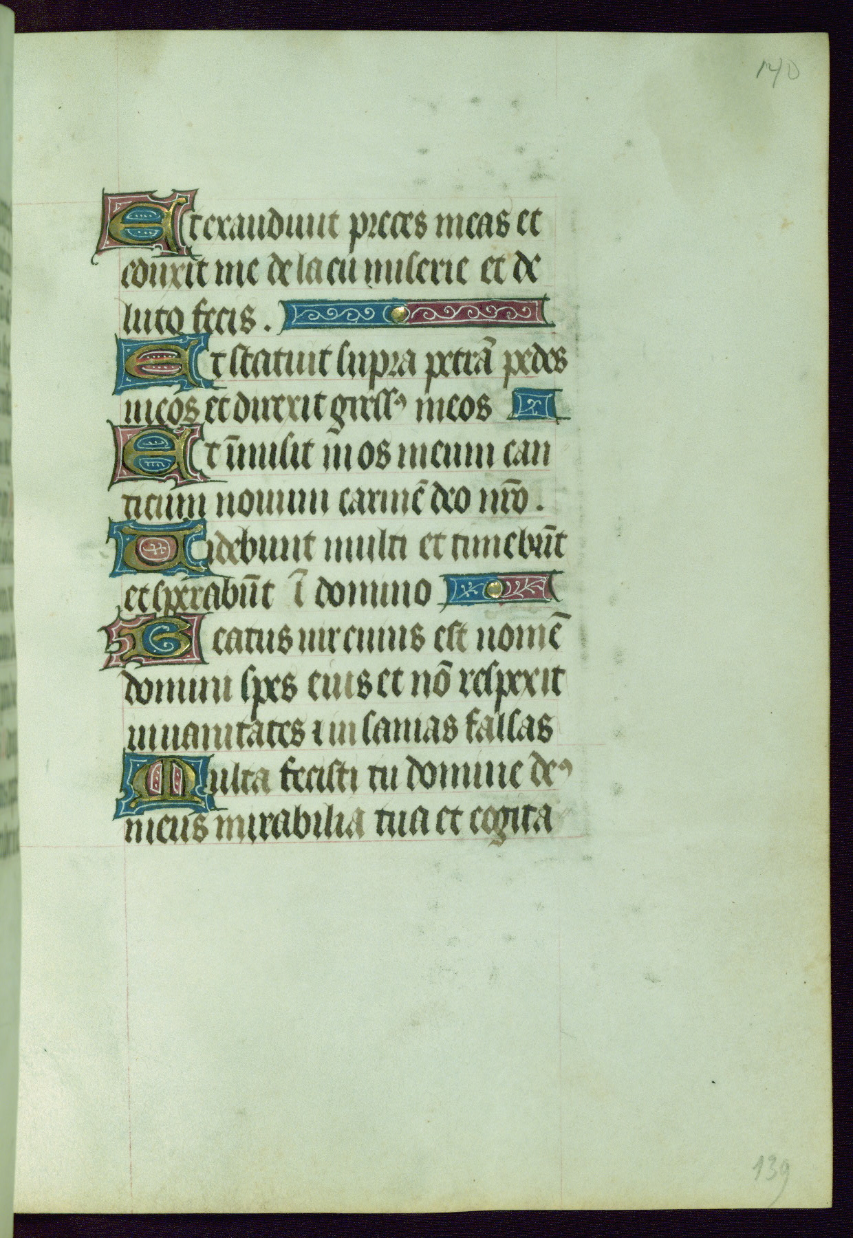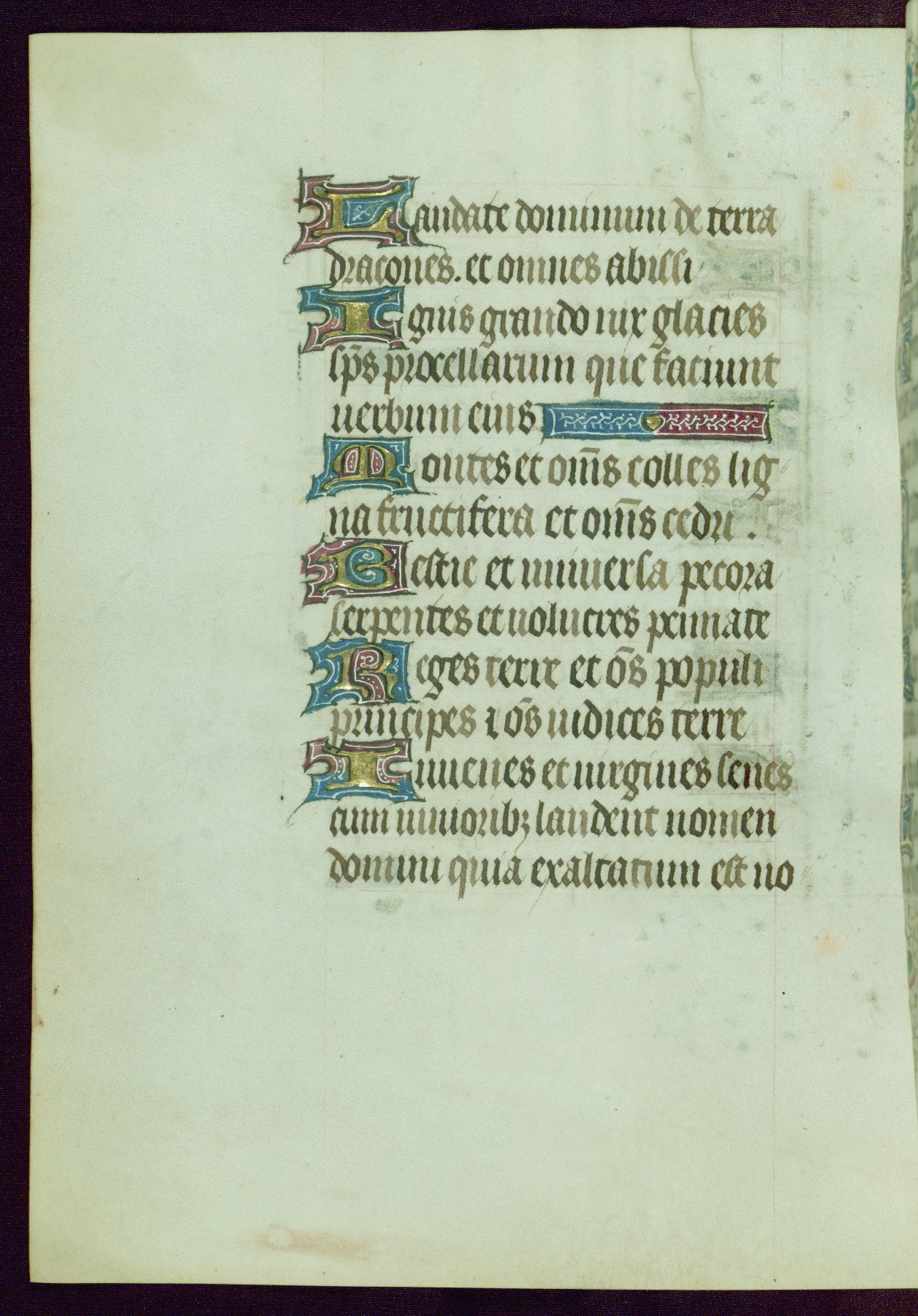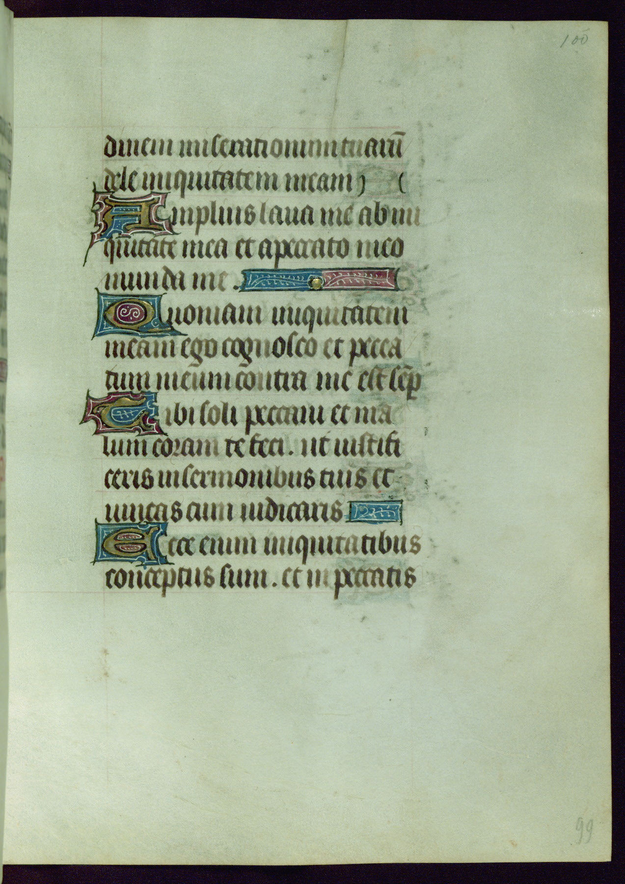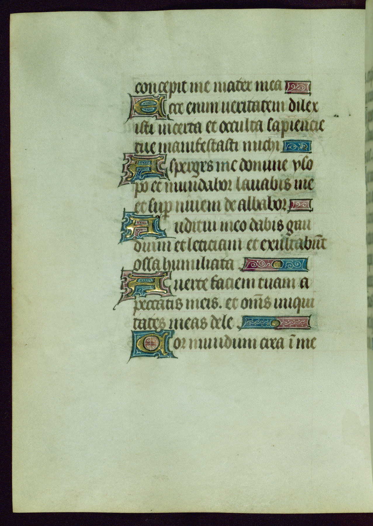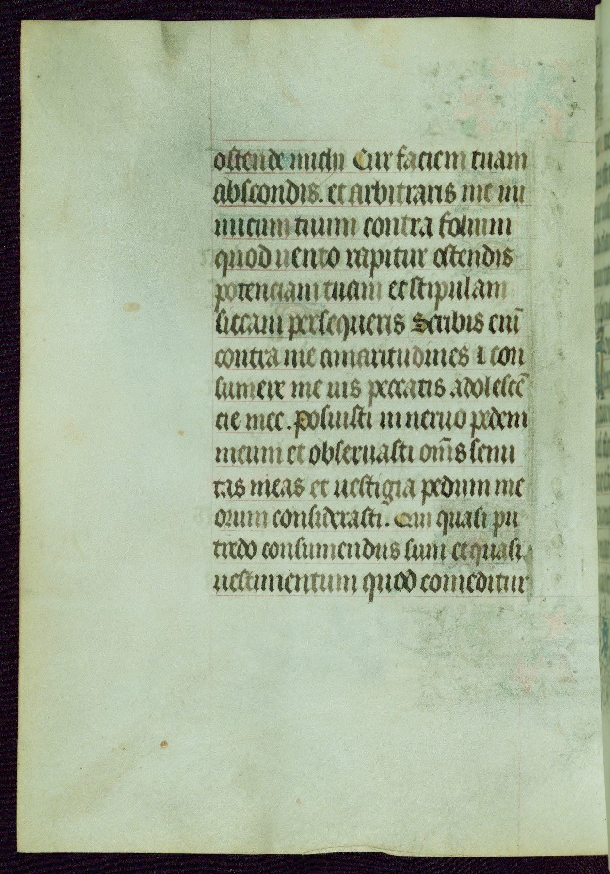 This Book of Hours was completed ca. 1440-50, and likely destined for Tournai. The decoration of this manuscript includes two full-page miniatures, eleven extant smaller miniatures, one historiated initial, and one drollery. The illumination is in the style of the Master of Guillebert de Mets, although the work would have been completed during the closing stage of Mets' career. The Master of Guillebert de Mets' principal disciple was the Master of the Ghent Privileges, with whom he may have been in collaboration, as indicated by numerous comparisons (see Dogaer 1987, 33-37). This book begins with a full-page miniature depicting the Mass of St. Gregory, a folio that appears to have been relocated from its original placement just before fol. 180 to its current location as fol. 2. It should be noted that fol. 2 has experienced extensive paint loss and has since been retouched, although it is unknown by whom or at what time. The unpretentious illumination program could have been the reason for this switch, perhaps to make the manuscript more appealing for a potential buyer.