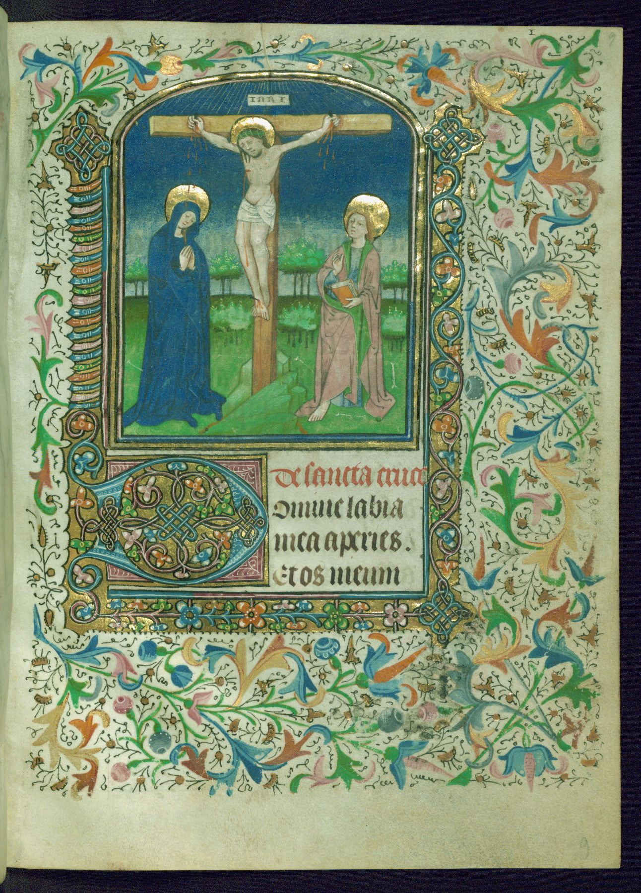- Decoration note: One full-page miniature on fol. 2v; Full-page miniature was originally bound in the Devotional Sequence, immediately preceding Prayer to the Trinity, of the three modern foliation programs, confirmed transfer of single folio from before fol. 180 to front of volume: legibility of "359" is present on fol. 2 and "362" on fol. 182; folio likely moved by last binder to heighten visual appeal for potential purchaser
