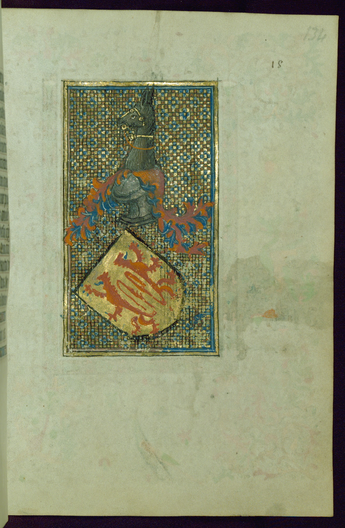 - Decoration note: One full-page coat of arms on fol. 134r; one full-page miniature on fol. 134v; large decorated illuminated initial with foliated borders on fol. 135r