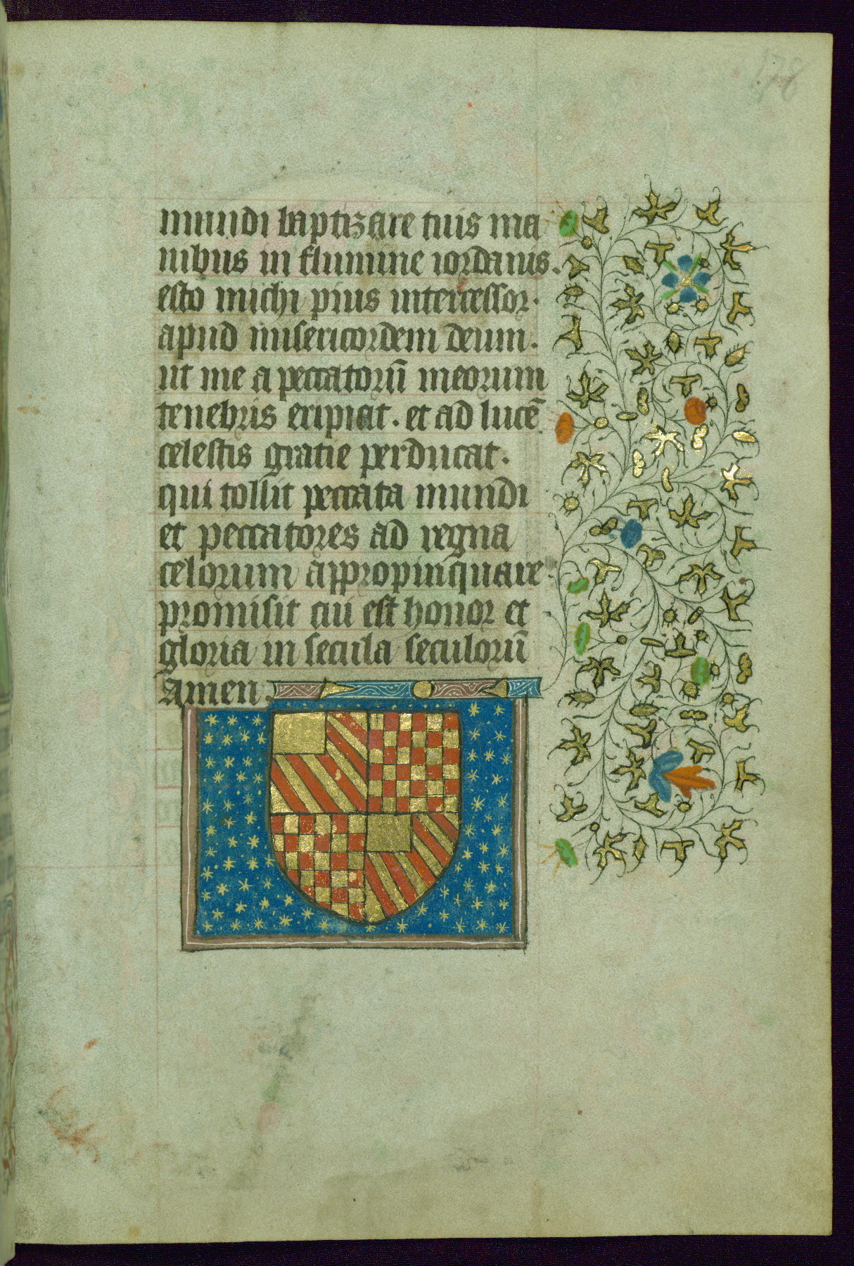 - Decoration note: Nine small miniatures with corresponding decorated initials on fols. 13v, 14r, 38r, 49r, 59v, 64r, 68v, 73r, and 80v; coat of arms on fol. 85v