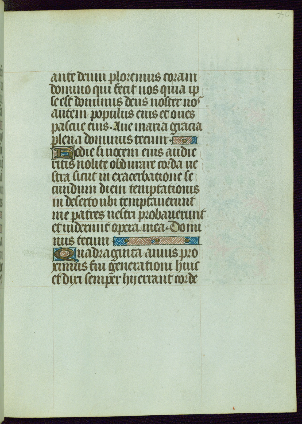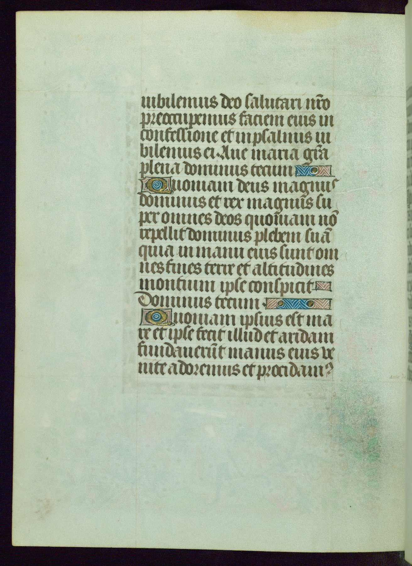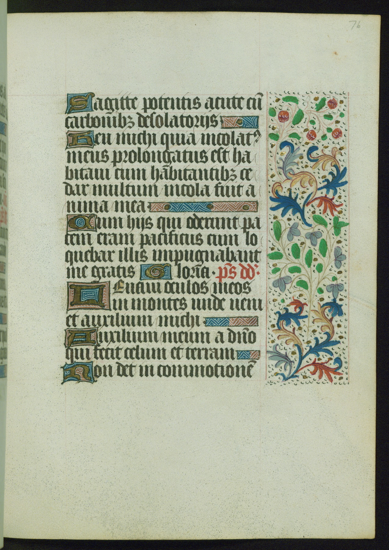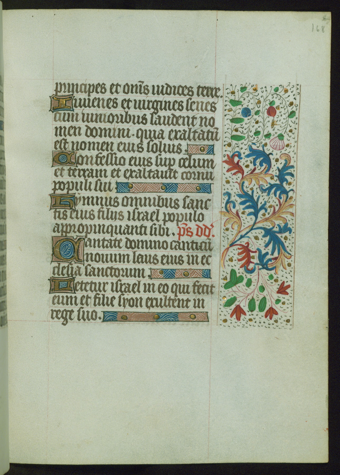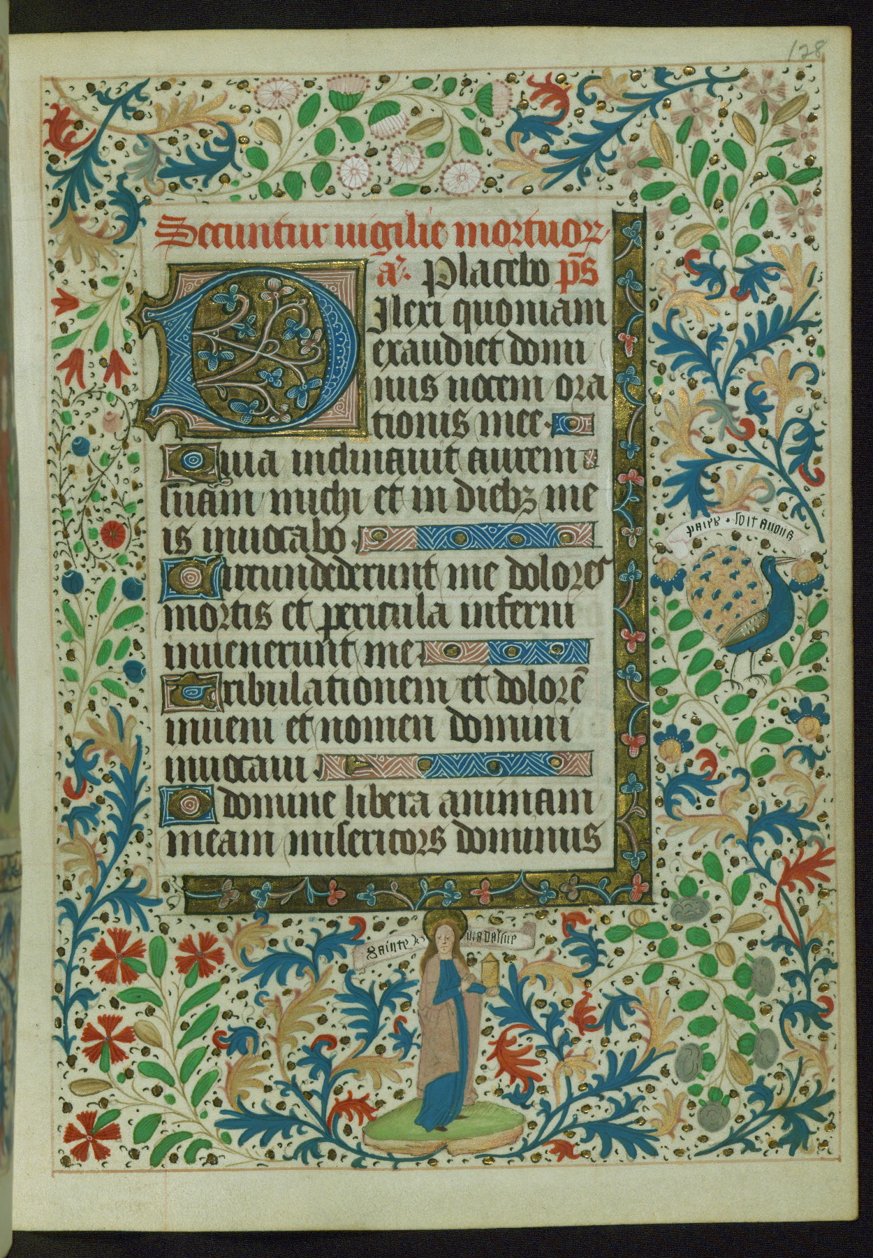 This Book of Hours from ca. 1480 was possibly made in Tournai. The manuscript passed through the hands of several women, and while the first owner was anonymous, the text and imagery reveals she had Franciscan sympathies. An eighteenth-century inscription at the front of the manuscript suggests it was presented to Philippa of Guelders (ca. 1480-1562) by Pope Leo X upon her ordination at the Franciscan convent of Sainte-Clare in Pont-a-Mousson in 1520. The quality of the miniatures suggests that the artist was a novice, yet his expressive individual style and unusual marginalia, in which figures and animals hold scrolls inscribed with French phrases, provide the manuscript with considerable charm.