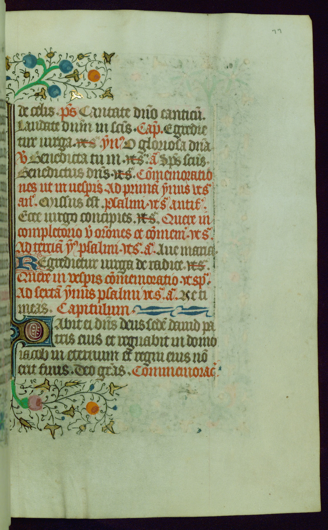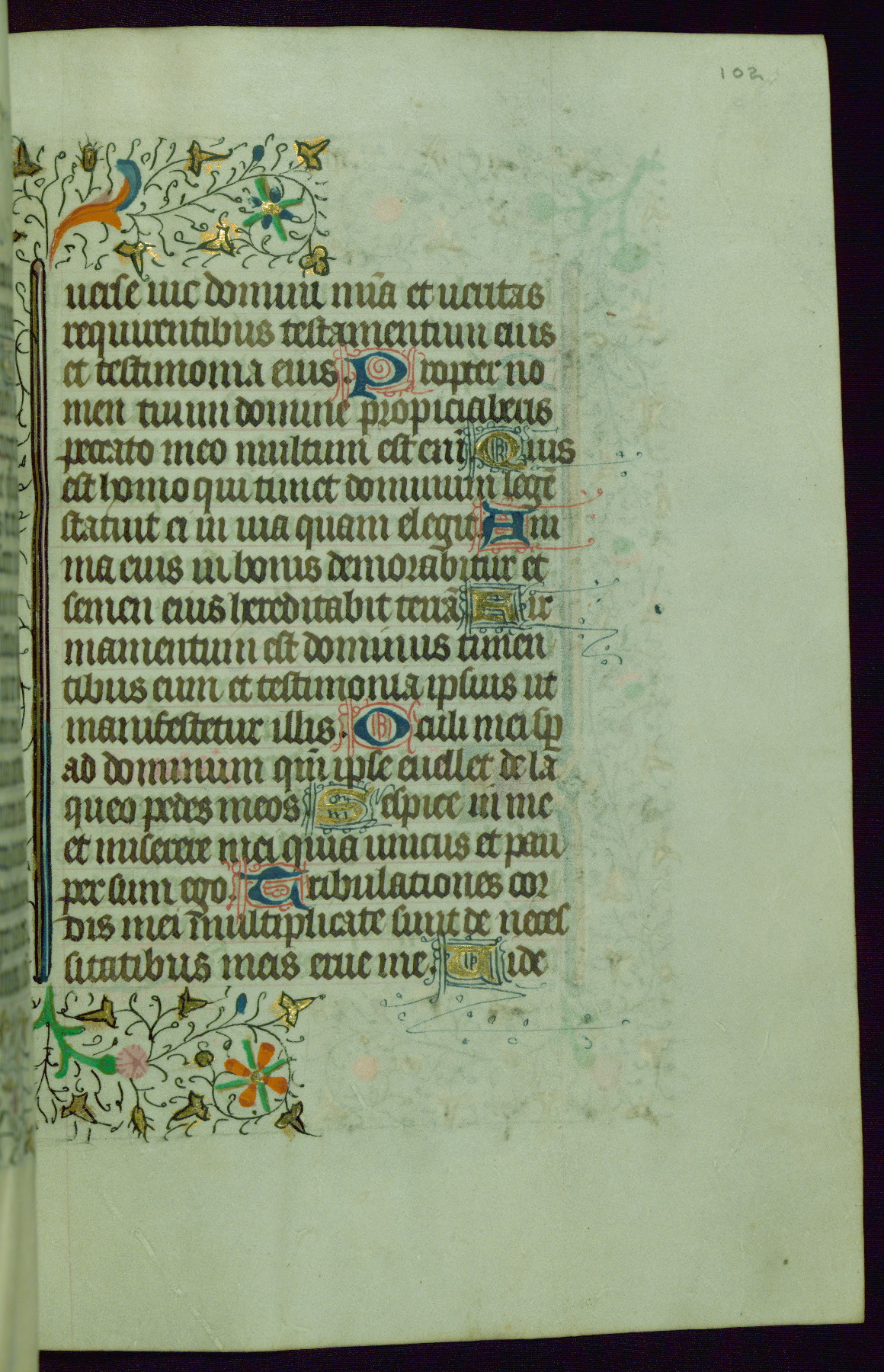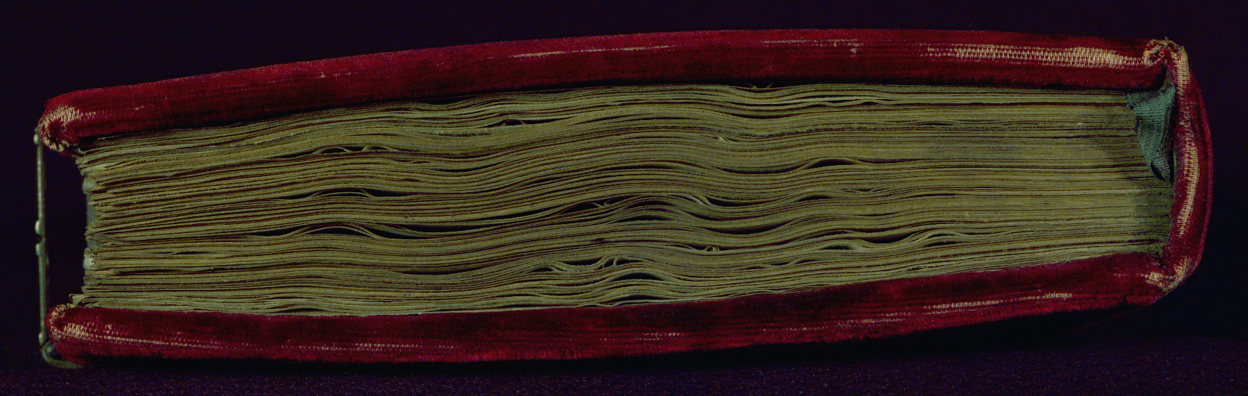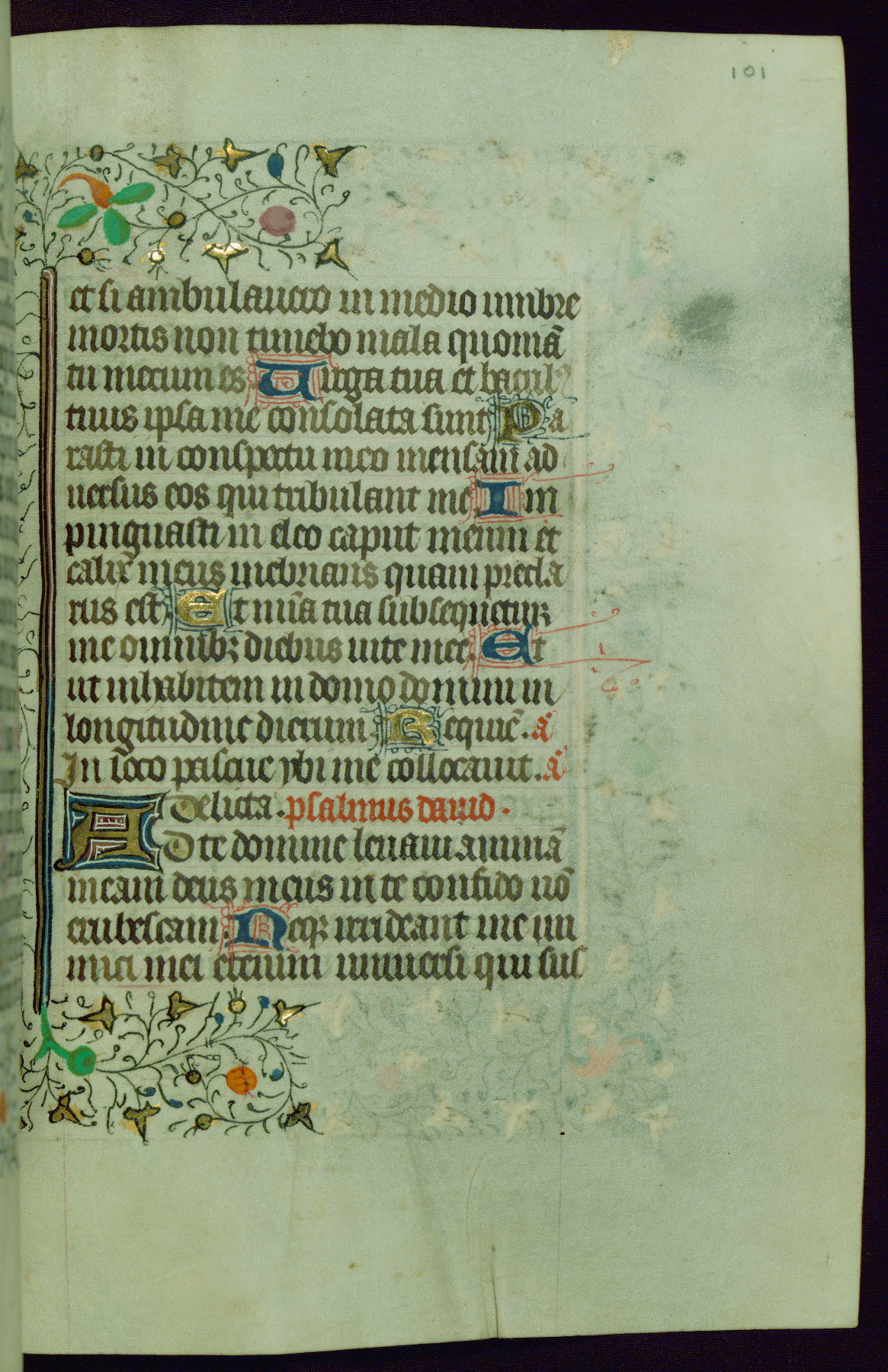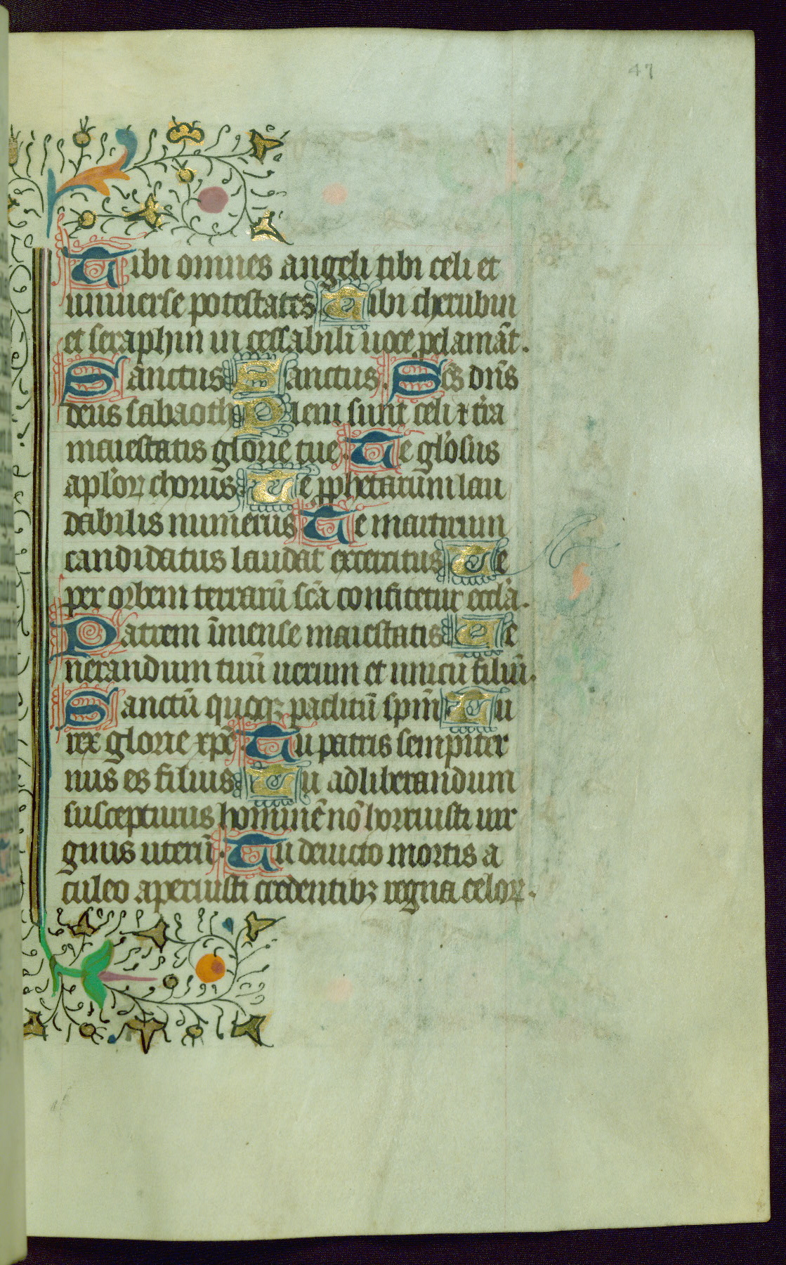 Completed ca. 1440-50 and illuminated in the style of the Masters of the Gold Scrolls, this Book of Hours preserves much information about its provenance. The first owner was possibly Barbe de Feuru, whose signature is found on the front pastedown. The book contains the ex libris of Jean of Ricaumez and his wife, Catherine of Barbenchon; their French inscription on the back pastedown promises good wine to the finder of the book if lost. The book was inherited by their son, Christophe of Ricaumez, who likely added several texts illustrated by an Rouennais artist, ca. 1500. Record of the ownership is not evinced in the book again until 1669 when the ex libris of the Count of Hallennes (Allennes family of Tournai?) was added. Alexandre-Constantin-Joseph of Nassau's (1738-1814) armorial shield appears twice, engraved (front pastedown) and painted (front flyleaf i, v).