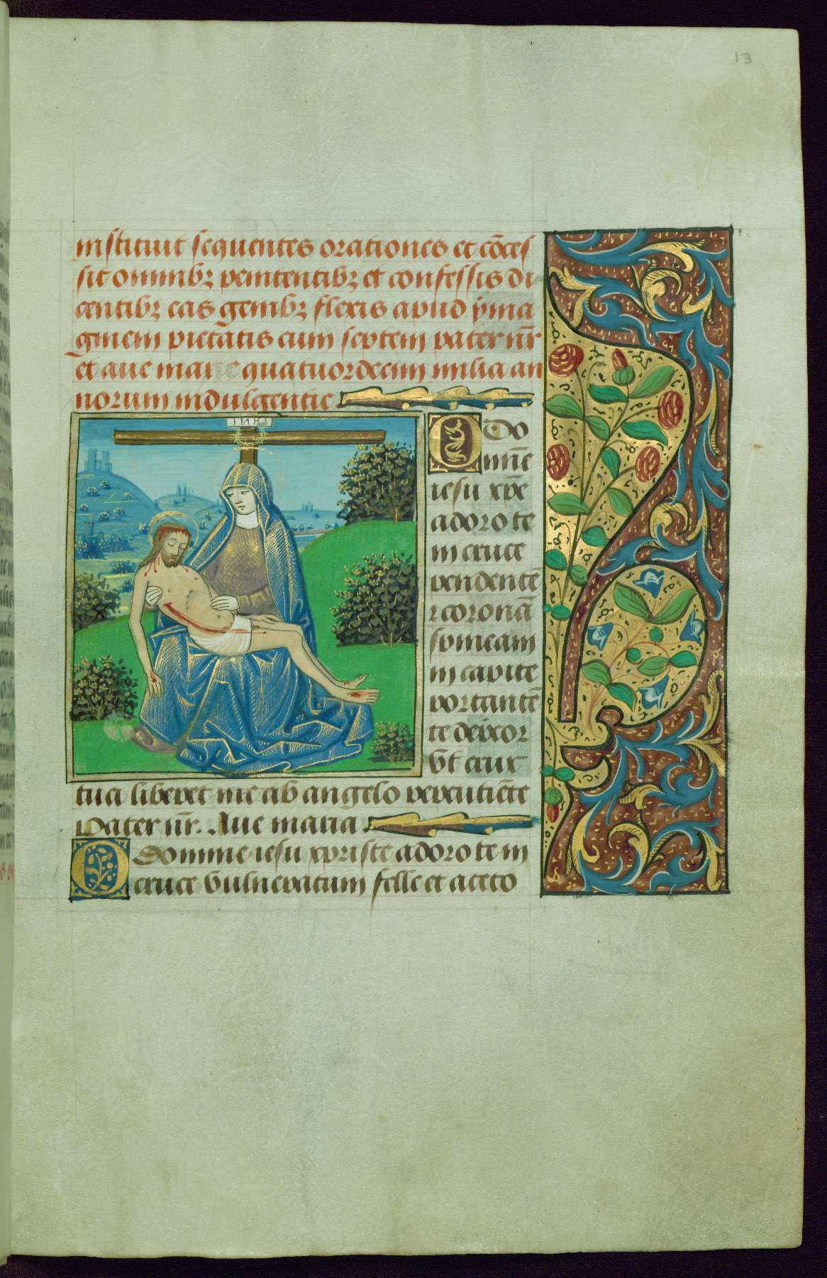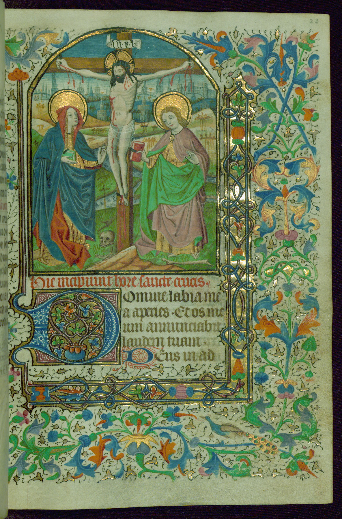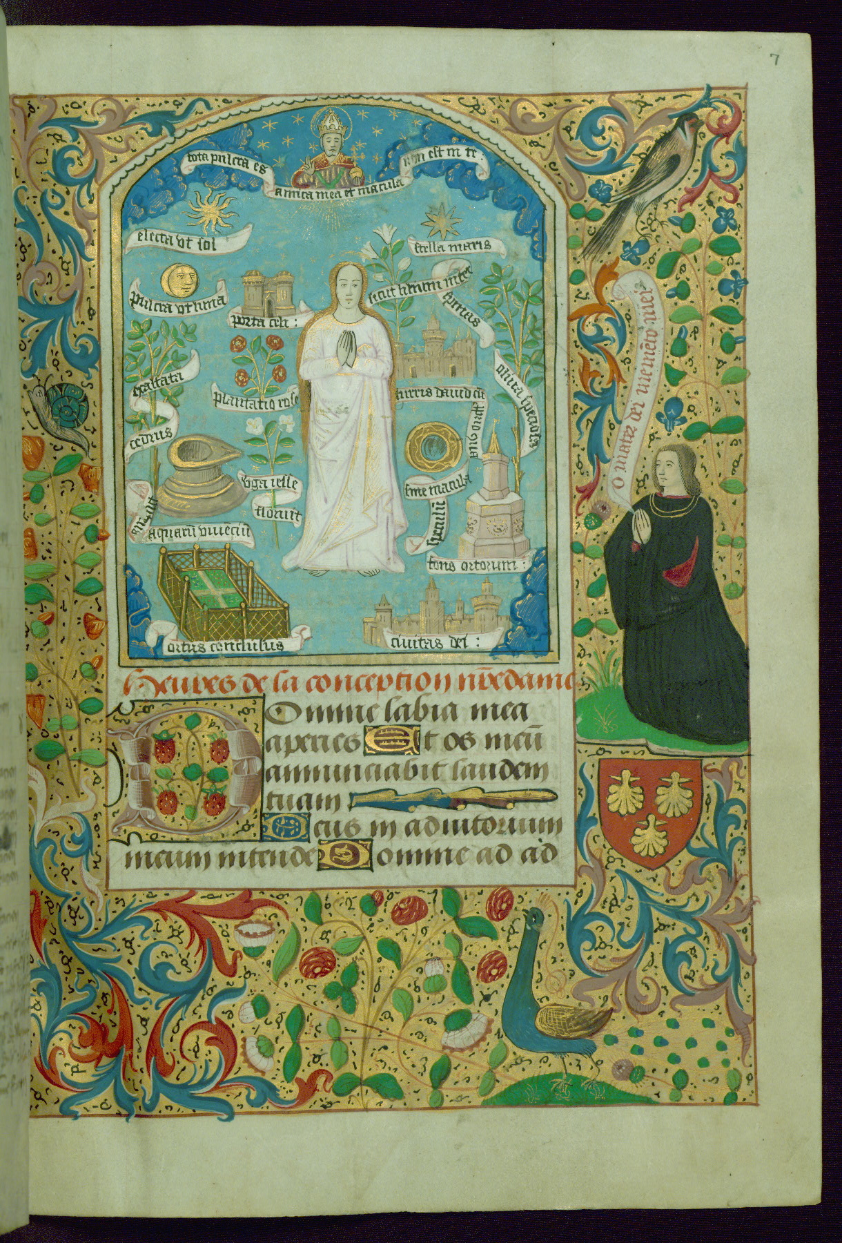 - Contents: Three prayers to the Virgin, prayer to the Virgin and Christ in Latin and French, several hands, first prayer followed by Seven Joys of the Virgin; fols. 23r-126v: additions by owners Jean of Ricaumez (d. 1504) and his son Christophe