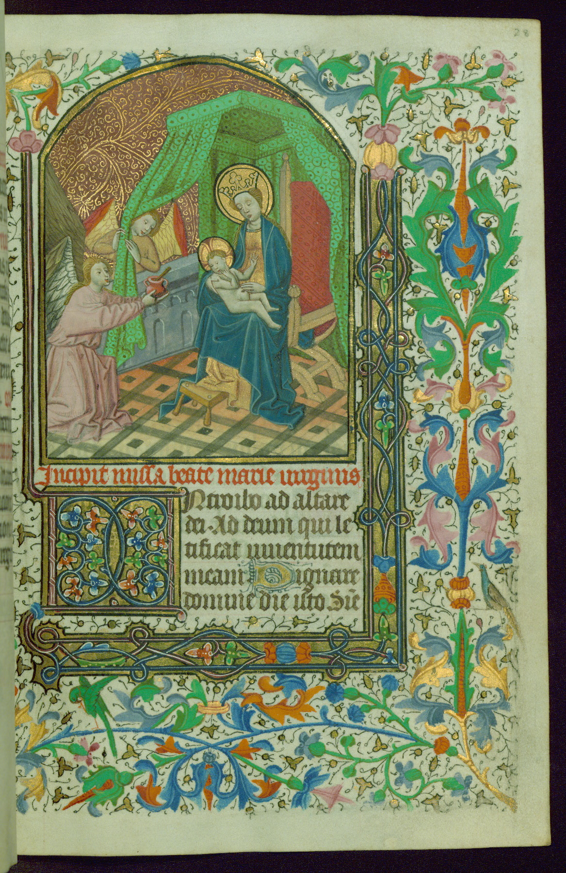 - Contents: Fols. 28r-35v: Mass of the Virgin; fols. 30r-35r: Gospel sequences: John 1:1-14, Luke 1:26-38, Matthew 2:1-12, Mark 16:14-20