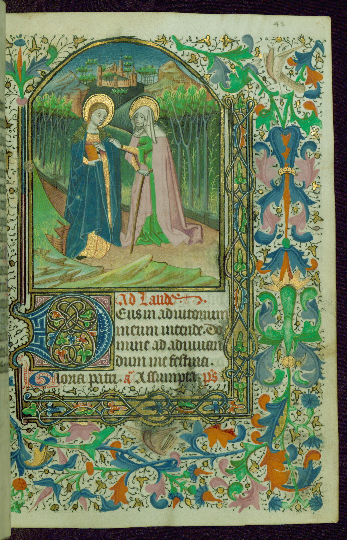 - Text note: Fol. 48r: headings at canonical hours beginning "Ad laudes"