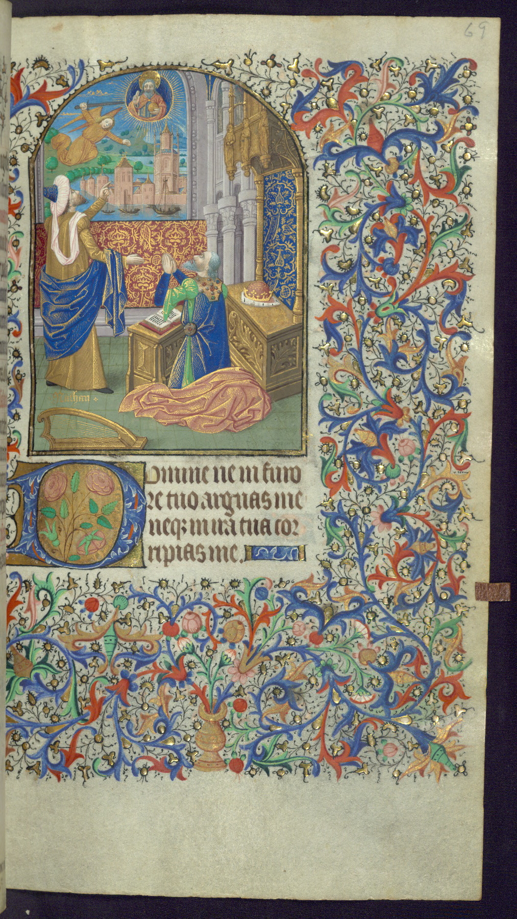Owens, Margareth Boyer. "The Image of King David in Prayer in Fifteenth-Century Books of Hours." Imago Musicae, International Yearbook of Musical Iconography 6 (1989): 23-38; p. 28, fig. 3