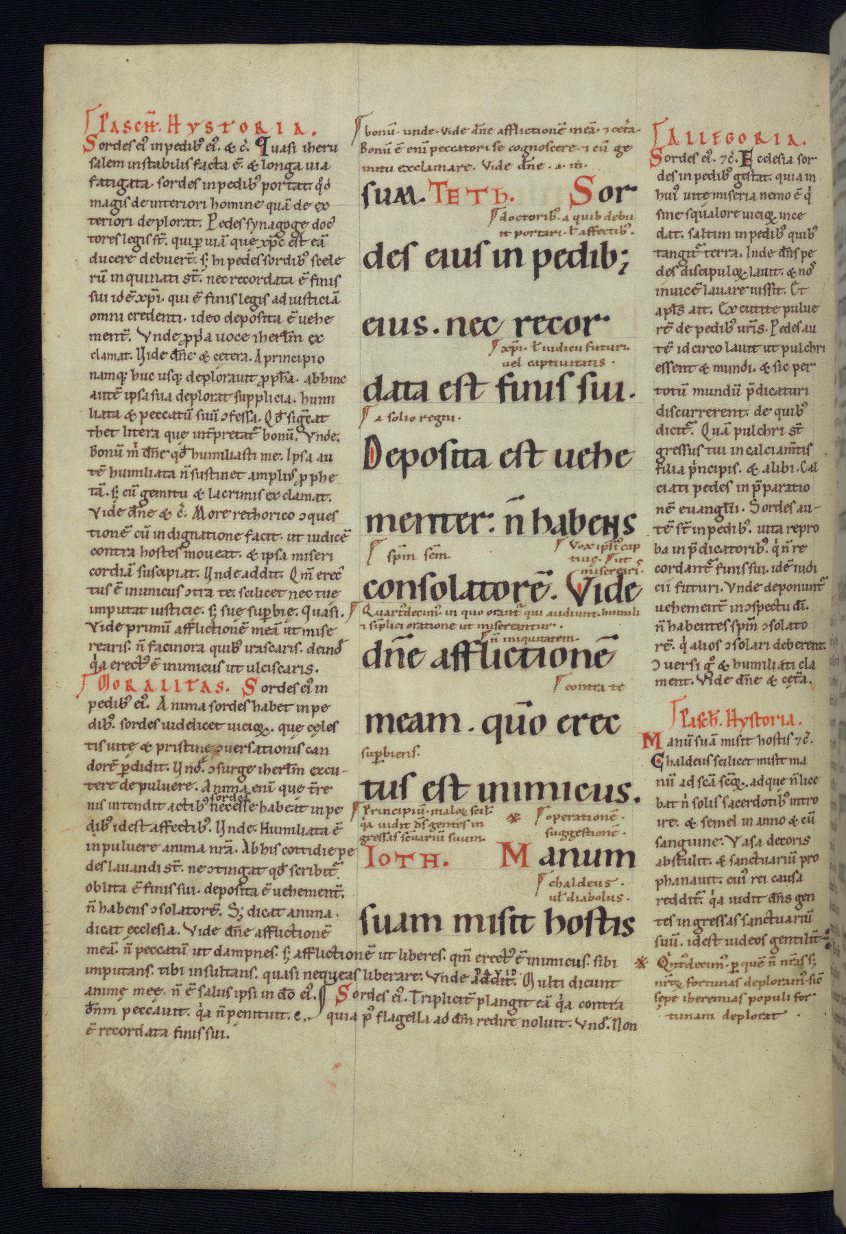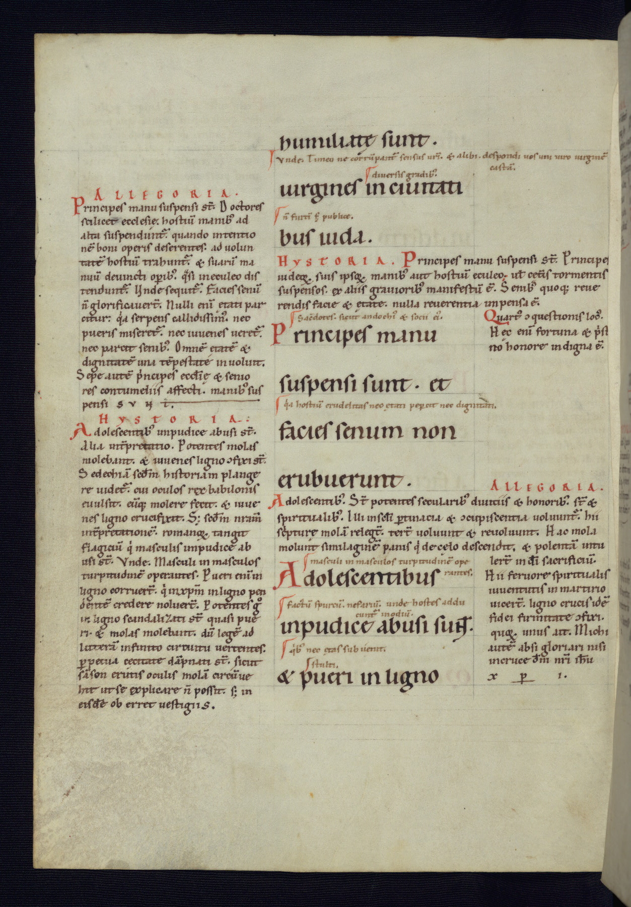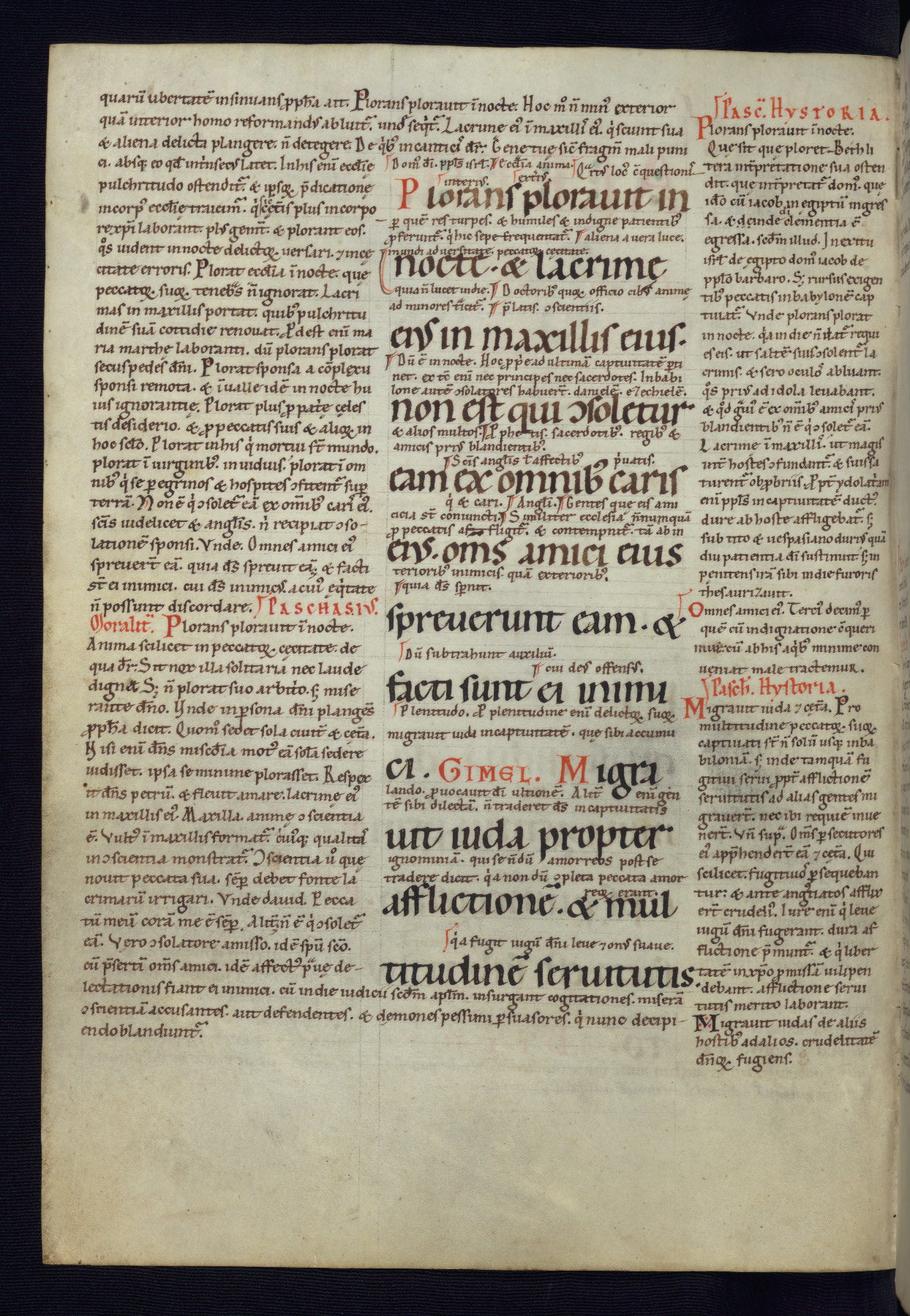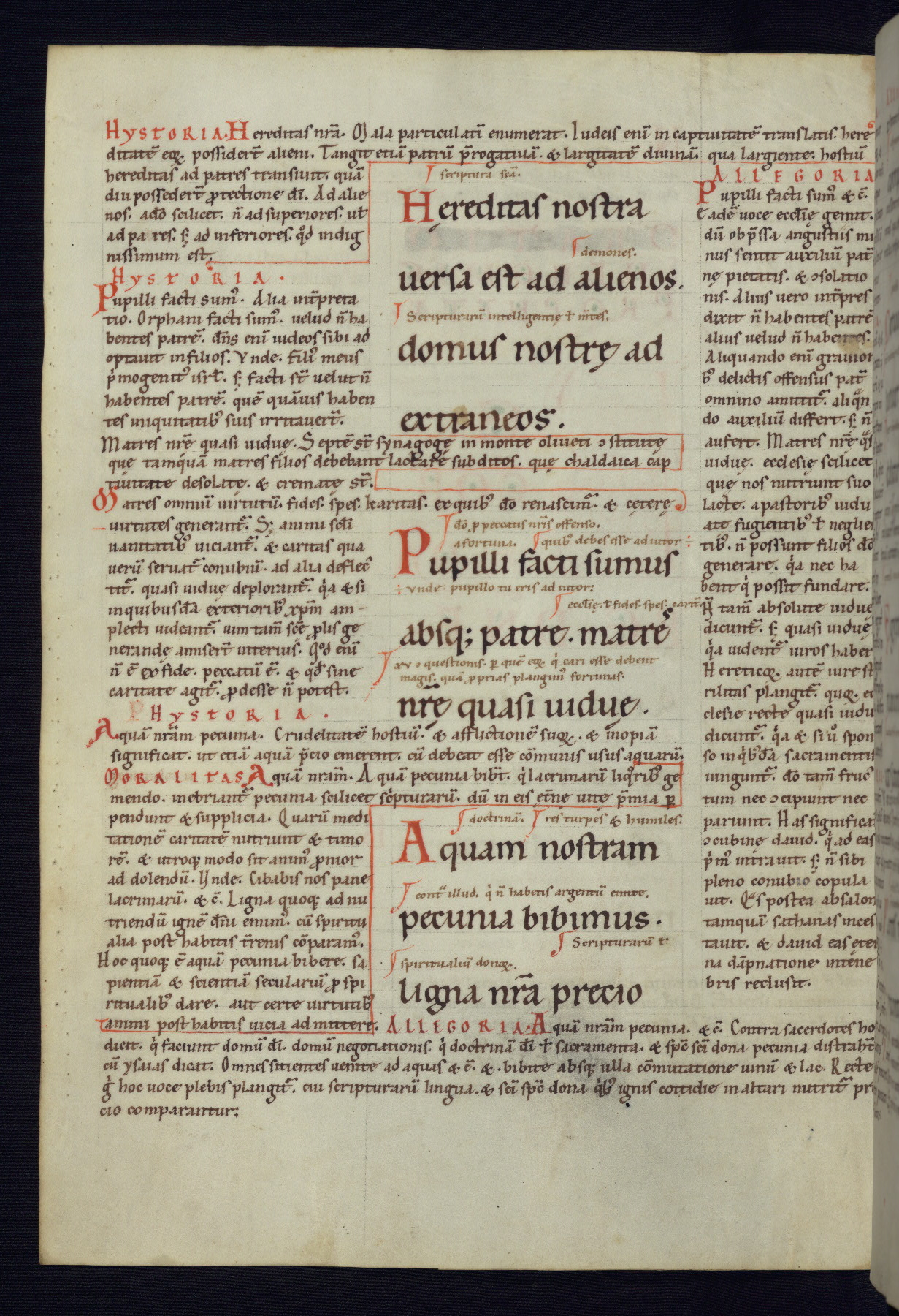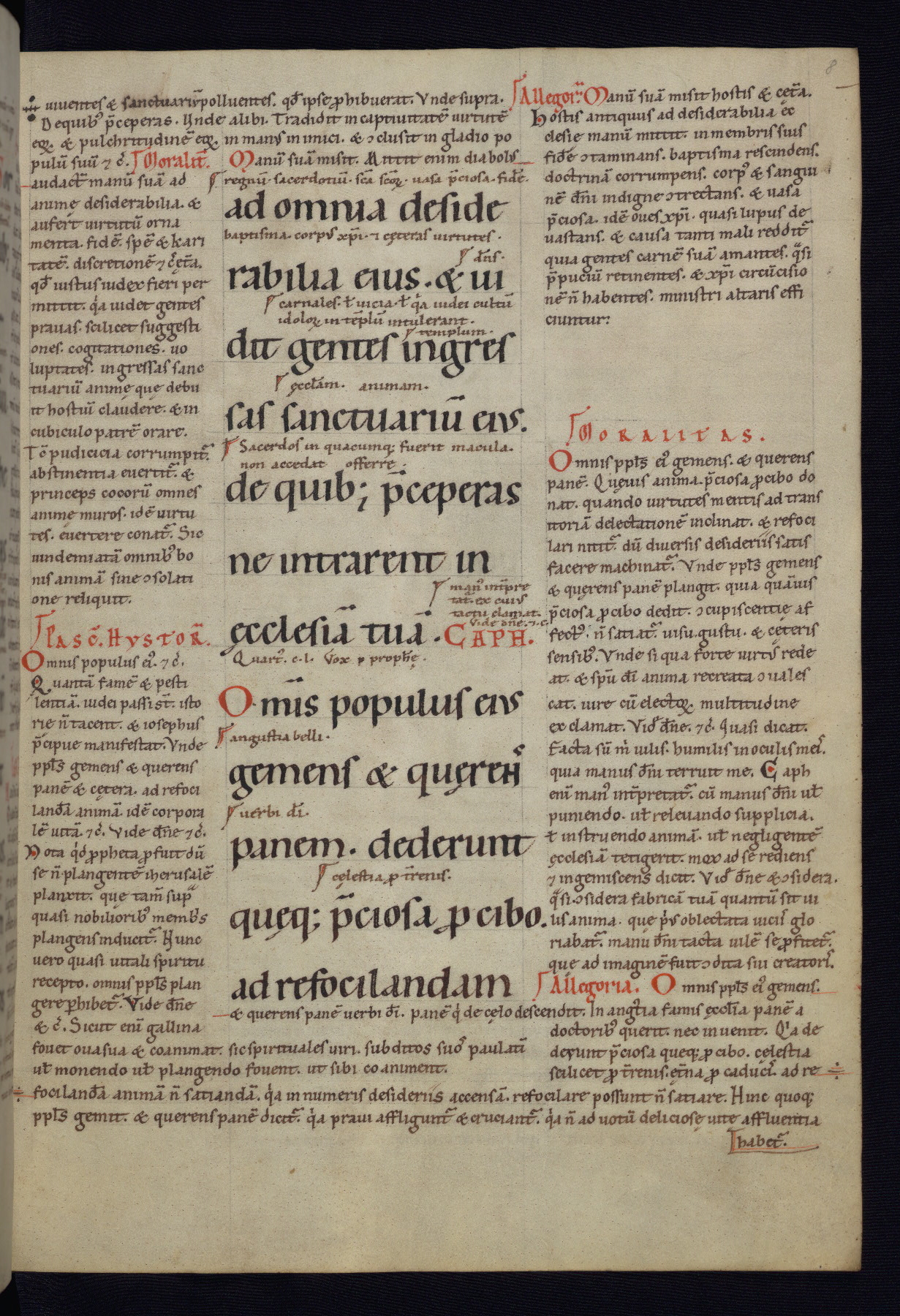 This illustrated copy of The lamentations of Jeremiah with the gloss (or interpretation) of Gilbert of Auxerre was written in Austria in the second half of the twelfth century and comes from the monastery of Seitenstetten. Gilbert died in 1134, and the manuscript is an early and important witness to his text. The gloss is written in a small script and is both interlinear and marginal. This layout is typical of glossed books of the Bible from the twelfth century. The illustrations of the sack of Jerusalem and the return to Babylon give valuable information on twelfth-century armor. The manuscript is in its original binding.