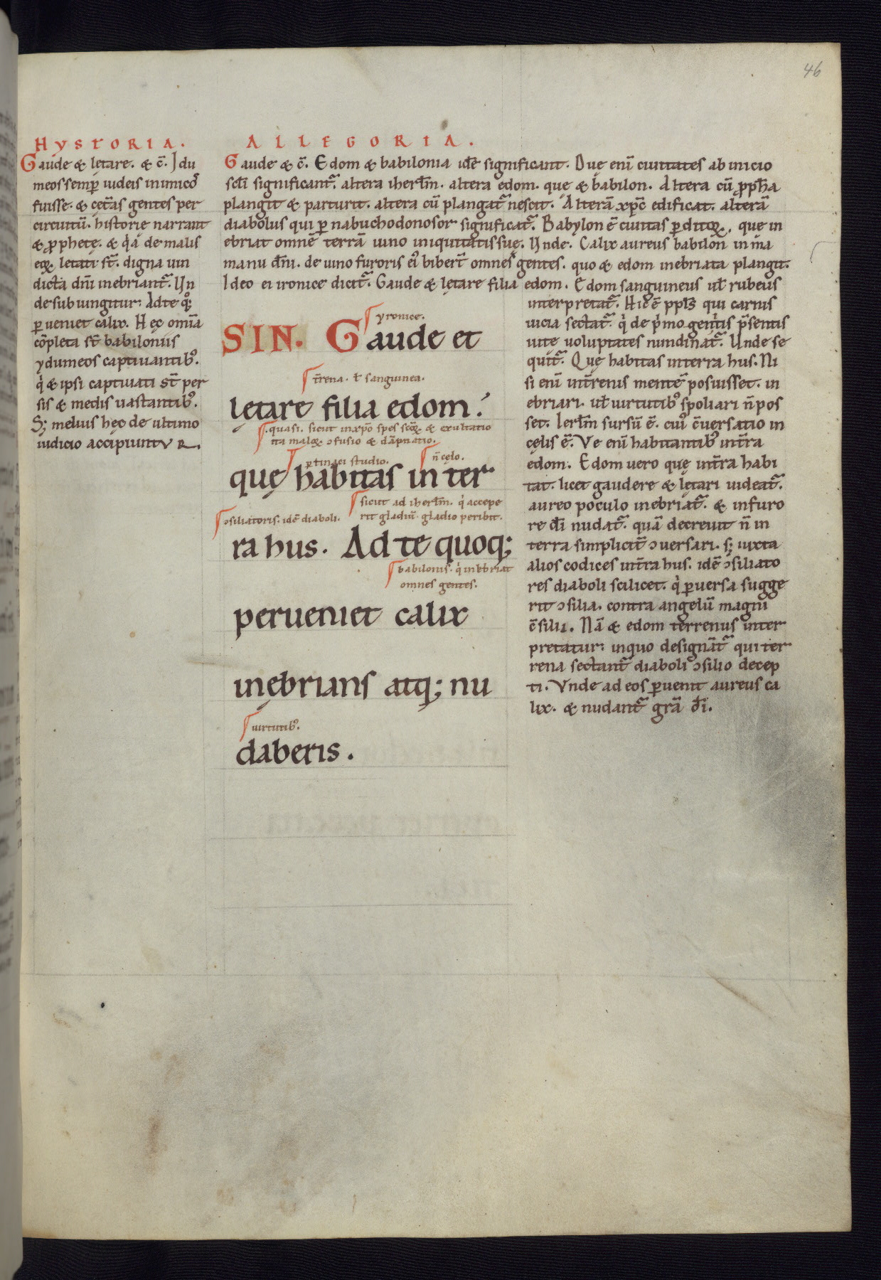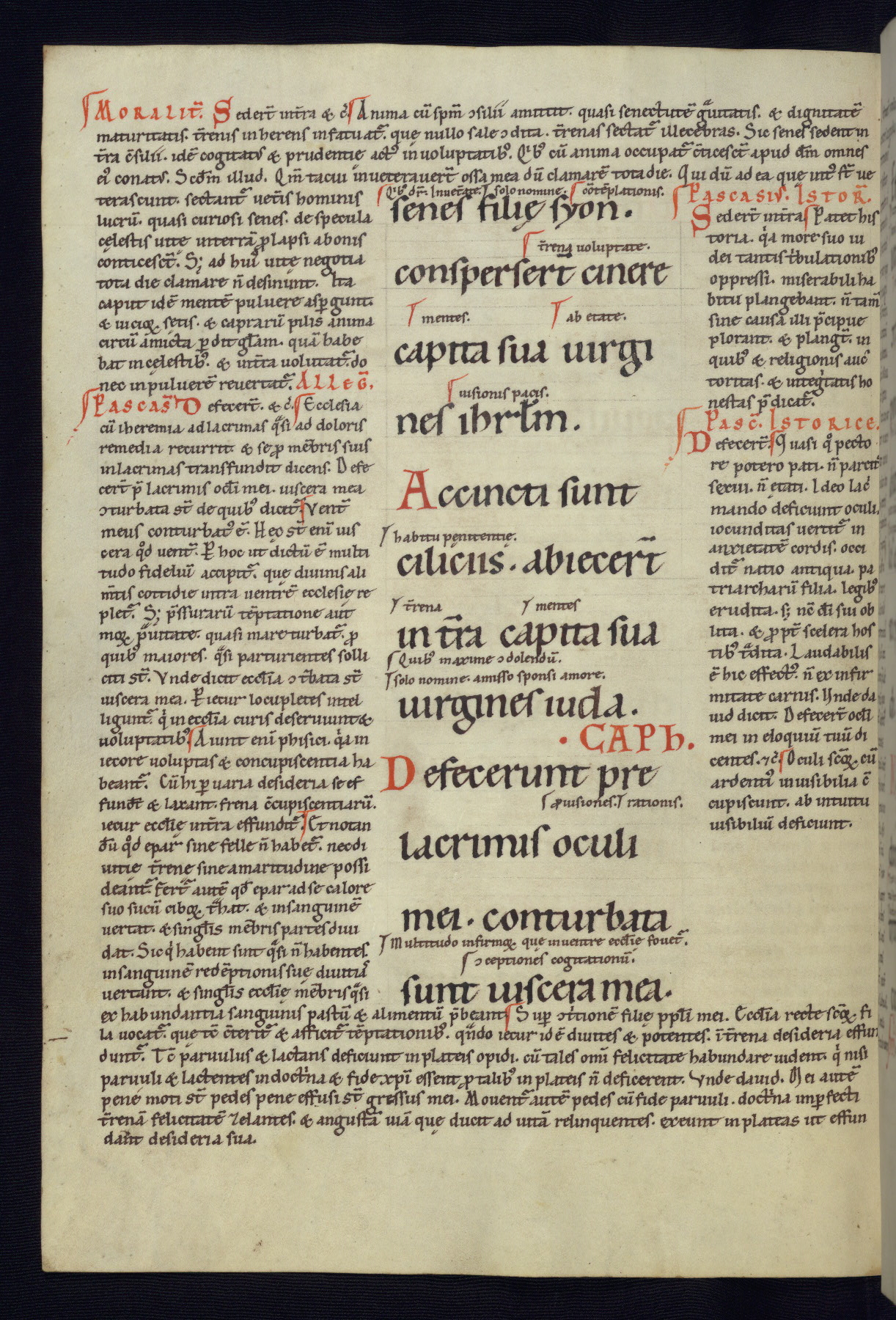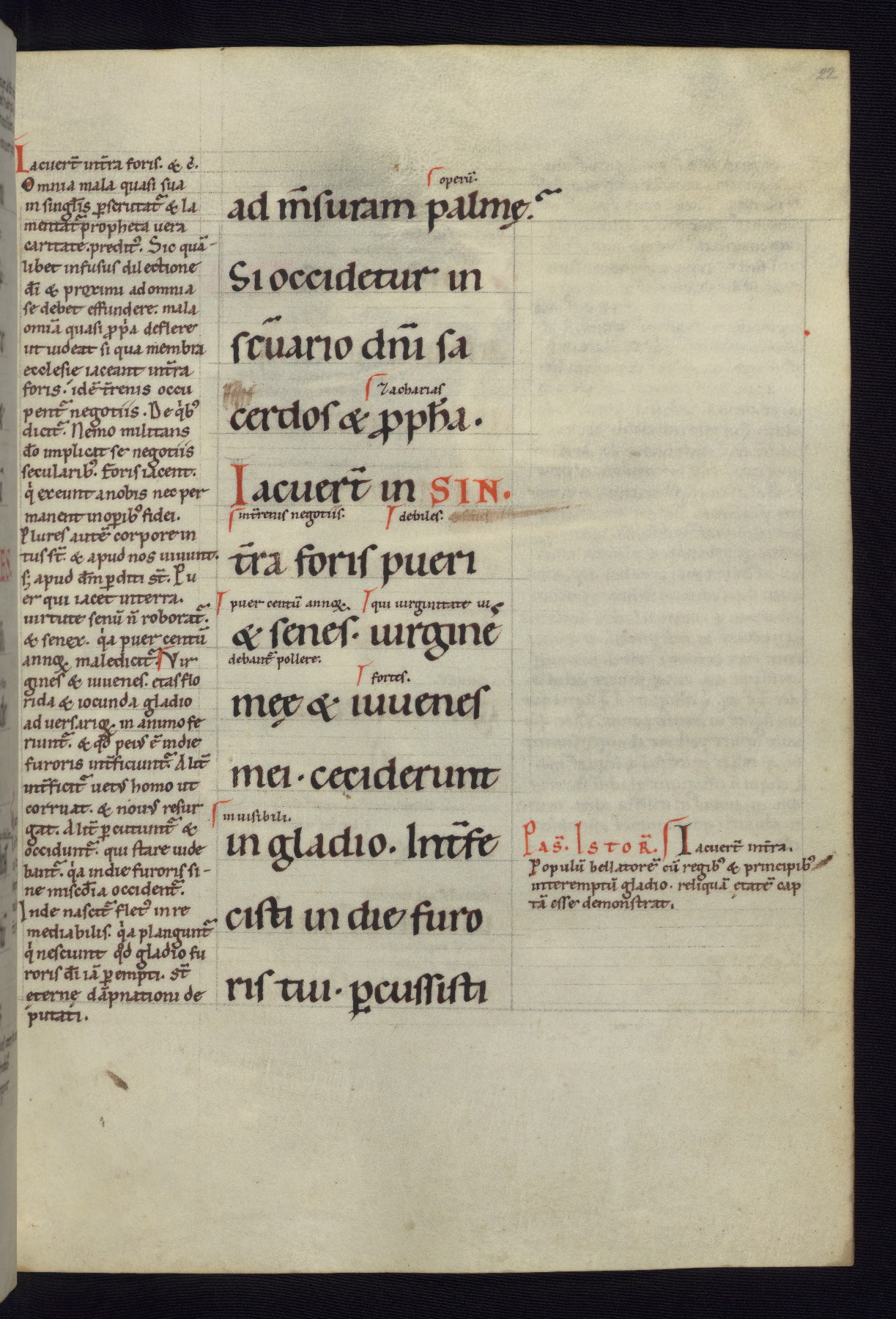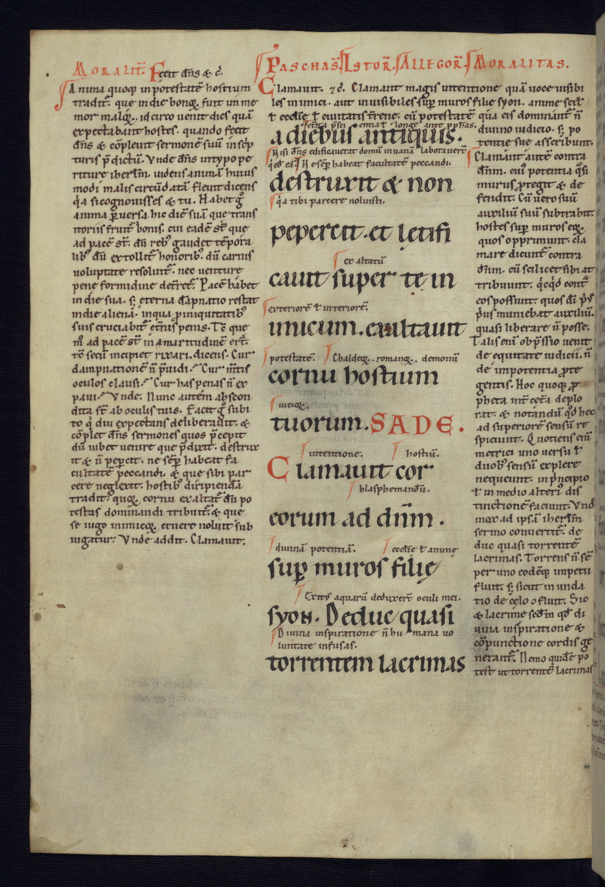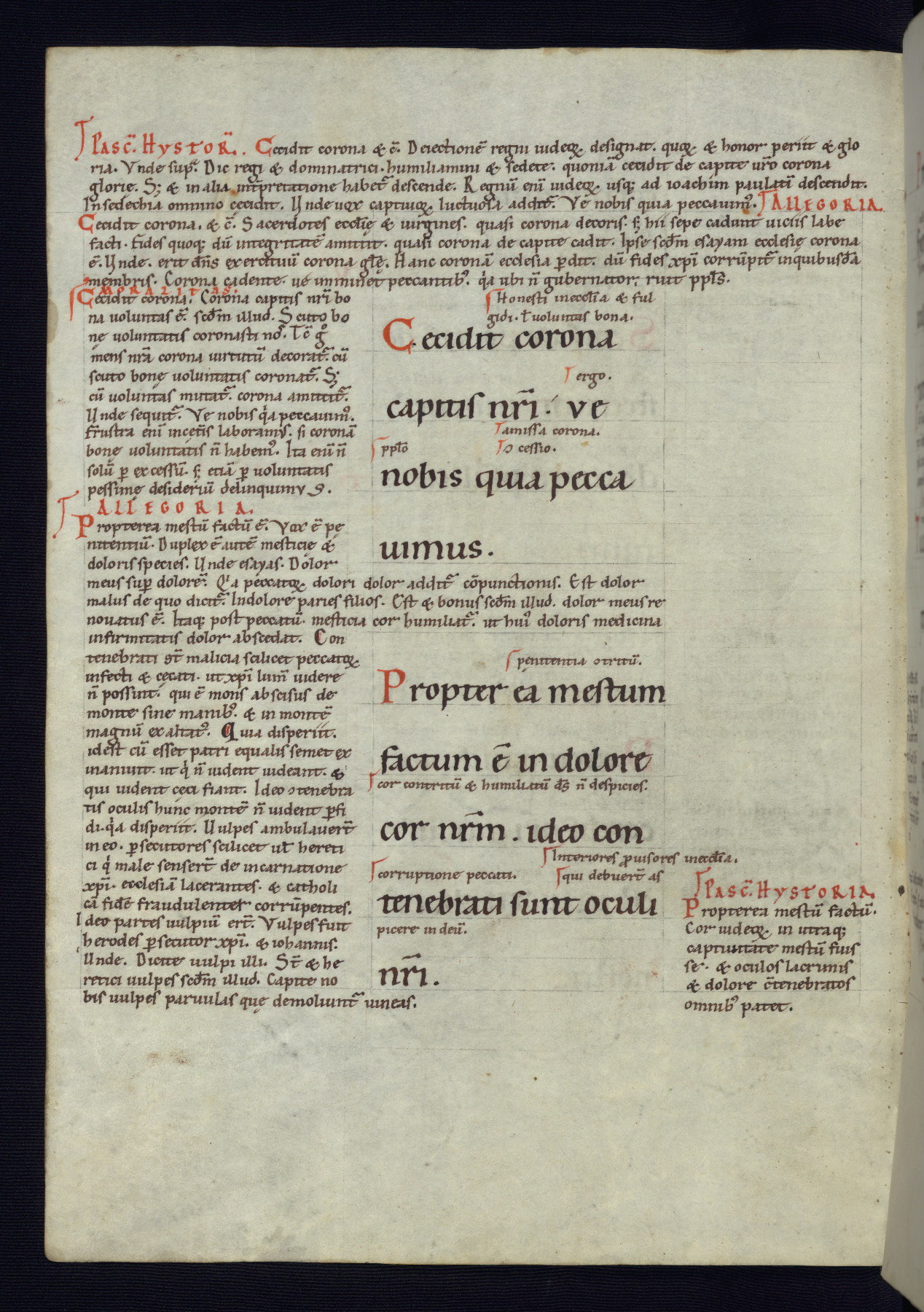 This illustrated copy of The lamentations of Jeremiah with the gloss (or interpretation) of Gilbert of Auxerre was written in Austria in the second half of the twelfth century and comes from the monastery of Seitenstetten. Gilbert died in 1134, and the manuscript is an early and important witness to his text. The gloss is written in a small script and is both interlinear and marginal. This layout is typical of glossed books of the Bible from the twelfth century. The illustrations of the sack of Jerusalem and the return to Babylon give valuable information on twelfth-century armor. The manuscript is in its original binding.
