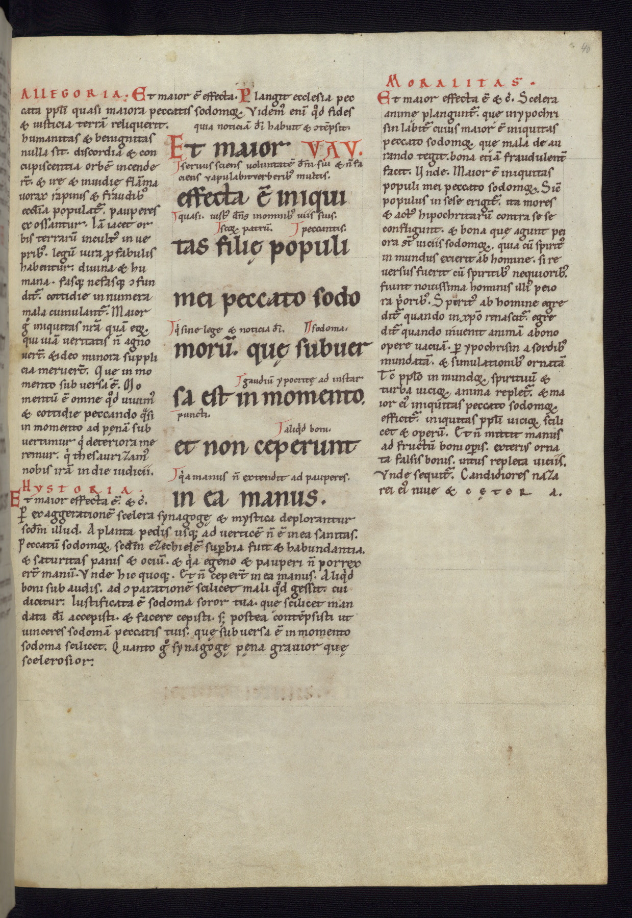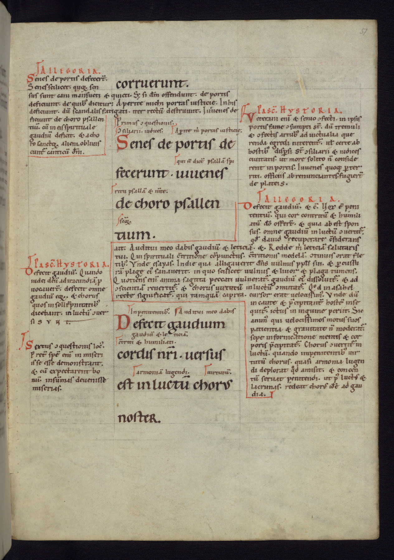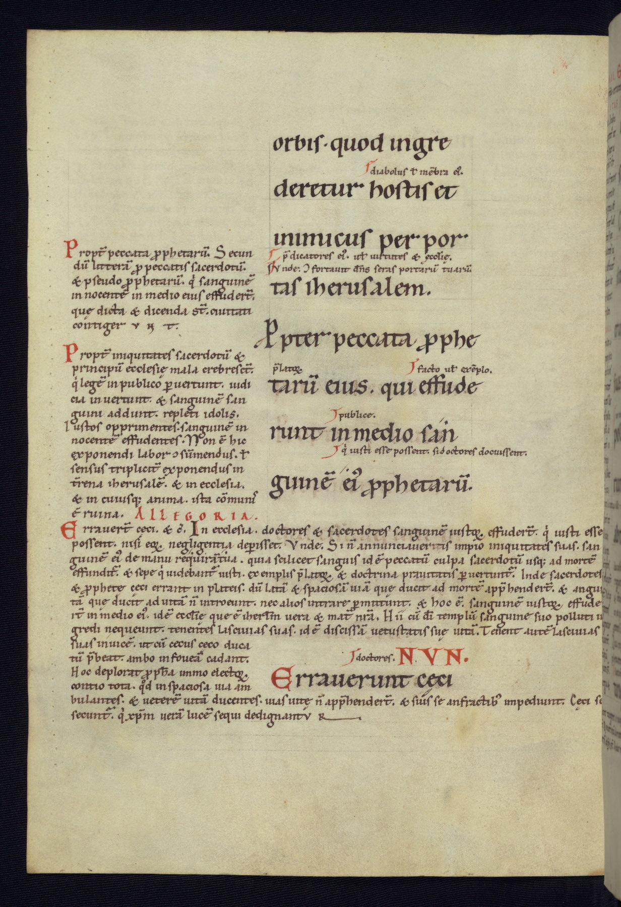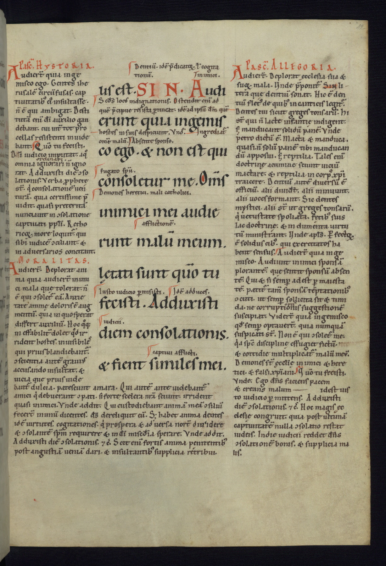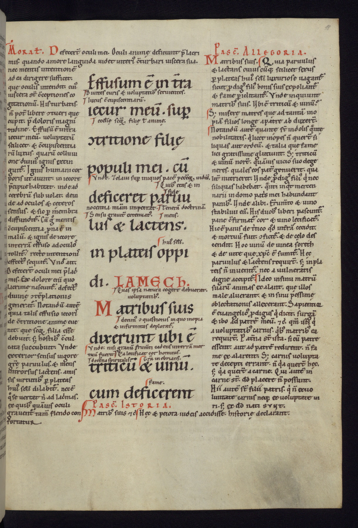 This illustrated copy of The lamentations of Jeremiah with the gloss (or interpretation) of Gilbert of Auxerre was written in Austria in the second half of the twelfth century and comes from the monastery of Seitenstetten. Gilbert died in 1134, and the manuscript is an early and important witness to his text. The gloss is written in a small script and is both interlinear and marginal. This layout is typical of glossed books of the Bible from the twelfth century. The illustrations of the sack of Jerusalem and the return to Babylon give valuable information on twelfth-century armor. The manuscript is in its original binding.