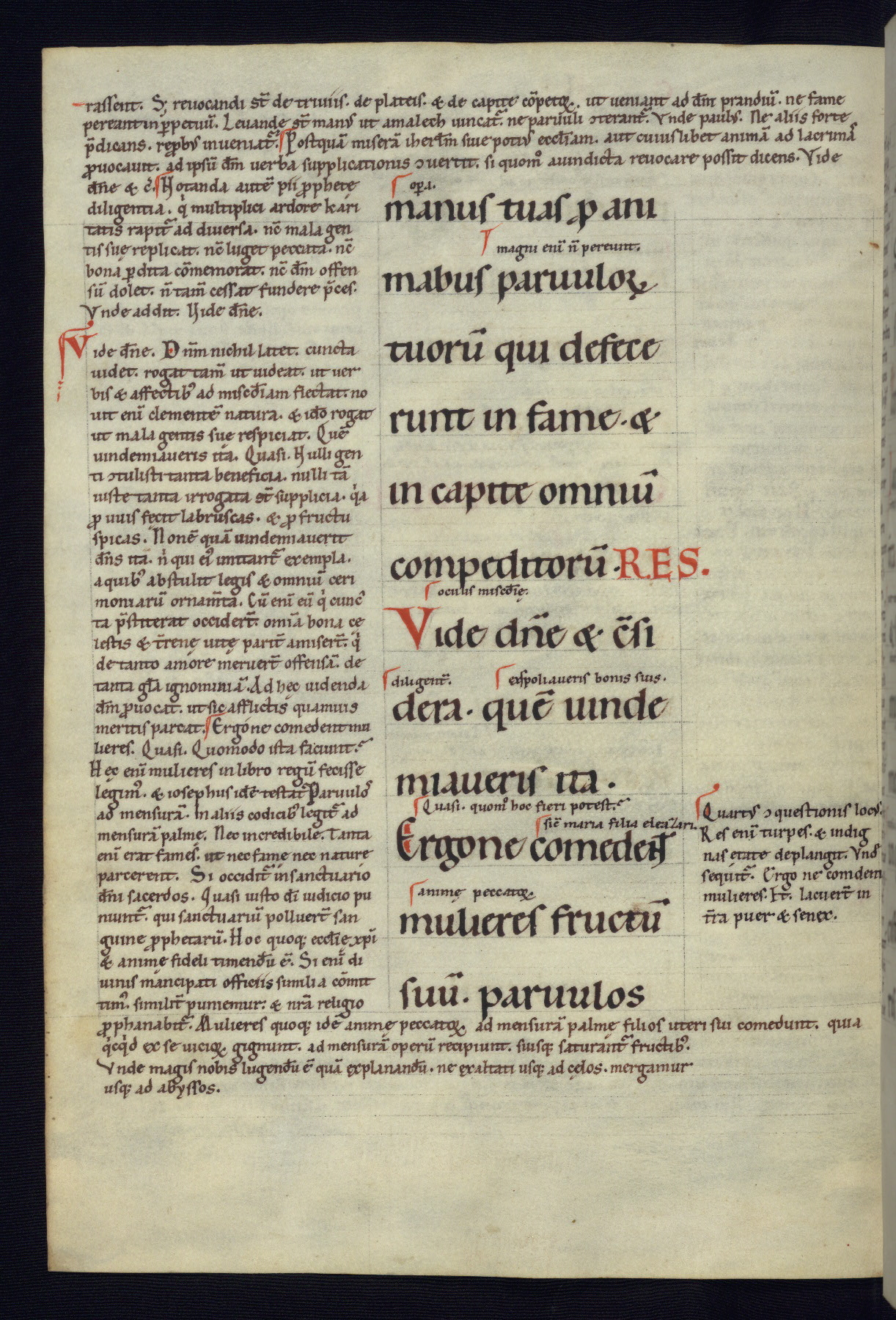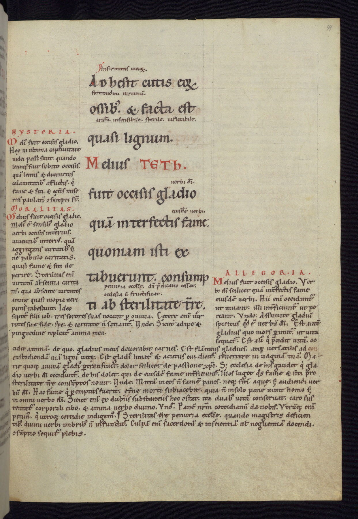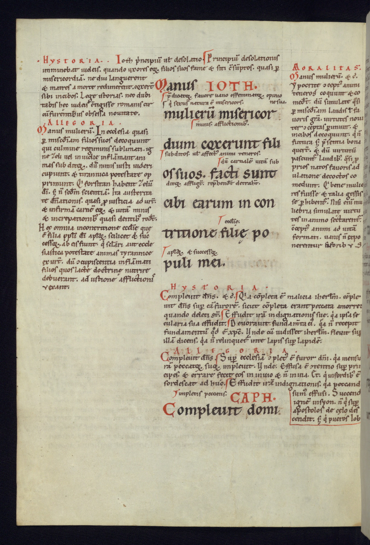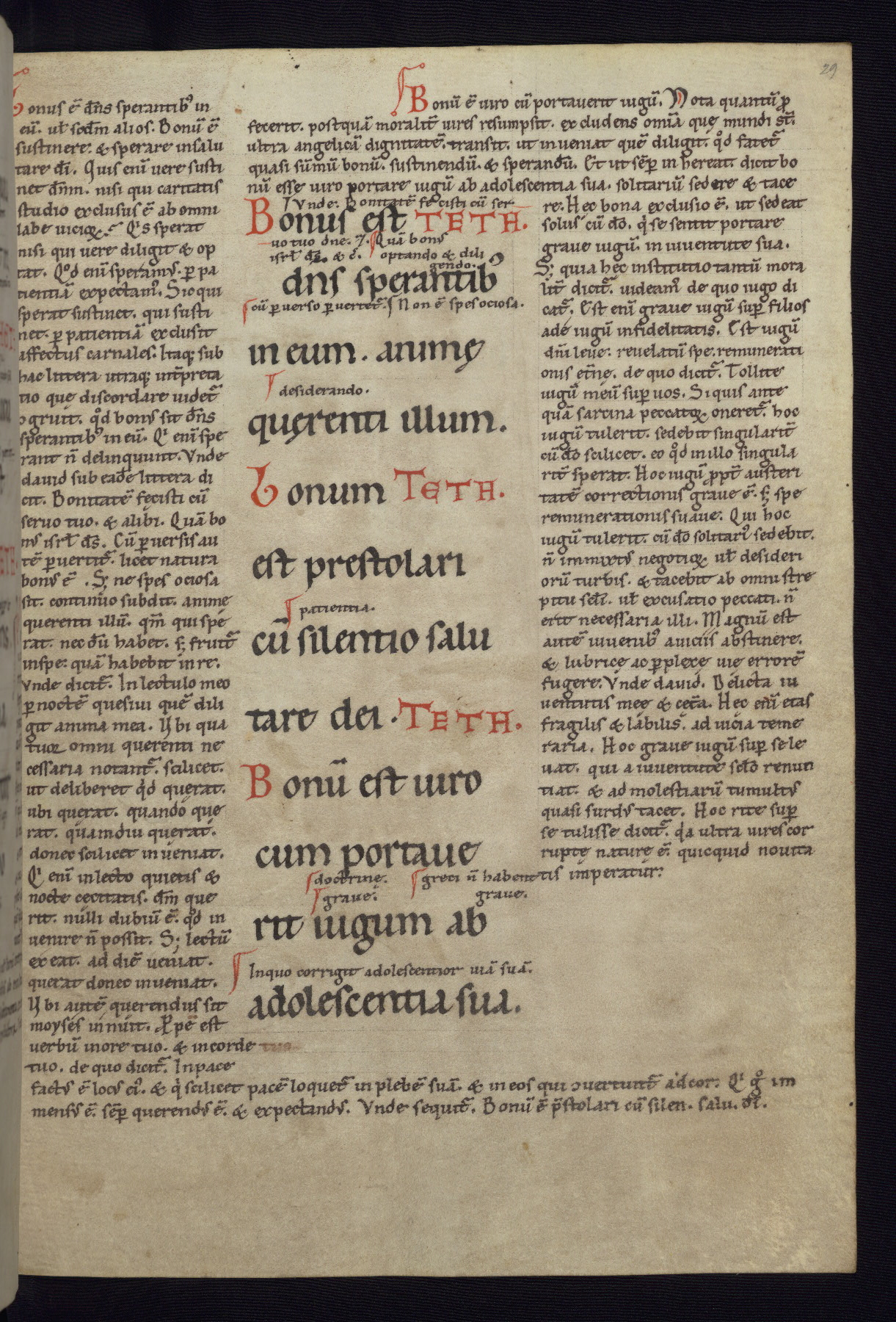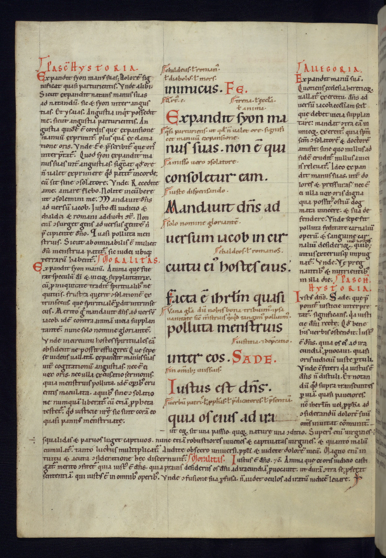 This illustrated copy of The lamentations of Jeremiah with the gloss (or interpretation) of Gilbert of Auxerre was written in Austria in the second half of the twelfth century and comes from the monastery of Seitenstetten. Gilbert died in 1134, and the manuscript is an early and important witness to his text. The gloss is written in a small script and is both interlinear and marginal. This layout is typical of glossed books of the Bible from the twelfth century. The illustrations of the sack of Jerusalem and the return to Babylon give valuable information on twelfth-century armor. The manuscript is in its original binding.