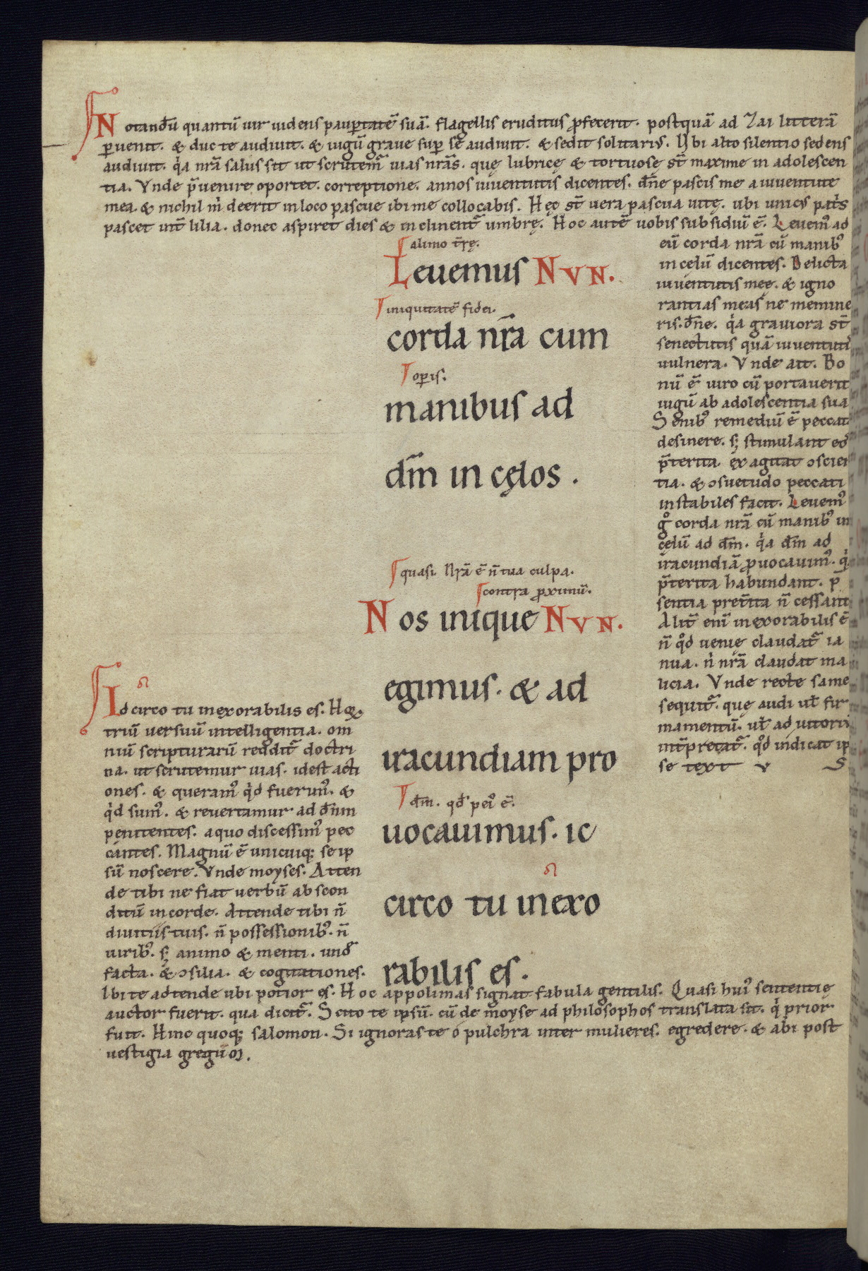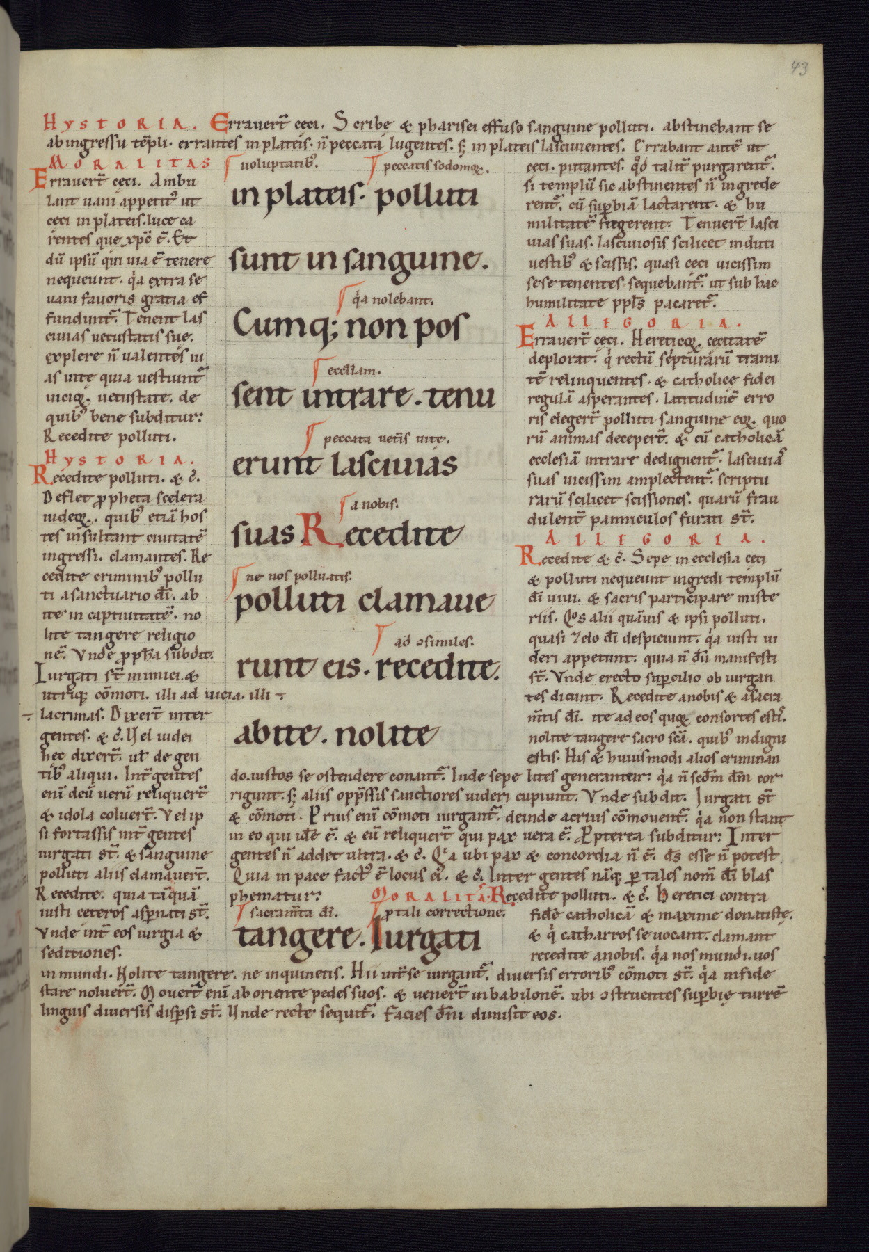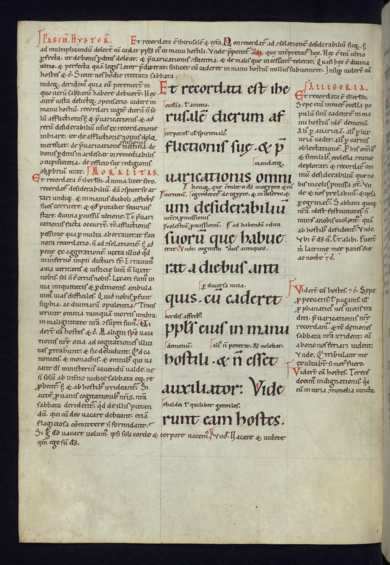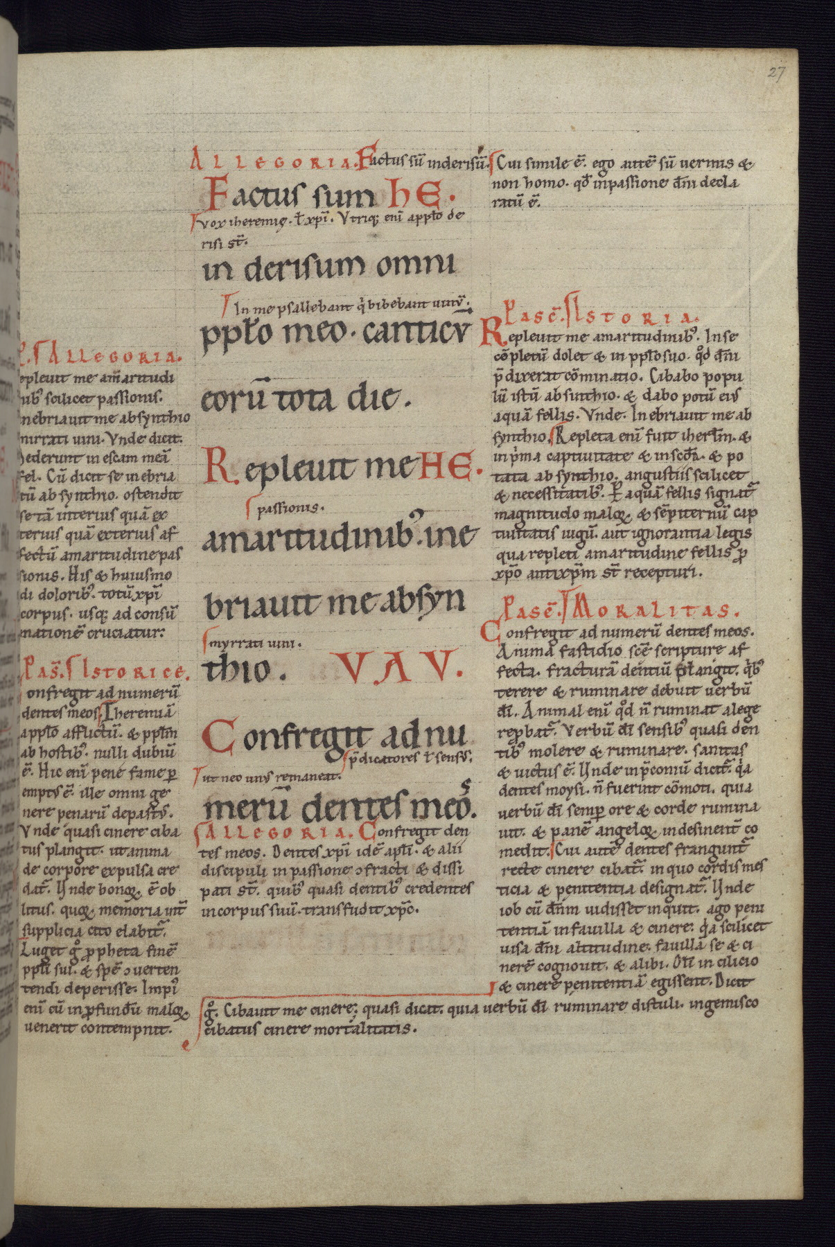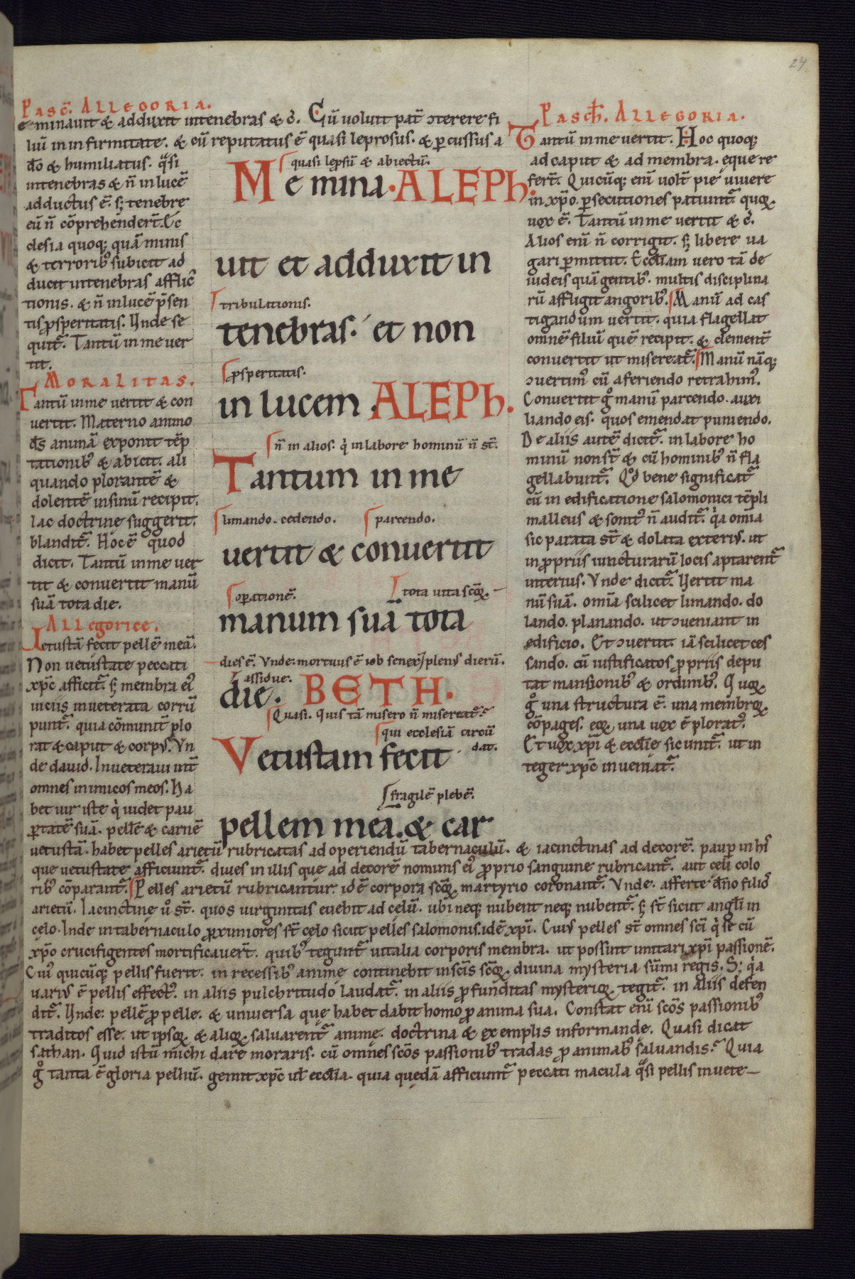 This illustrated copy of The lamentations of Jeremiah with the gloss (or interpretation) of Gilbert of Auxerre was written in Austria in the second half of the twelfth century and comes from the monastery of Seitenstetten. Gilbert died in 1134, and the manuscript is an early and important witness to his text. The gloss is written in a small script and is both interlinear and marginal. This layout is typical of glossed books of the Bible from the twelfth century. The illustrations of the sack of Jerusalem and the return to Babylon give valuable information on twelfth-century armor. The manuscript is in its original binding.