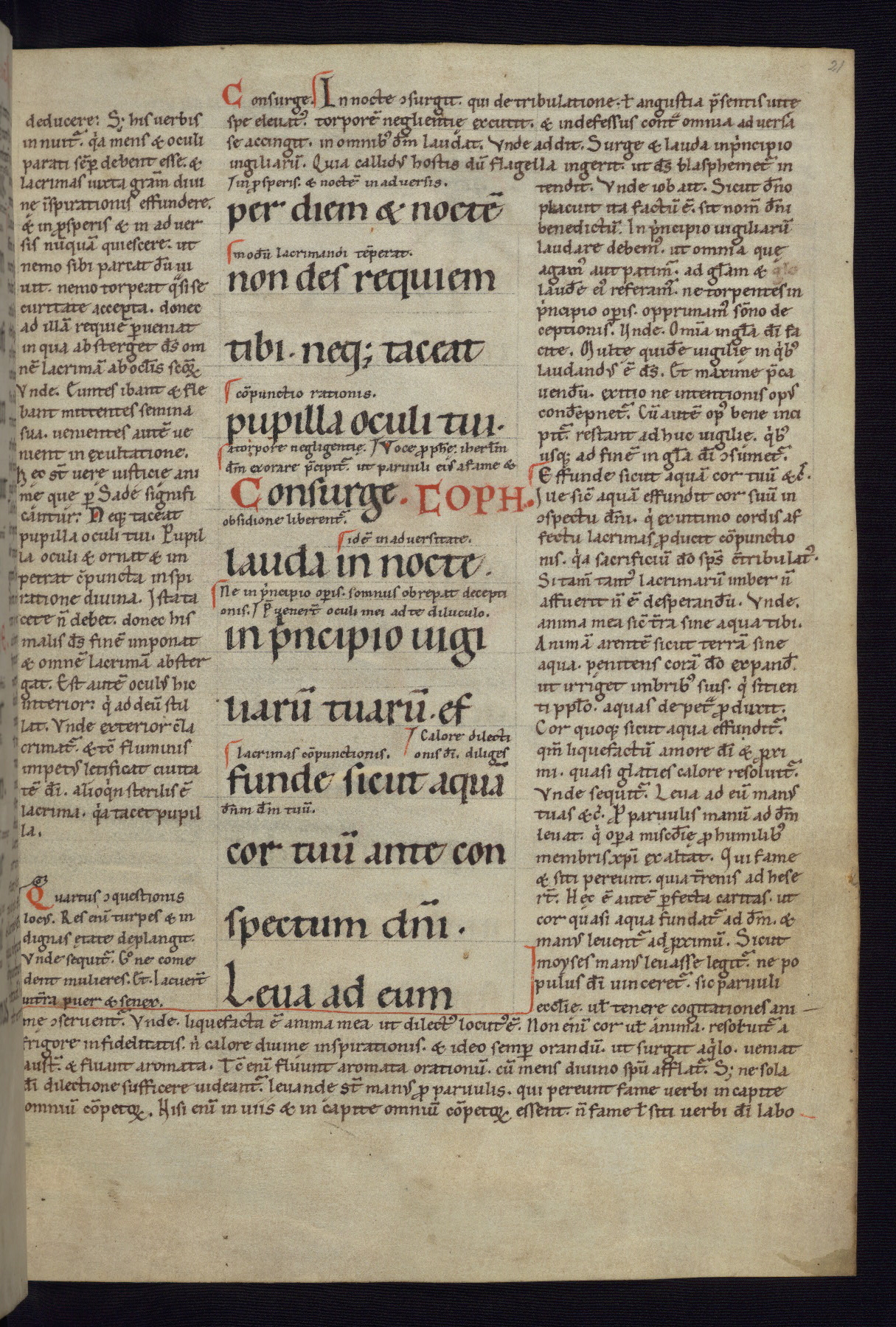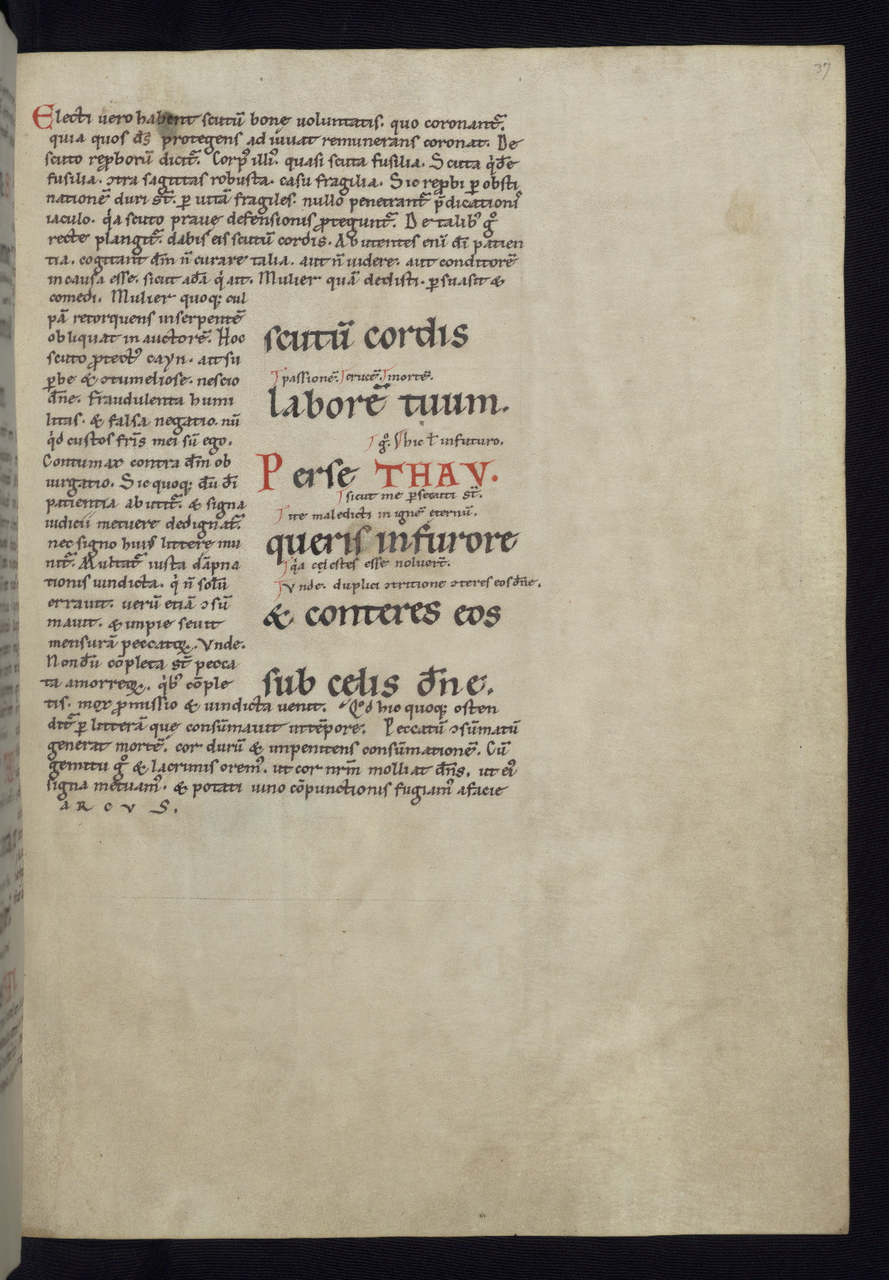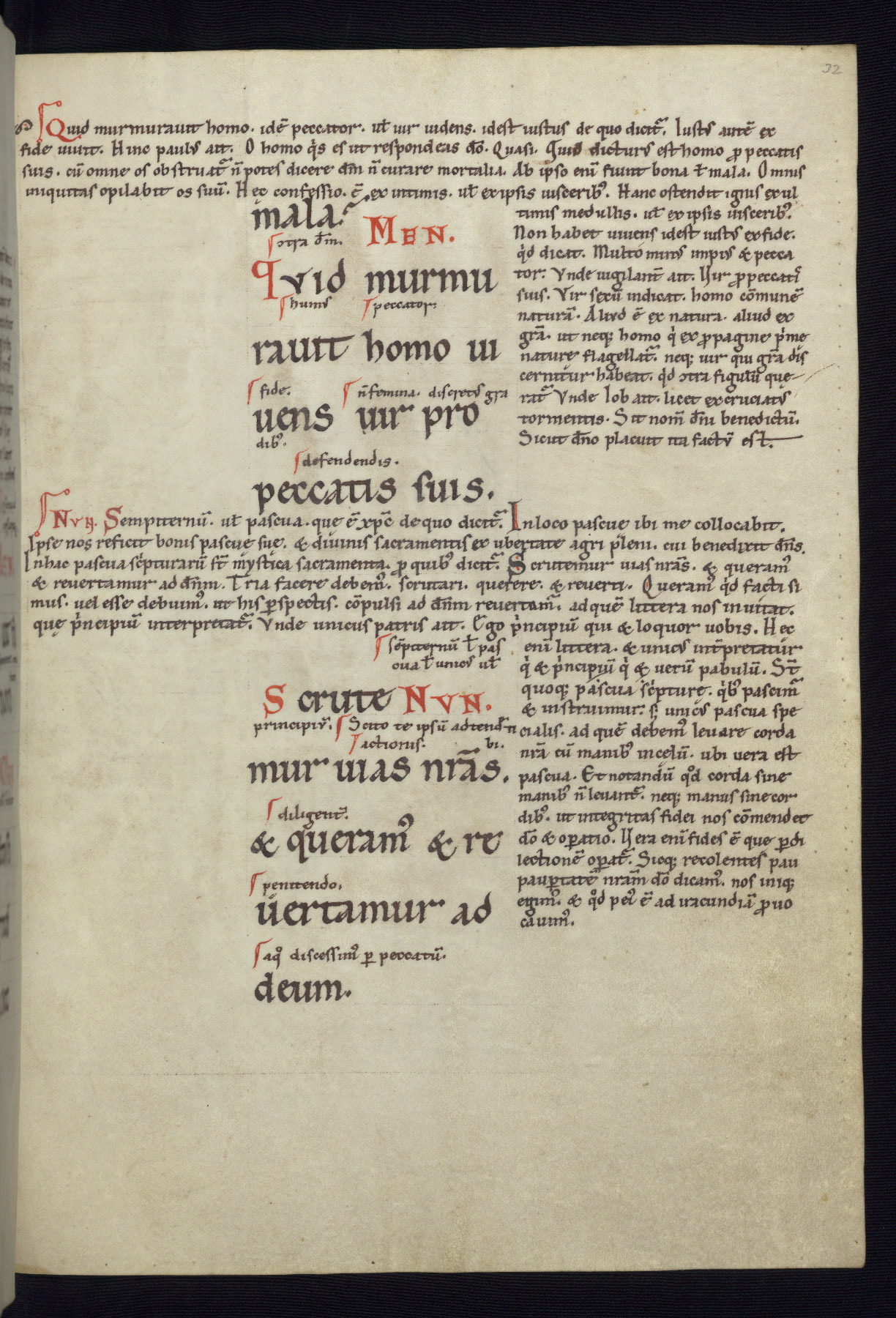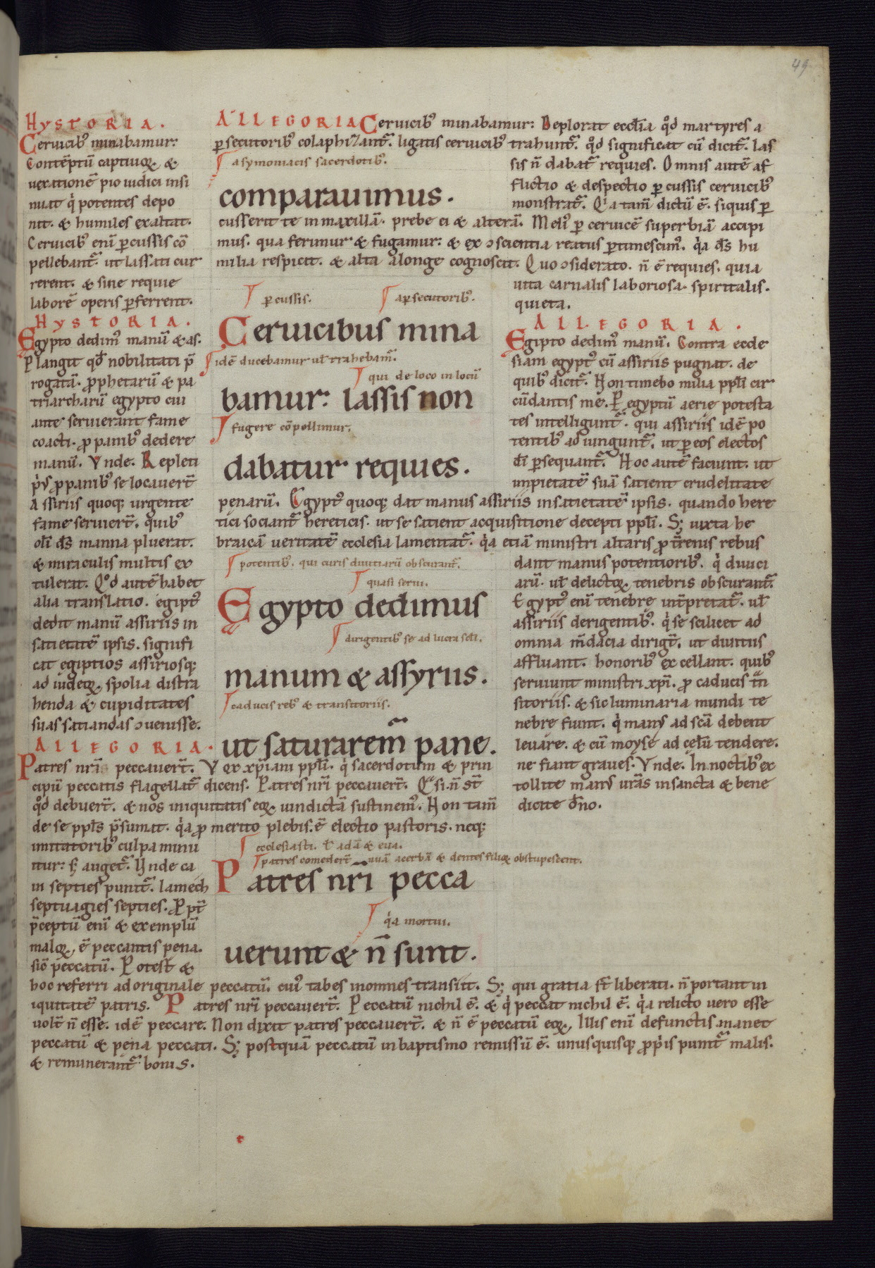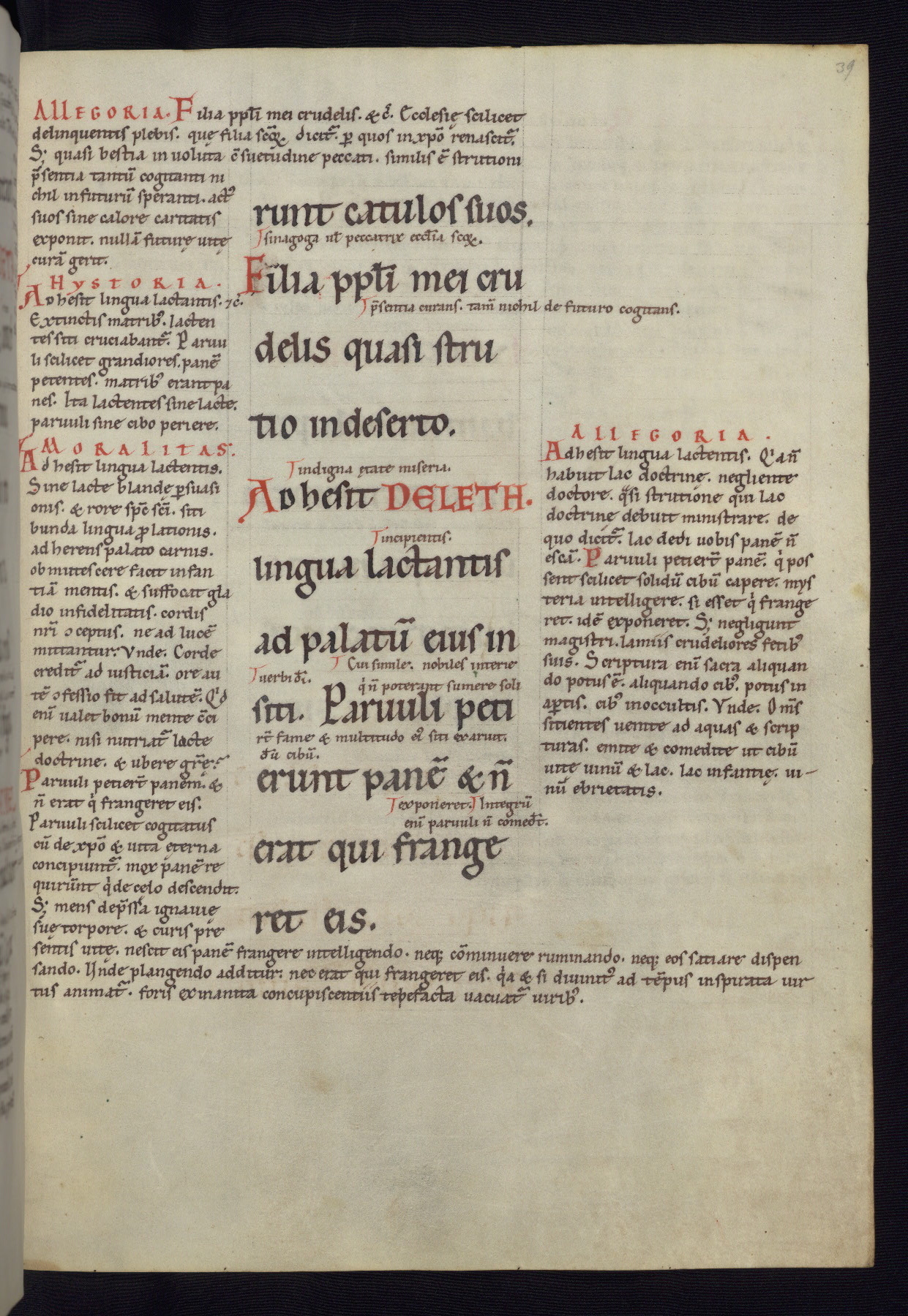 This illustrated copy of The lamentations of Jeremiah with the gloss (or interpretation) of Gilbert of Auxerre was written in Austria in the second half of the twelfth century and comes from the monastery of Seitenstetten. Gilbert died in 1134, and the manuscript is an early and important witness to his text. The gloss is written in a small script and is both interlinear and marginal. This layout is typical of glossed books of the Bible from the twelfth century. The illustrations of the sack of Jerusalem and the return to Babylon give valuable information on twelfth-century armor. The manuscript is in its original binding.