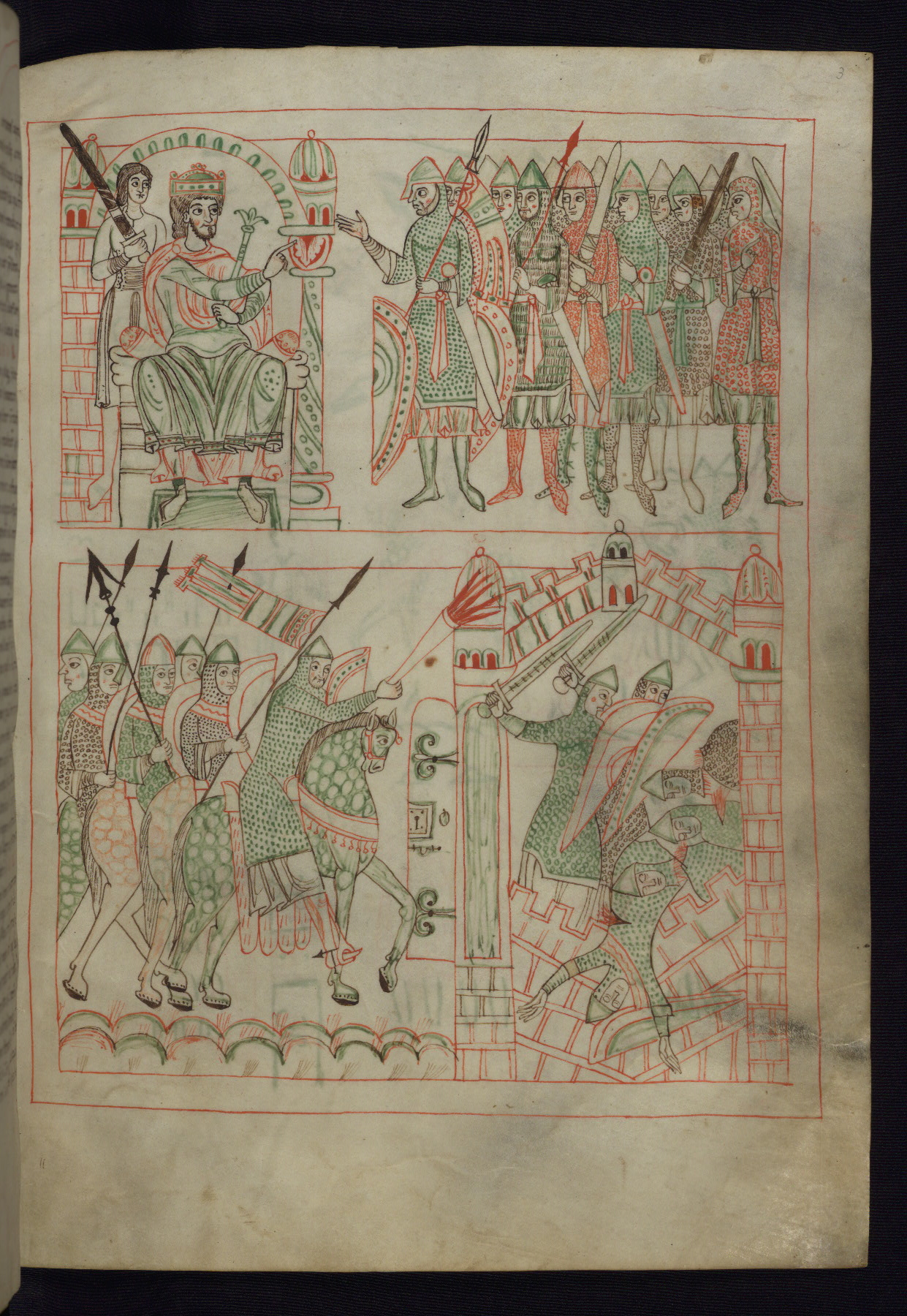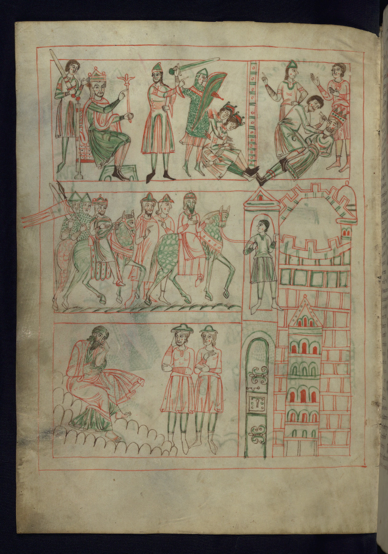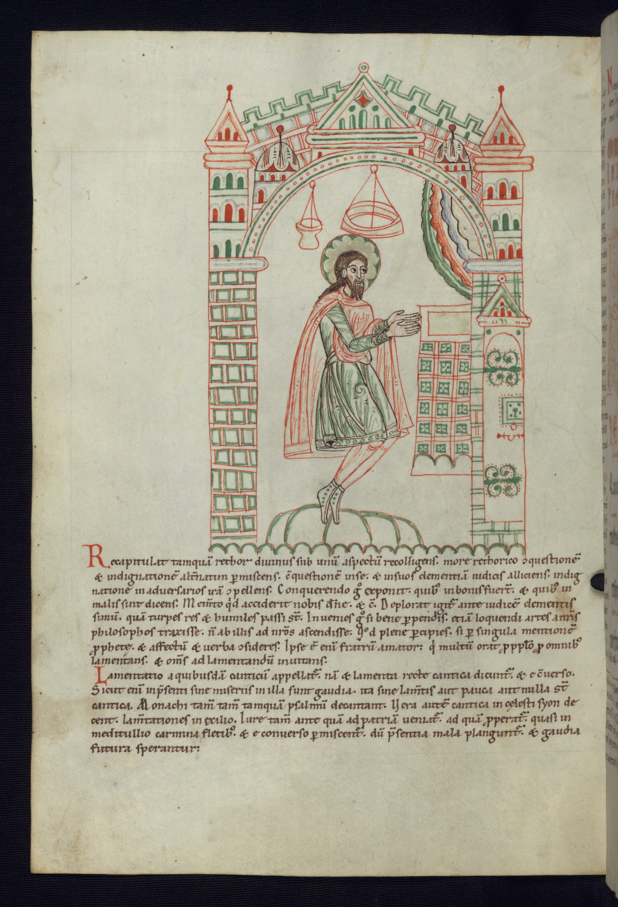 This illustrated copy of The lamentations of Jeremiah with the gloss (or interpretation) of Gilbert of Auxerre was written in Austria in the second half of the twelfth century and comes from the monastery of Seitenstetten. Gilbert died in 1134, and the manuscript is an early and important witness to his text. The gloss is written in a small script and is both interlinear and marginal. This layout is typical of glossed books of the Bible from the twelfth century. The illustrations of the sack of Jerusalem and the return to Babylon give valuable information on twelfth-century armor. The manuscript is in its original binding.