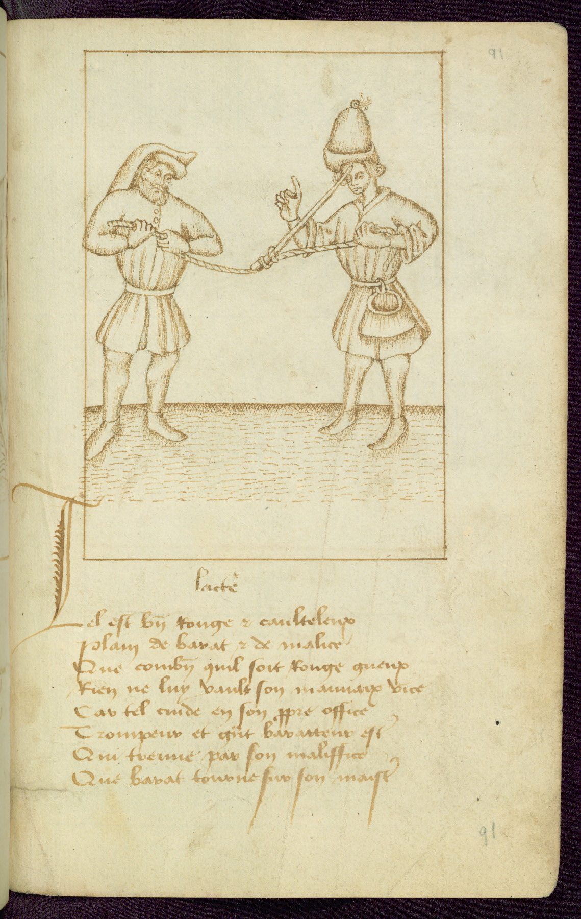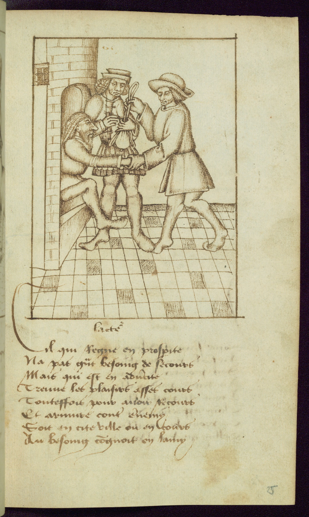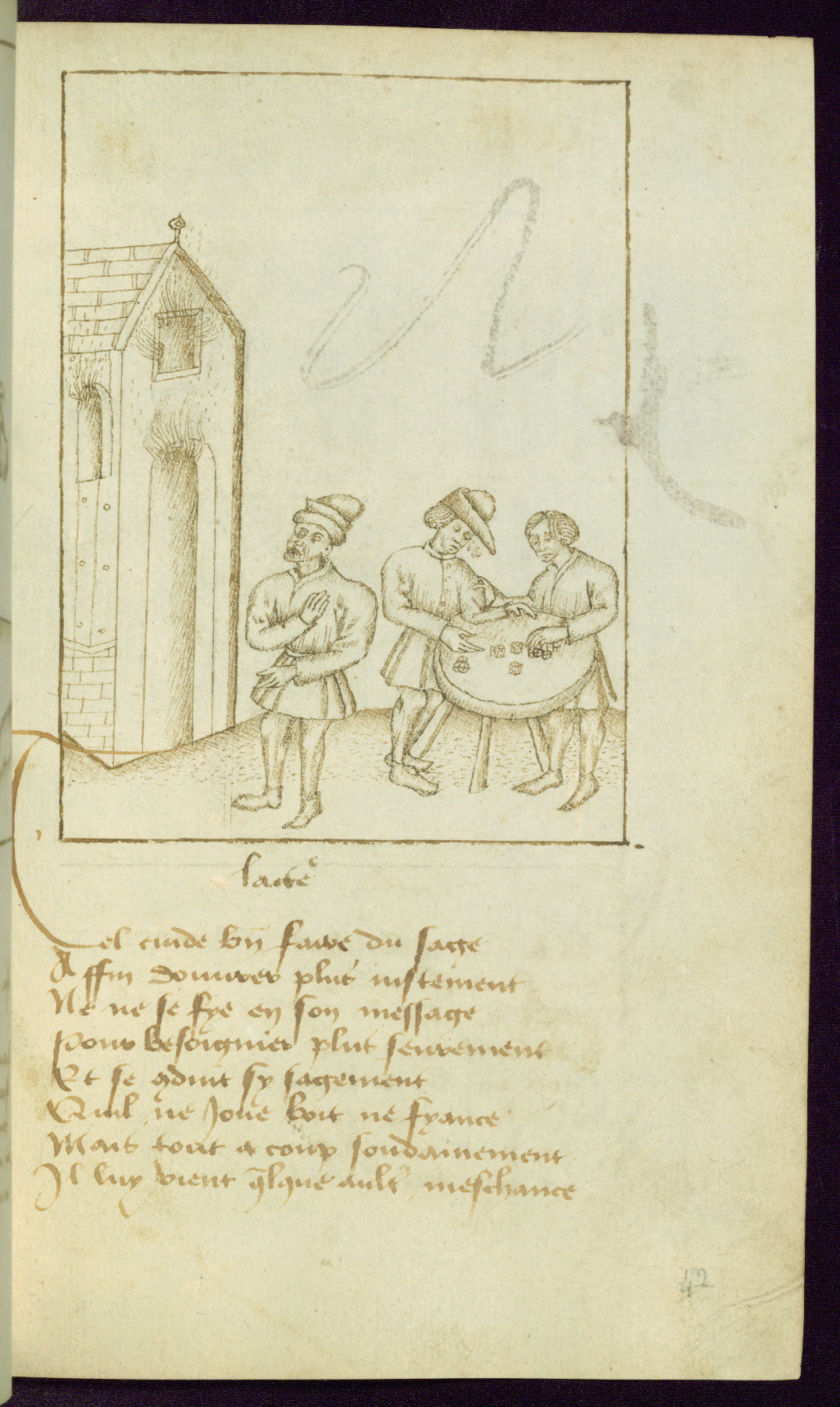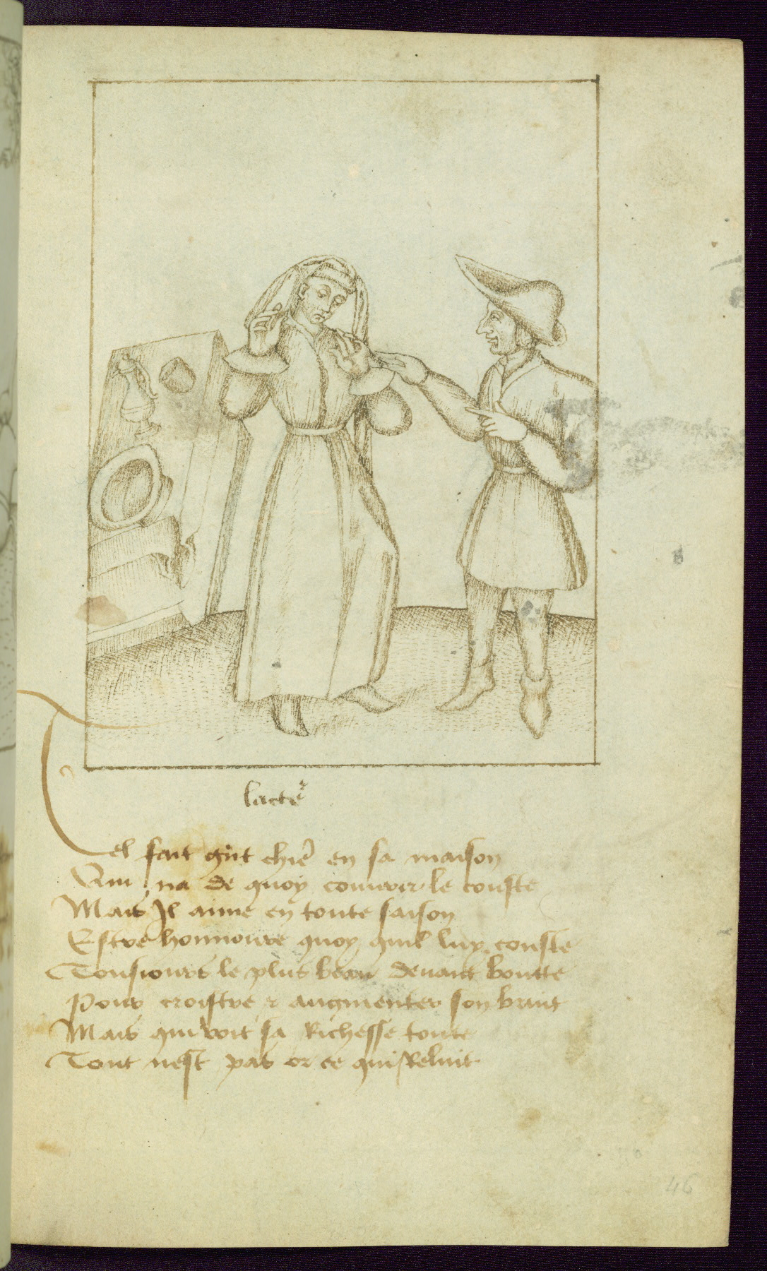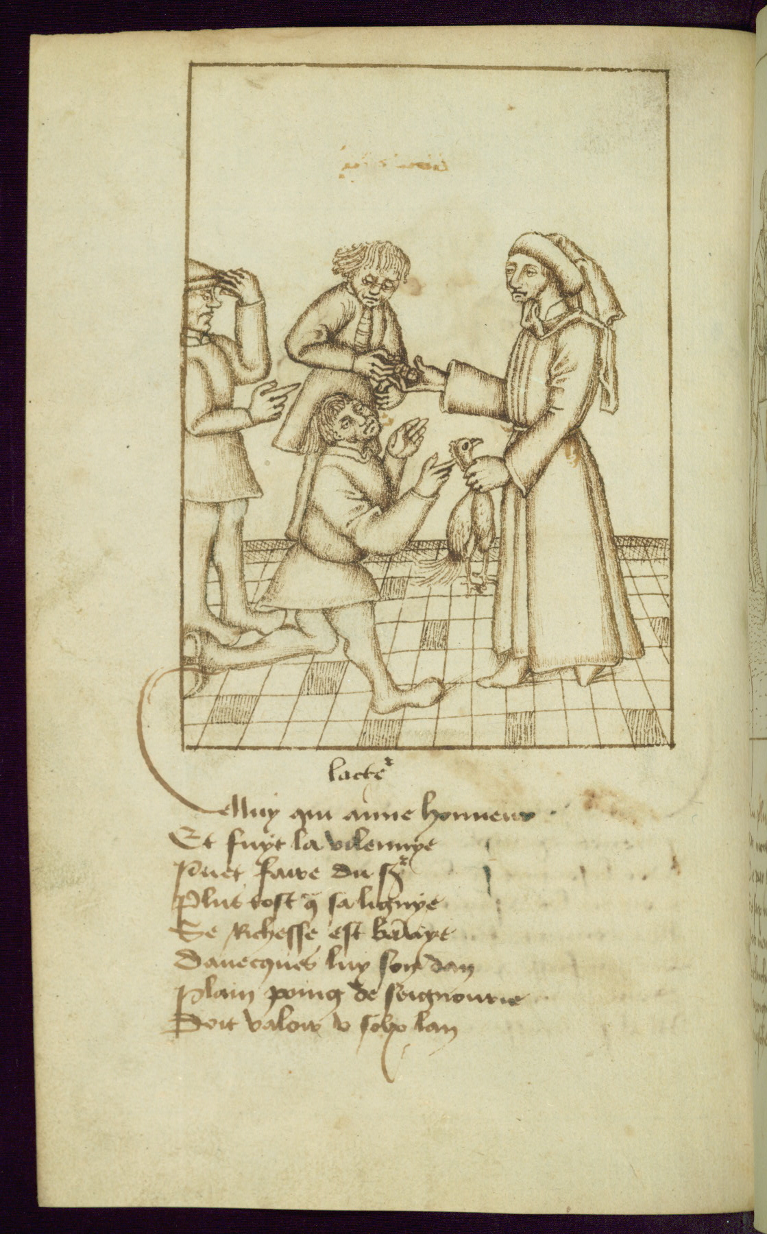 Massing, Jean Michel. "Proverbial wisdom and social criticism: two new pages from the Walters Art Gallery's "Proverbes en Rimes"," Journal of the Warburg and Courtauld Institutes 46 (1983): 208-210.