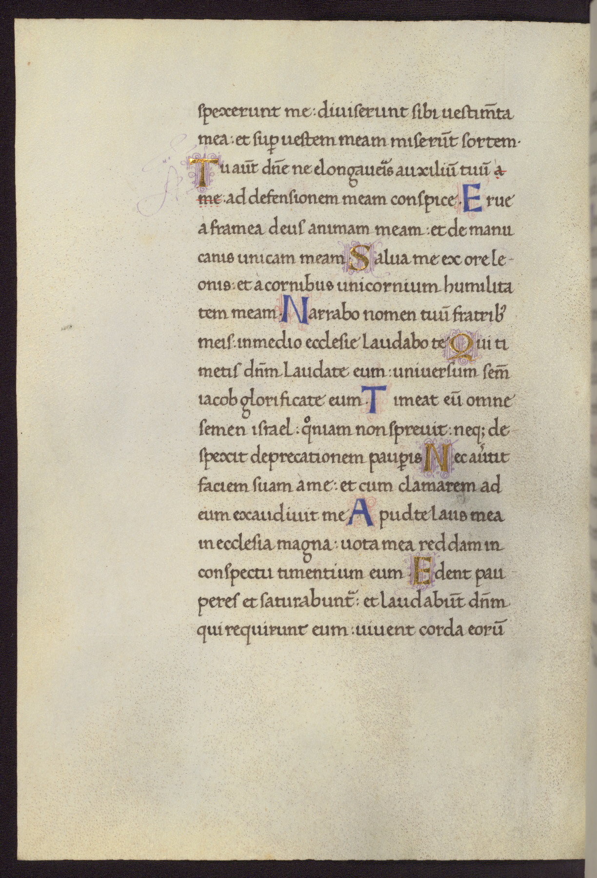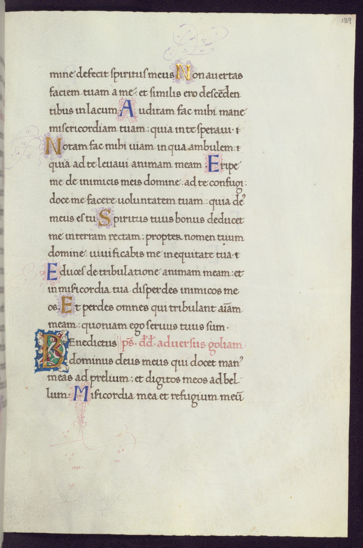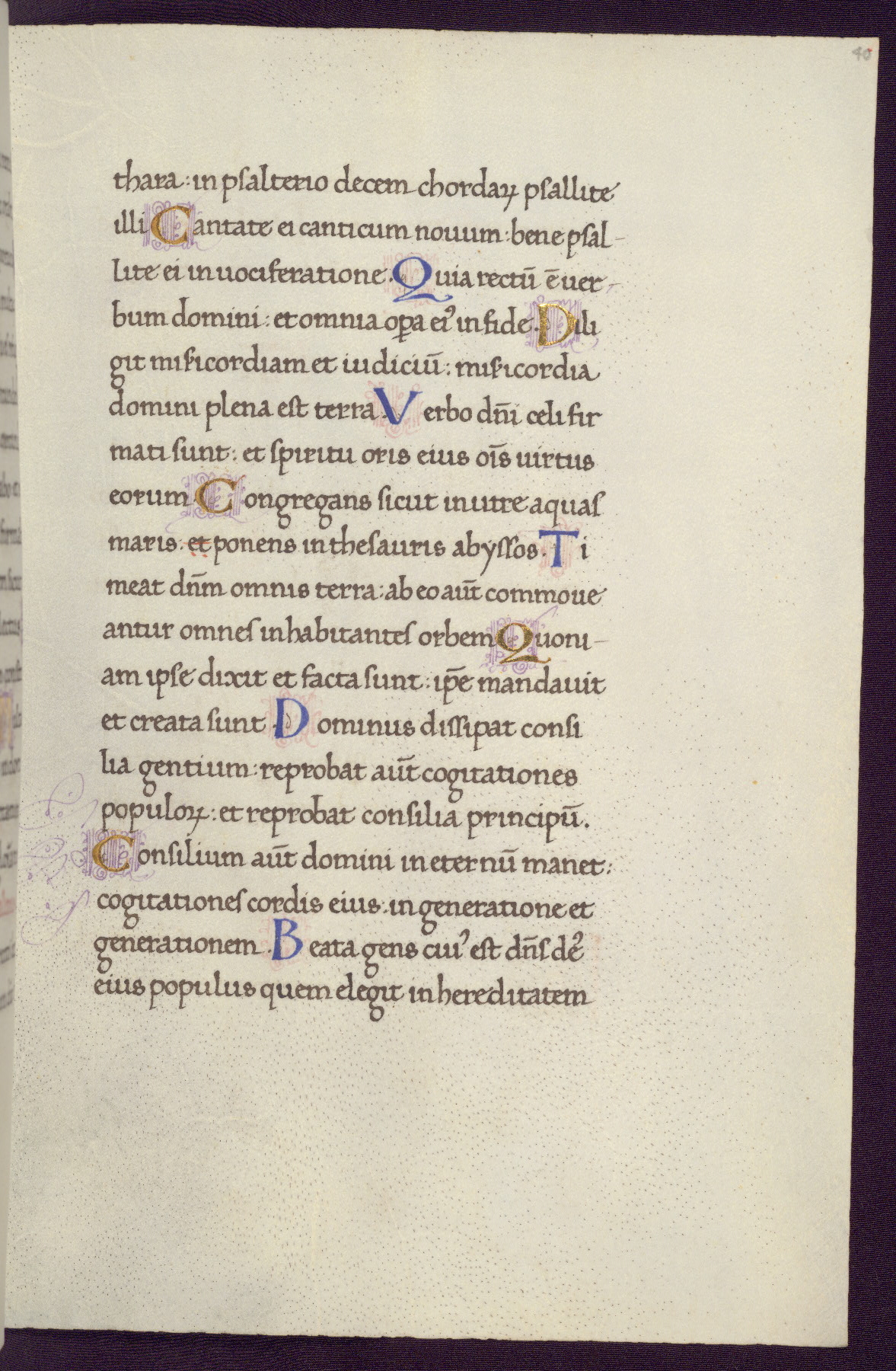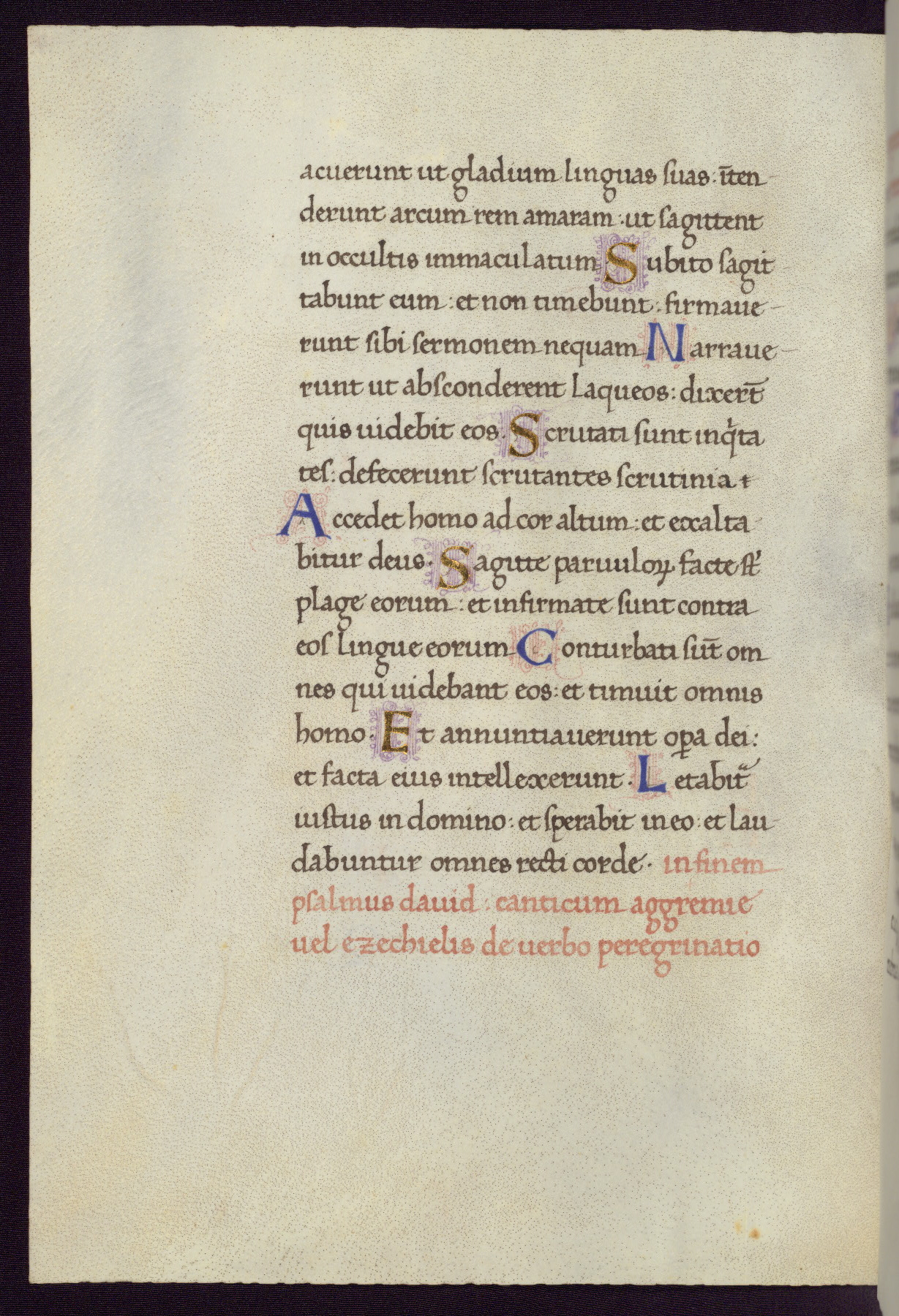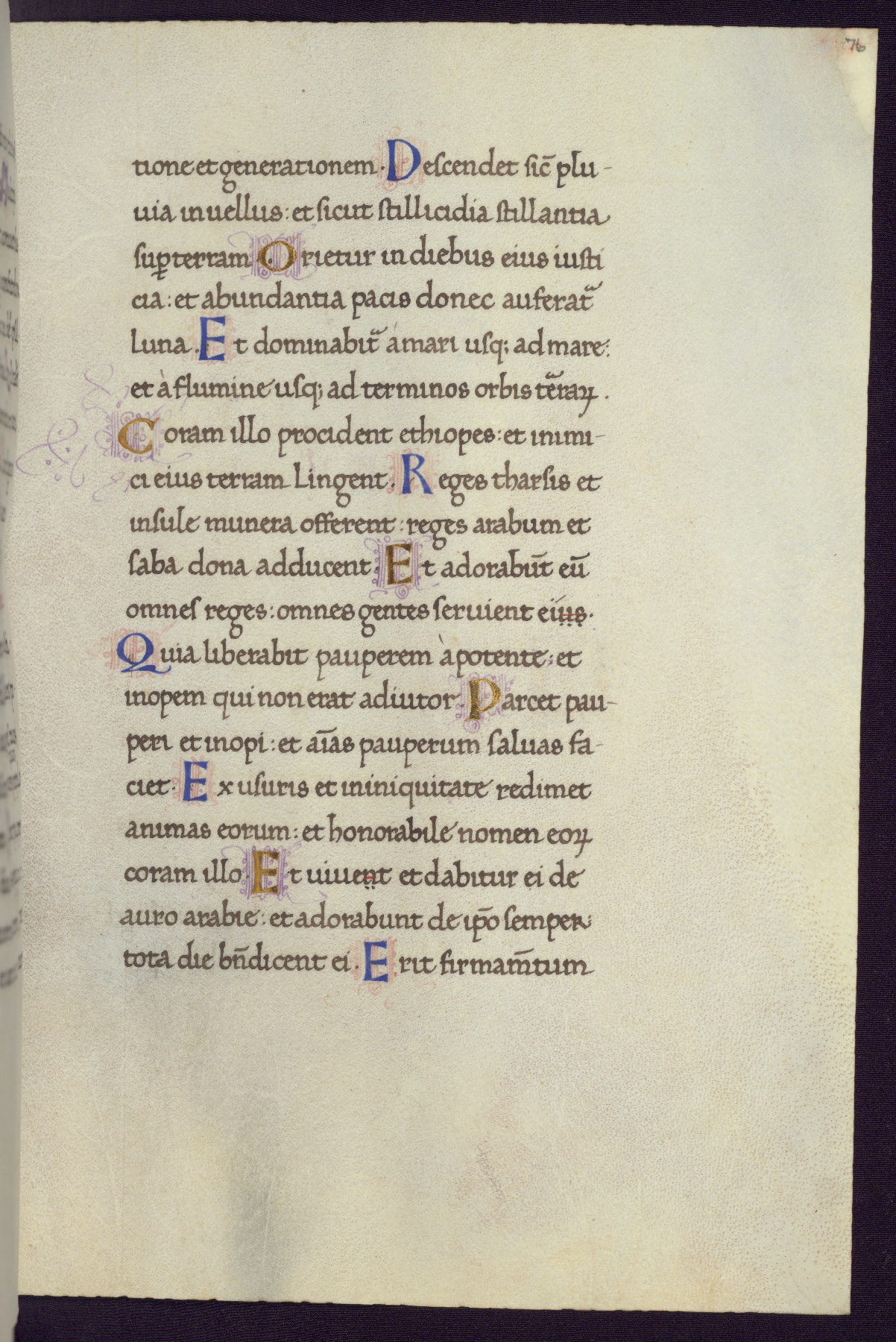 This Psalter was created in Southern Italy, likely Naples, in the last quarter of the fifteenth century. The litany (fols. 158v - 161r) suggests it was for Cistercian use. It contains six high-quality miniatures attributed to the Neopolitan illuminator Cristoforo Magorana (though the historiated initial of David playing a psaltry on fol. 15r may have been done by another hand), who from 1480-1492 worked at the court of Ferdinand I of Aragon. To date, almost forty manuscripts have been attributed to the artist. The Walters manuscript contains two full-page miniatures, one showing the Tree of Jesse and the other the Man of Sorrows. The Tree of Jesse (described in Isaiah 1:11) shows the ancestry of Christ rising from Jesse of Bethlehem, the father of King David who is depicted on the facing folio (171r). In this depiction Jesse is shown on the trunk of the tree, but it actually rises from Abraham. Surrounding Abraham is a crowd of Prophets each with scrolls with verses believed to prophecy the coming of Christ. The miniature with the Man of Sorrows shows Christ standing in his tomb and surrounded by the objects associated with the Passion (arma Christi). The miniature follows a specific Man of Sorrows iconography that originated in an early-fourteenth century mosaic icon from Constantinople that most likely arrived in Italy ca. 1380. The mosaic panel was believed to be an authentic representation of St. Gregory's vision of Christ as the Man of Sorrows, and this type of image encouraged the viewer to meditate on the suffering of Christ while reading the Passion narratives that follow. The humanist script and white-vine initials place the Walters Psalter firmly within the Humanist tradition of the late fifteenth century. Remnants of black velvet suggest this book once had a chemise binding, comparable to W.294 and W.480. Peter Kidd has suggested that the manuscript may have been written by Pietro Ursuleo of Capua (d. 1483).