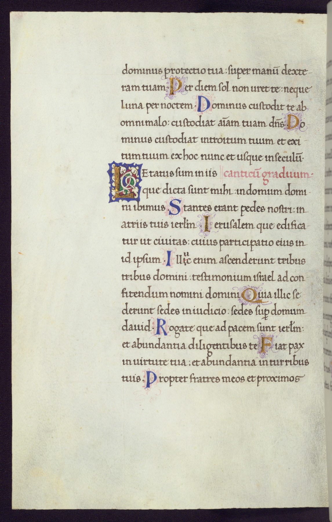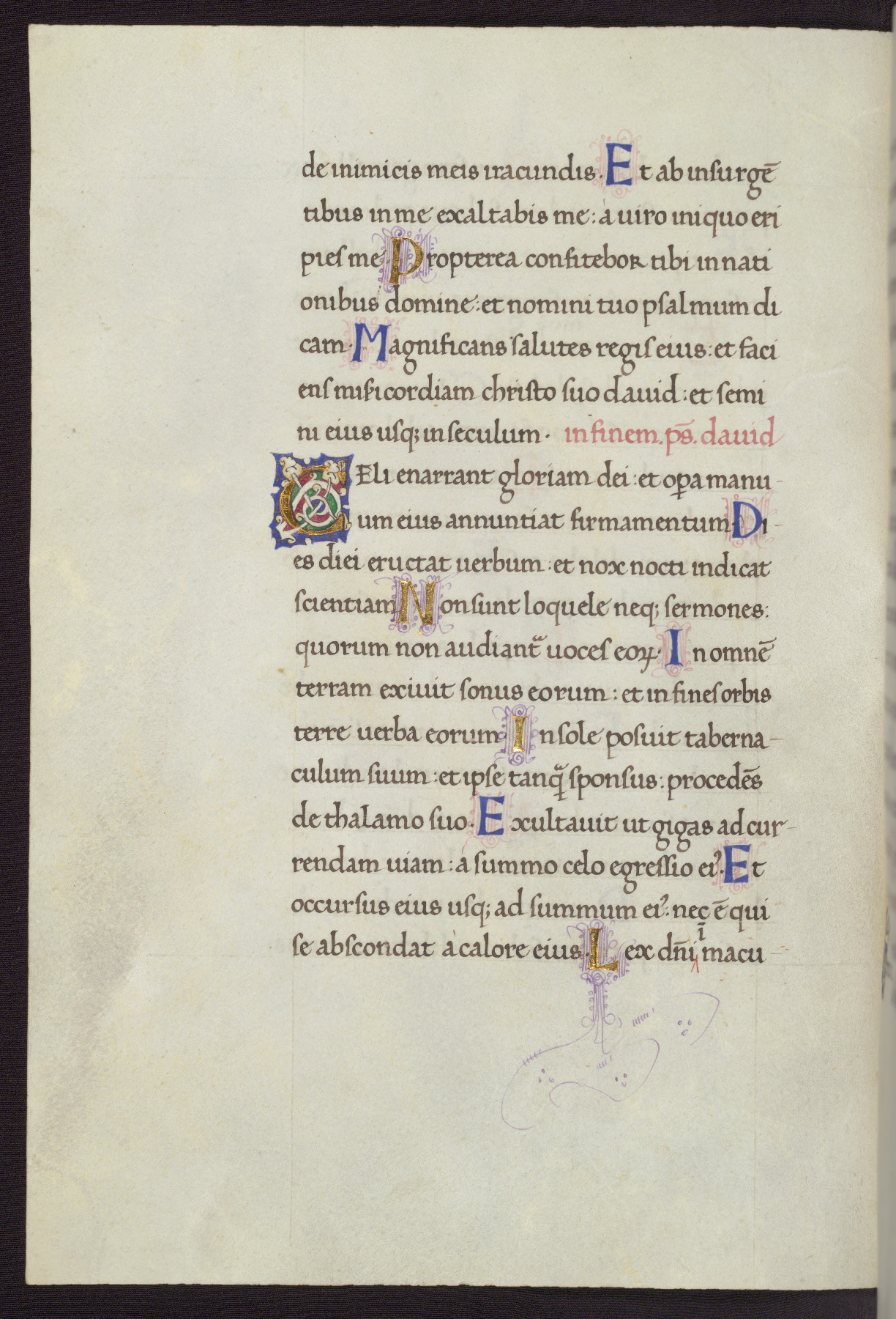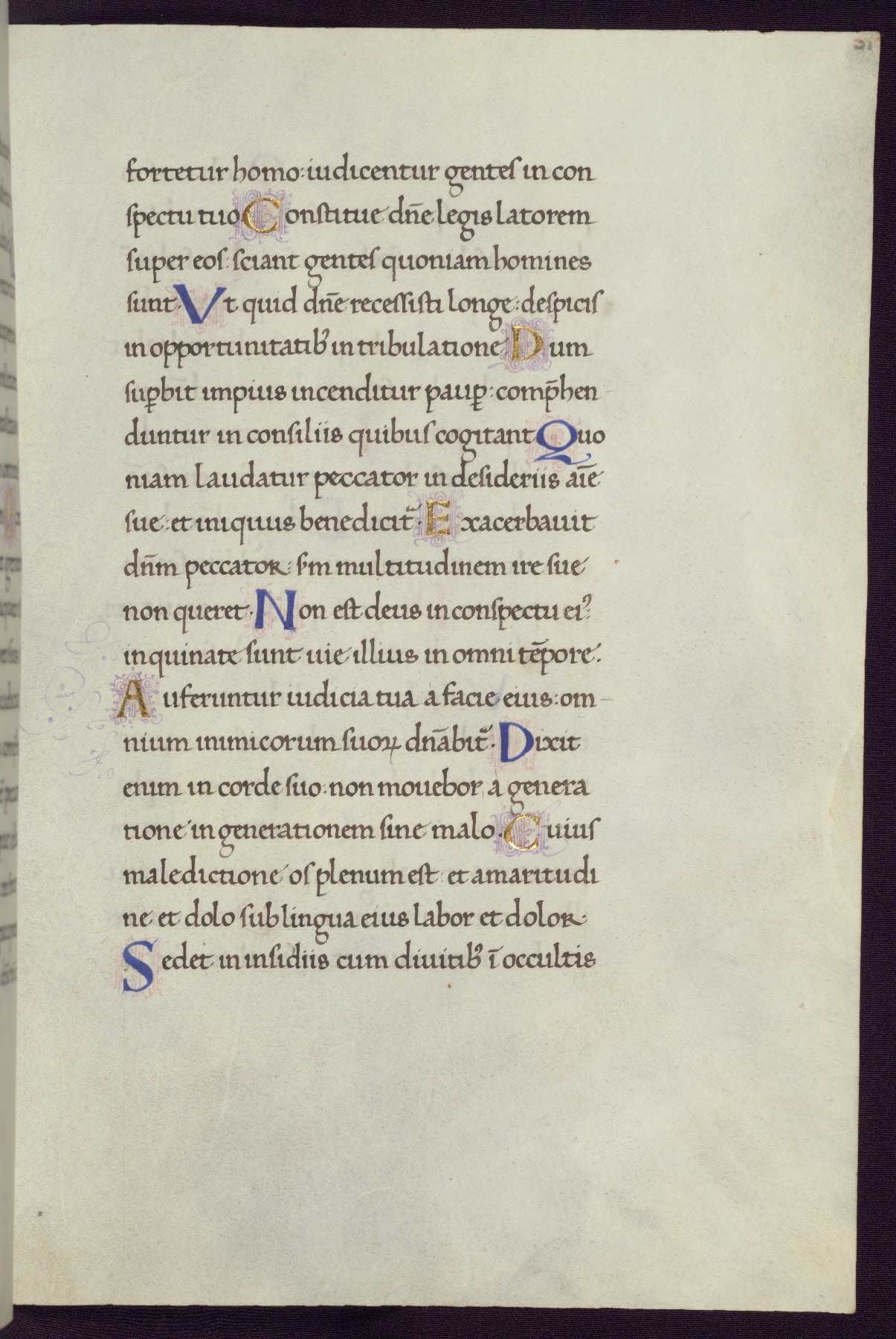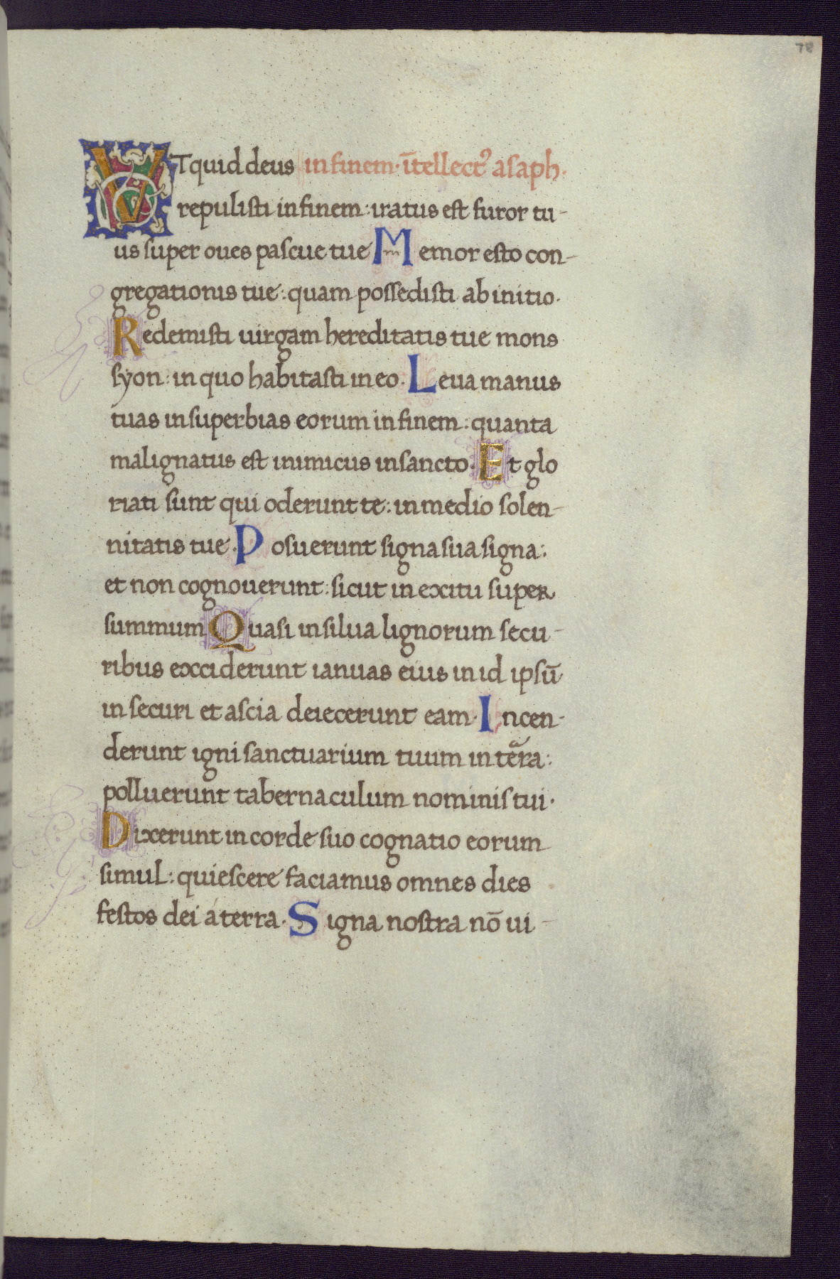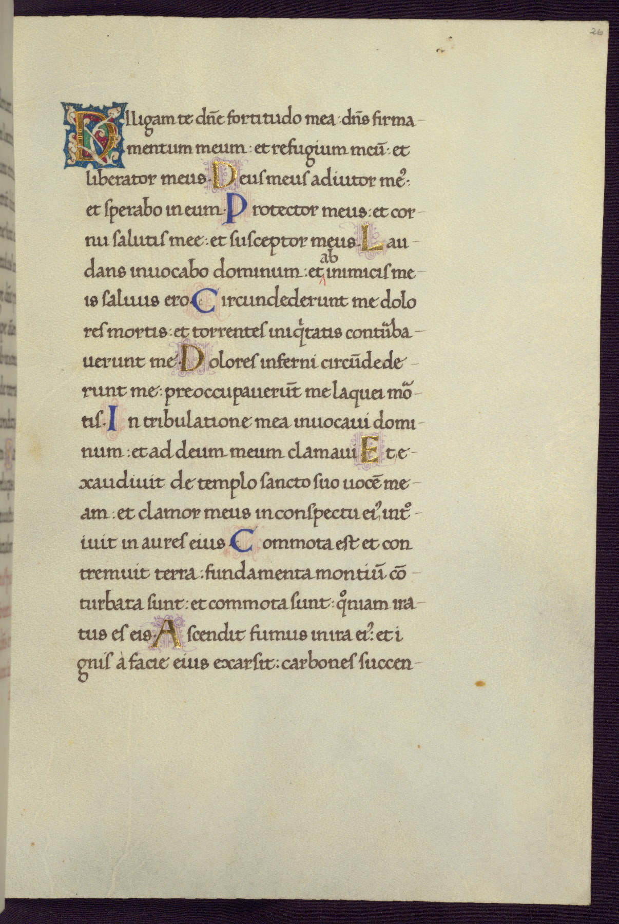 This Psalter was created in Southern Italy, likely Naples, in the last quarter of the fifteenth century. The litany (fols. 158v - 161r) suggests it was for Cistercian use. It contains six high-quality miniatures attributed to the Neopolitan illuminator Cristoforo Magorana (though the historiated initial of David playing a psaltry on fol. 15r may have been done by another hand), who from 1480-1492 worked at the court of Ferdinand I of Aragon. To date, almost forty manuscripts have been attributed to the artist. The Walters manuscript contains two full-page miniatures, one showing the Tree of Jesse and the other the Man of Sorrows. The Tree of Jesse (described in Isaiah 1:11) shows the ancestry of Christ rising from Jesse of Bethlehem, the father of King David who is depicted on the facing folio (171r). In this depiction Jesse is shown on the trunk of the tree, but it actually rises from Abraham. Surrounding Abraham is a crowd of Prophets each with scrolls with verses believed to prophecy the coming of Christ. The miniature with the Man of Sorrows shows Christ standing in his tomb and surrounded by the objects associated with the Passion (arma Christi). The miniature follows a specific Man of Sorrows iconography that originated in an early-fourteenth century mosaic icon from Constantinople that most likely arrived in Italy ca. 1380. The mosaic panel was believed to be an authentic representation of St. Gregory's vision of Christ as the Man of Sorrows, and this type of image encouraged the viewer to meditate on the suffering of Christ while reading the Passion narratives that follow. The humanist script and white-vine initials place the Walters Psalter firmly within the Humanist tradition of the late fifteenth century. Remnants of black velvet suggest this book once had a chemise binding, comparable to W.294 and W.480. Peter Kidd has suggested that the manuscript may have been written by Pietro Ursuleo of Capua (d. 1483).