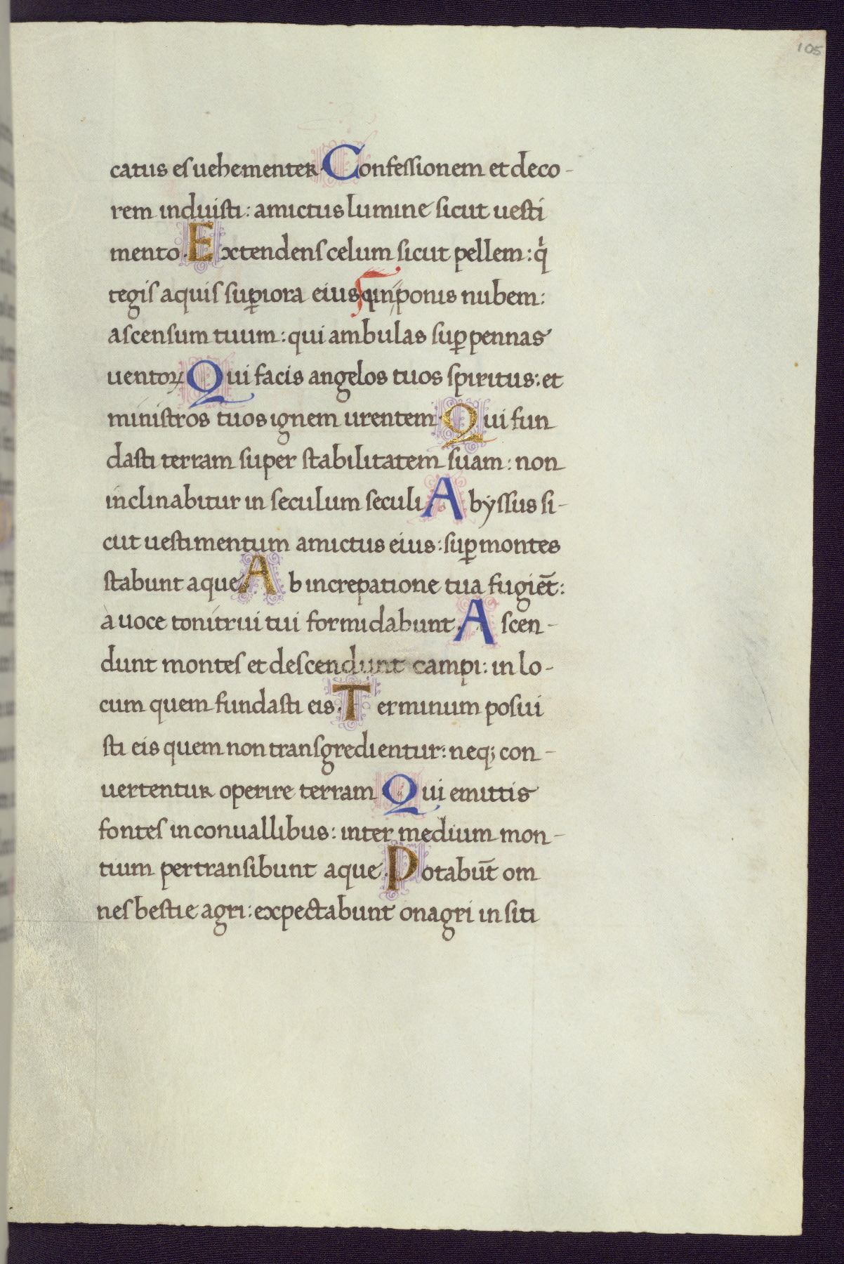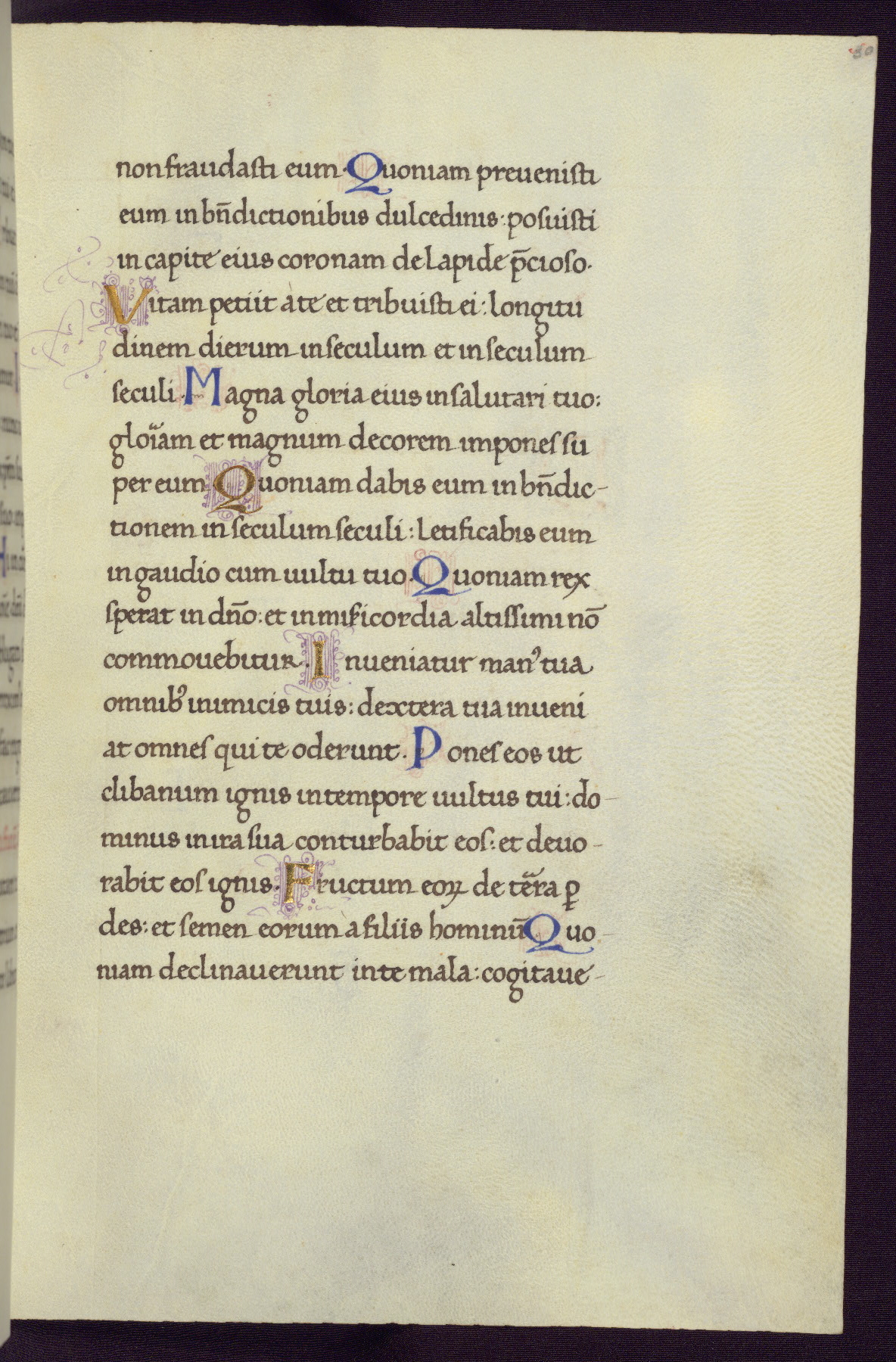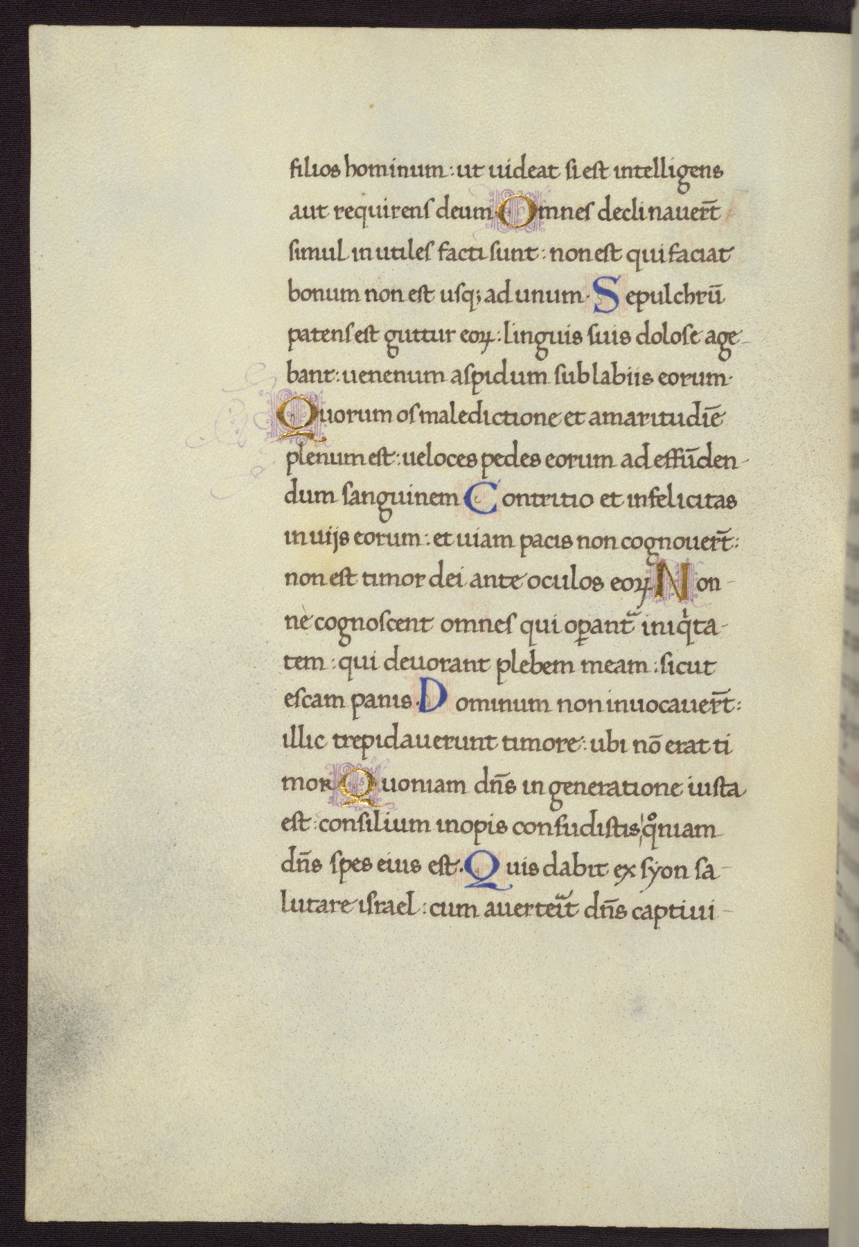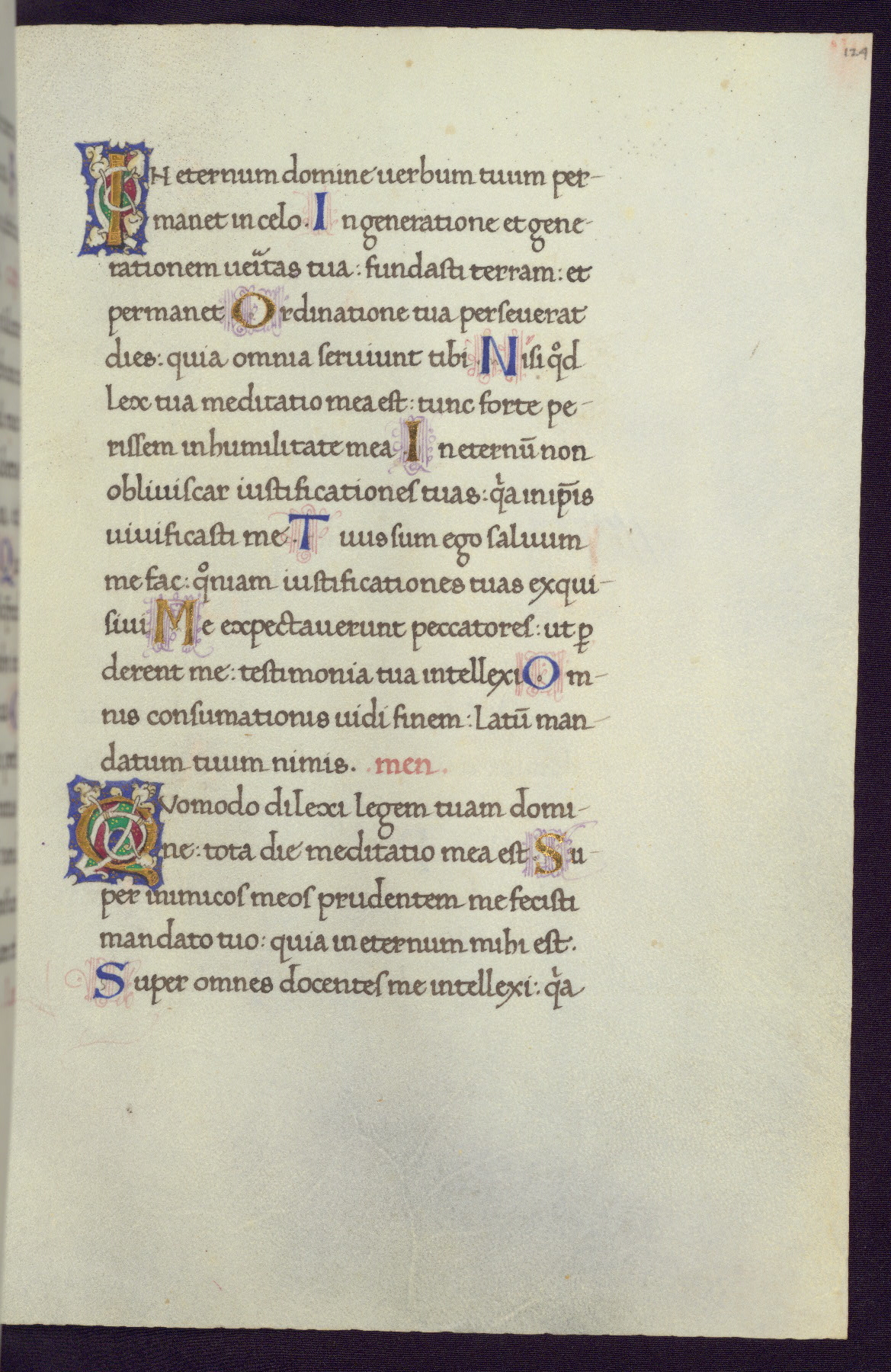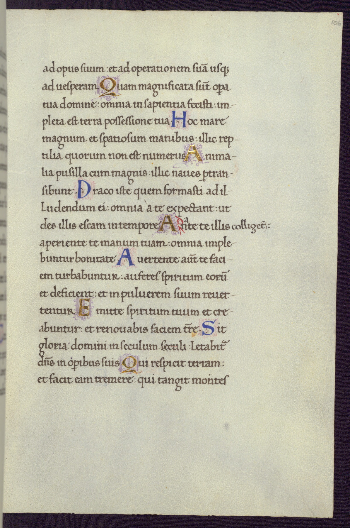 This Psalter was created in Southern Italy, likely Naples, in the last quarter of the fifteenth century. The litany (fols. 158v - 161r) suggests it was for Cistercian use. It contains six high-quality miniatures attributed to the Neopolitan illuminator Cristoforo Magorana (though the historiated initial of David playing a psaltry on fol. 15r may have been done by another hand), who from 1480-1492 worked at the court of Ferdinand I of Aragon. To date, almost forty manuscripts have been attributed to the artist. The Walters manuscript contains two full-page miniatures, one showing the Tree of Jesse and the other the Man of Sorrows. The Tree of Jesse (described in Isaiah 1:11) shows the ancestry of Christ rising from Jesse of Bethlehem, the father of King David who is depicted on the facing folio (171r). In this depiction Jesse is shown on the trunk of the tree, but it actually rises from Abraham. Surrounding Abraham is a crowd of Prophets each with scrolls with verses believed to prophecy the coming of Christ. The miniature with the Man of Sorrows shows Christ standing in his tomb and surrounded by the objects associated with the Passion (arma Christi). The miniature follows a specific Man of Sorrows iconography that originated in an early-fourteenth century mosaic icon from Constantinople that most likely arrived in Italy ca. 1380. The mosaic panel was believed to be an authentic representation of St. Gregory's vision of Christ as the Man of Sorrows, and this type of image encouraged the viewer to meditate on the suffering of Christ while reading the Passion narratives that follow. The humanist script and white-vine initials place the Walters Psalter firmly within the Humanist tradition of the late fifteenth century. Remnants of black velvet suggest this book once had a chemise binding, comparable to W.294 and W.480. Peter Kidd has suggested that the manuscript may have been written by Pietro Ursuleo of Capua (d. 1483).