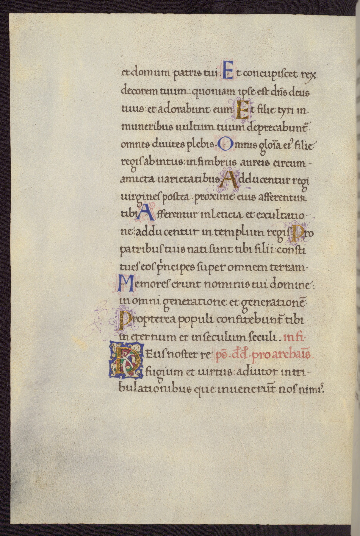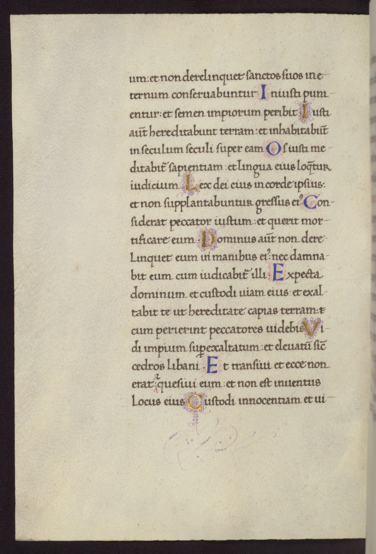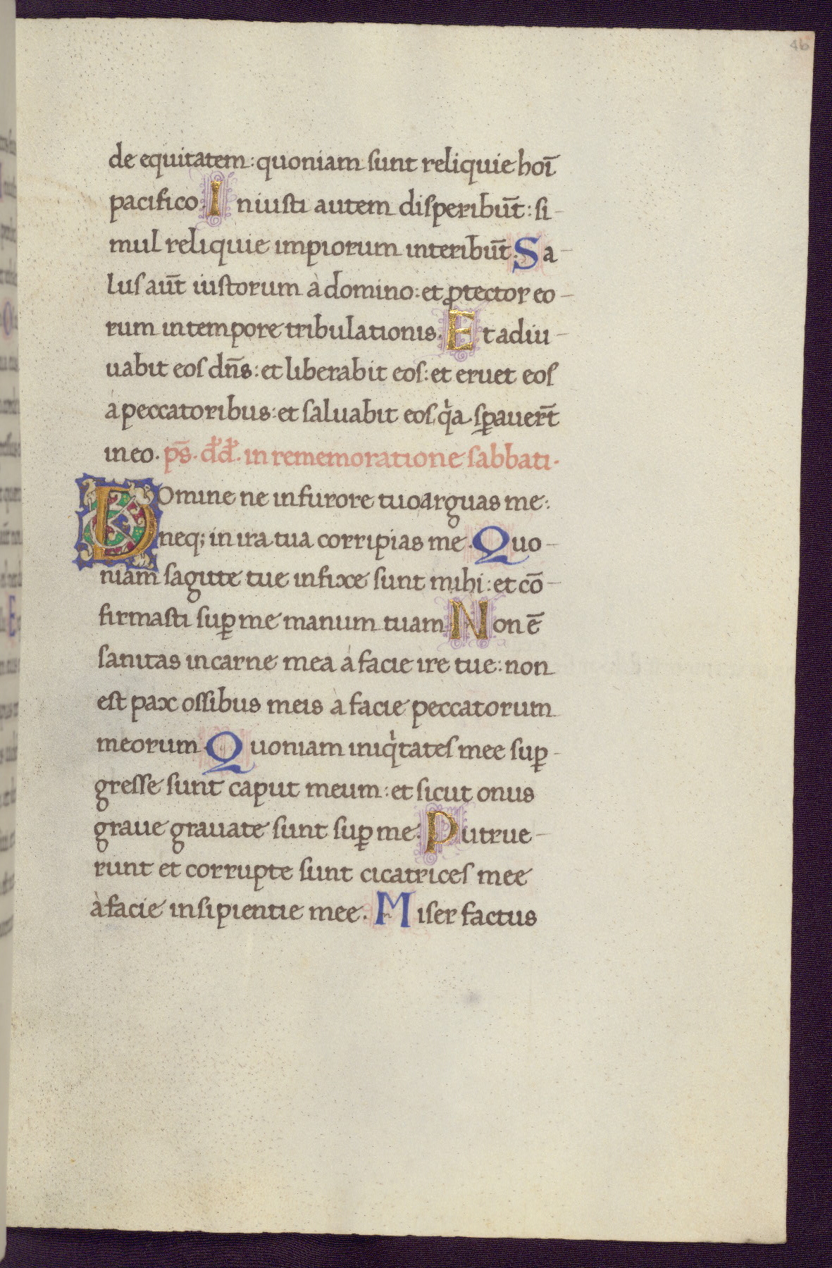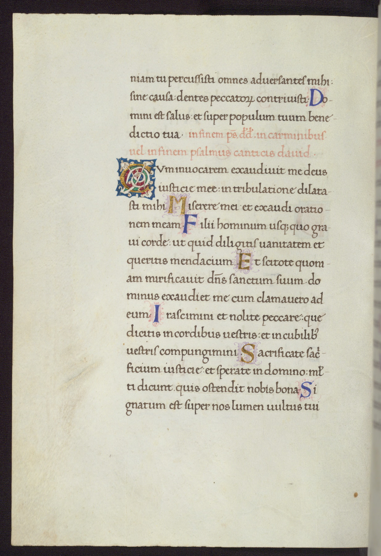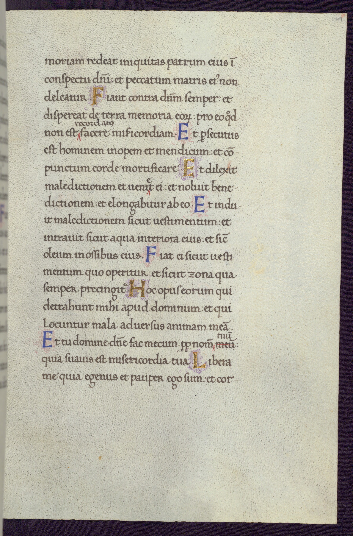 This Psalter was created in Southern Italy, likely Naples, in the last quarter of the fifteenth century. The litany (fols. 158v - 161r) suggests it was for Cistercian use. It contains six high-quality miniatures attributed to the Neopolitan illuminator Cristoforo Magorana (though the historiated initial of David playing a psaltry on fol. 15r may have been done by another hand), who from 1480-1492 worked at the court of Ferdinand I of Aragon. To date, almost forty manuscripts have been attributed to the artist. The Walters manuscript contains two full-page miniatures, one showing the Tree of Jesse and the other the Man of Sorrows. The Tree of Jesse (described in Isaiah 1:11) shows the ancestry of Christ rising from Jesse of Bethlehem, the father of King David who is depicted on the facing folio (171r). In this depiction Jesse is shown on the trunk of the tree, but it actually rises from Abraham. Surrounding Abraham is a crowd of Prophets each with scrolls with verses believed to prophecy the coming of Christ. The miniature with the Man of Sorrows shows Christ standing in his tomb and surrounded by the objects associated with the Passion (arma Christi). The miniature follows a specific Man of Sorrows iconography that originated in an early-fourteenth century mosaic icon from Constantinople that most likely arrived in Italy ca. 1380. The mosaic panel was believed to be an authentic representation of St. Gregory's vision of Christ as the Man of Sorrows, and this type of image encouraged the viewer to meditate on the suffering of Christ while reading the Passion narratives that follow. The humanist script and white-vine initials place the Walters Psalter firmly within the Humanist tradition of the late fifteenth century. Remnants of black velvet suggest this book once had a chemise binding, comparable to W.294 and W.480. Peter Kidd has suggested that the manuscript may have been written by Pietro Ursuleo of Capua (d. 1483).
