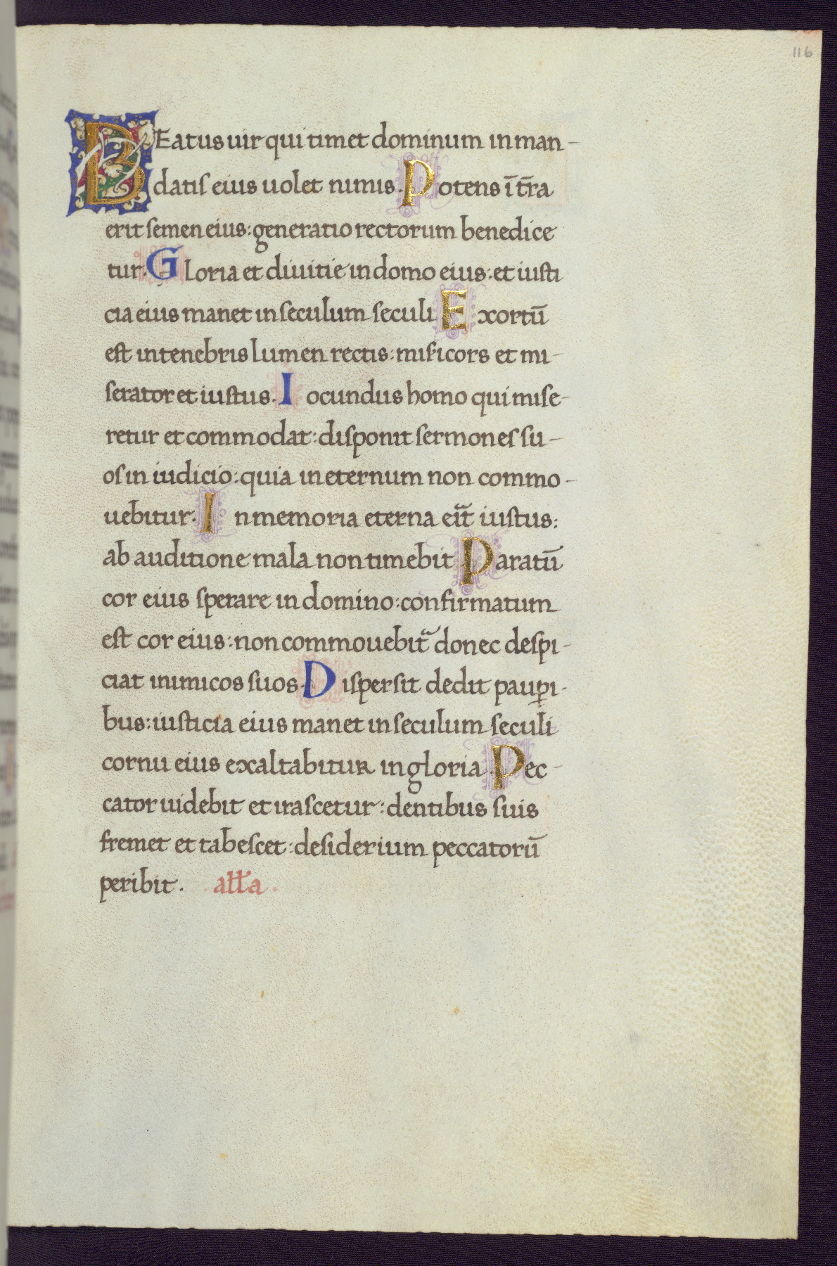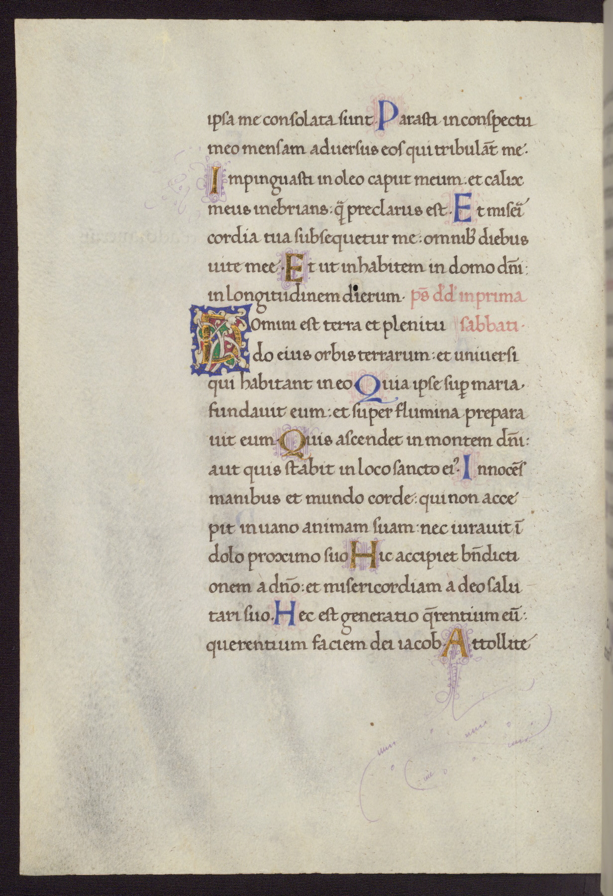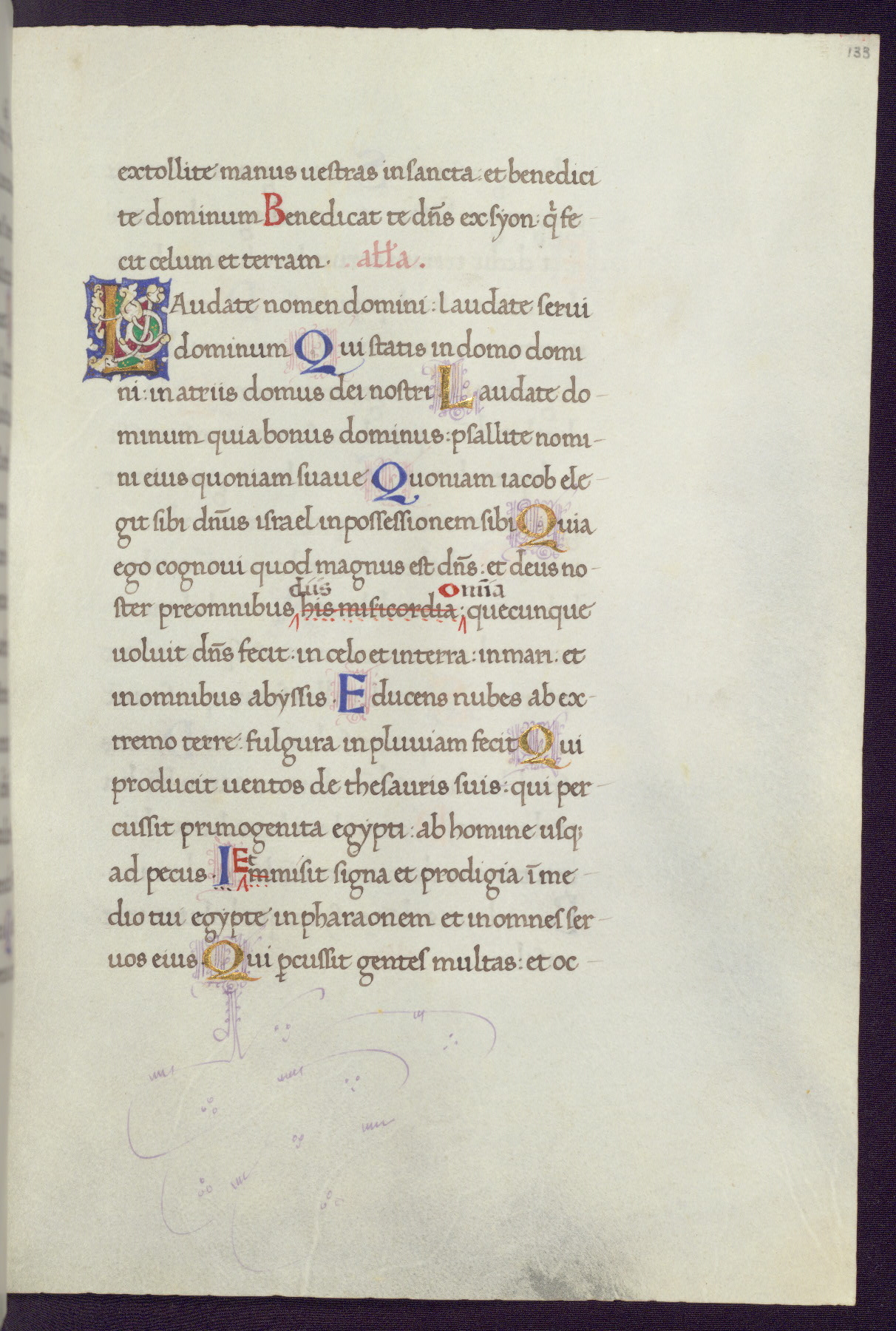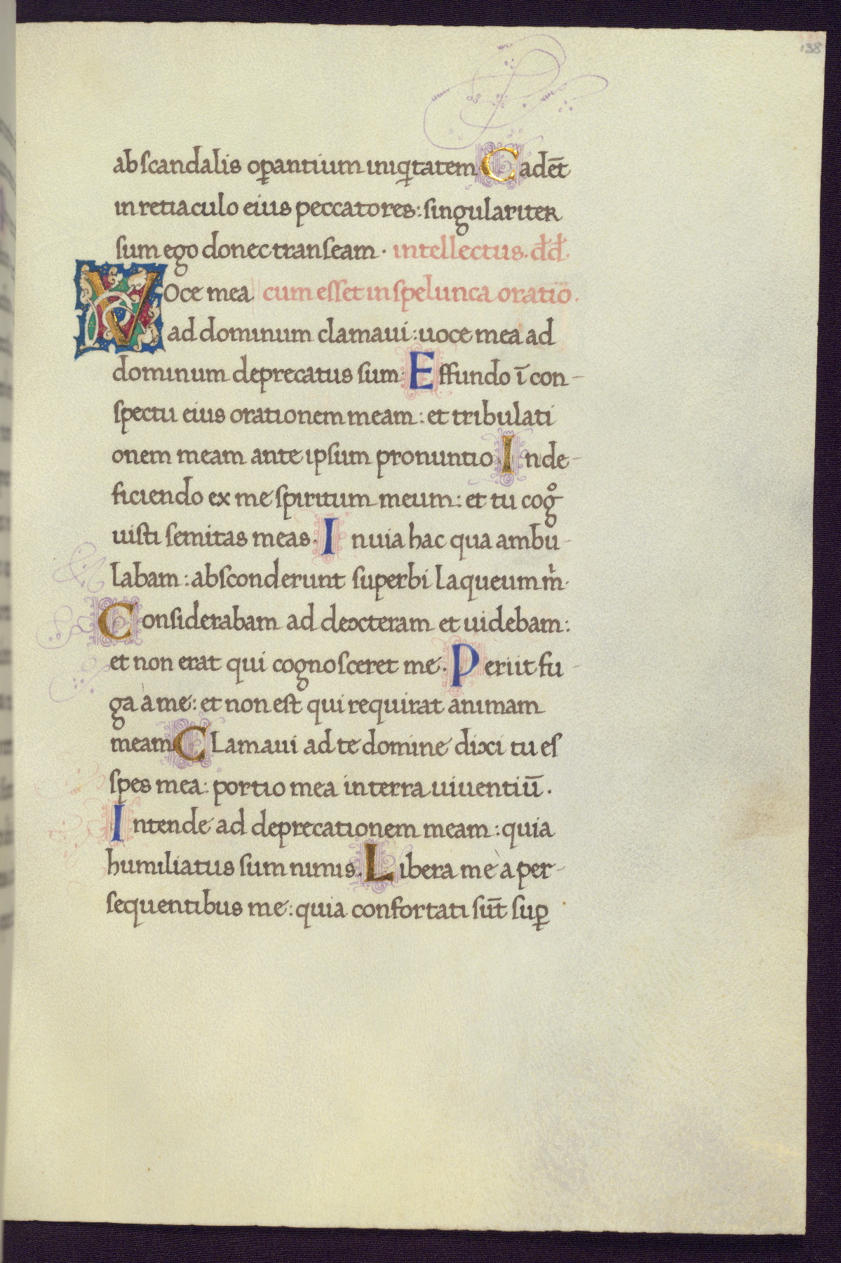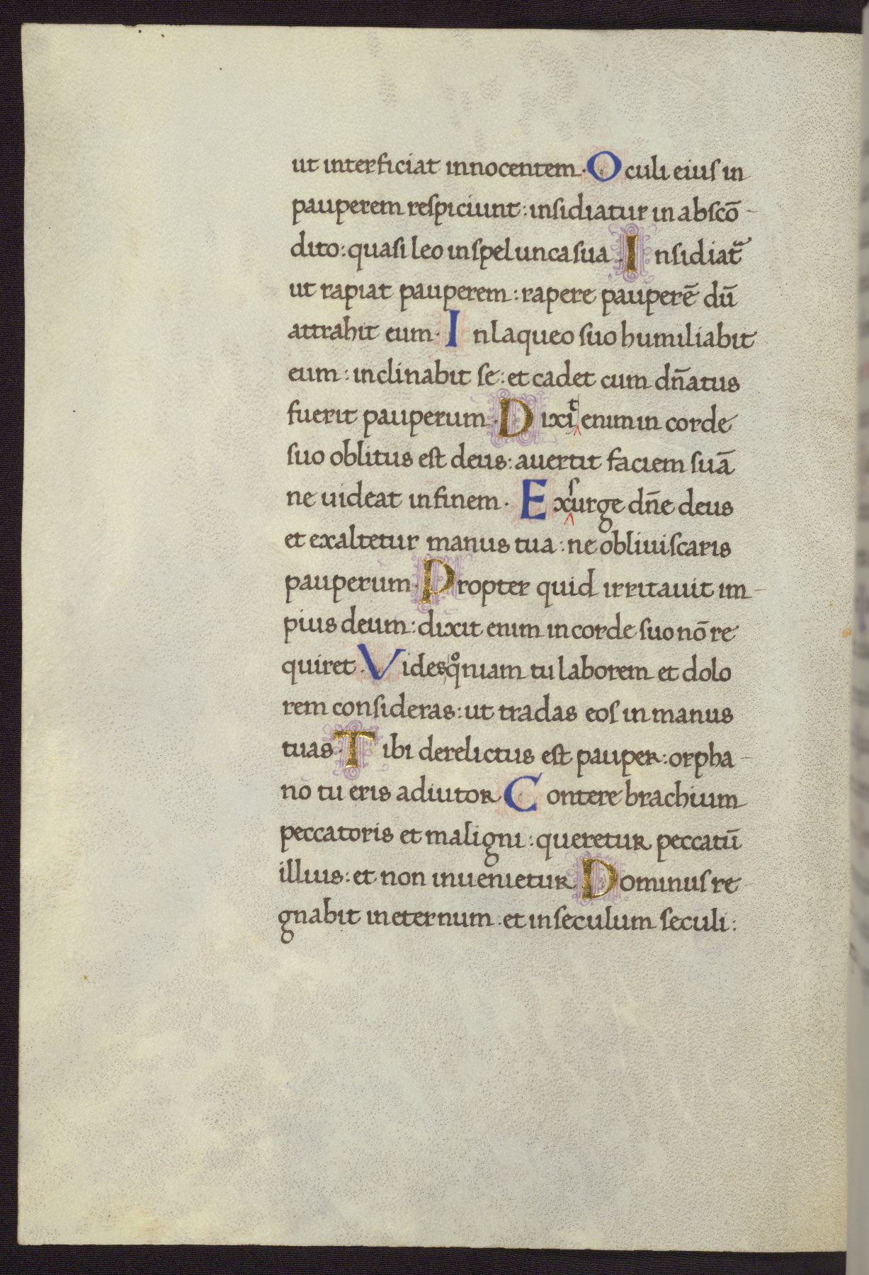 This Psalter was created in Southern Italy, likely Naples, in the last quarter of the fifteenth century. The litany (fols. 158v - 161r) suggests it was for Cistercian use. It contains six high-quality miniatures attributed to the Neopolitan illuminator Cristoforo Magorana (though the historiated initial of David playing a psaltry on fol. 15r may have been done by another hand), who from 1480-1492 worked at the court of Ferdinand I of Aragon. To date, almost forty manuscripts have been attributed to the artist. The Walters manuscript contains two full-page miniatures, one showing the Tree of Jesse and the other the Man of Sorrows. The Tree of Jesse (described in Isaiah 1:11) shows the ancestry of Christ rising from Jesse of Bethlehem, the father of King David who is depicted on the facing folio (171r). In this depiction Jesse is shown on the trunk of the tree, but it actually rises from Abraham. Surrounding Abraham is a crowd of Prophets each with scrolls with verses believed to prophecy the coming of Christ. The miniature with the Man of Sorrows shows Christ standing in his tomb and surrounded by the objects associated with the Passion (arma Christi). The miniature follows a specific Man of Sorrows iconography that originated in an early-fourteenth century mosaic icon from Constantinople that most likely arrived in Italy ca. 1380. The mosaic panel was believed to be an authentic representation of St. Gregory's vision of Christ as the Man of Sorrows, and this type of image encouraged the viewer to meditate on the suffering of Christ while reading the Passion narratives that follow. The humanist script and white-vine initials place the Walters Psalter firmly within the Humanist tradition of the late fifteenth century. Remnants of black velvet suggest this book once had a chemise binding, comparable to W.294 and W.480. Peter Kidd has suggested that the manuscript may have been written by Pietro Ursuleo of Capua (d. 1483).