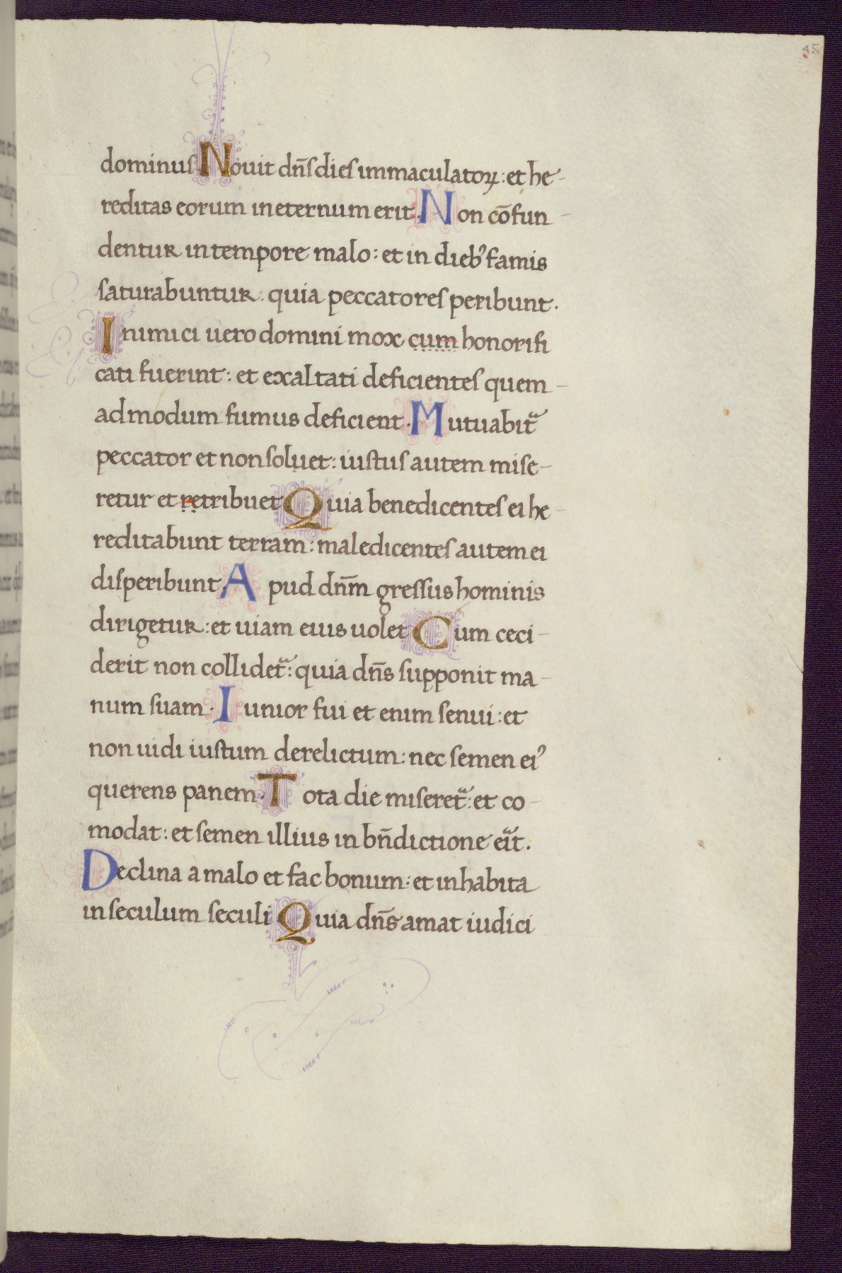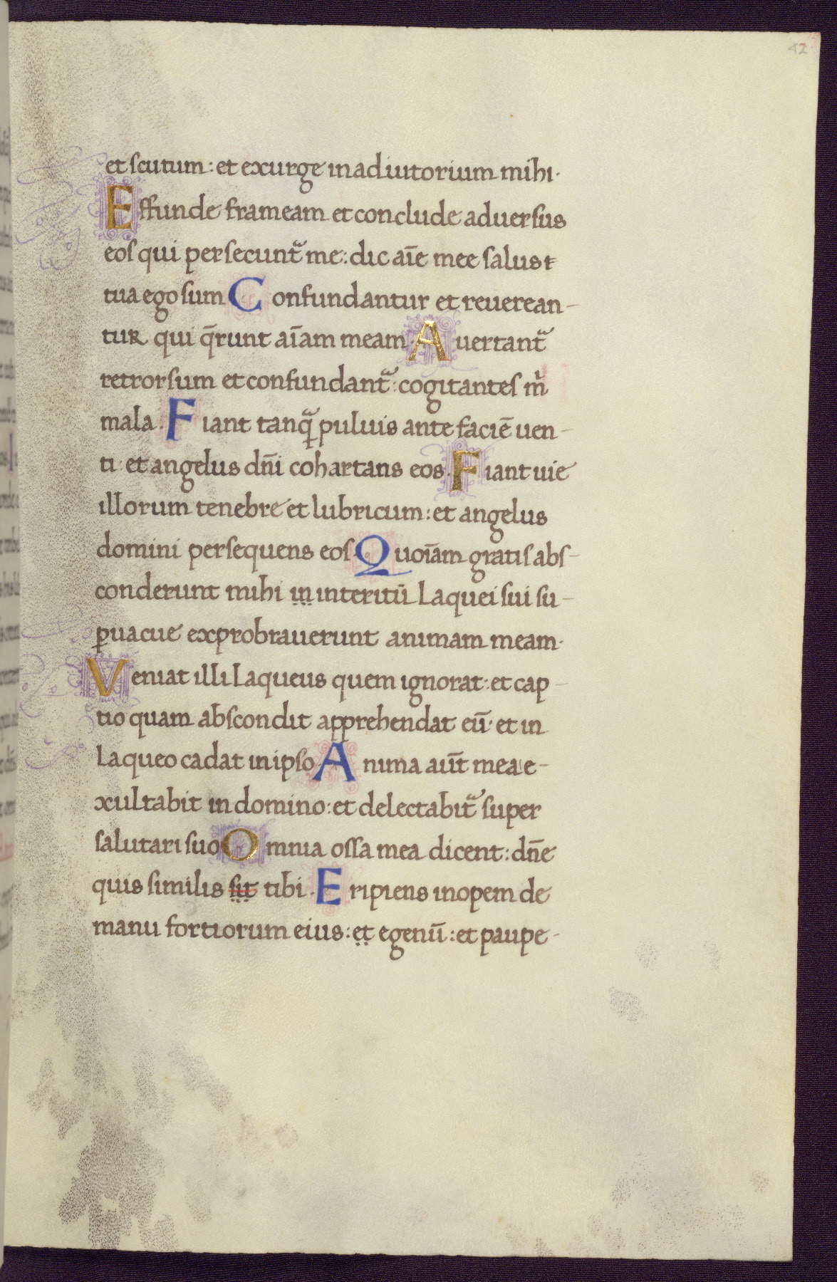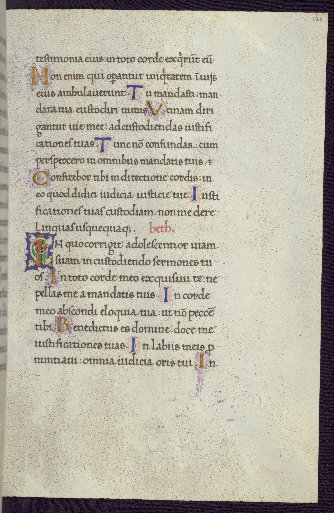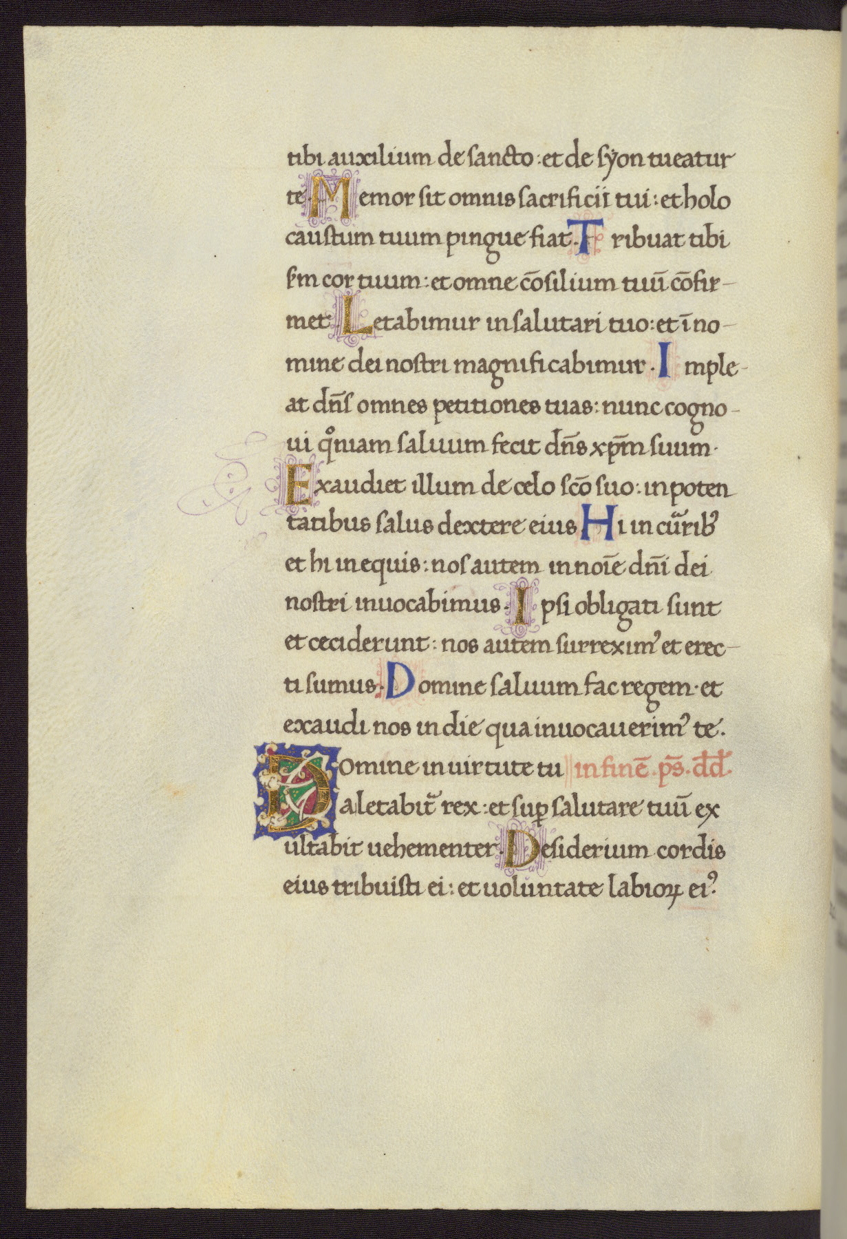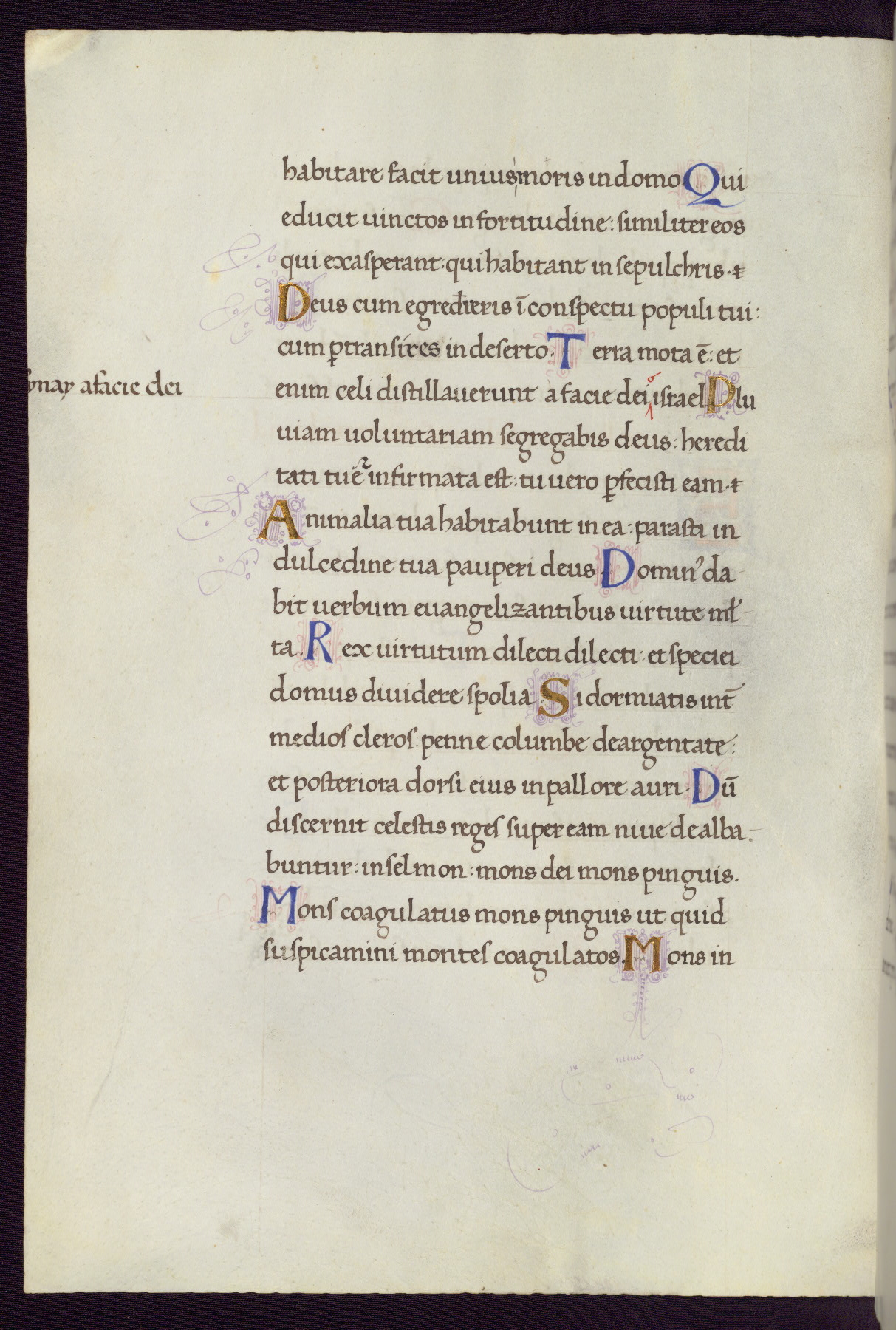 This Psalter was created in Southern Italy, likely Naples, in the last quarter of the fifteenth century. The litany (fols. 158v - 161r) suggests it was for Cistercian use. It contains six high-quality miniatures attributed to the Neopolitan illuminator Cristoforo Magorana (though the historiated initial of David playing a psaltry on fol. 15r may have been done by another hand), who from 1480-1492 worked at the court of Ferdinand I of Aragon. To date, almost forty manuscripts have been attributed to the artist. The Walters manuscript contains two full-page miniatures, one showing the Tree of Jesse and the other the Man of Sorrows. The Tree of Jesse (described in Isaiah 1:11) shows the ancestry of Christ rising from Jesse of Bethlehem, the father of King David who is depicted on the facing folio (171r). In this depiction Jesse is shown on the trunk of the tree, but it actually rises from Abraham. Surrounding Abraham is a crowd of Prophets each with scrolls with verses believed to prophecy the coming of Christ. The miniature with the Man of Sorrows shows Christ standing in his tomb and surrounded by the objects associated with the Passion (arma Christi). The miniature follows a specific Man of Sorrows iconography that originated in an early-fourteenth century mosaic icon from Constantinople that most likely arrived in Italy ca. 1380. The mosaic panel was believed to be an authentic representation of St. Gregory's vision of Christ as the Man of Sorrows, and this type of image encouraged the viewer to meditate on the suffering of Christ while reading the Passion narratives that follow. The humanist script and white-vine initials place the Walters Psalter firmly within the Humanist tradition of the late fifteenth century. Remnants of black velvet suggest this book once had a chemise binding, comparable to W.294 and W.480. Peter Kidd has suggested that the manuscript may have been written by Pietro Ursuleo of Capua (d. 1483).