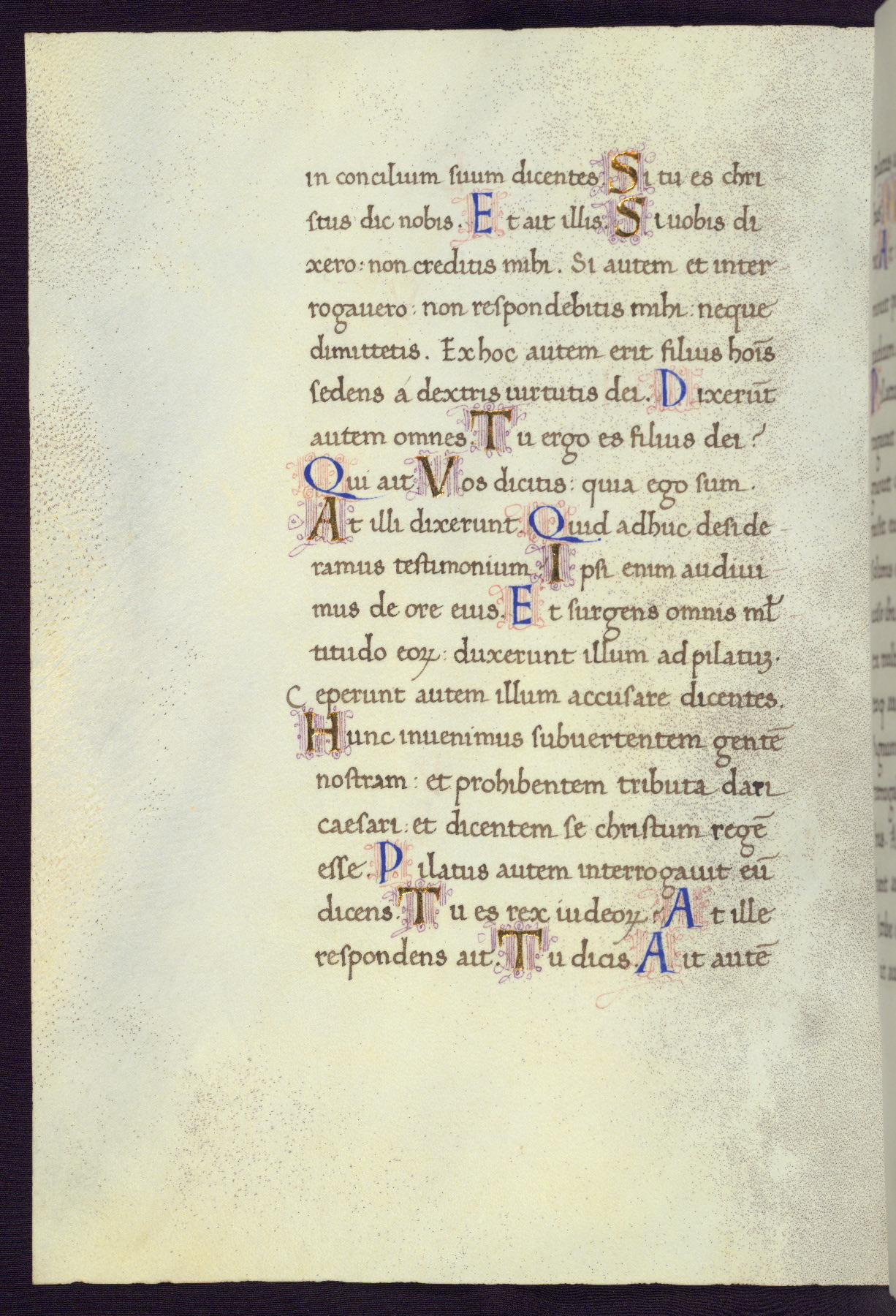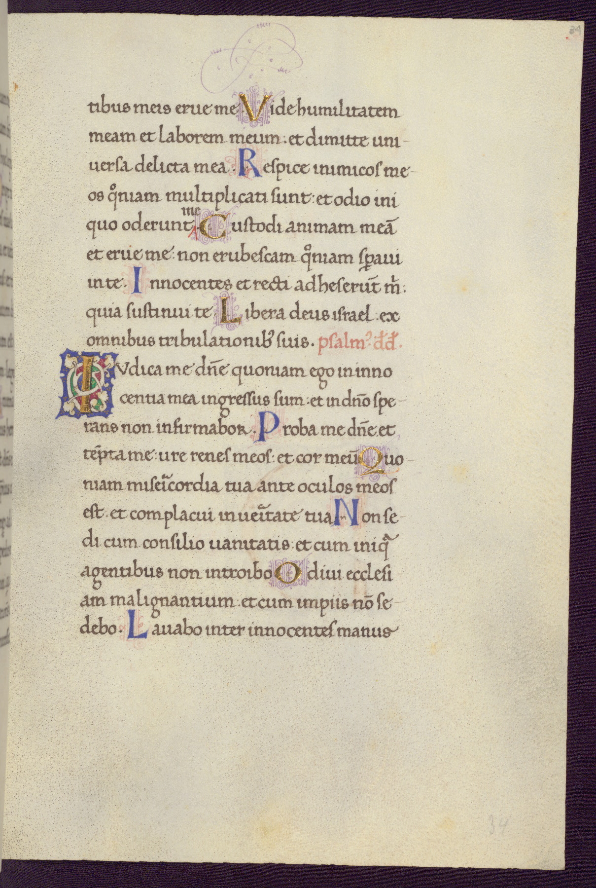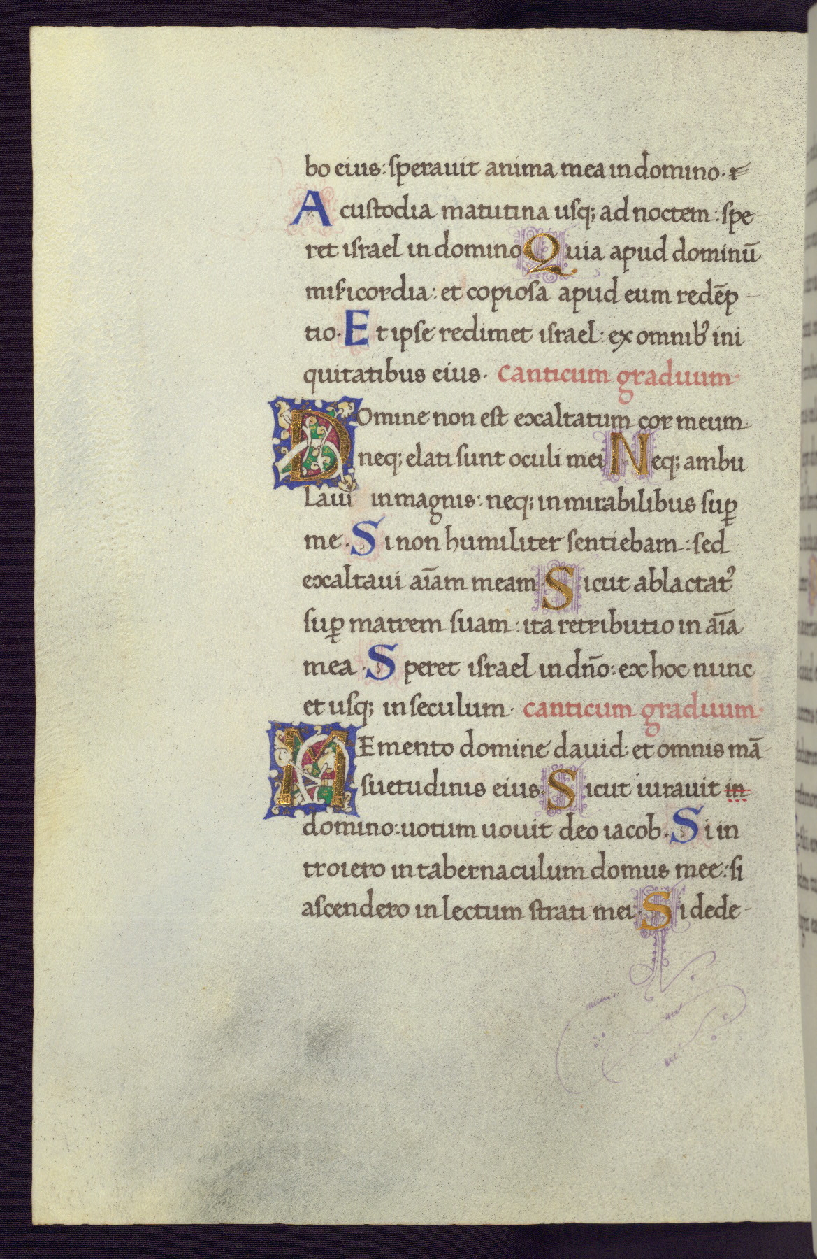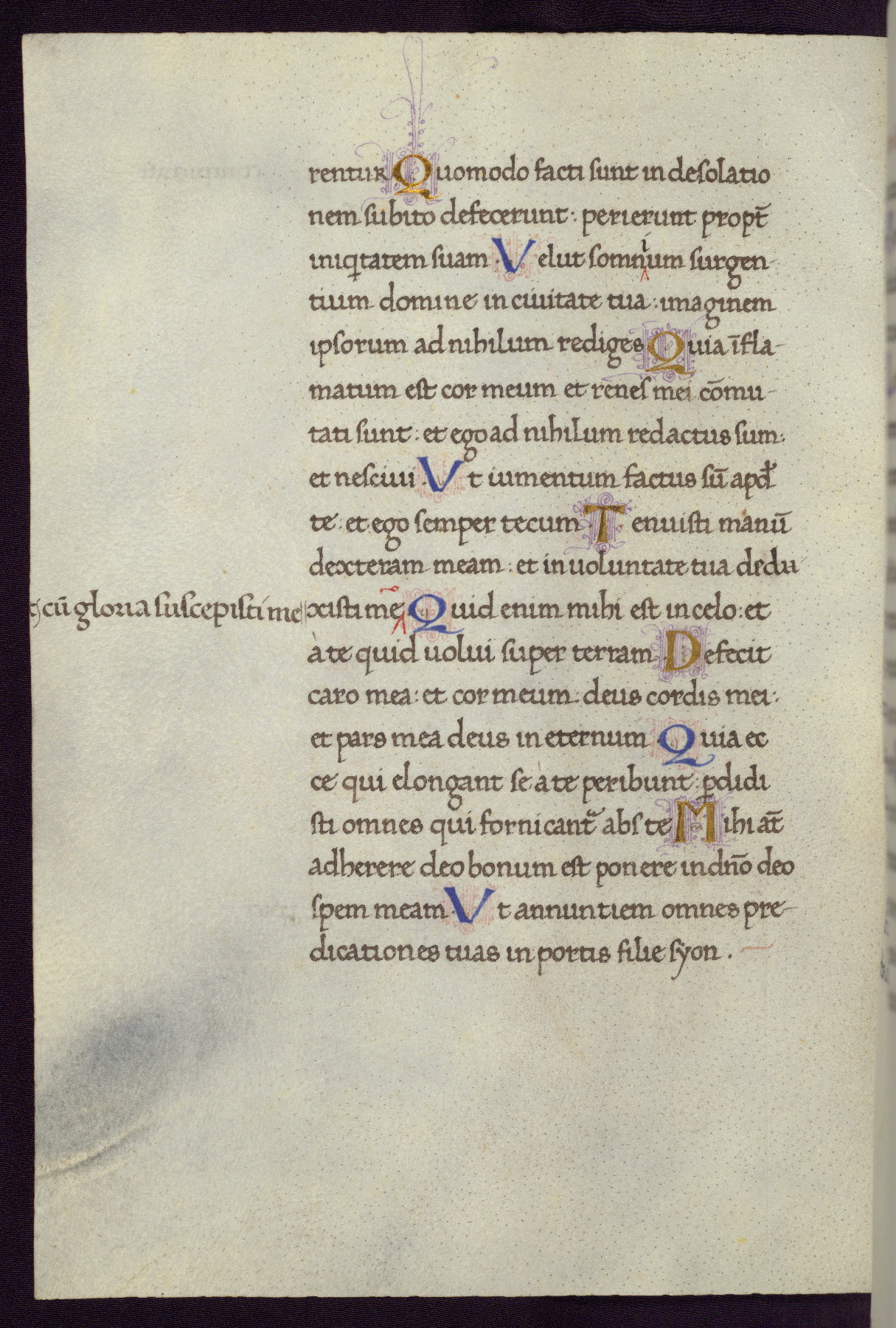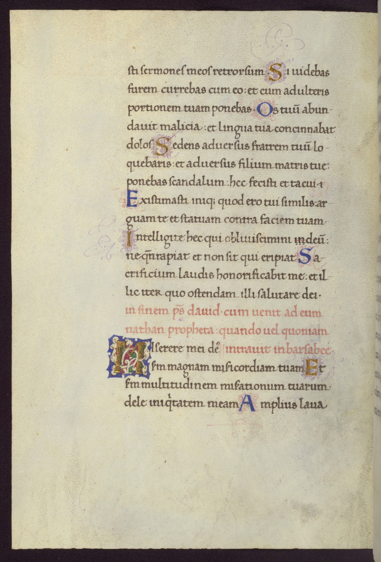 This Psalter was created in Southern Italy, likely Naples, in the last quarter of the fifteenth century. The litany (fols. 158v - 161r) suggests it was for Cistercian use. It contains six high-quality miniatures attributed to the Neopolitan illuminator Cristoforo Magorana (though the historiated initial of David playing a psaltry on fol. 15r may have been done by another hand), who from 1480-1492 worked at the court of Ferdinand I of Aragon. To date, almost forty manuscripts have been attributed to the artist. The Walters manuscript contains two full-page miniatures, one showing the Tree of Jesse and the other the Man of Sorrows. The Tree of Jesse (described in Isaiah 1:11) shows the ancestry of Christ rising from Jesse of Bethlehem, the father of King David who is depicted on the facing folio (171r). In this depiction Jesse is shown on the trunk of the tree, but it actually rises from Abraham. Surrounding Abraham is a crowd of Prophets each with scrolls with verses believed to prophecy the coming of Christ. The miniature with the Man of Sorrows shows Christ standing in his tomb and surrounded by the objects associated with the Passion (arma Christi). The miniature follows a specific Man of Sorrows iconography that originated in an early-fourteenth century mosaic icon from Constantinople that most likely arrived in Italy ca. 1380. The mosaic panel was believed to be an authentic representation of St. Gregory's vision of Christ as the Man of Sorrows, and this type of image encouraged the viewer to meditate on the suffering of Christ while reading the Passion narratives that follow. The humanist script and white-vine initials place the Walters Psalter firmly within the Humanist tradition of the late fifteenth century. Remnants of black velvet suggest this book once had a chemise binding, comparable to W.294 and W.480. Peter Kidd has suggested that the manuscript may have been written by Pietro Ursuleo of Capua (d. 1483).