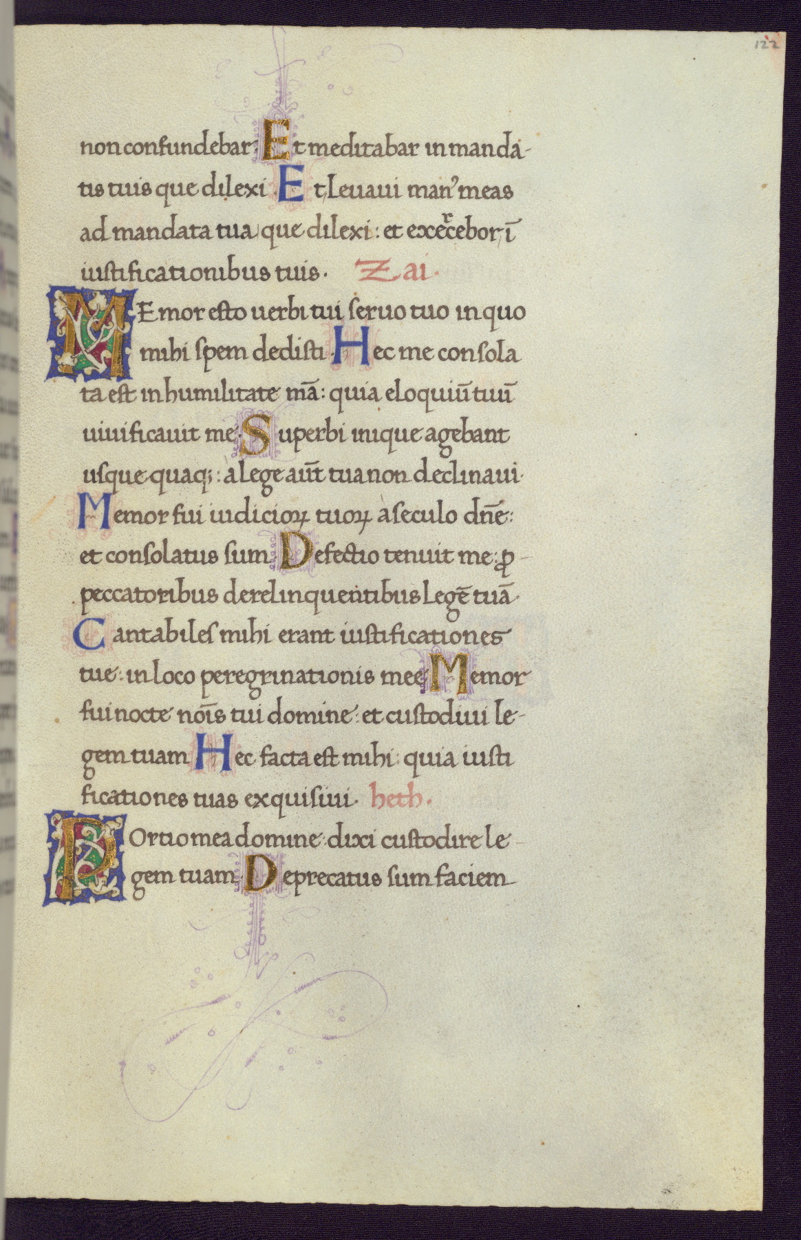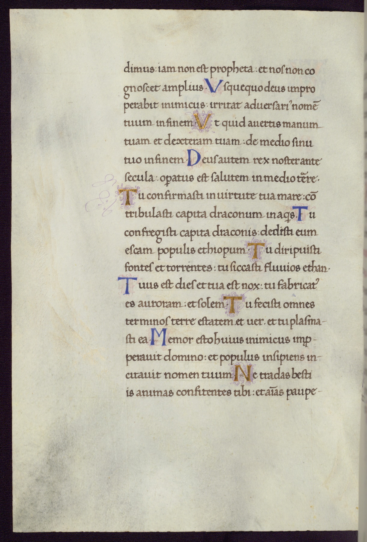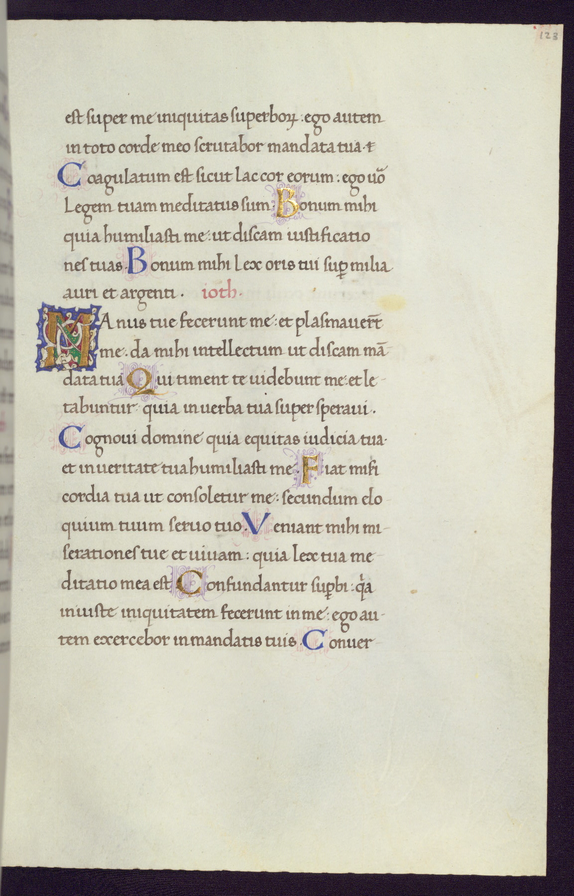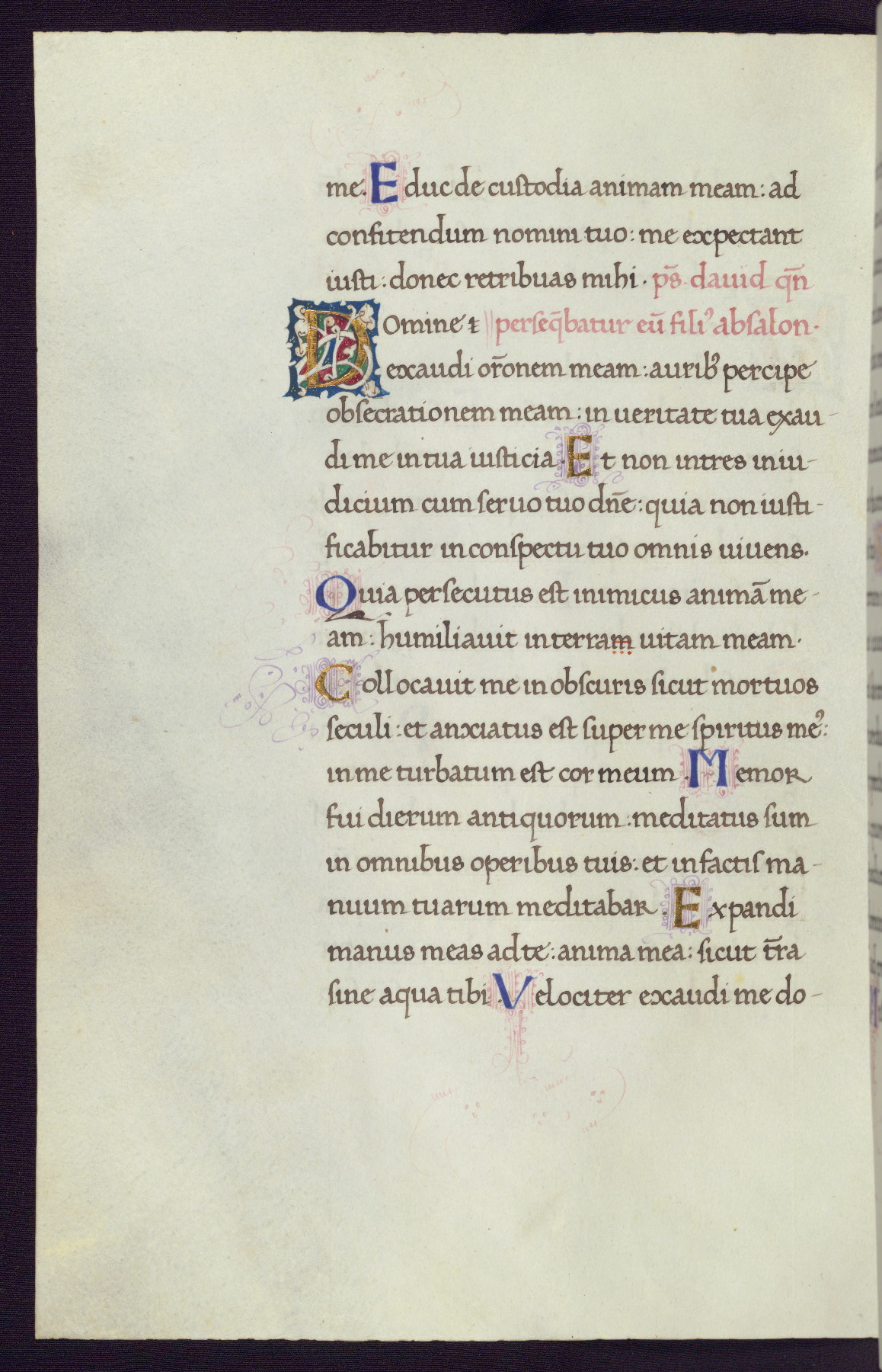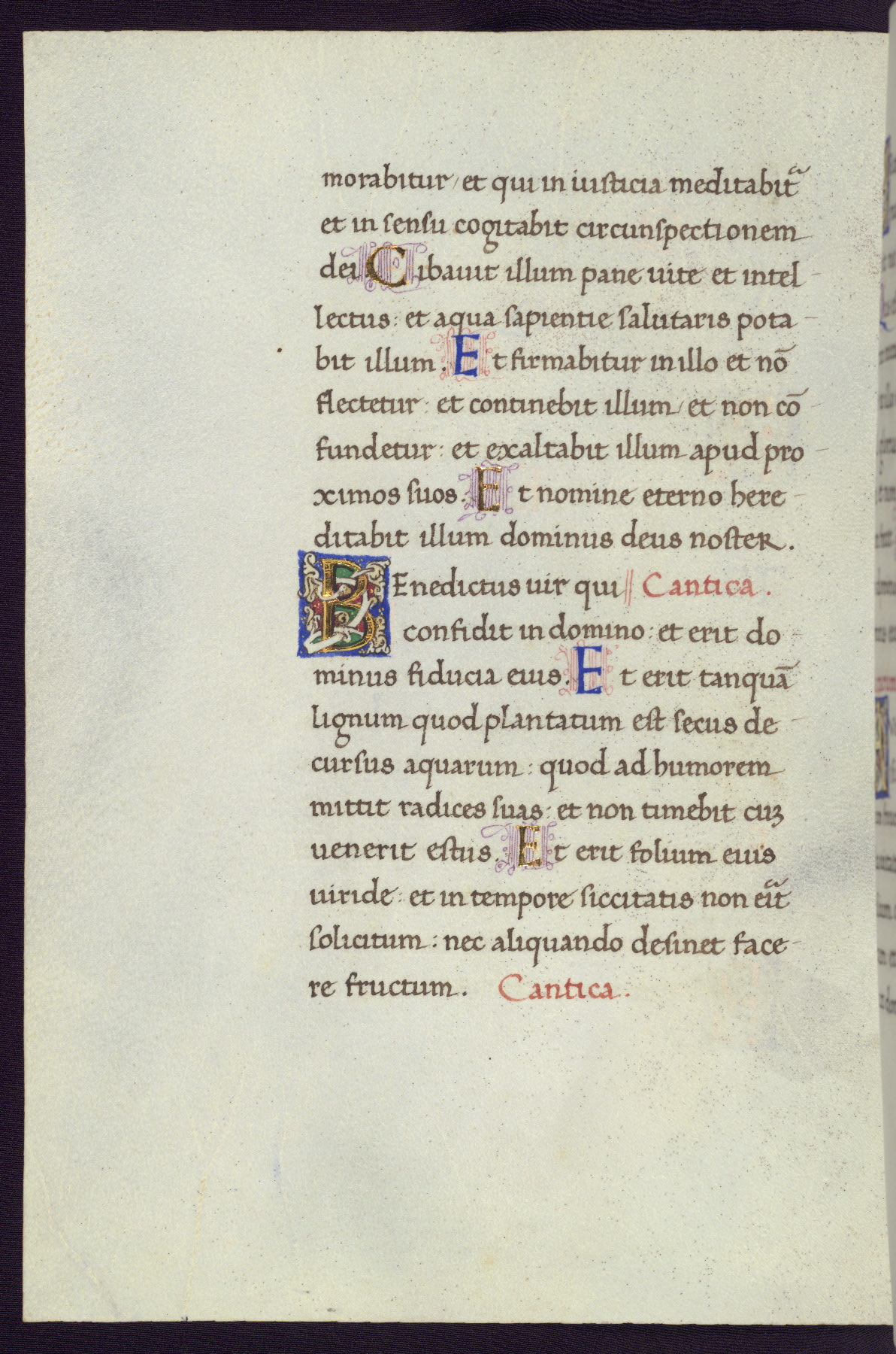 This Psalter was created in Southern Italy, likely Naples, in the last quarter of the fifteenth century. The litany (fols. 158v - 161r) suggests it was for Cistercian use. It contains six high-quality miniatures attributed to the Neopolitan illuminator Cristoforo Magorana (though the historiated initial of David playing a psaltry on fol. 15r may have been done by another hand), who from 1480-1492 worked at the court of Ferdinand I of Aragon. To date, almost forty manuscripts have been attributed to the artist. The Walters manuscript contains two full-page miniatures, one showing the Tree of Jesse and the other the Man of Sorrows. The Tree of Jesse (described in Isaiah 1:11) shows the ancestry of Christ rising from Jesse of Bethlehem, the father of King David who is depicted on the facing folio (171r). In this depiction Jesse is shown on the trunk of the tree, but it actually rises from Abraham. Surrounding Abraham is a crowd of Prophets each with scrolls with verses believed to prophecy the coming of Christ. The miniature with the Man of Sorrows shows Christ standing in his tomb and surrounded by the objects associated with the Passion (arma Christi). The miniature follows a specific Man of Sorrows iconography that originated in an early-fourteenth century mosaic icon from Constantinople that most likely arrived in Italy ca. 1380. The mosaic panel was believed to be an authentic representation of St. Gregory's vision of Christ as the Man of Sorrows, and this type of image encouraged the viewer to meditate on the suffering of Christ while reading the Passion narratives that follow. The humanist script and white-vine initials place the Walters Psalter firmly within the Humanist tradition of the late fifteenth century. Remnants of black velvet suggest this book once had a chemise binding, comparable to W.294 and W.480. Peter Kidd has suggested that the manuscript may have been written by Pietro Ursuleo of Capua (d. 1483).