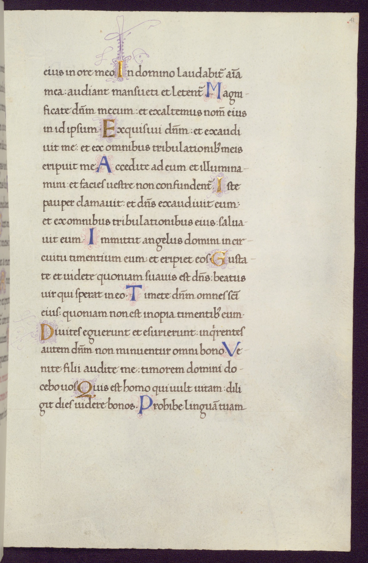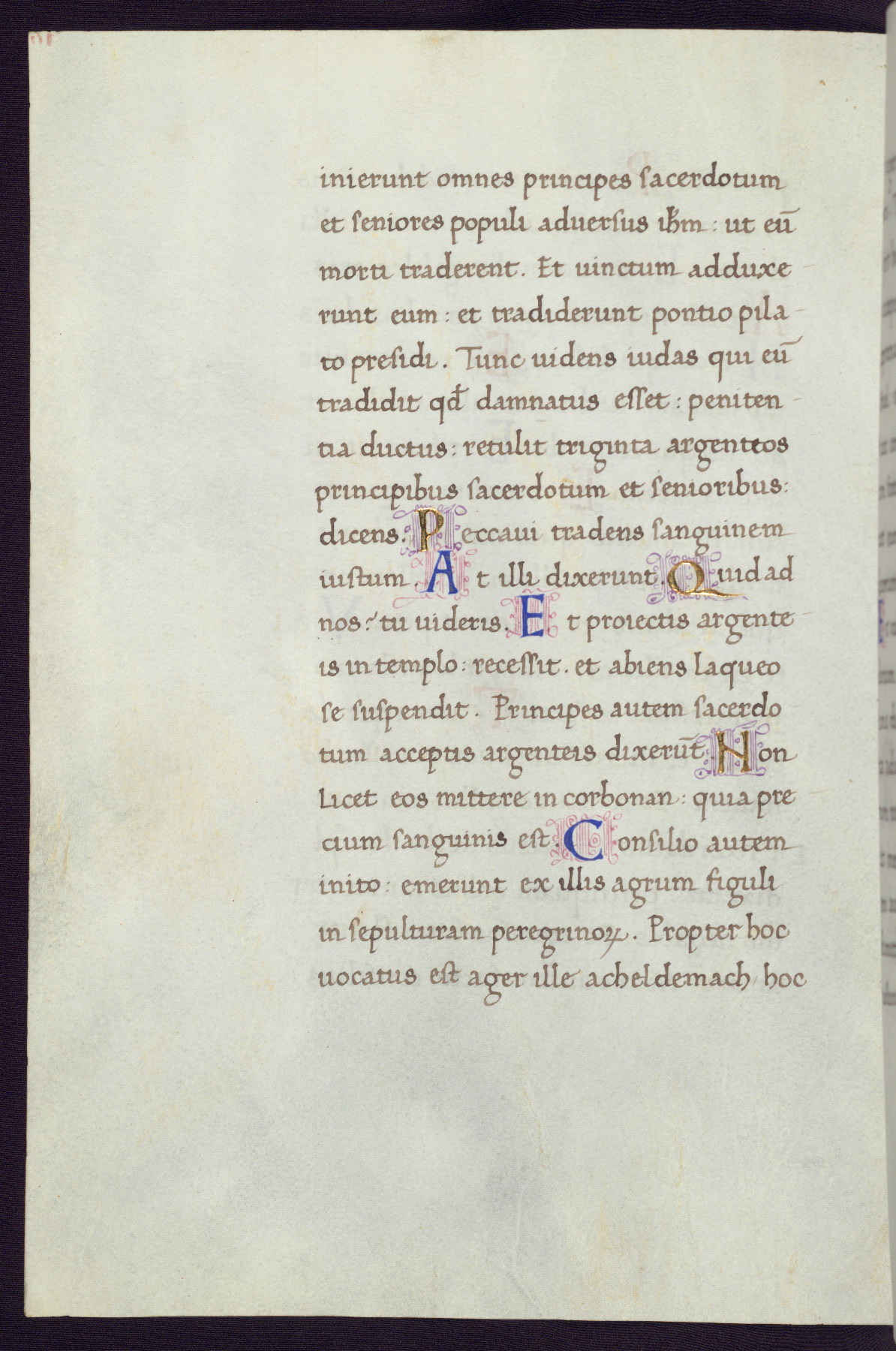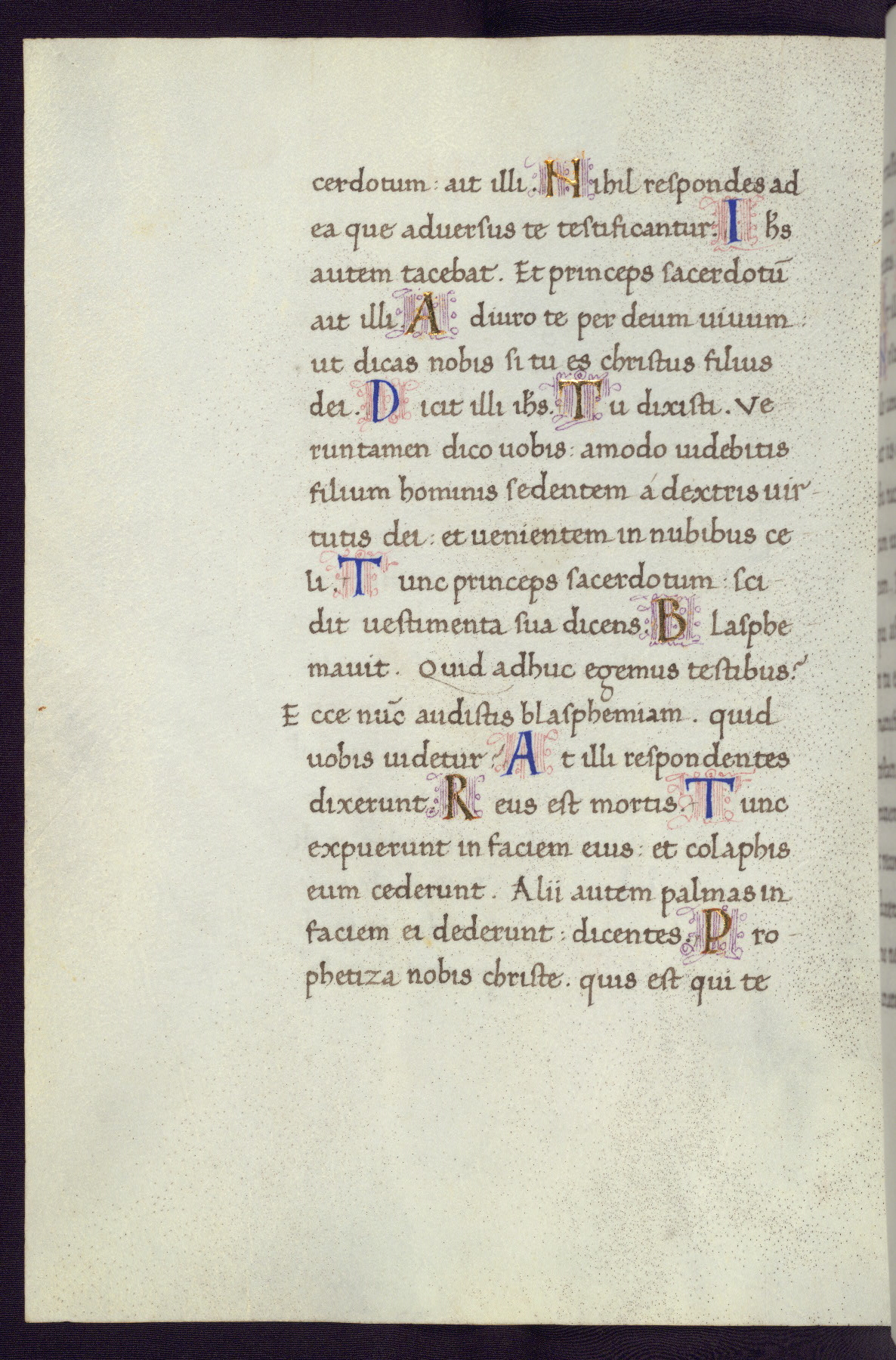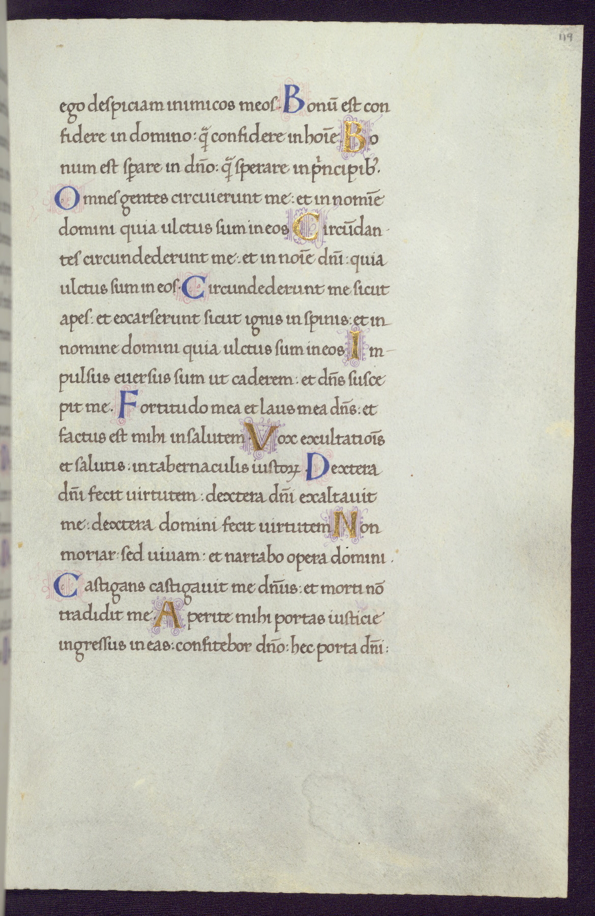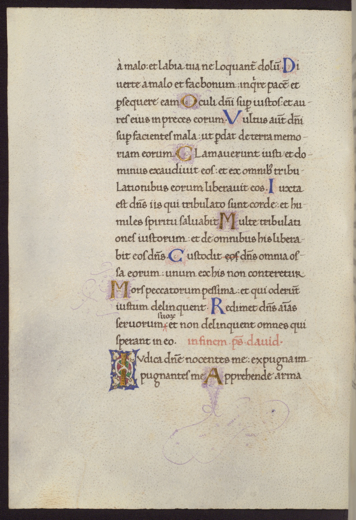 This Psalter was created in Southern Italy, likely Naples, in the last quarter of the fifteenth century. The litany (fols. 158v - 161r) suggests it was for Cistercian use. It contains six high-quality miniatures attributed to the Neopolitan illuminator Cristoforo Magorana (though the historiated initial of David playing a psaltry on fol. 15r may have been done by another hand), who from 1480-1492 worked at the court of Ferdinand I of Aragon. To date, almost forty manuscripts have been attributed to the artist. The Walters manuscript contains two full-page miniatures, one showing the Tree of Jesse and the other the Man of Sorrows. The Tree of Jesse (described in Isaiah 1:11) shows the ancestry of Christ rising from Jesse of Bethlehem, the father of King David who is depicted on the facing folio (171r). In this depiction Jesse is shown on the trunk of the tree, but it actually rises from Abraham. Surrounding Abraham is a crowd of Prophets each with scrolls with verses believed to prophecy the coming of Christ. The miniature with the Man of Sorrows shows Christ standing in his tomb and surrounded by the objects associated with the Passion (arma Christi). The miniature follows a specific Man of Sorrows iconography that originated in an early-fourteenth century mosaic icon from Constantinople that most likely arrived in Italy ca. 1380. The mosaic panel was believed to be an authentic representation of St. Gregory's vision of Christ as the Man of Sorrows, and this type of image encouraged the viewer to meditate on the suffering of Christ while reading the Passion narratives that follow. The humanist script and white-vine initials place the Walters Psalter firmly within the Humanist tradition of the late fifteenth century. Remnants of black velvet suggest this book once had a chemise binding, comparable to W.294 and W.480. Peter Kidd has suggested that the manuscript may have been written by Pietro Ursuleo of Capua (d. 1483).