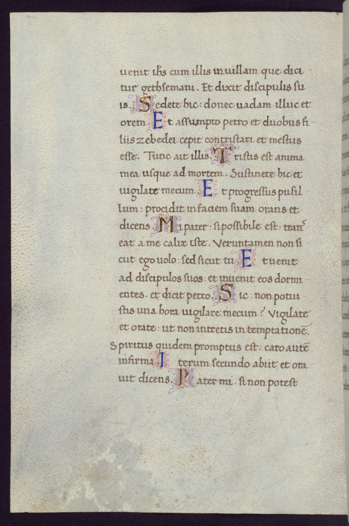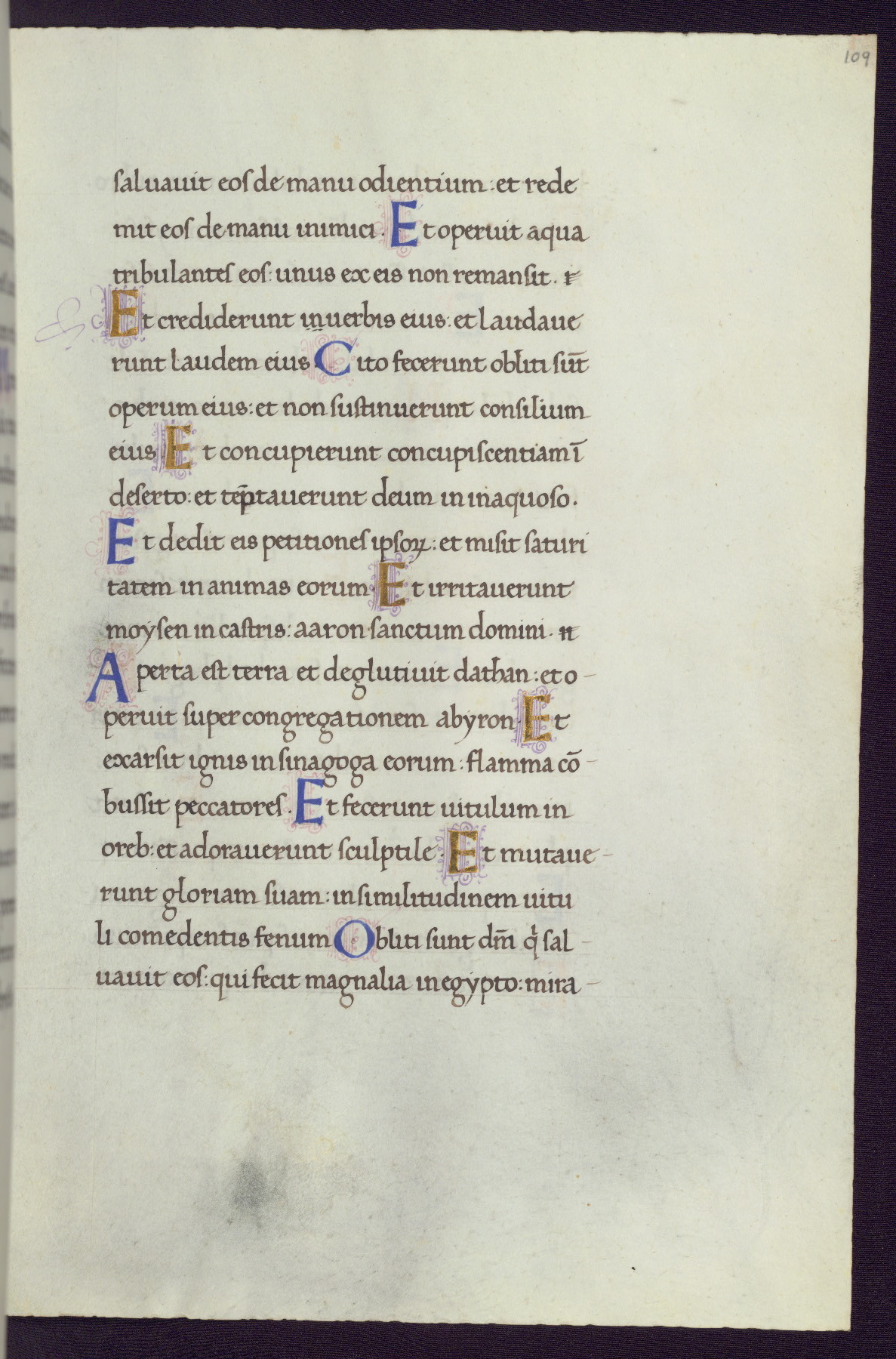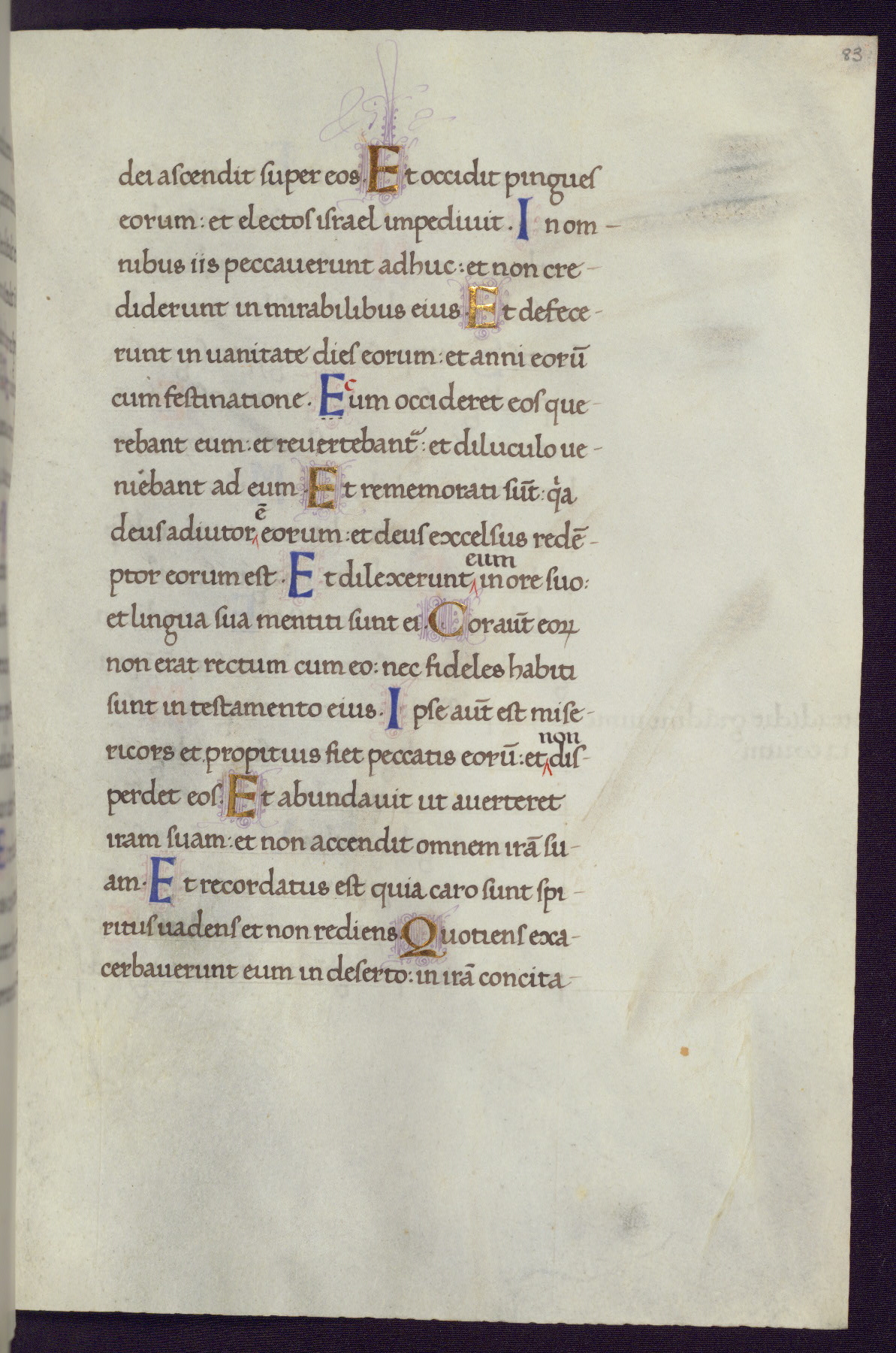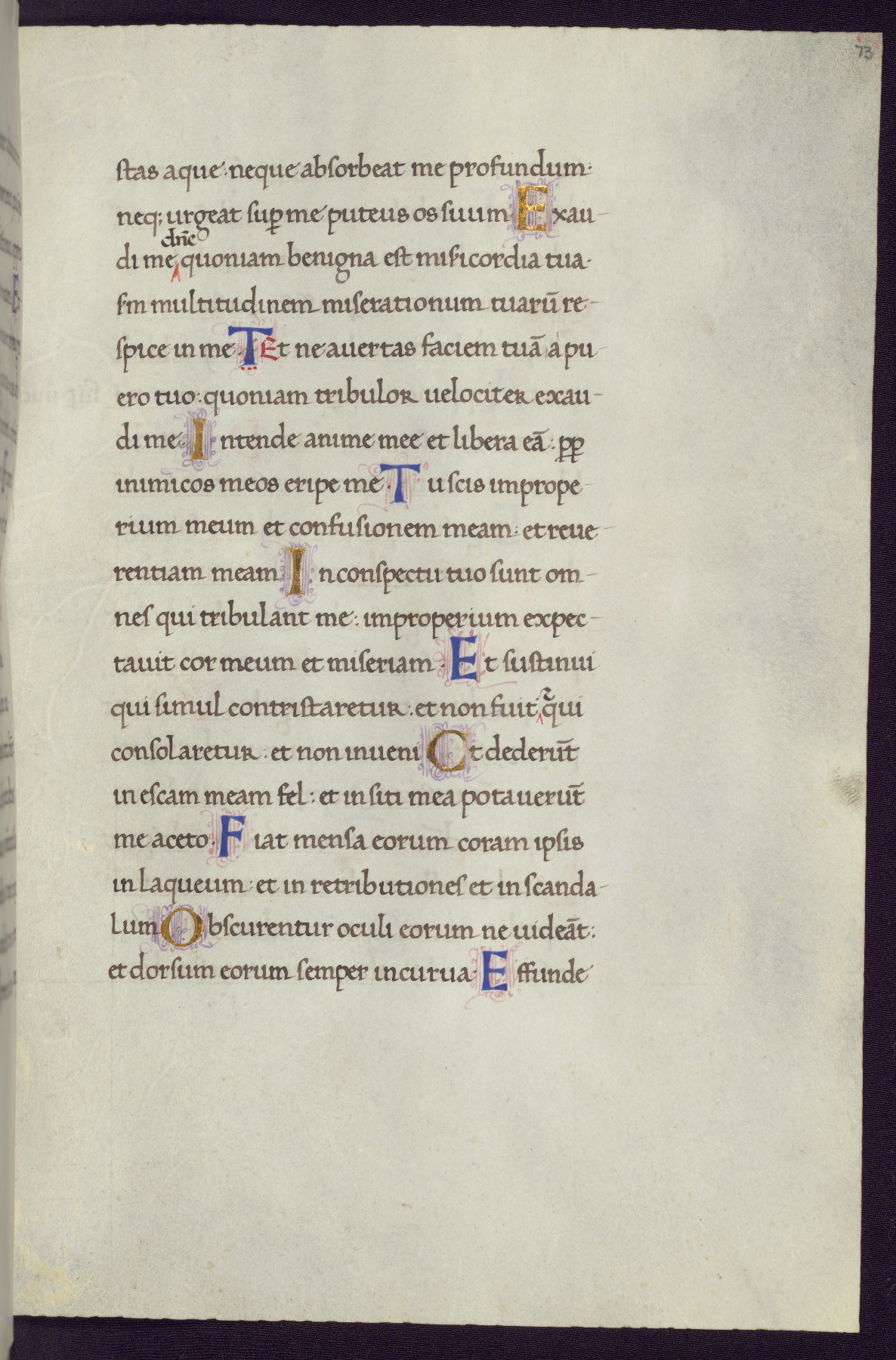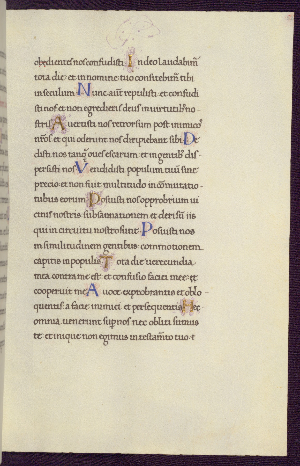 This Psalter was created in Southern Italy, likely Naples, in the last quarter of the fifteenth century. The litany (fols. 158v - 161r) suggests it was for Cistercian use. It contains six high-quality miniatures attributed to the Neopolitan illuminator Cristoforo Magorana (though the historiated initial of David playing a psaltry on fol. 15r may have been done by another hand), who from 1480-1492 worked at the court of Ferdinand I of Aragon. To date, almost forty manuscripts have been attributed to the artist. The Walters manuscript contains two full-page miniatures, one showing the Tree of Jesse and the other the Man of Sorrows. The Tree of Jesse (described in Isaiah 1:11) shows the ancestry of Christ rising from Jesse of Bethlehem, the father of King David who is depicted on the facing folio (171r). In this depiction Jesse is shown on the trunk of the tree, but it actually rises from Abraham. Surrounding Abraham is a crowd of Prophets each with scrolls with verses believed to prophecy the coming of Christ. The miniature with the Man of Sorrows shows Christ standing in his tomb and surrounded by the objects associated with the Passion (arma Christi). The miniature follows a specific Man of Sorrows iconography that originated in an early-fourteenth century mosaic icon from Constantinople that most likely arrived in Italy ca. 1380. The mosaic panel was believed to be an authentic representation of St. Gregory's vision of Christ as the Man of Sorrows, and this type of image encouraged the viewer to meditate on the suffering of Christ while reading the Passion narratives that follow. The humanist script and white-vine initials place the Walters Psalter firmly within the Humanist tradition of the late fifteenth century. Remnants of black velvet suggest this book once had a chemise binding, comparable to W.294 and W.480. Peter Kidd has suggested that the manuscript may have been written by Pietro Ursuleo of Capua (d. 1483).
