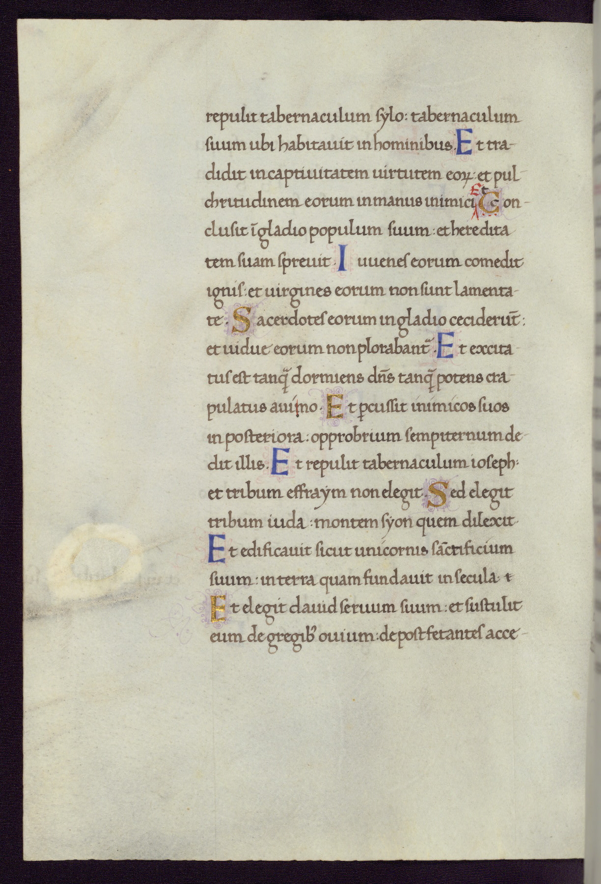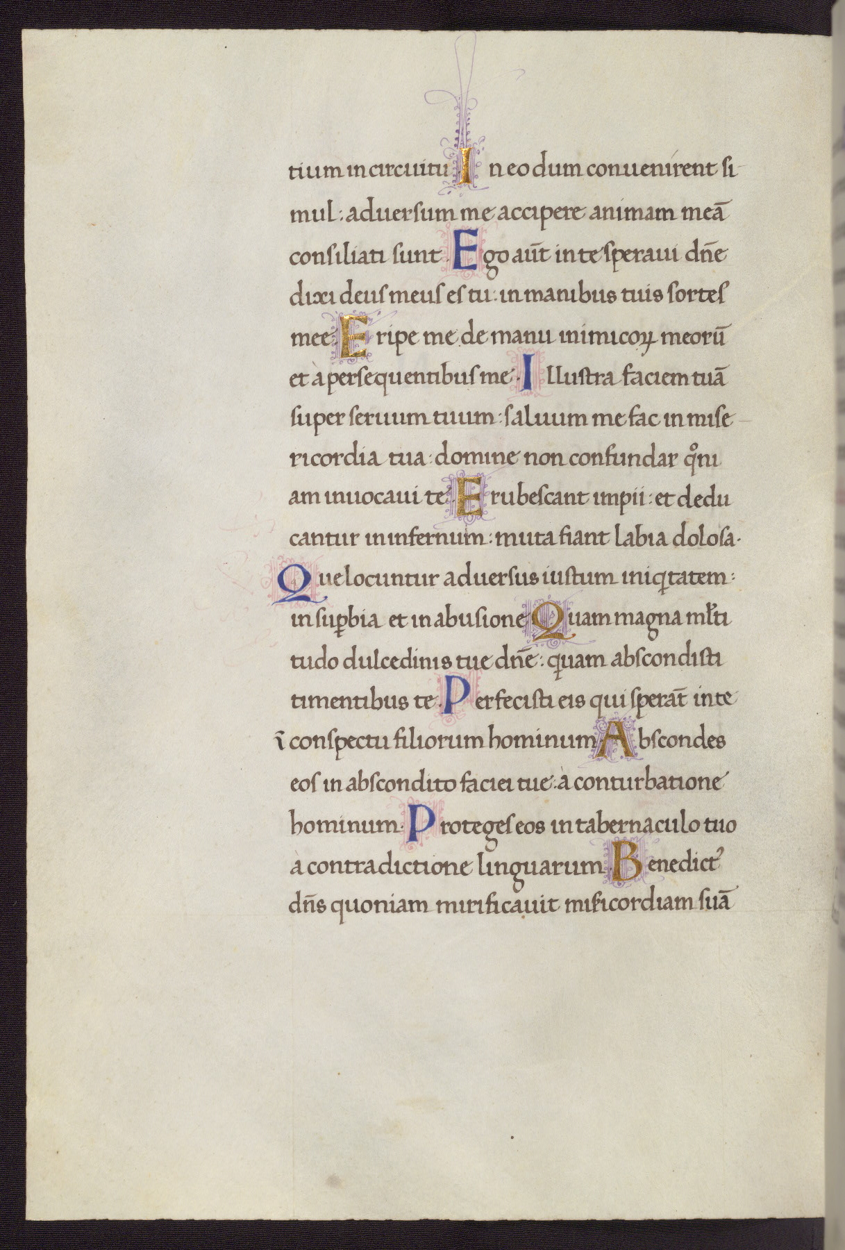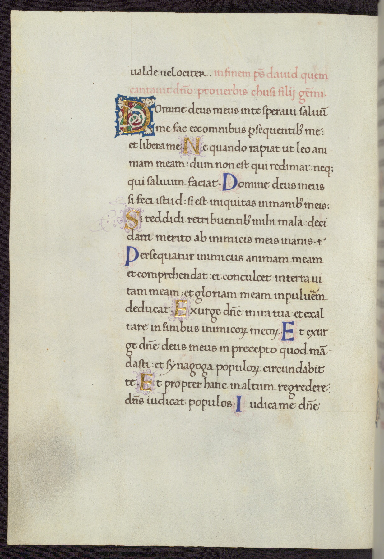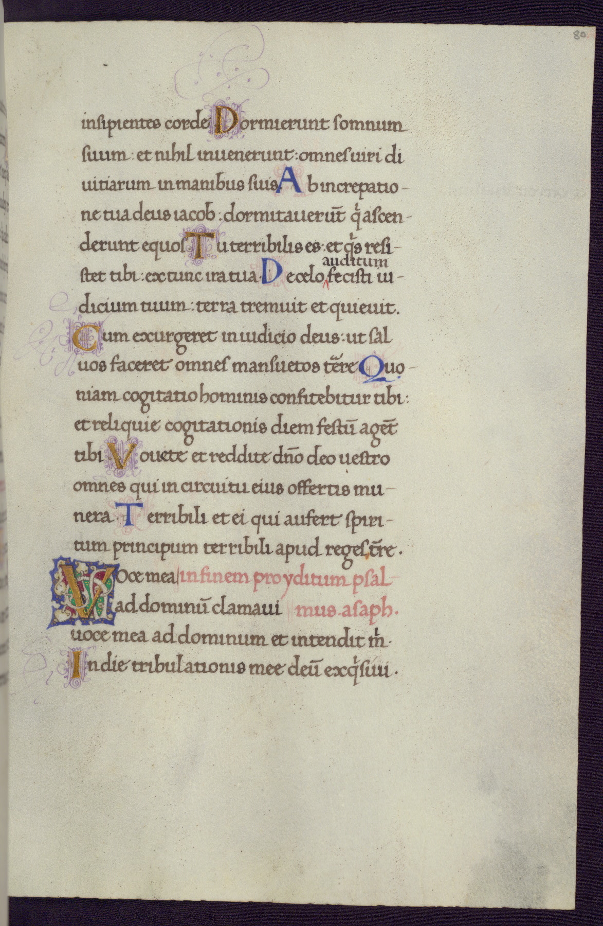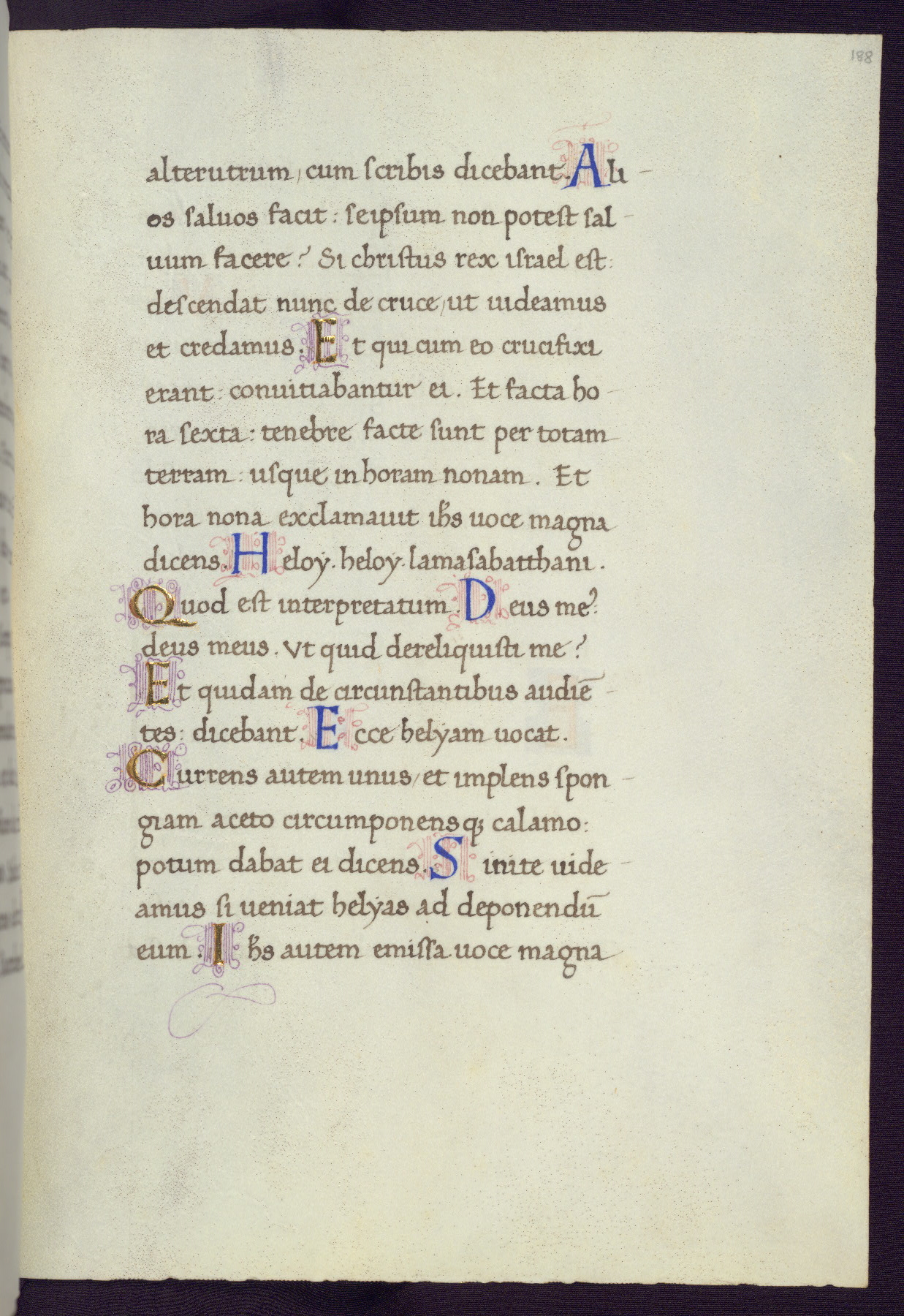 This Psalter was created in Southern Italy, likely Naples, in the last quarter of the fifteenth century. The litany (fols. 158v - 161r) suggests it was for Cistercian use. It contains six high-quality miniatures attributed to the Neopolitan illuminator Cristoforo Magorana (though the historiated initial of David playing a psaltry on fol. 15r may have been done by another hand), who from 1480-1492 worked at the court of Ferdinand I of Aragon. To date, almost forty manuscripts have been attributed to the artist. The Walters manuscript contains two full-page miniatures, one showing the Tree of Jesse and the other the Man of Sorrows. The Tree of Jesse (described in Isaiah 1:11) shows the ancestry of Christ rising from Jesse of Bethlehem, the father of King David who is depicted on the facing folio (171r). In this depiction Jesse is shown on the trunk of the tree, but it actually rises from Abraham. Surrounding Abraham is a crowd of Prophets each with scrolls with verses believed to prophecy the coming of Christ. The miniature with the Man of Sorrows shows Christ standing in his tomb and surrounded by the objects associated with the Passion (arma Christi). The miniature follows a specific Man of Sorrows iconography that originated in an early-fourteenth century mosaic icon from Constantinople that most likely arrived in Italy ca. 1380. The mosaic panel was believed to be an authentic representation of St. Gregory's vision of Christ as the Man of Sorrows, and this type of image encouraged the viewer to meditate on the suffering of Christ while reading the Passion narratives that follow. The humanist script and white-vine initials place the Walters Psalter firmly within the Humanist tradition of the late fifteenth century. Remnants of black velvet suggest this book once had a chemise binding, comparable to W.294 and W.480. Peter Kidd has suggested that the manuscript may have been written by Pietro Ursuleo of Capua (d. 1483).