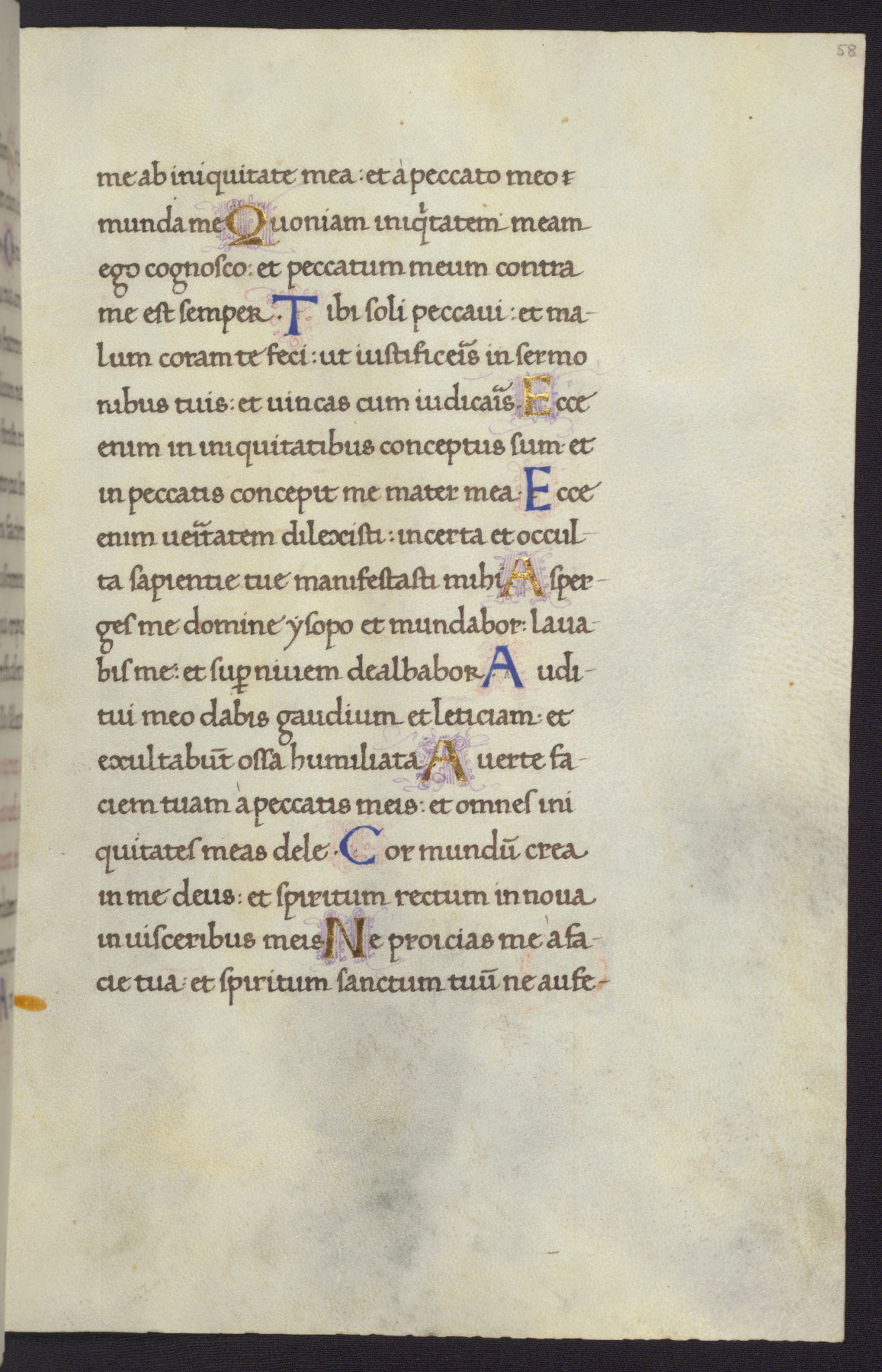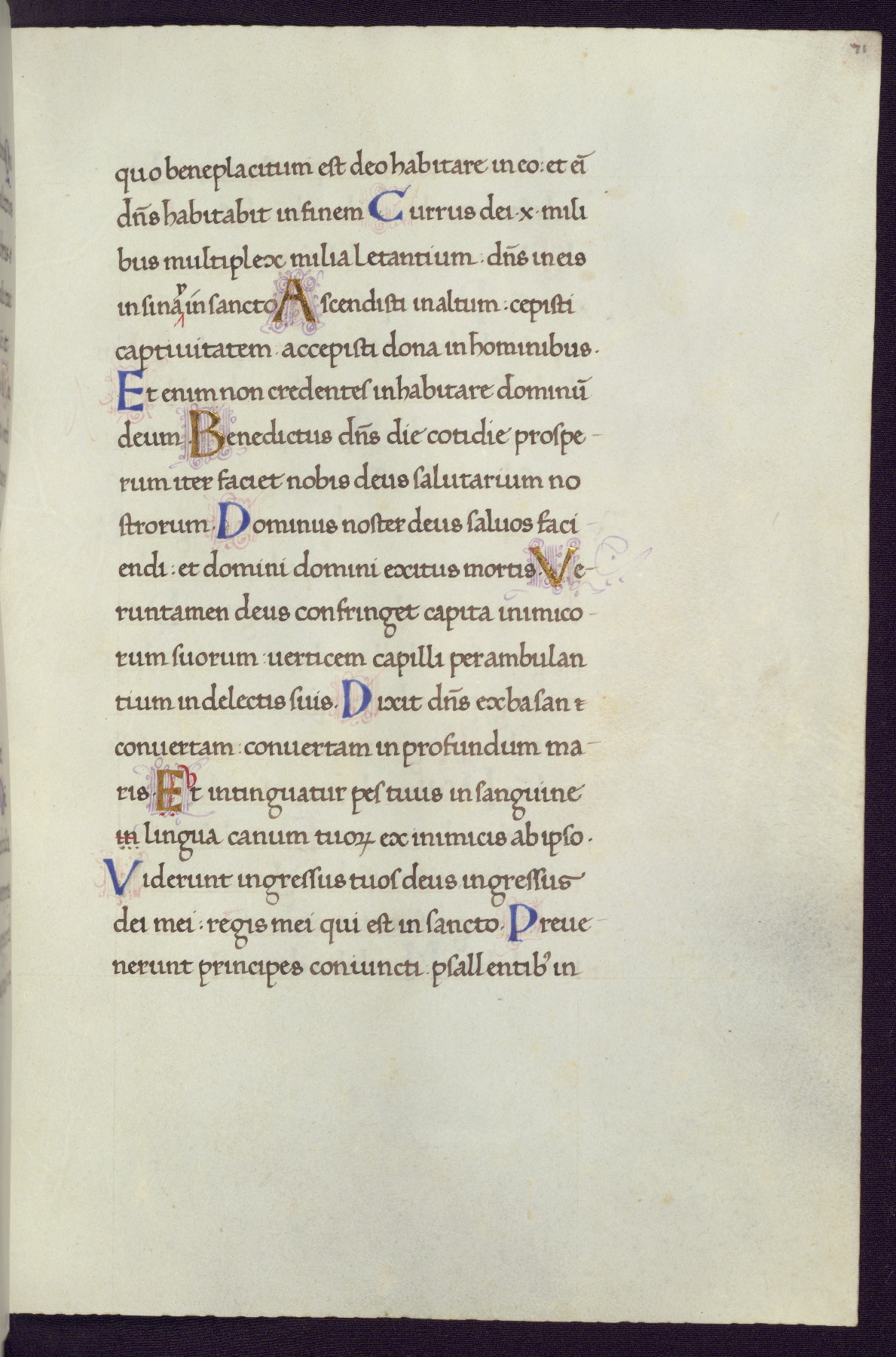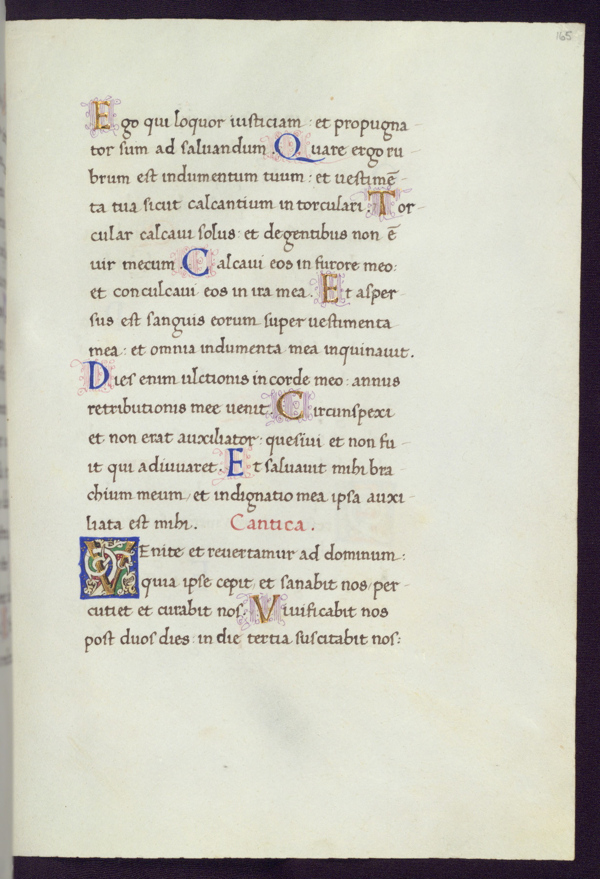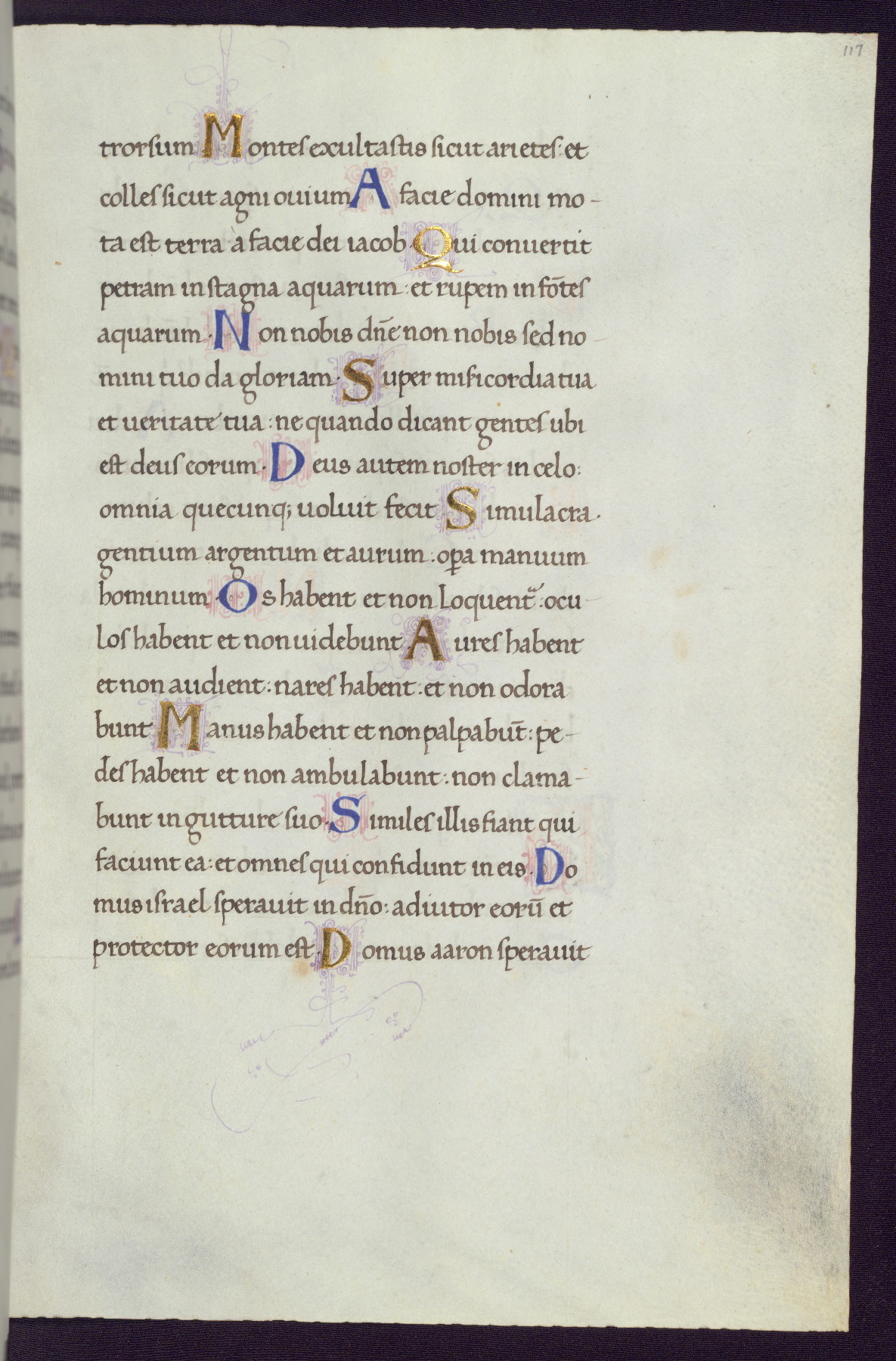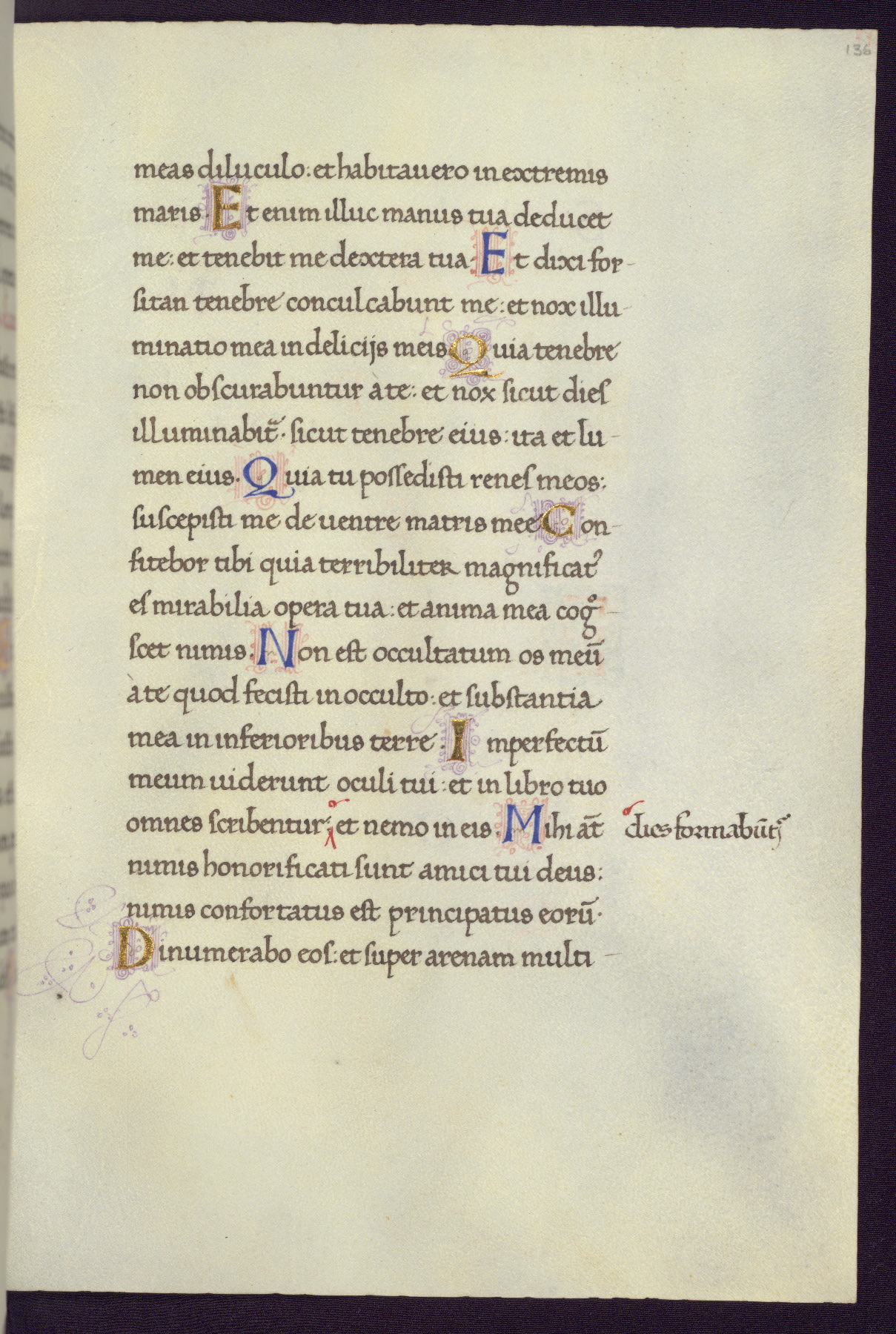 This Psalter was created in Southern Italy, likely Naples, in the last quarter of the fifteenth century. The litany (fols. 158v - 161r) suggests it was for Cistercian use. It contains six high-quality miniatures attributed to the Neopolitan illuminator Cristoforo Magorana (though the historiated initial of David playing a psaltry on fol. 15r may have been done by another hand), who from 1480-1492 worked at the court of Ferdinand I of Aragon. To date, almost forty manuscripts have been attributed to the artist. The Walters manuscript contains two full-page miniatures, one showing the Tree of Jesse and the other the Man of Sorrows. The Tree of Jesse (described in Isaiah 1:11) shows the ancestry of Christ rising from Jesse of Bethlehem, the father of King David who is depicted on the facing folio (171r). In this depiction Jesse is shown on the trunk of the tree, but it actually rises from Abraham. Surrounding Abraham is a crowd of Prophets each with scrolls with verses believed to prophecy the coming of Christ. The miniature with the Man of Sorrows shows Christ standing in his tomb and surrounded by the objects associated with the Passion (arma Christi). The miniature follows a specific Man of Sorrows iconography that originated in an early-fourteenth century mosaic icon from Constantinople that most likely arrived in Italy ca. 1380. The mosaic panel was believed to be an authentic representation of St. Gregory's vision of Christ as the Man of Sorrows, and this type of image encouraged the viewer to meditate on the suffering of Christ while reading the Passion narratives that follow. The humanist script and white-vine initials place the Walters Psalter firmly within the Humanist tradition of the late fifteenth century. Remnants of black velvet suggest this book once had a chemise binding, comparable to W.294 and W.480. Peter Kidd has suggested that the manuscript may have been written by Pietro Ursuleo of Capua (d. 1483).