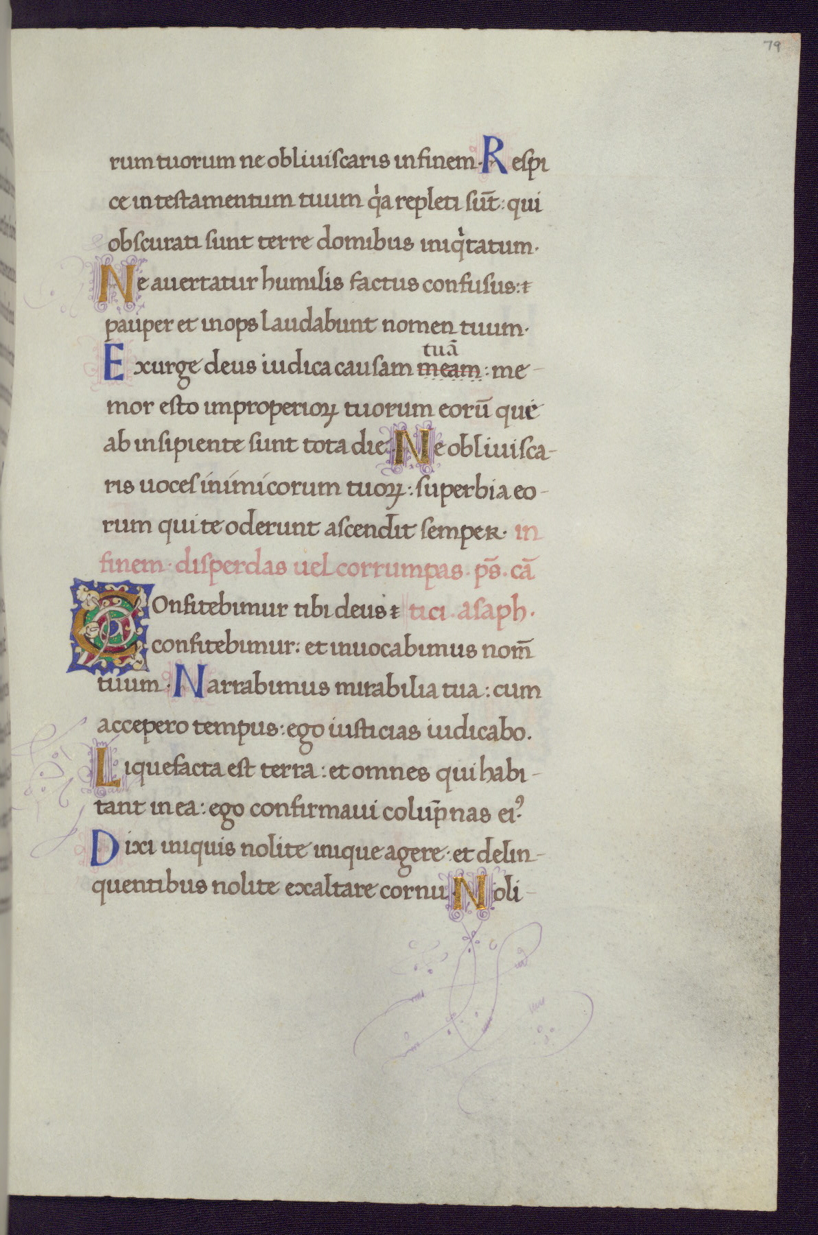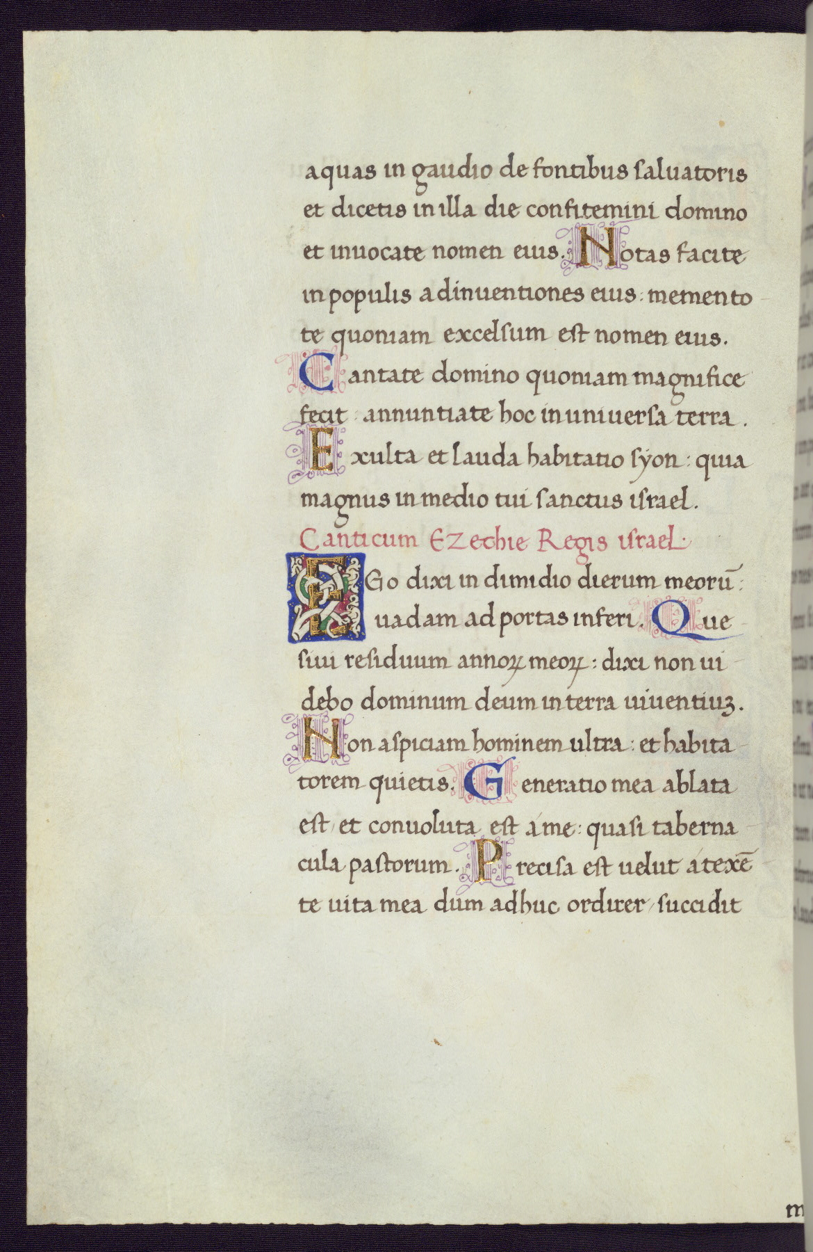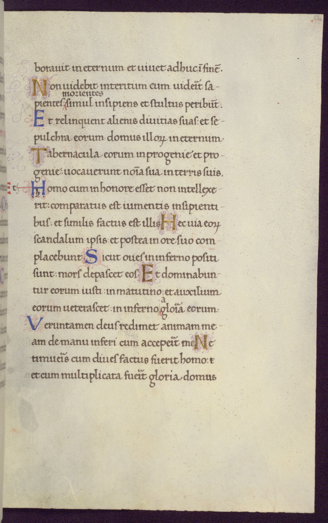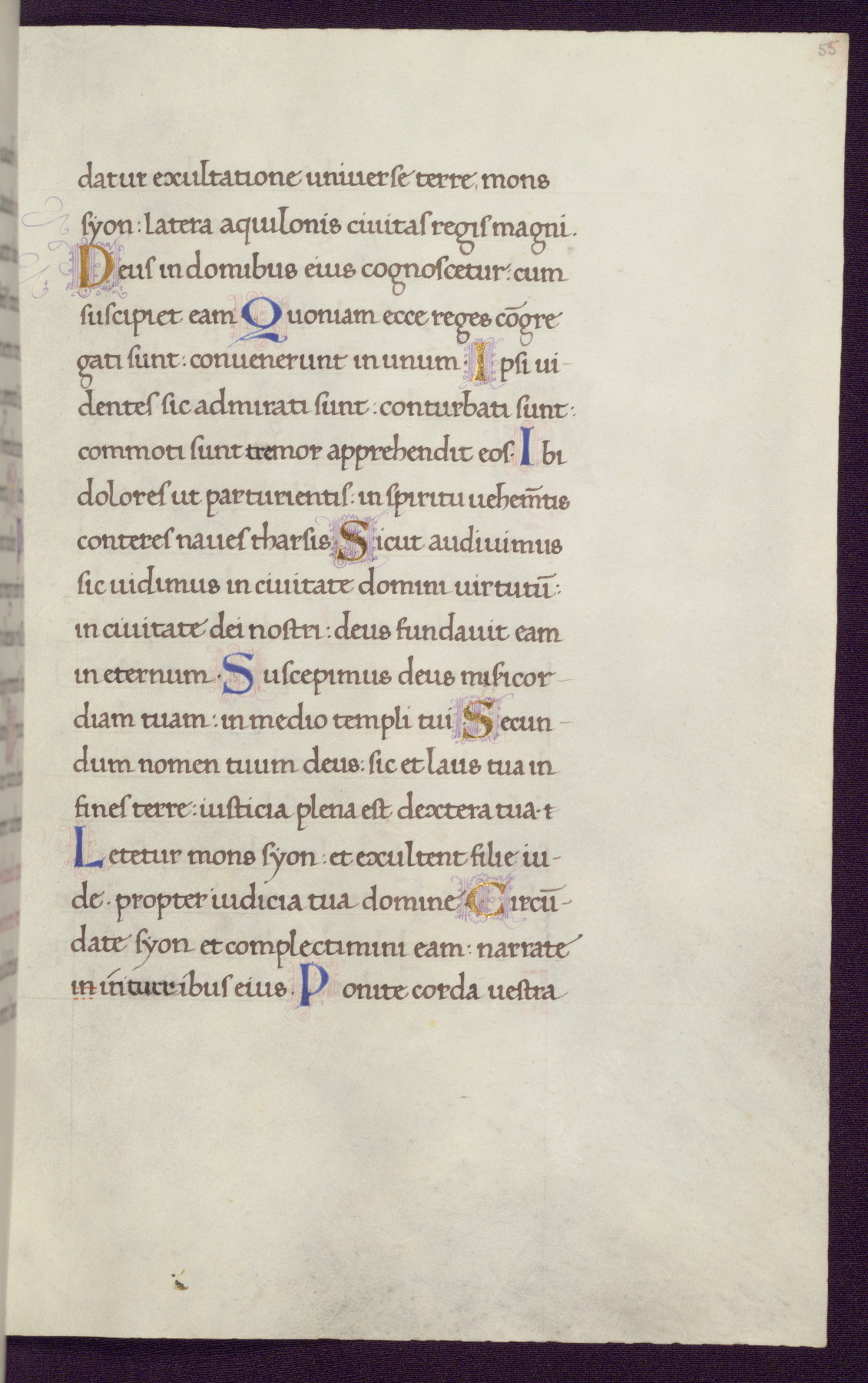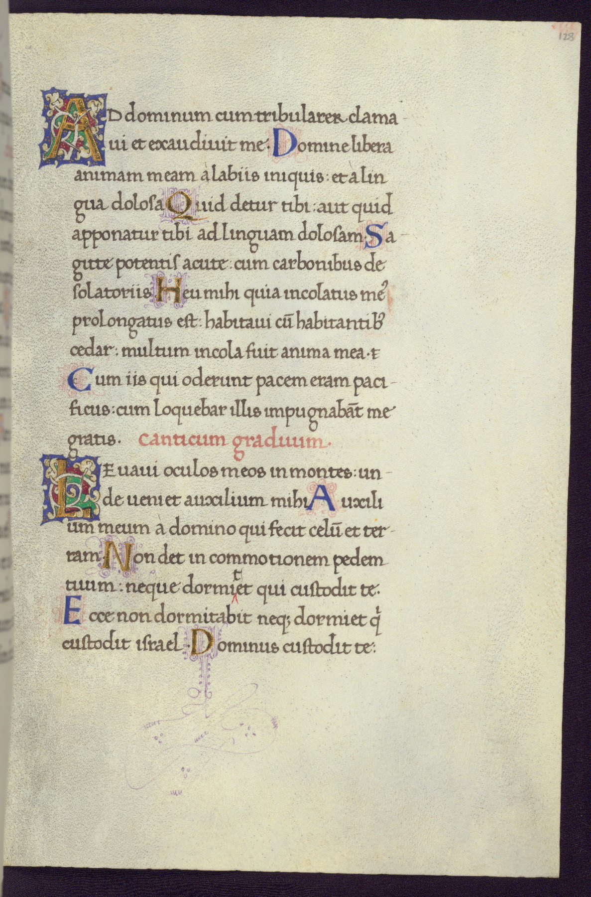 This Psalter was created in Southern Italy, likely Naples, in the last quarter of the fifteenth century. The litany (fols. 158v - 161r) suggests it was for Cistercian use. It contains six high-quality miniatures attributed to the Neopolitan illuminator Cristoforo Magorana (though the historiated initial of David playing a psaltry on fol. 15r may have been done by another hand), who from 1480-1492 worked at the court of Ferdinand I of Aragon. To date, almost forty manuscripts have been attributed to the artist. The Walters manuscript contains two full-page miniatures, one showing the Tree of Jesse and the other the Man of Sorrows. The Tree of Jesse (described in Isaiah 1:11) shows the ancestry of Christ rising from Jesse of Bethlehem, the father of King David who is depicted on the facing folio (171r). In this depiction Jesse is shown on the trunk of the tree, but it actually rises from Abraham. Surrounding Abraham is a crowd of Prophets each with scrolls with verses believed to prophecy the coming of Christ. The miniature with the Man of Sorrows shows Christ standing in his tomb and surrounded by the objects associated with the Passion (arma Christi). The miniature follows a specific Man of Sorrows iconography that originated in an early-fourteenth century mosaic icon from Constantinople that most likely arrived in Italy ca. 1380. The mosaic panel was believed to be an authentic representation of St. Gregory's vision of Christ as the Man of Sorrows, and this type of image encouraged the viewer to meditate on the suffering of Christ while reading the Passion narratives that follow. The humanist script and white-vine initials place the Walters Psalter firmly within the Humanist tradition of the late fifteenth century. Remnants of black velvet suggest this book once had a chemise binding, comparable to W.294 and W.480. Peter Kidd has suggested that the manuscript may have been written by Pietro Ursuleo of Capua (d. 1483).