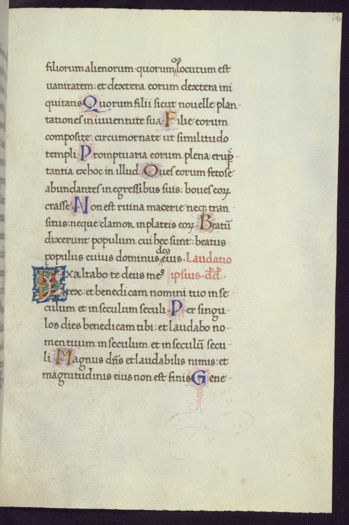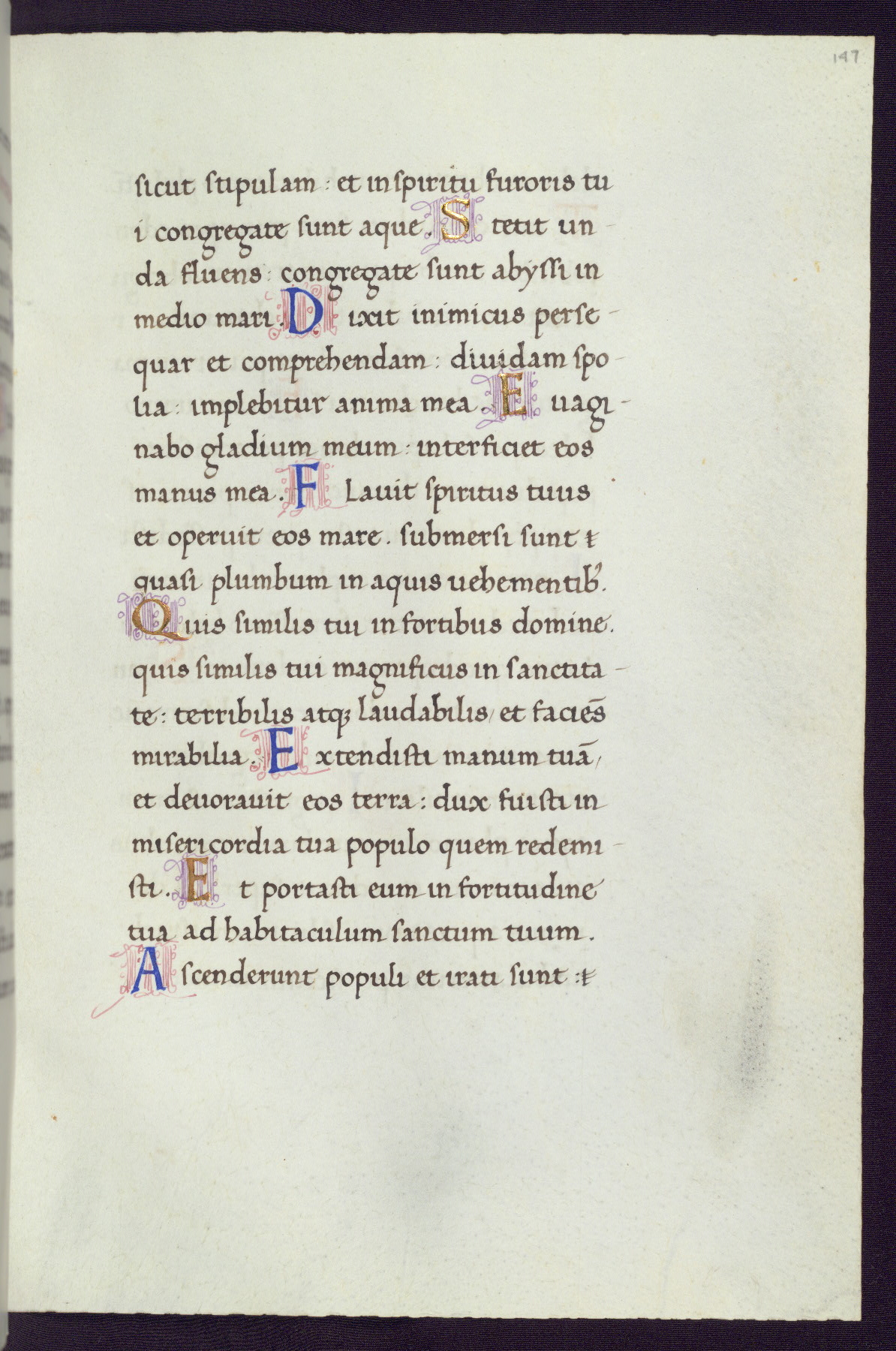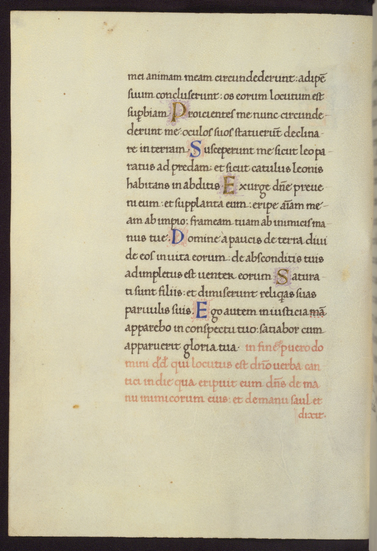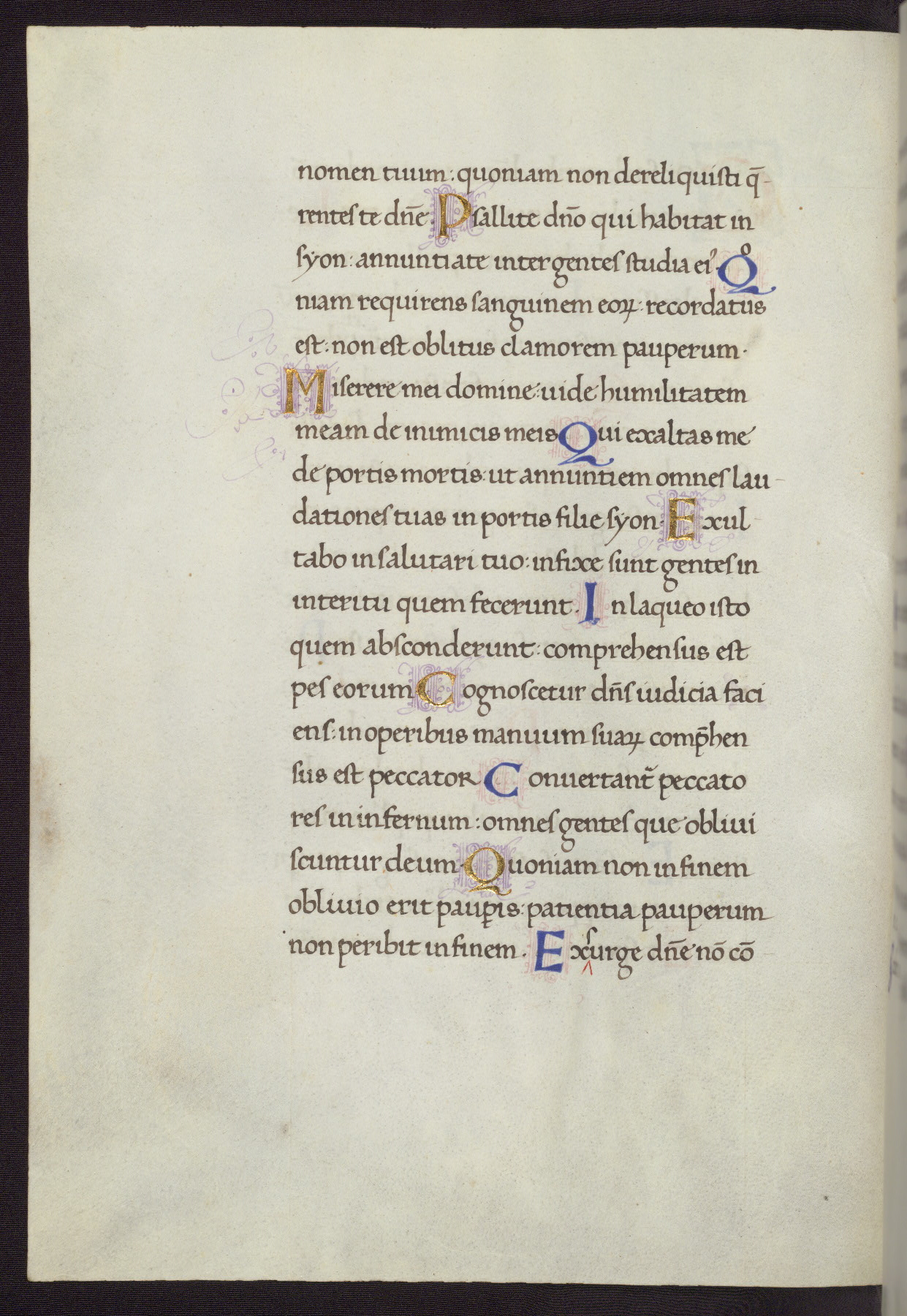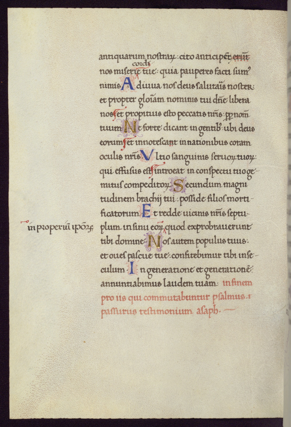 This Psalter was created in Southern Italy, likely Naples, in the last quarter of the fifteenth century. The litany (fols. 158v - 161r) suggests it was for Cistercian use. It contains six high-quality miniatures attributed to the Neopolitan illuminator Cristoforo Magorana (though the historiated initial of David playing a psaltry on fol. 15r may have been done by another hand), who from 1480-1492 worked at the court of Ferdinand I of Aragon. To date, almost forty manuscripts have been attributed to the artist. The Walters manuscript contains two full-page miniatures, one showing the Tree of Jesse and the other the Man of Sorrows. The Tree of Jesse (described in Isaiah 1:11) shows the ancestry of Christ rising from Jesse of Bethlehem, the father of King David who is depicted on the facing folio (171r). In this depiction Jesse is shown on the trunk of the tree, but it actually rises from Abraham. Surrounding Abraham is a crowd of Prophets each with scrolls with verses believed to prophecy the coming of Christ. The miniature with the Man of Sorrows shows Christ standing in his tomb and surrounded by the objects associated with the Passion (arma Christi). The miniature follows a specific Man of Sorrows iconography that originated in an early-fourteenth century mosaic icon from Constantinople that most likely arrived in Italy ca. 1380. The mosaic panel was believed to be an authentic representation of St. Gregory's vision of Christ as the Man of Sorrows, and this type of image encouraged the viewer to meditate on the suffering of Christ while reading the Passion narratives that follow. The humanist script and white-vine initials place the Walters Psalter firmly within the Humanist tradition of the late fifteenth century. Remnants of black velvet suggest this book once had a chemise binding, comparable to W.294 and W.480. Peter Kidd has suggested that the manuscript may have been written by Pietro Ursuleo of Capua (d. 1483).