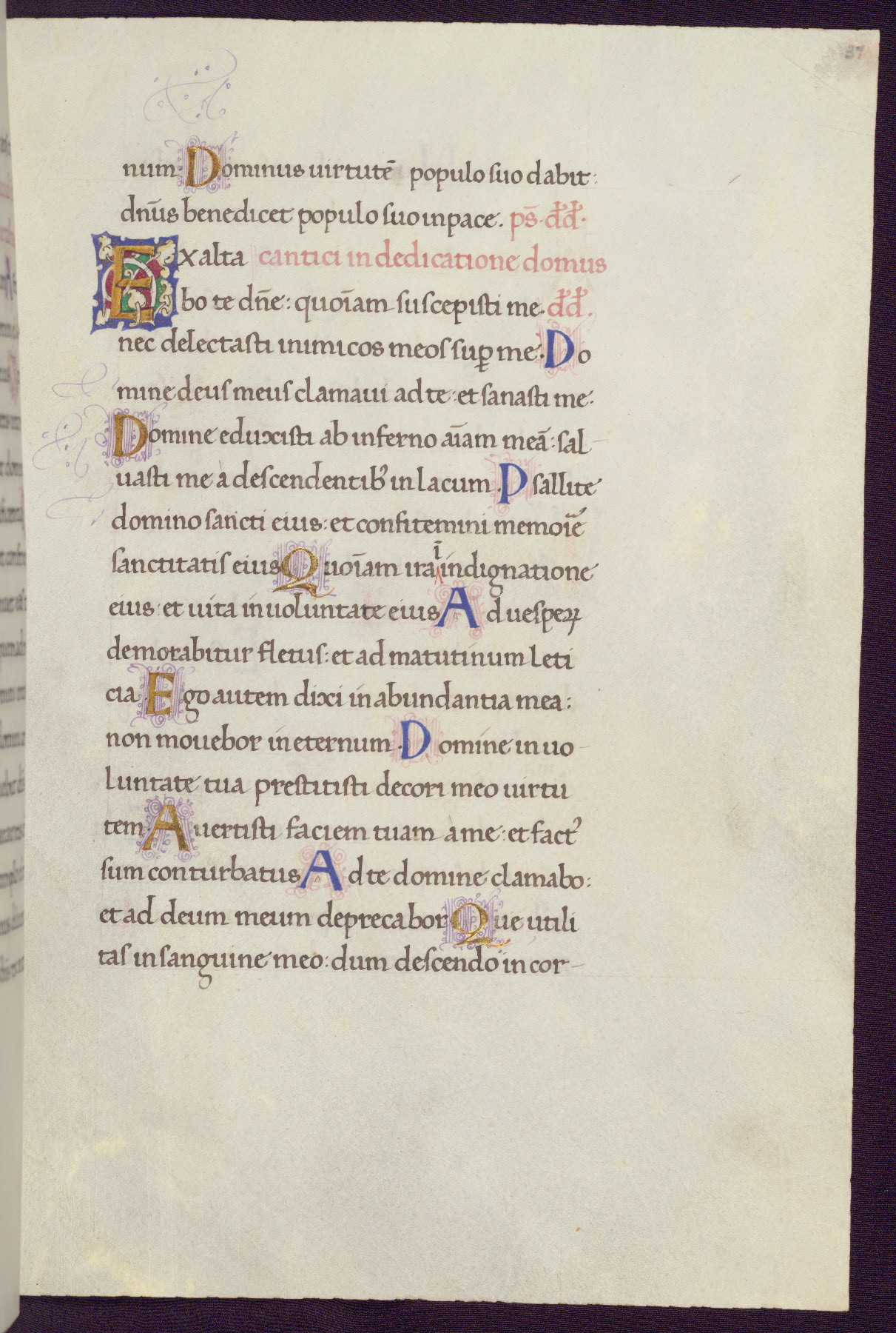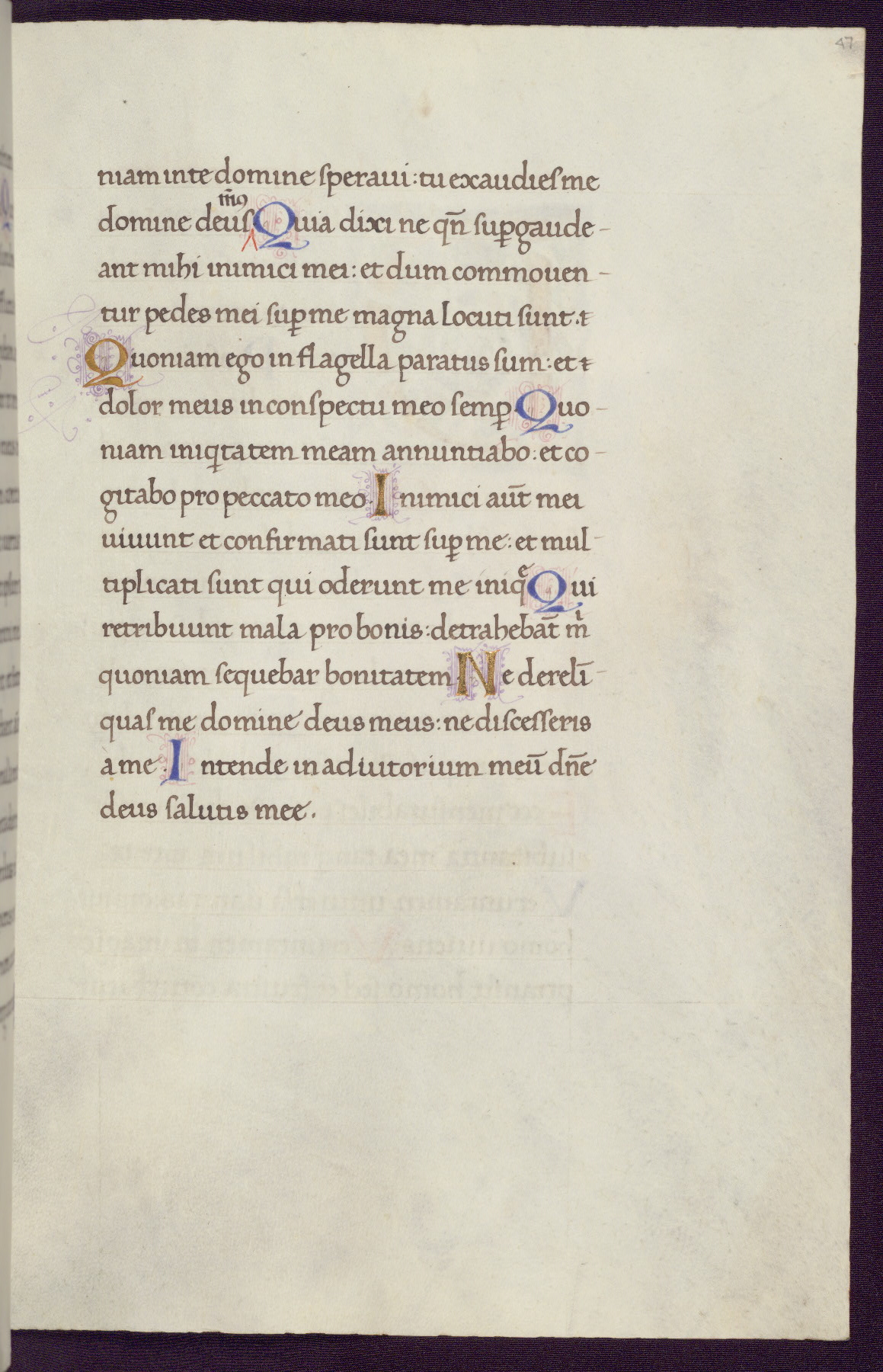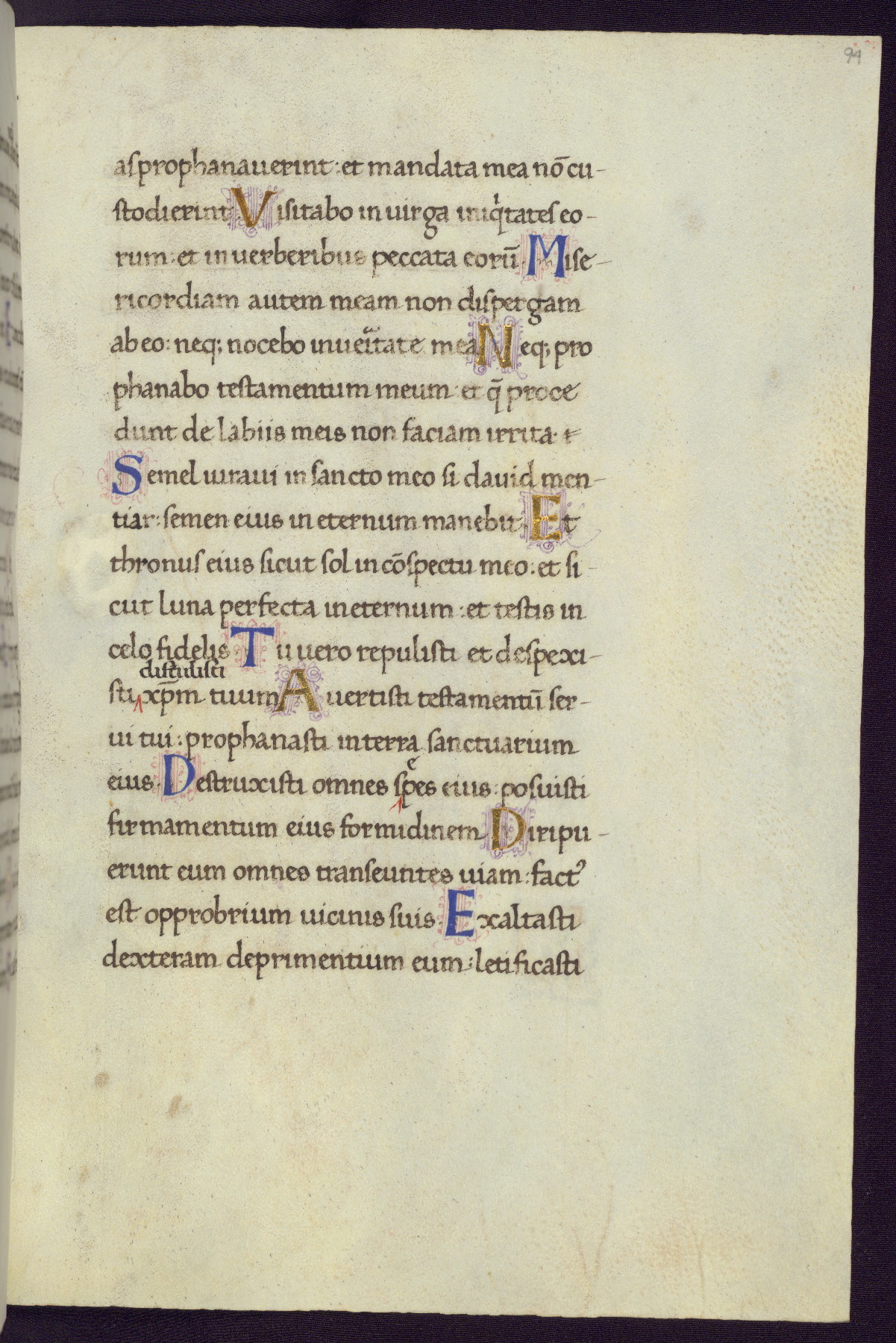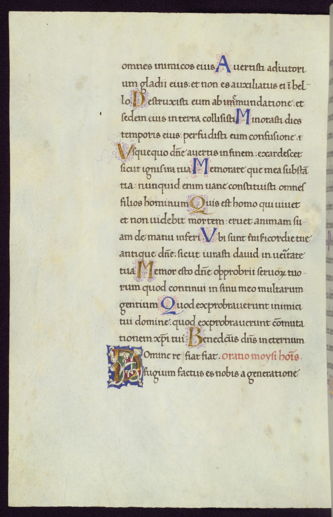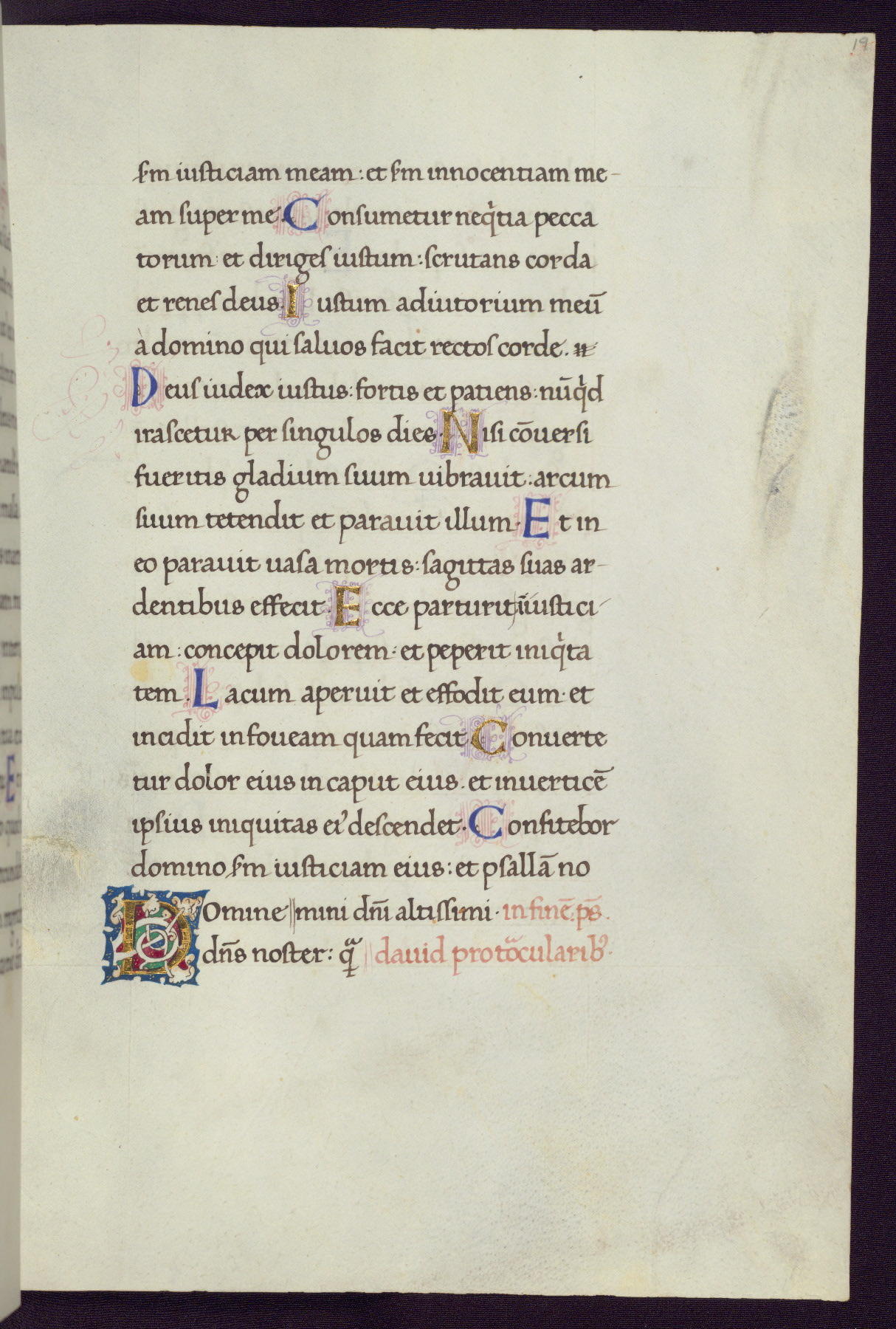 This Psalter was created in Southern Italy, likely Naples, in the last quarter of the fifteenth century. The litany (fols. 158v - 161r) suggests it was for Cistercian use. It contains six high-quality miniatures attributed to the Neopolitan illuminator Cristoforo Magorana (though the historiated initial of David playing a psaltry on fol. 15r may have been done by another hand), who from 1480-1492 worked at the court of Ferdinand I of Aragon. To date, almost forty manuscripts have been attributed to the artist. The Walters manuscript contains two full-page miniatures, one showing the Tree of Jesse and the other the Man of Sorrows. The Tree of Jesse (described in Isaiah 1:11) shows the ancestry of Christ rising from Jesse of Bethlehem, the father of King David who is depicted on the facing folio (171r). In this depiction Jesse is shown on the trunk of the tree, but it actually rises from Abraham. Surrounding Abraham is a crowd of Prophets each with scrolls with verses believed to prophecy the coming of Christ. The miniature with the Man of Sorrows shows Christ standing in his tomb and surrounded by the objects associated with the Passion (arma Christi). The miniature follows a specific Man of Sorrows iconography that originated in an early-fourteenth century mosaic icon from Constantinople that most likely arrived in Italy ca. 1380. The mosaic panel was believed to be an authentic representation of St. Gregory's vision of Christ as the Man of Sorrows, and this type of image encouraged the viewer to meditate on the suffering of Christ while reading the Passion narratives that follow. The humanist script and white-vine initials place the Walters Psalter firmly within the Humanist tradition of the late fifteenth century. Remnants of black velvet suggest this book once had a chemise binding, comparable to W.294 and W.480. Peter Kidd has suggested that the manuscript may have been written by Pietro Ursuleo of Capua (d. 1483).