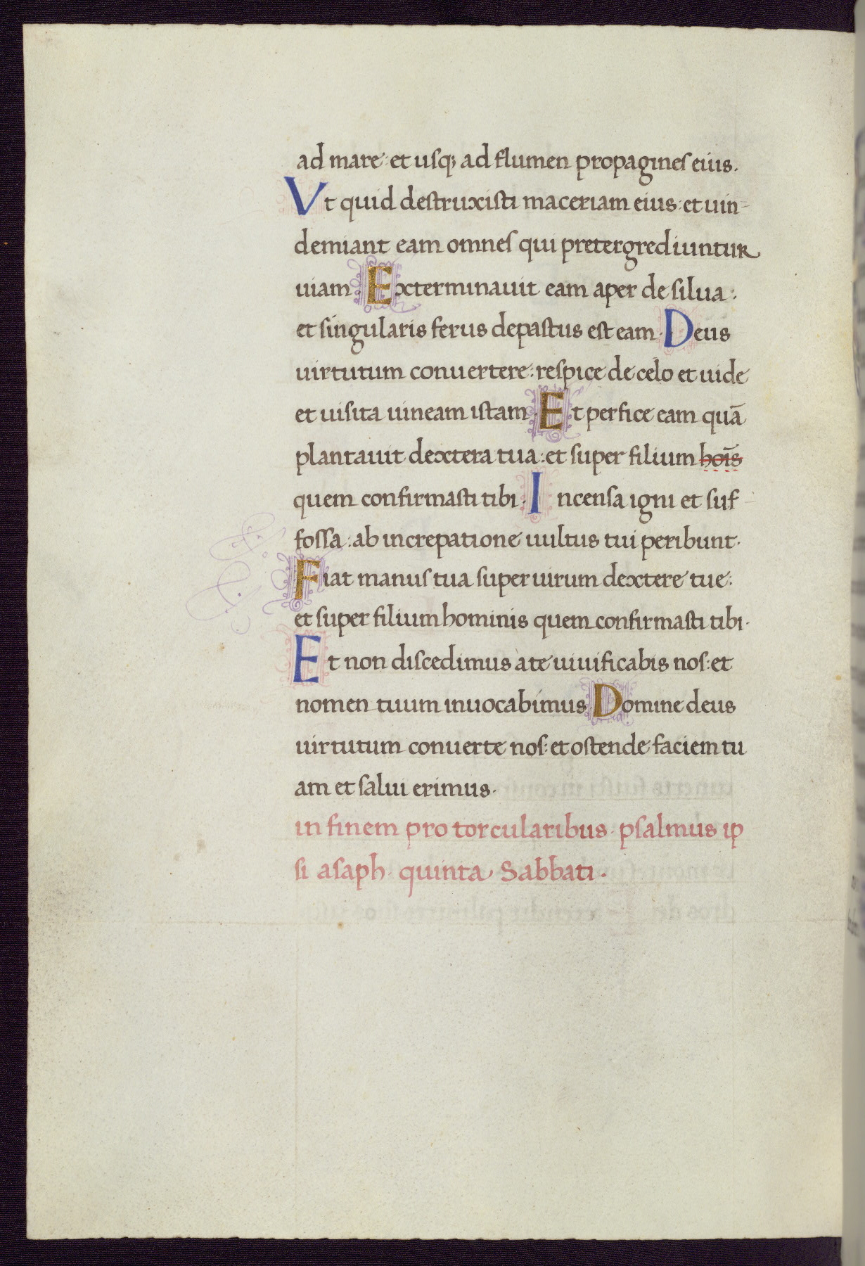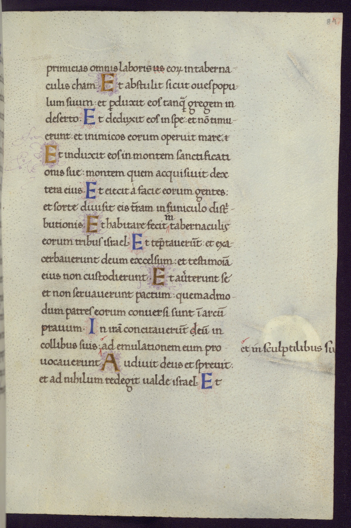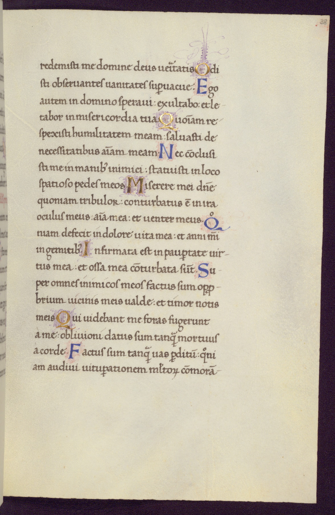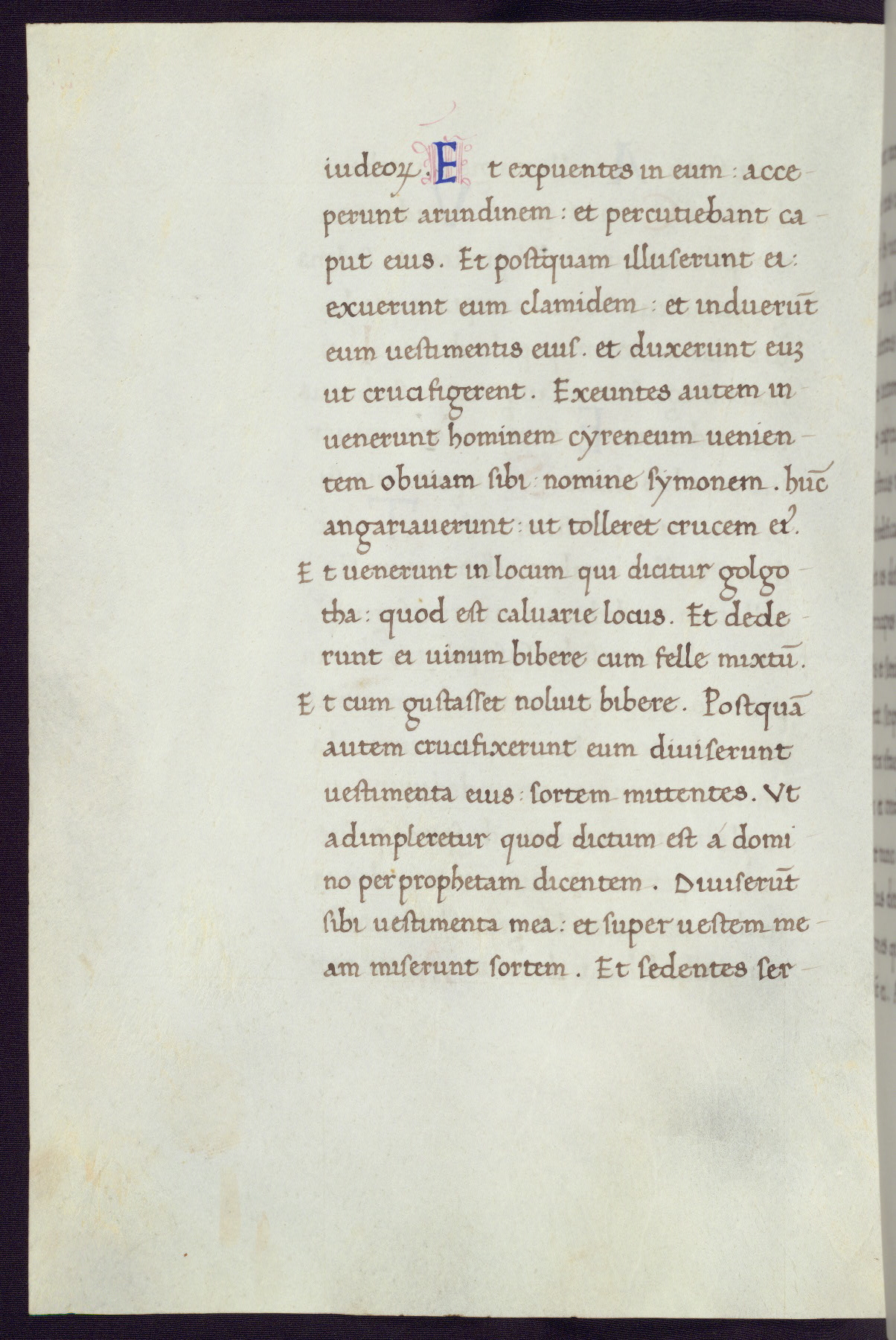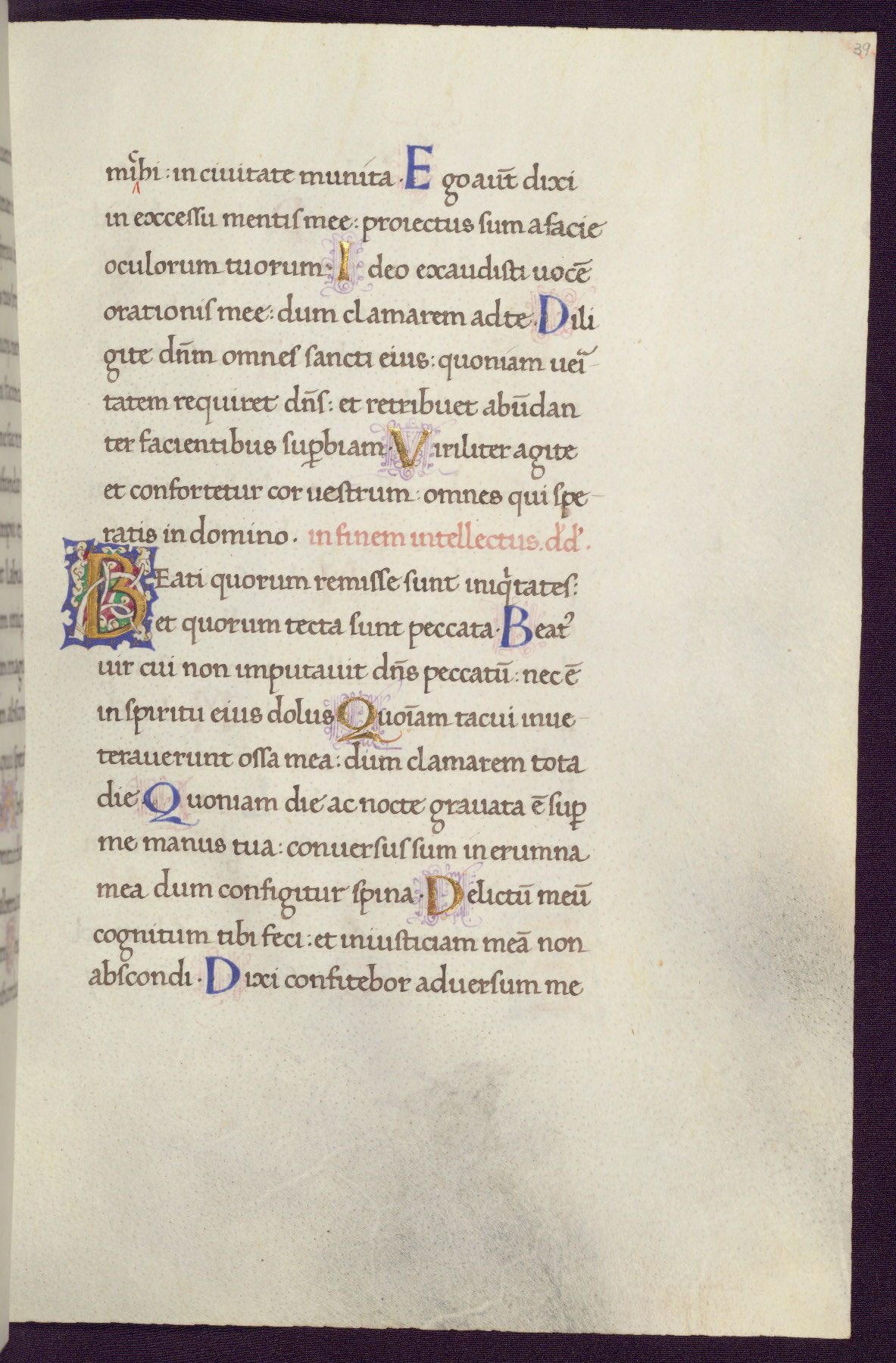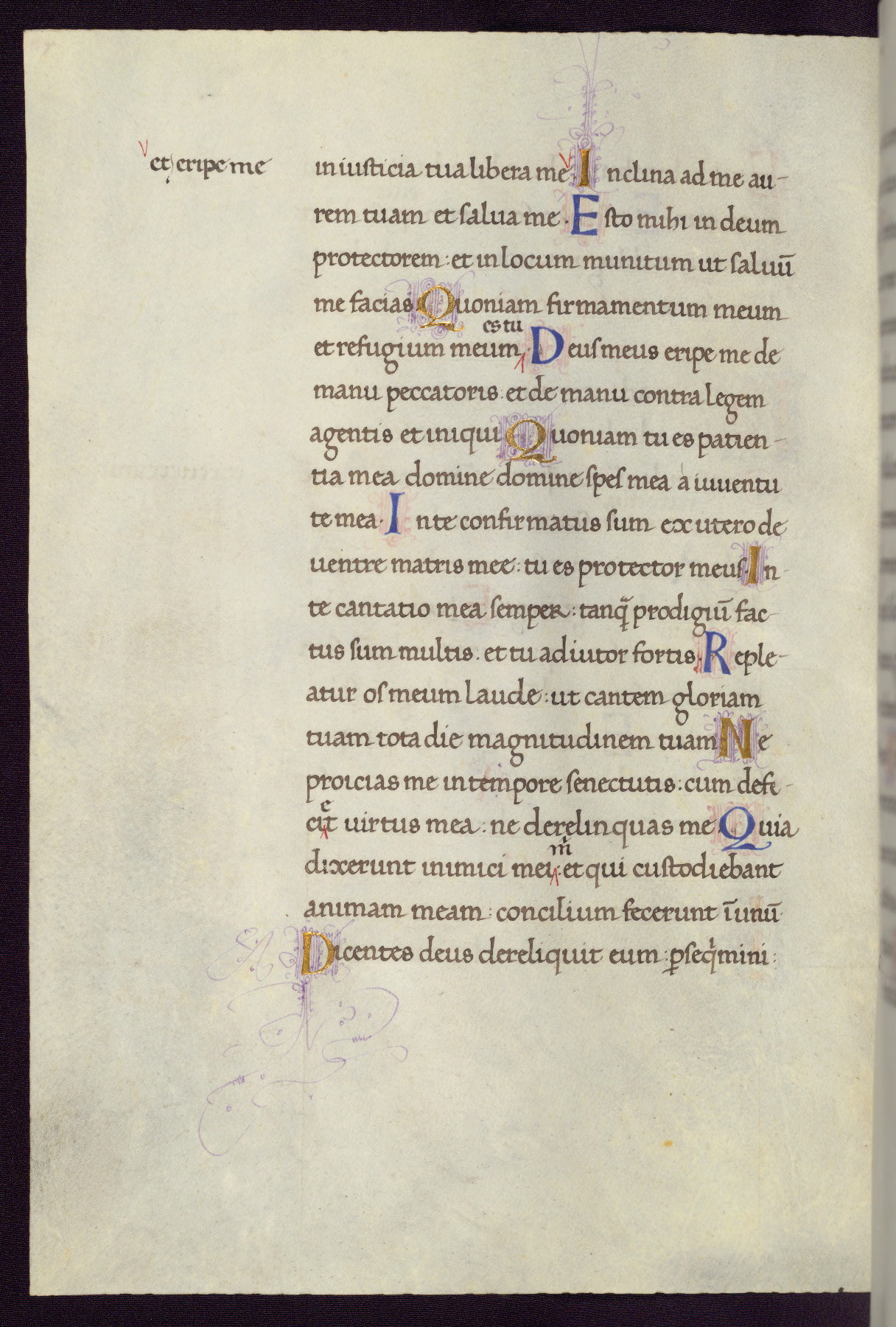This Psalter was created in Southern Italy, likely Naples, in the last quarter of the fifteenth century. The litany (fols. 158v - 161r) suggests it was for Cistercian use. It contains six high-quality miniatures attributed to the Neopolitan illuminator Cristoforo Magorana (though the historiated initial of David playing a psaltry on fol. 15r may have been done by another hand), who from 1480-1492 worked at the court of Ferdinand I of Aragon. To date, almost forty manuscripts have been attributed to the artist. The Walters manuscript contains two full-page miniatures, one showing the Tree of Jesse and the other the Man of Sorrows. The Tree of Jesse (described in Isaiah 1:11) shows the ancestry of Christ rising from Jesse of Bethlehem, the father of King David who is depicted on the facing folio (171r). In this depiction Jesse is shown on the trunk of the tree, but it actually rises from Abraham. Surrounding Abraham is a crowd of Prophets each with scrolls with verses believed to prophecy the coming of Christ. The miniature with the Man of Sorrows shows Christ standing in his tomb and surrounded by the objects associated with the Passion (arma Christi). The miniature follows a specific Man of Sorrows iconography that originated in an early-fourteenth century mosaic icon from Constantinople that most likely arrived in Italy ca. 1380. The mosaic panel was believed to be an authentic representation of St. Gregory's vision of Christ as the Man of Sorrows, and this type of image encouraged the viewer to meditate on the suffering of Christ while reading the Passion narratives that follow. The humanist script and white-vine initials place the Walters Psalter firmly within the Humanist tradition of the late fifteenth century. Remnants of black velvet suggest this book once had a chemise binding, comparable to W.294 and W.480. Peter Kidd has suggested that the manuscript may have been written by Pietro Ursuleo of Capua (d. 1483).