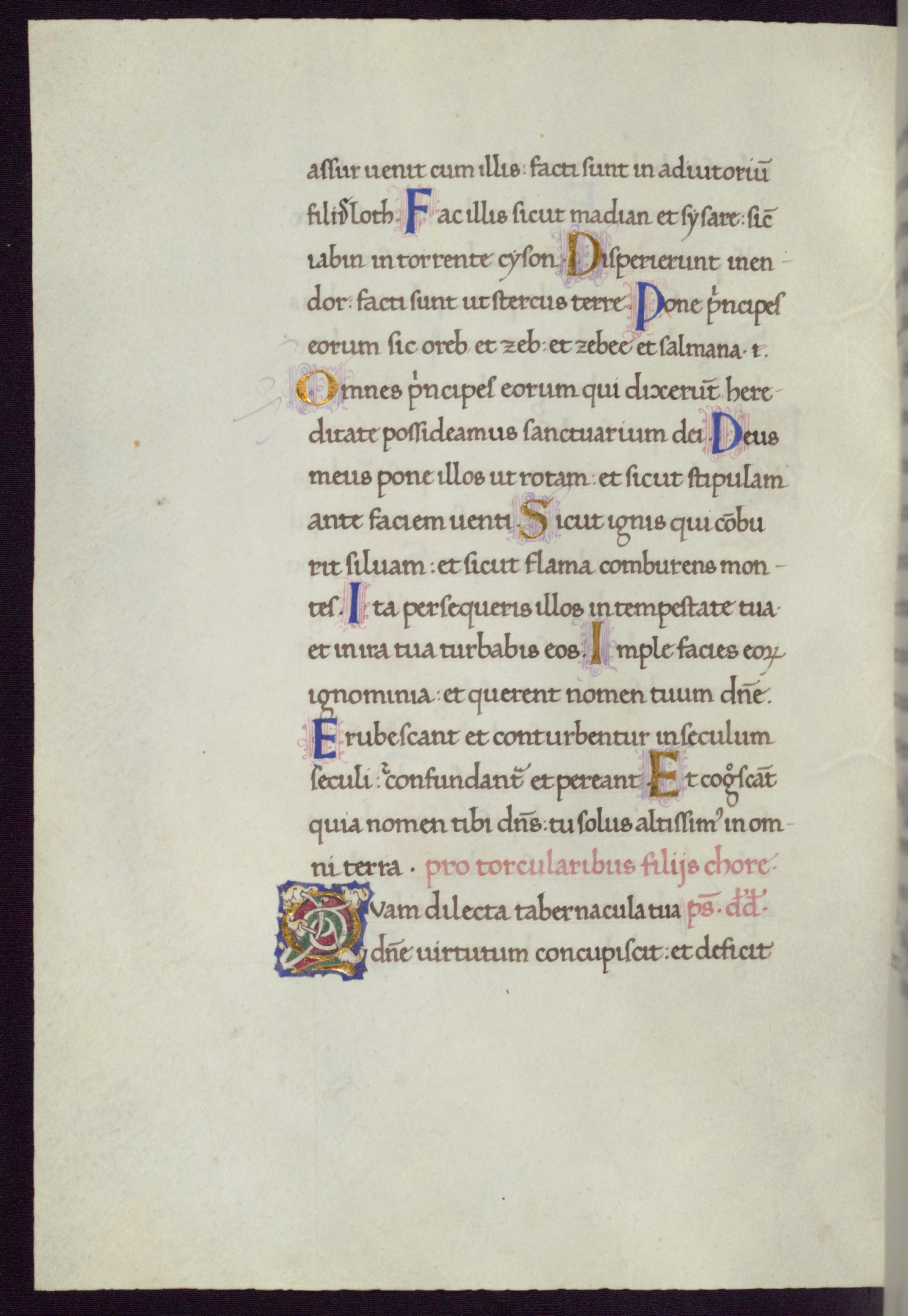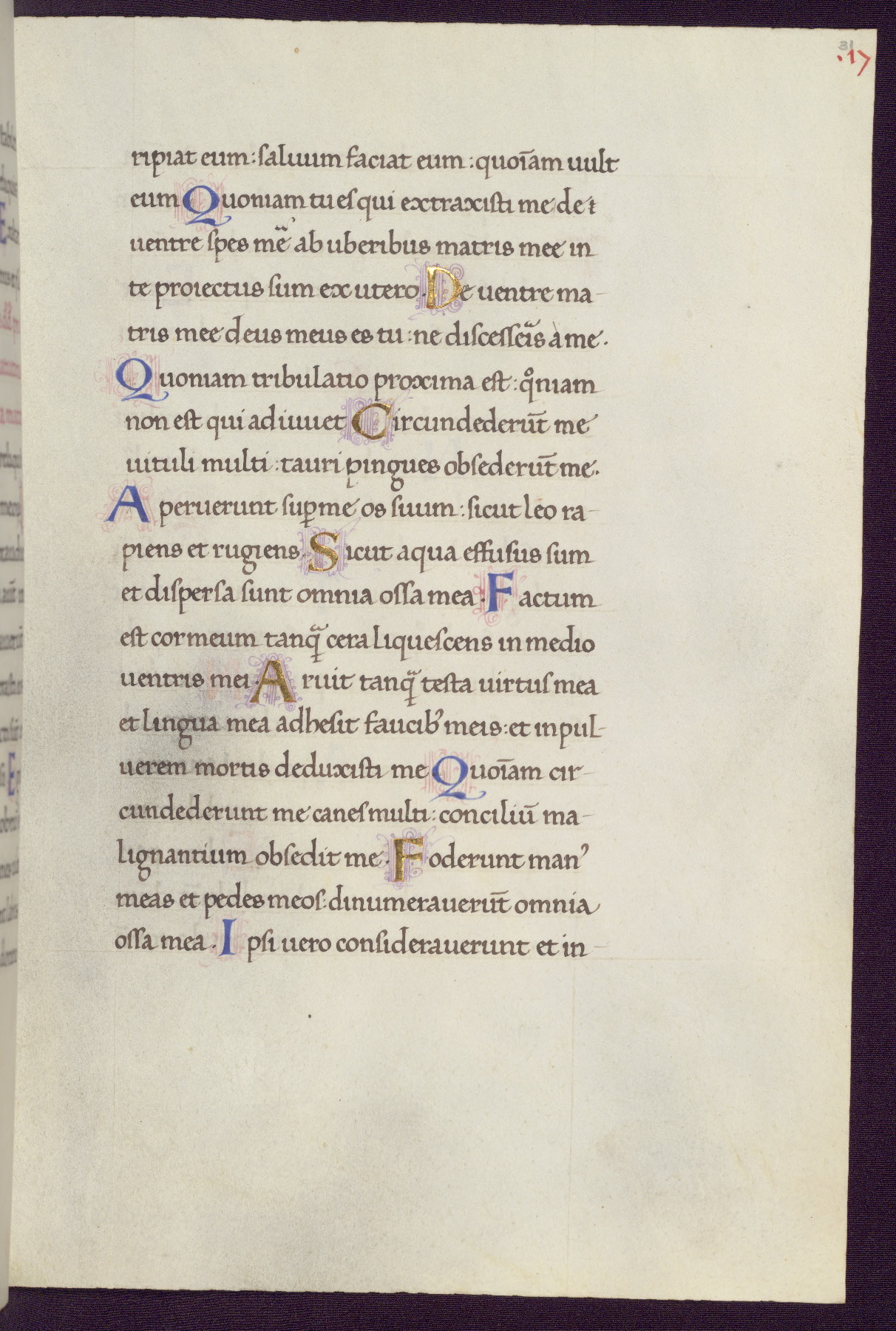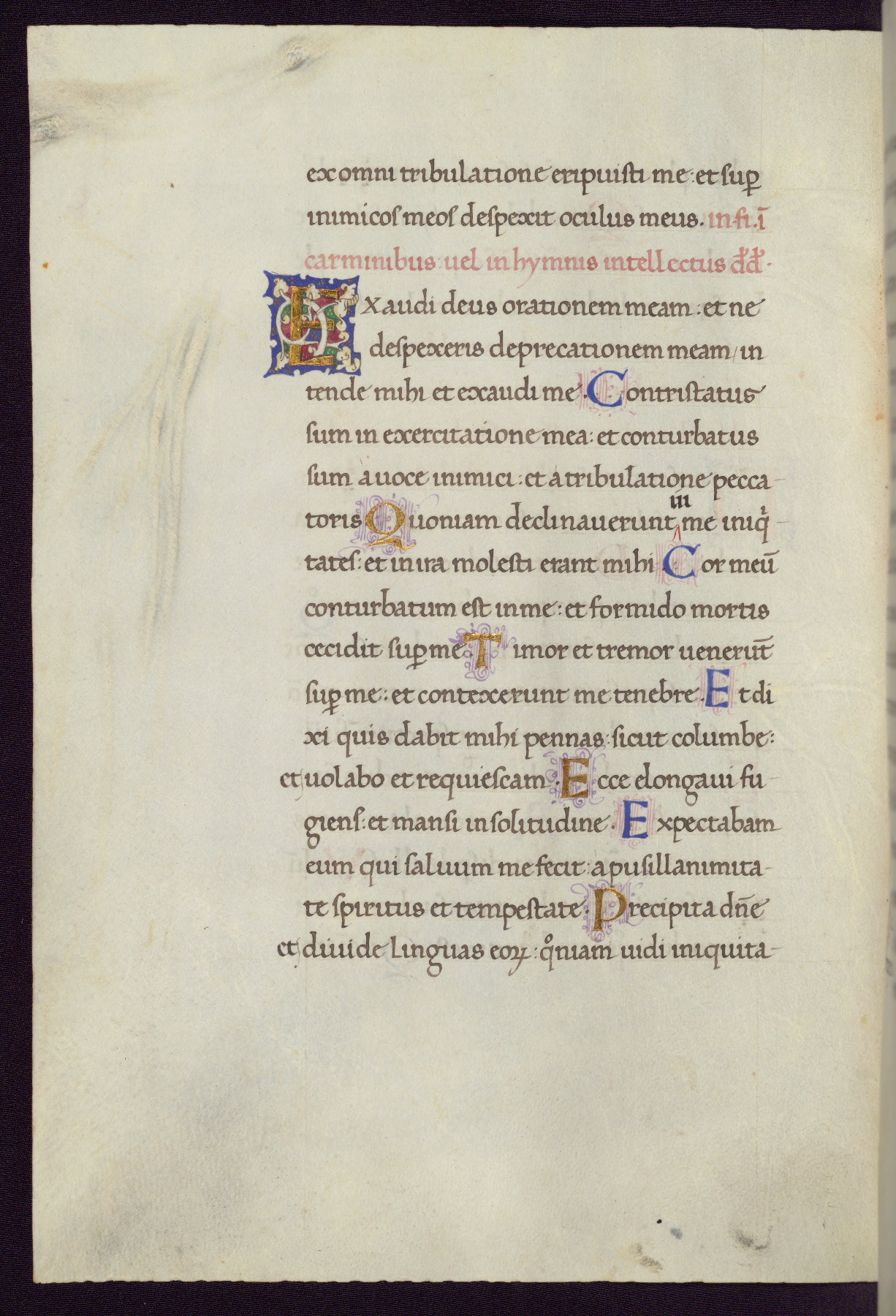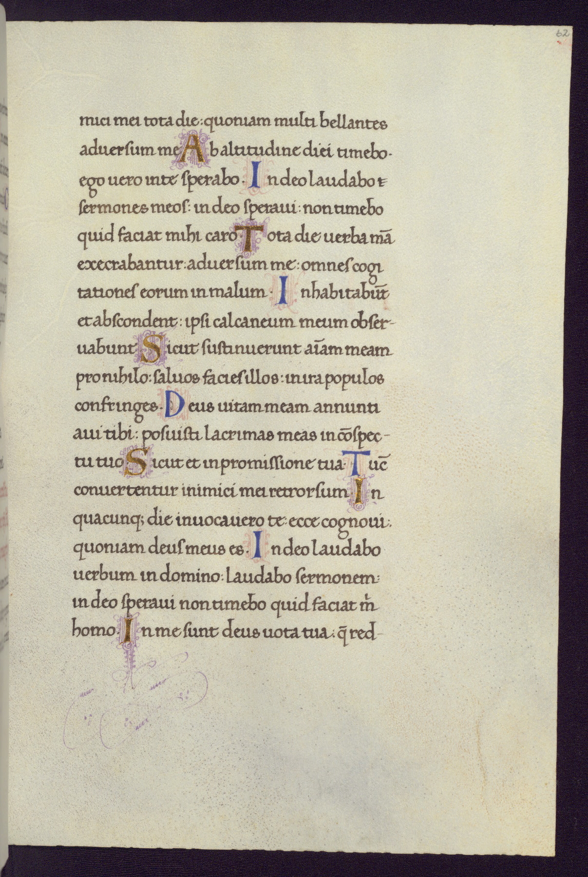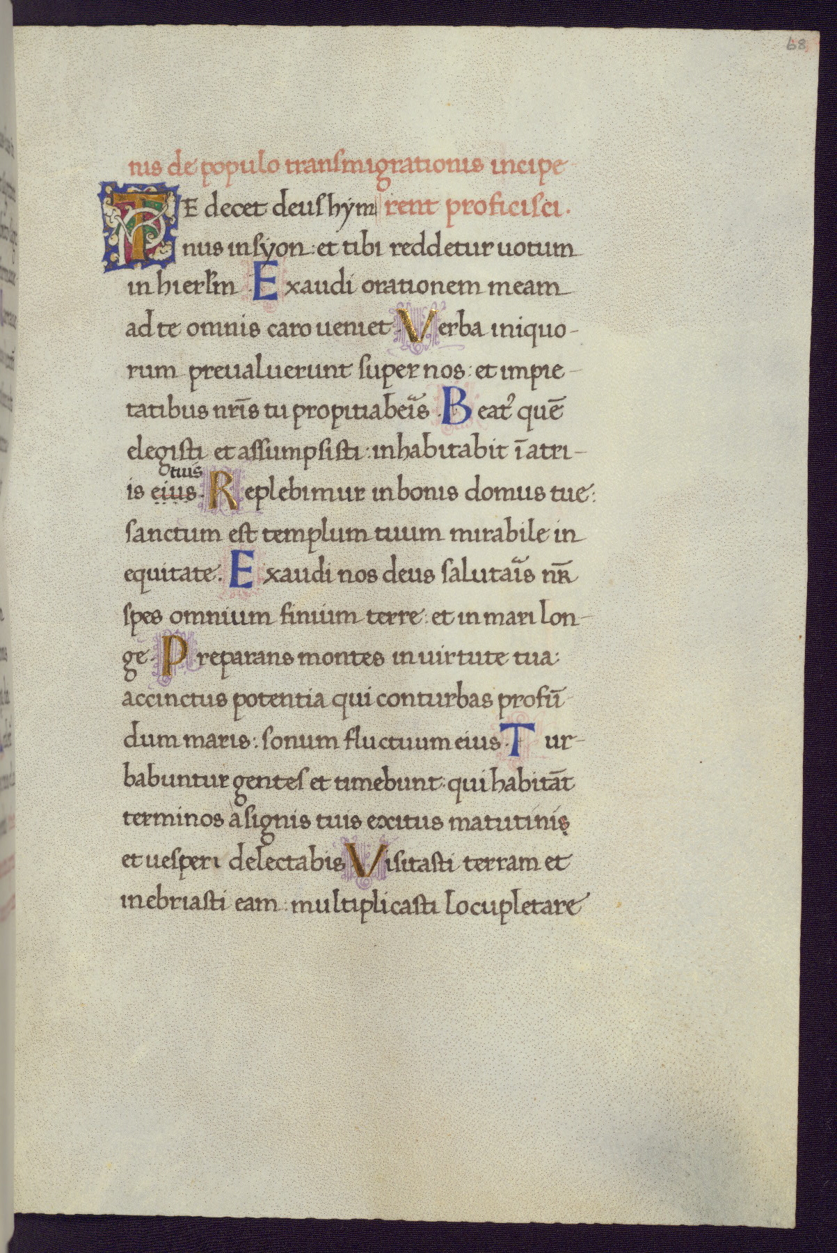 This Psalter was created in Southern Italy, likely Naples, in the last quarter of the fifteenth century. The litany (fols. 158v - 161r) suggests it was for Cistercian use. It contains six high-quality miniatures attributed to the Neopolitan illuminator Cristoforo Magorana (though the historiated initial of David playing a psaltry on fol. 15r may have been done by another hand), who from 1480-1492 worked at the court of Ferdinand I of Aragon. To date, almost forty manuscripts have been attributed to the artist. The Walters manuscript contains two full-page miniatures, one showing the Tree of Jesse and the other the Man of Sorrows. The Tree of Jesse (described in Isaiah 1:11) shows the ancestry of Christ rising from Jesse of Bethlehem, the father of King David who is depicted on the facing folio (171r). In this depiction Jesse is shown on the trunk of the tree, but it actually rises from Abraham. Surrounding Abraham is a crowd of Prophets each with scrolls with verses believed to prophecy the coming of Christ. The miniature with the Man of Sorrows shows Christ standing in his tomb and surrounded by the objects associated with the Passion (arma Christi). The miniature follows a specific Man of Sorrows iconography that originated in an early-fourteenth century mosaic icon from Constantinople that most likely arrived in Italy ca. 1380. The mosaic panel was believed to be an authentic representation of St. Gregory's vision of Christ as the Man of Sorrows, and this type of image encouraged the viewer to meditate on the suffering of Christ while reading the Passion narratives that follow. The humanist script and white-vine initials place the Walters Psalter firmly within the Humanist tradition of the late fifteenth century. Remnants of black velvet suggest this book once had a chemise binding, comparable to W.294 and W.480. Peter Kidd has suggested that the manuscript may have been written by Pietro Ursuleo of Capua (d. 1483).
