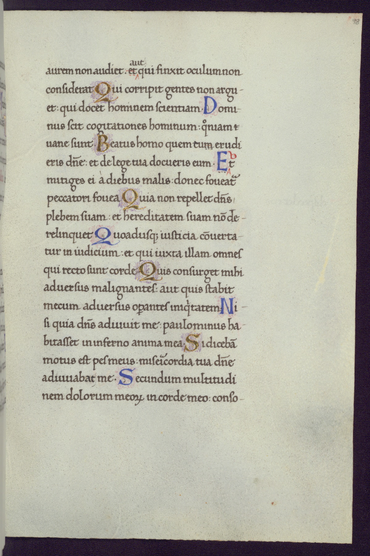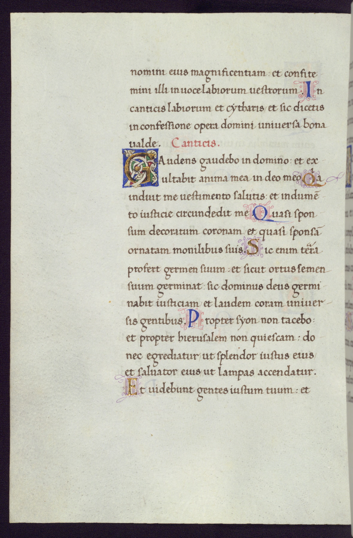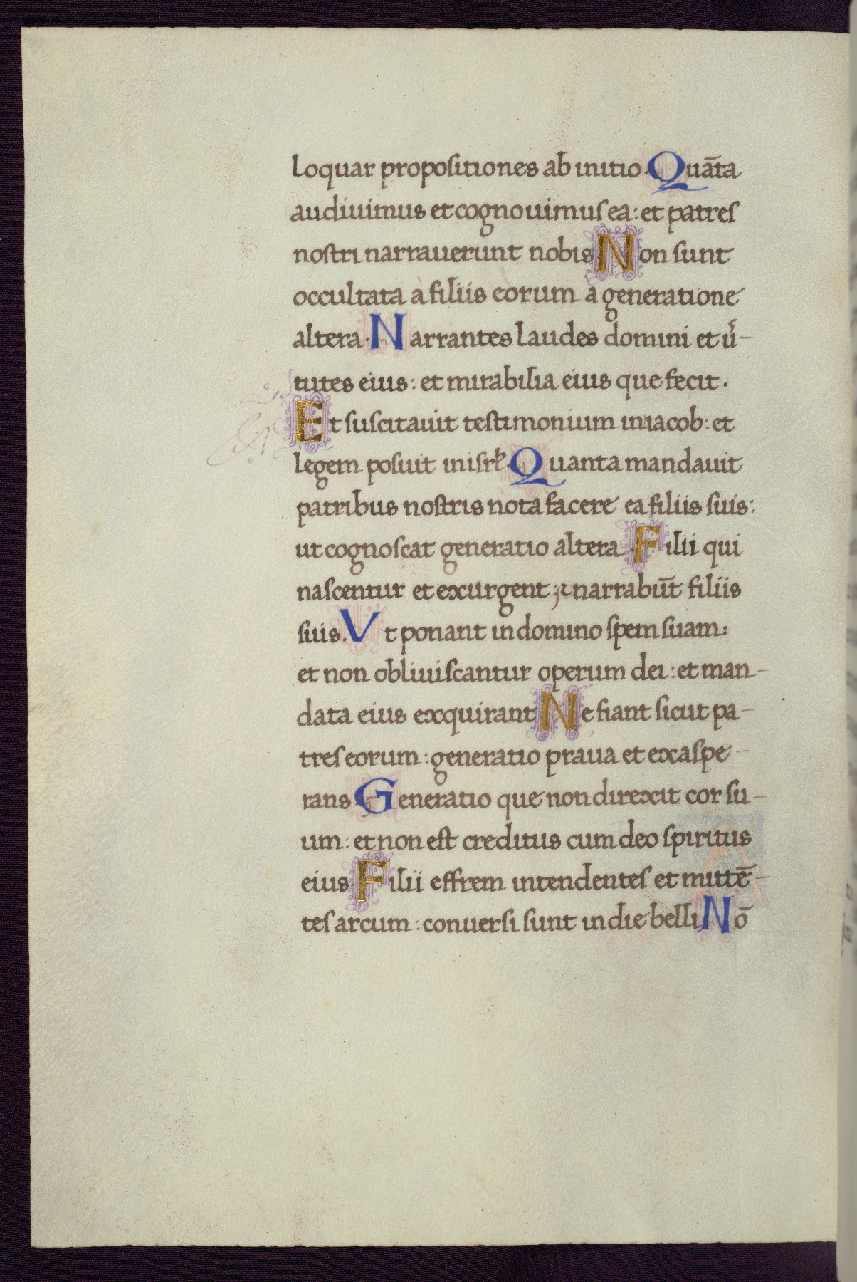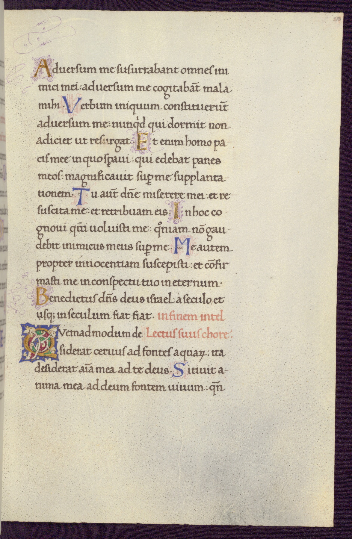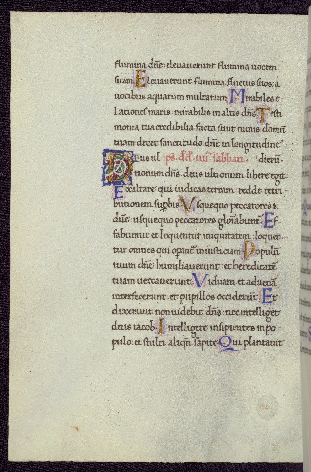 This Psalter was created in Southern Italy, likely Naples, in the last quarter of the fifteenth century. The litany (fols. 158v - 161r) suggests it was for Cistercian use. It contains six high-quality miniatures attributed to the Neopolitan illuminator Cristoforo Magorana (though the historiated initial of David playing a psaltry on fol. 15r may have been done by another hand), who from 1480-1492 worked at the court of Ferdinand I of Aragon. To date, almost forty manuscripts have been attributed to the artist. The Walters manuscript contains two full-page miniatures, one showing the Tree of Jesse and the other the Man of Sorrows. The Tree of Jesse (described in Isaiah 1:11) shows the ancestry of Christ rising from Jesse of Bethlehem, the father of King David who is depicted on the facing folio (171r). In this depiction Jesse is shown on the trunk of the tree, but it actually rises from Abraham. Surrounding Abraham is a crowd of Prophets each with scrolls with verses believed to prophecy the coming of Christ. The miniature with the Man of Sorrows shows Christ standing in his tomb and surrounded by the objects associated with the Passion (arma Christi). The miniature follows a specific Man of Sorrows iconography that originated in an early-fourteenth century mosaic icon from Constantinople that most likely arrived in Italy ca. 1380. The mosaic panel was believed to be an authentic representation of St. Gregory's vision of Christ as the Man of Sorrows, and this type of image encouraged the viewer to meditate on the suffering of Christ while reading the Passion narratives that follow. The humanist script and white-vine initials place the Walters Psalter firmly within the Humanist tradition of the late fifteenth century. Remnants of black velvet suggest this book once had a chemise binding, comparable to W.294 and W.480. Peter Kidd has suggested that the manuscript may have been written by Pietro Ursuleo of Capua (d. 1483).