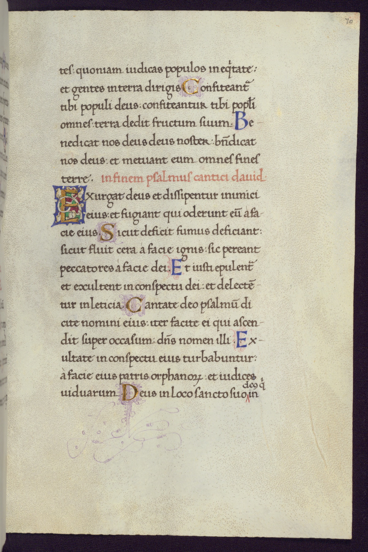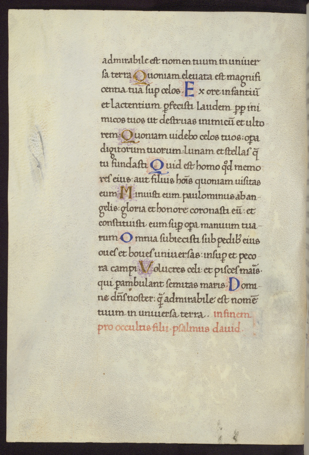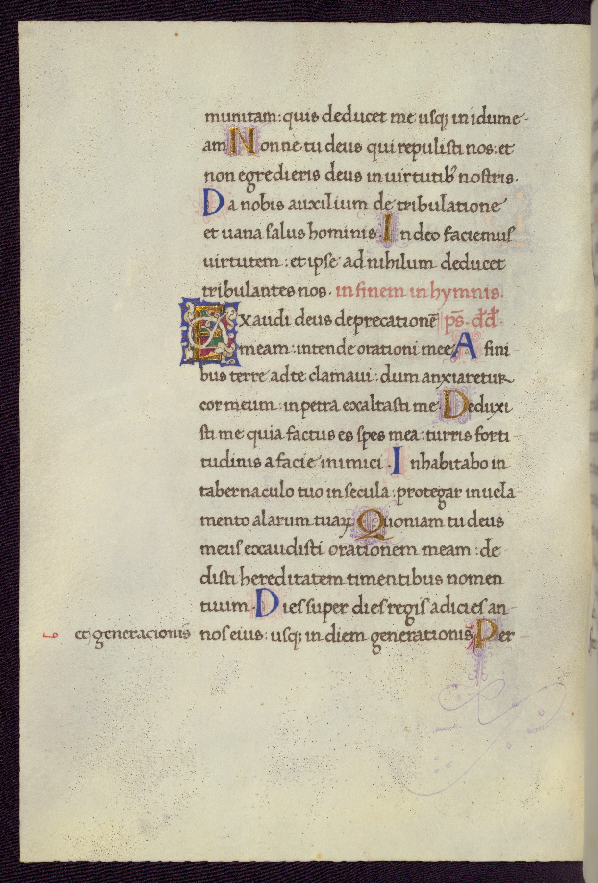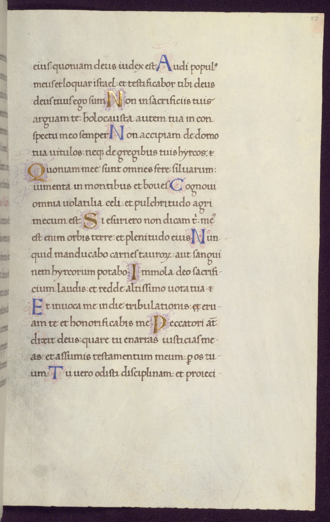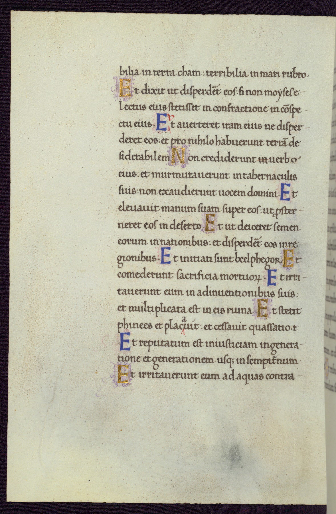 This Psalter was created in Southern Italy, likely Naples, in the last quarter of the fifteenth century. The litany (fols. 158v - 161r) suggests it was for Cistercian use. It contains six high-quality miniatures attributed to the Neopolitan illuminator Cristoforo Magorana (though the historiated initial of David playing a psaltry on fol. 15r may have been done by another hand), who from 1480-1492 worked at the court of Ferdinand I of Aragon. To date, almost forty manuscripts have been attributed to the artist. The Walters manuscript contains two full-page miniatures, one showing the Tree of Jesse and the other the Man of Sorrows. The Tree of Jesse (described in Isaiah 1:11) shows the ancestry of Christ rising from Jesse of Bethlehem, the father of King David who is depicted on the facing folio (171r). In this depiction Jesse is shown on the trunk of the tree, but it actually rises from Abraham. Surrounding Abraham is a crowd of Prophets each with scrolls with verses believed to prophecy the coming of Christ. The miniature with the Man of Sorrows shows Christ standing in his tomb and surrounded by the objects associated with the Passion (arma Christi). The miniature follows a specific Man of Sorrows iconography that originated in an early-fourteenth century mosaic icon from Constantinople that most likely arrived in Italy ca. 1380. The mosaic panel was believed to be an authentic representation of St. Gregory's vision of Christ as the Man of Sorrows, and this type of image encouraged the viewer to meditate on the suffering of Christ while reading the Passion narratives that follow. The humanist script and white-vine initials place the Walters Psalter firmly within the Humanist tradition of the late fifteenth century. Remnants of black velvet suggest this book once had a chemise binding, comparable to W.294 and W.480. Peter Kidd has suggested that the manuscript may have been written by Pietro Ursuleo of Capua (d. 1483).