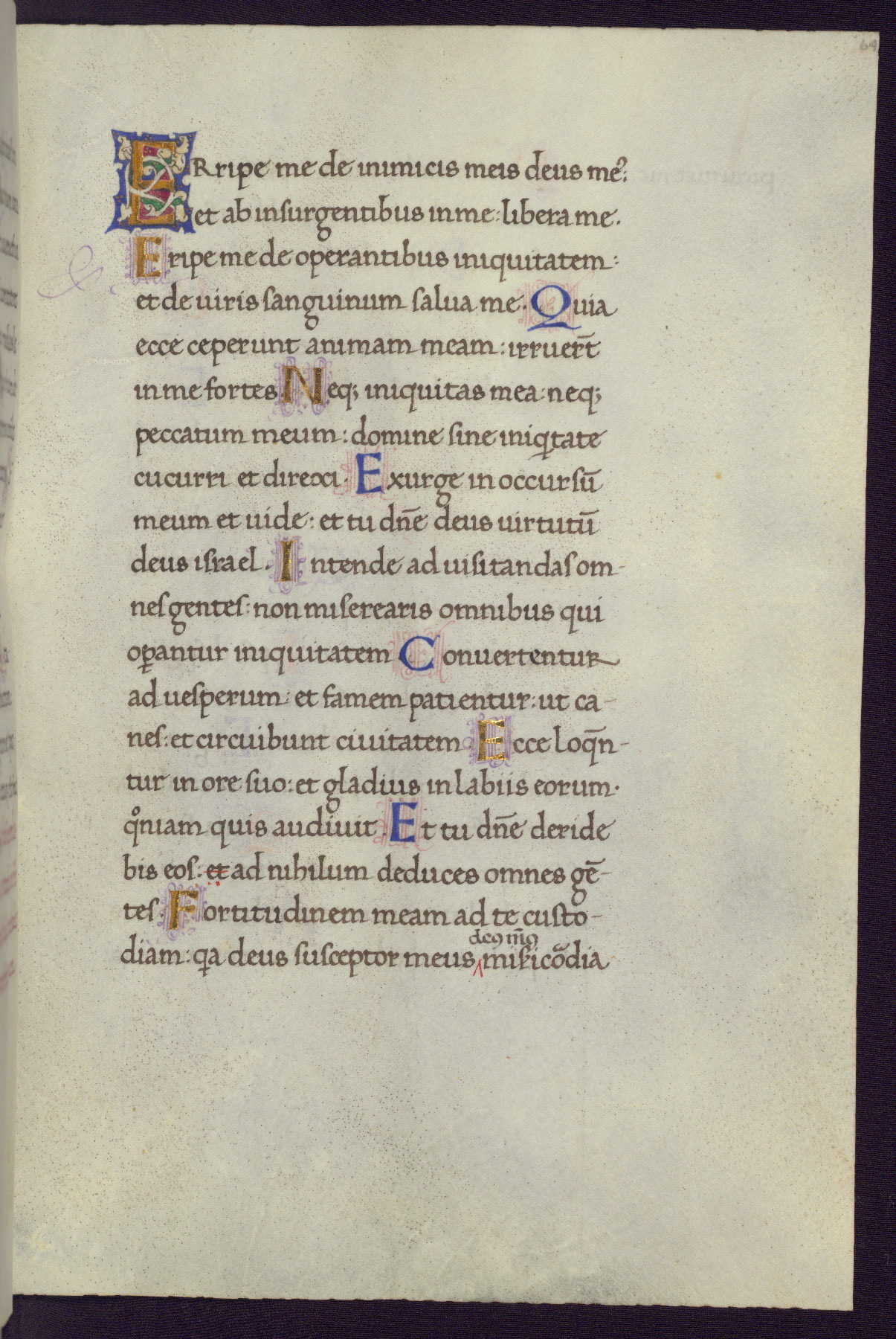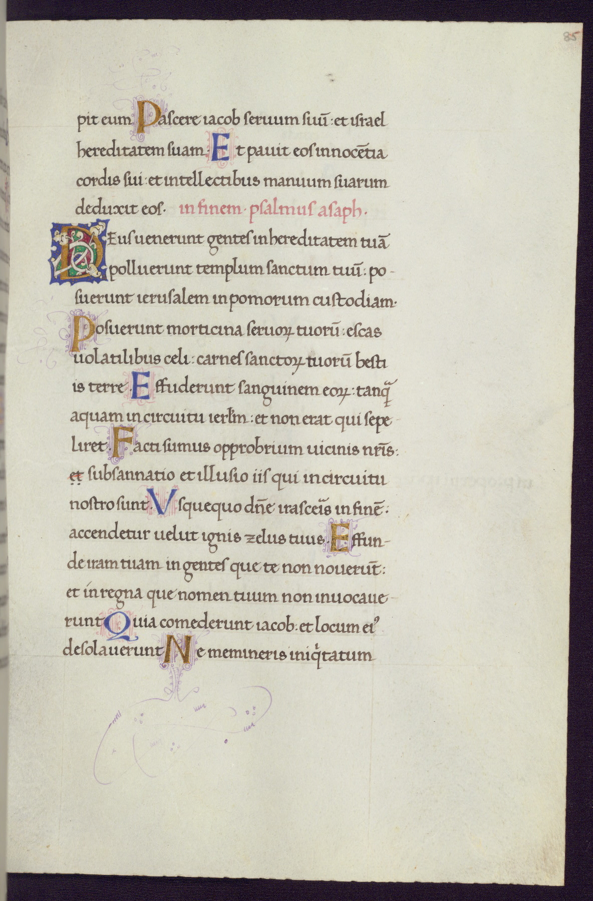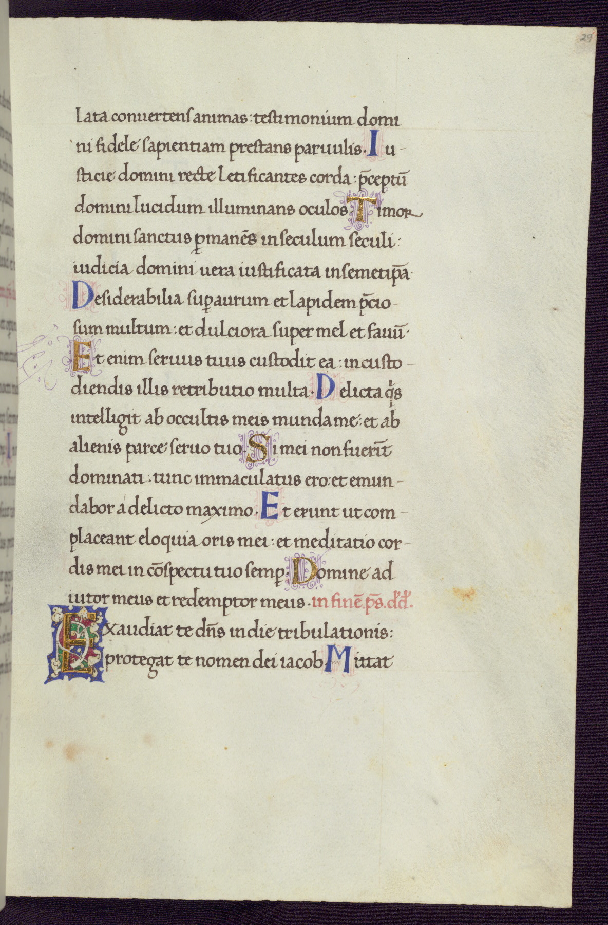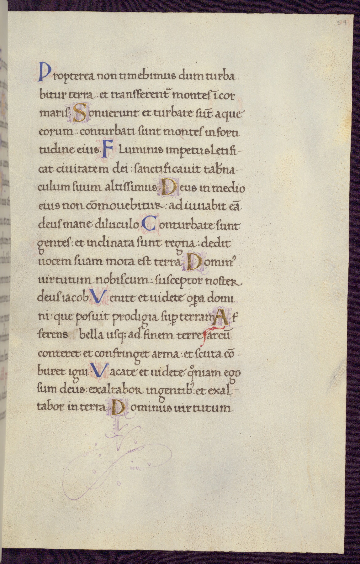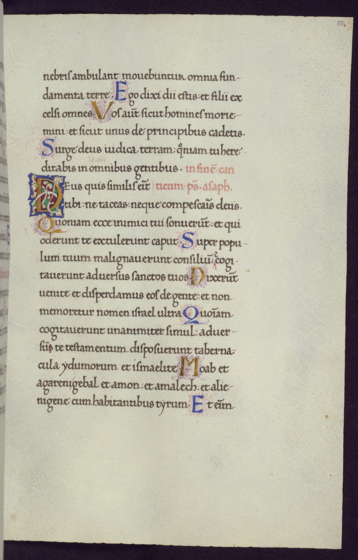 This Psalter was created in Southern Italy, likely Naples, in the last quarter of the fifteenth century. The litany (fols. 158v - 161r) suggests it was for Cistercian use. It contains six high-quality miniatures attributed to the Neopolitan illuminator Cristoforo Magorana (though the historiated initial of David playing a psaltry on fol. 15r may have been done by another hand), who from 1480-1492 worked at the court of Ferdinand I of Aragon. To date, almost forty manuscripts have been attributed to the artist. The Walters manuscript contains two full-page miniatures, one showing the Tree of Jesse and the other the Man of Sorrows. The Tree of Jesse (described in Isaiah 1:11) shows the ancestry of Christ rising from Jesse of Bethlehem, the father of King David who is depicted on the facing folio (171r). In this depiction Jesse is shown on the trunk of the tree, but it actually rises from Abraham. Surrounding Abraham is a crowd of Prophets each with scrolls with verses believed to prophecy the coming of Christ. The miniature with the Man of Sorrows shows Christ standing in his tomb and surrounded by the objects associated with the Passion (arma Christi). The miniature follows a specific Man of Sorrows iconography that originated in an early-fourteenth century mosaic icon from Constantinople that most likely arrived in Italy ca. 1380. The mosaic panel was believed to be an authentic representation of St. Gregory's vision of Christ as the Man of Sorrows, and this type of image encouraged the viewer to meditate on the suffering of Christ while reading the Passion narratives that follow. The humanist script and white-vine initials place the Walters Psalter firmly within the Humanist tradition of the late fifteenth century. Remnants of black velvet suggest this book once had a chemise binding, comparable to W.294 and W.480. Peter Kidd has suggested that the manuscript may have been written by Pietro Ursuleo of Capua (d. 1483).