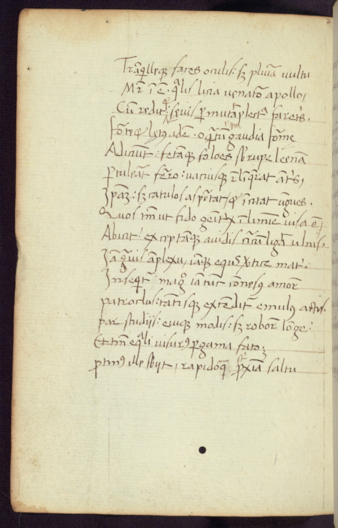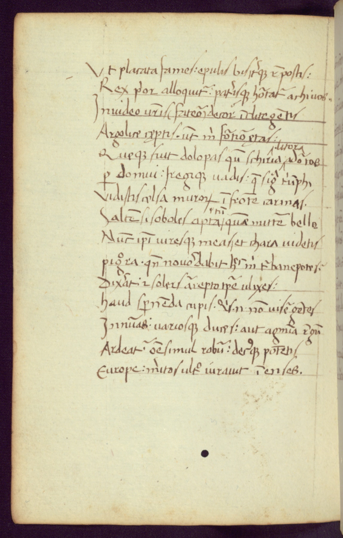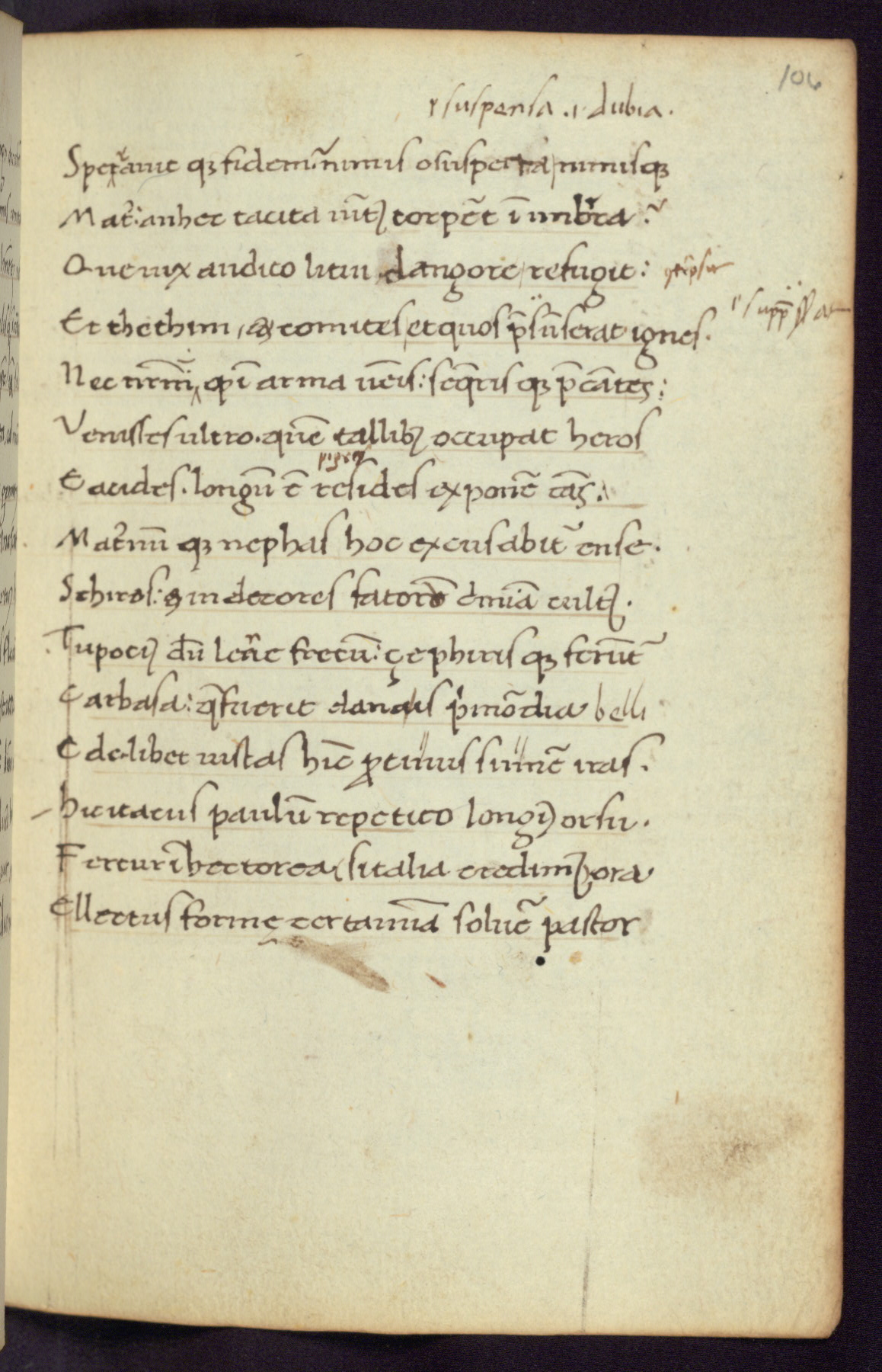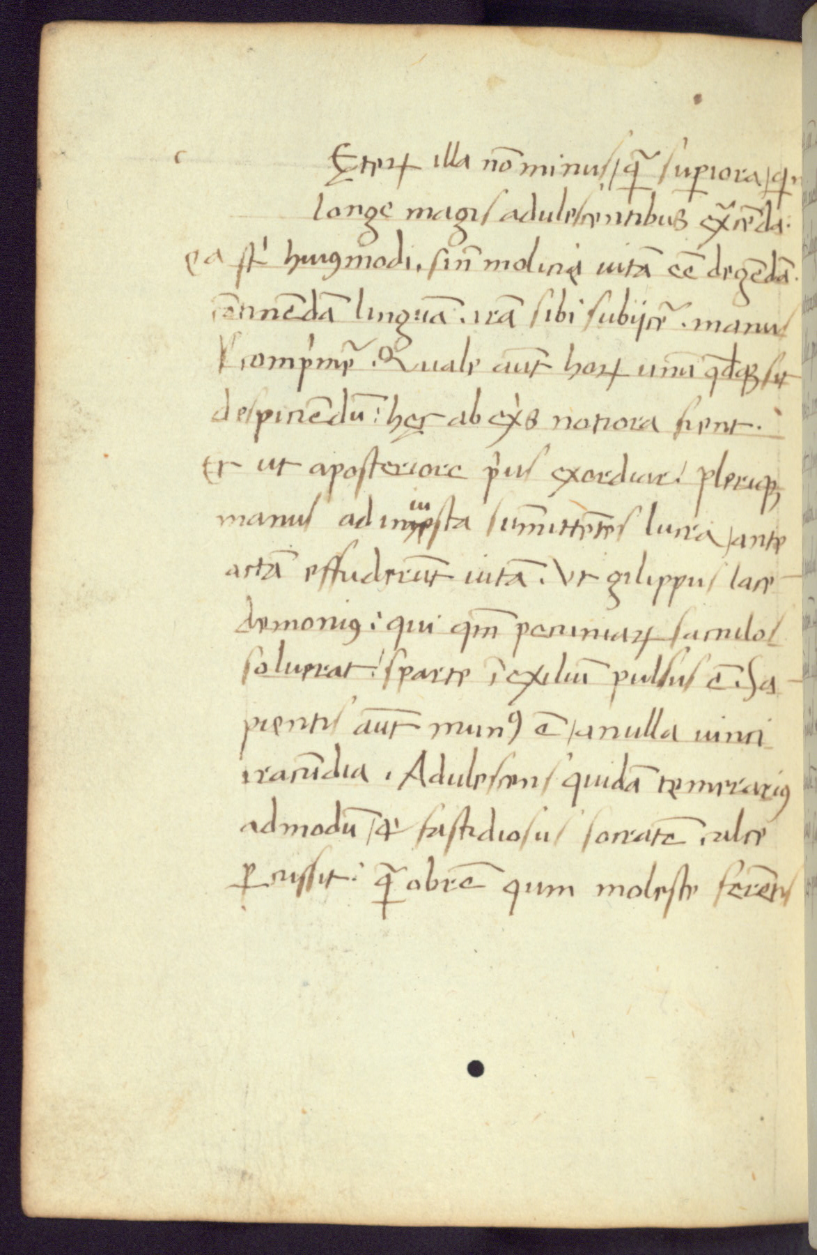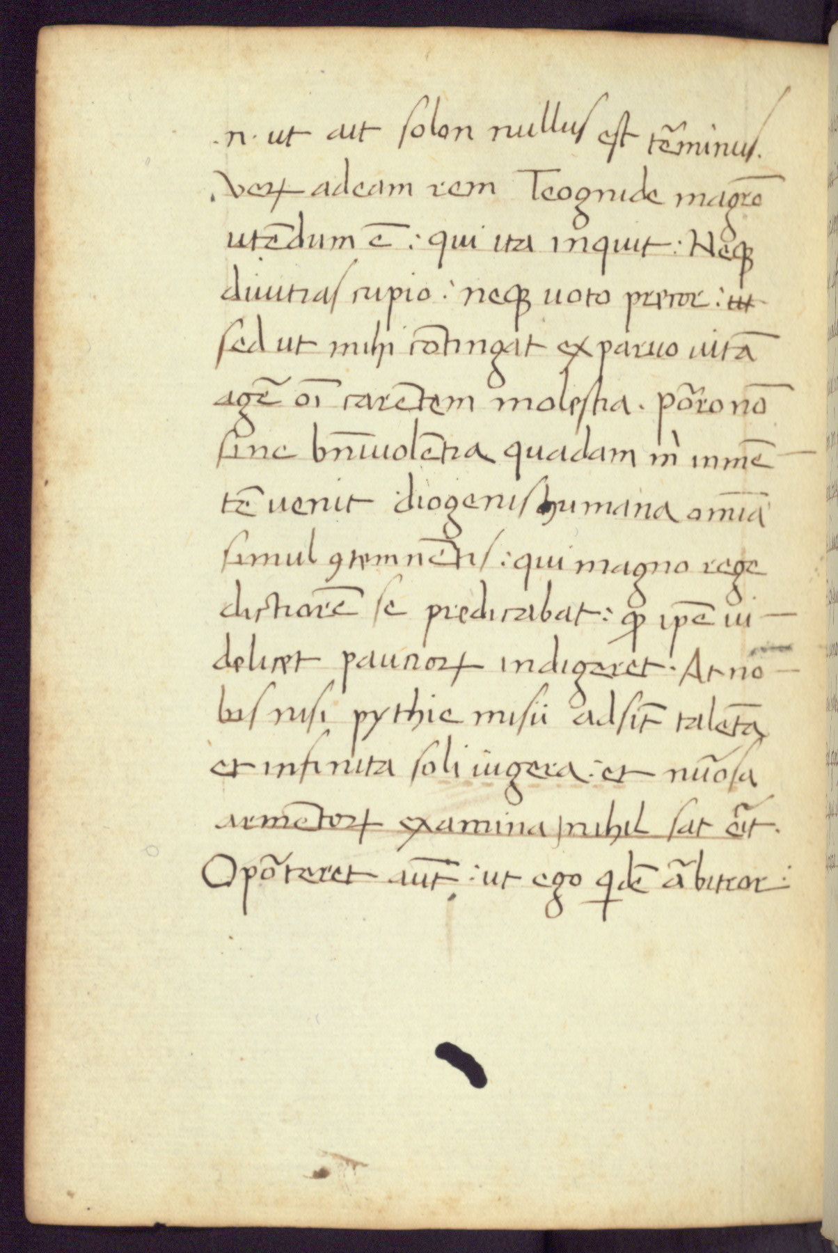 Written in Italy in the third quarter of the fifteenth century, this manuscript contains works by St. Basilius, Pseudo(?) Plutarch, and Statius. The first two texts are Greek treatises on education that were translated into Latin, bearing witness to the Italian humanist revival of, and interest in, the study of ancient Greek. The translators of those texts, Leonardo Bruni (d.1444) and Guarino Veronese (d.1460), both studied Greek under the tutelage of Byzantine scholar Manuel Chrysoloras (d.1415), who was one of the first to introduce Greek literature to Western Europe. The third text by Statius was included as part of a compendium of texts frequently used by students studying Latin beginning in the tenth century. During this same period, Statius was confused with the rhetorician Statius Ursulus of Toulouse, who is mentioned in Jerome’s translation of Eusebius’ chronicles as active in 56 CE. Statius' full Roman name was Publius Papinius Statius, however due to his conflation with the rhetorician in the tenth century, there are a number of manuscripts that begin Statius' name with “Sucurlus” instead of “Publius.” This can be found for instance in an Italian incunabula that is contemporary with W.358, and which is also found in the Walters’ collection (91.1119). This suggests that this error may have been a regional phenomenon in Italy.